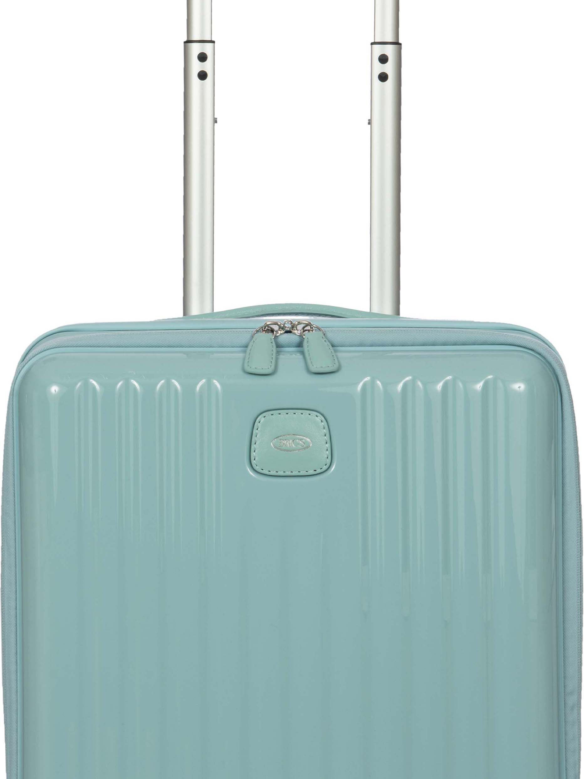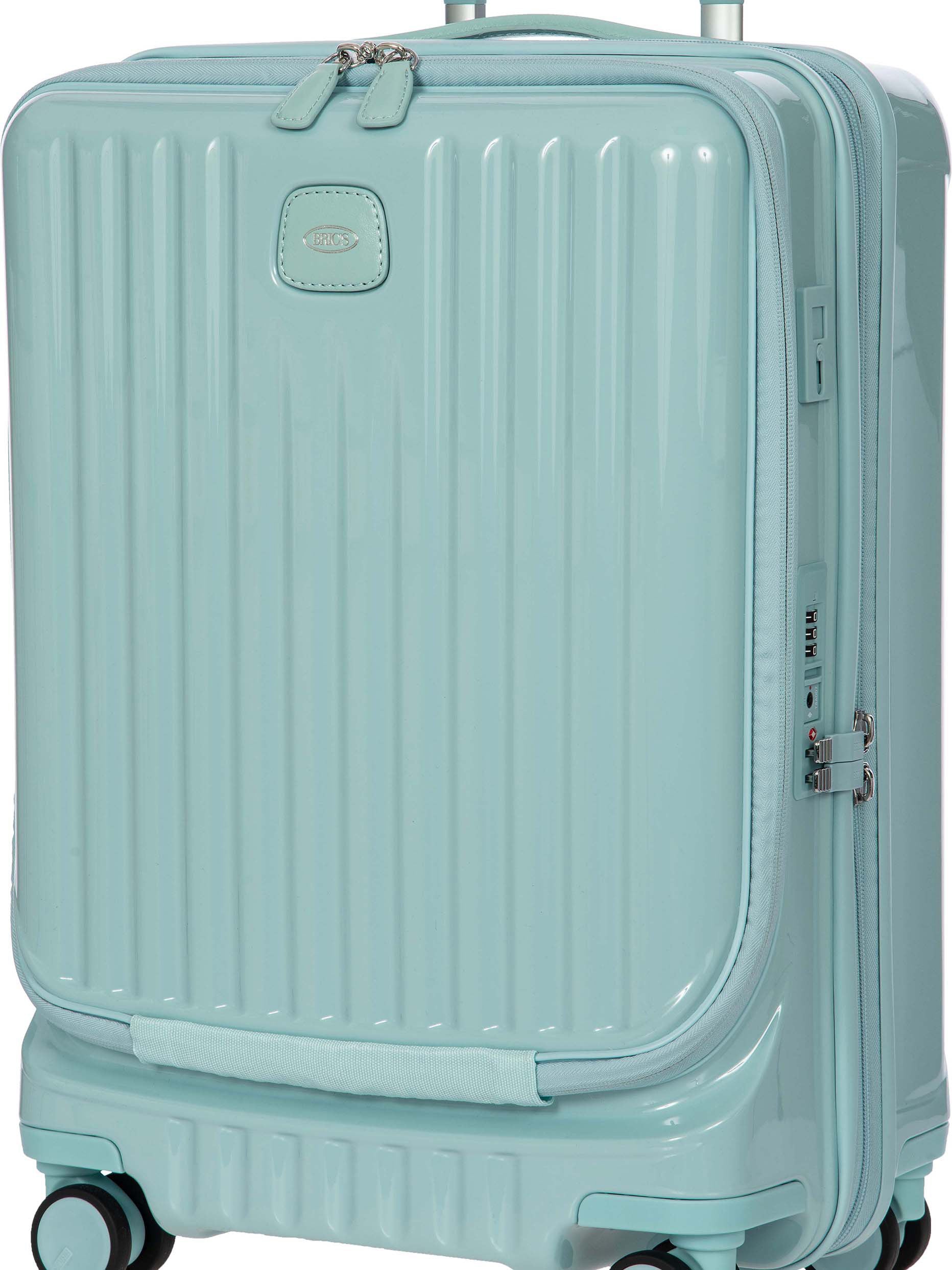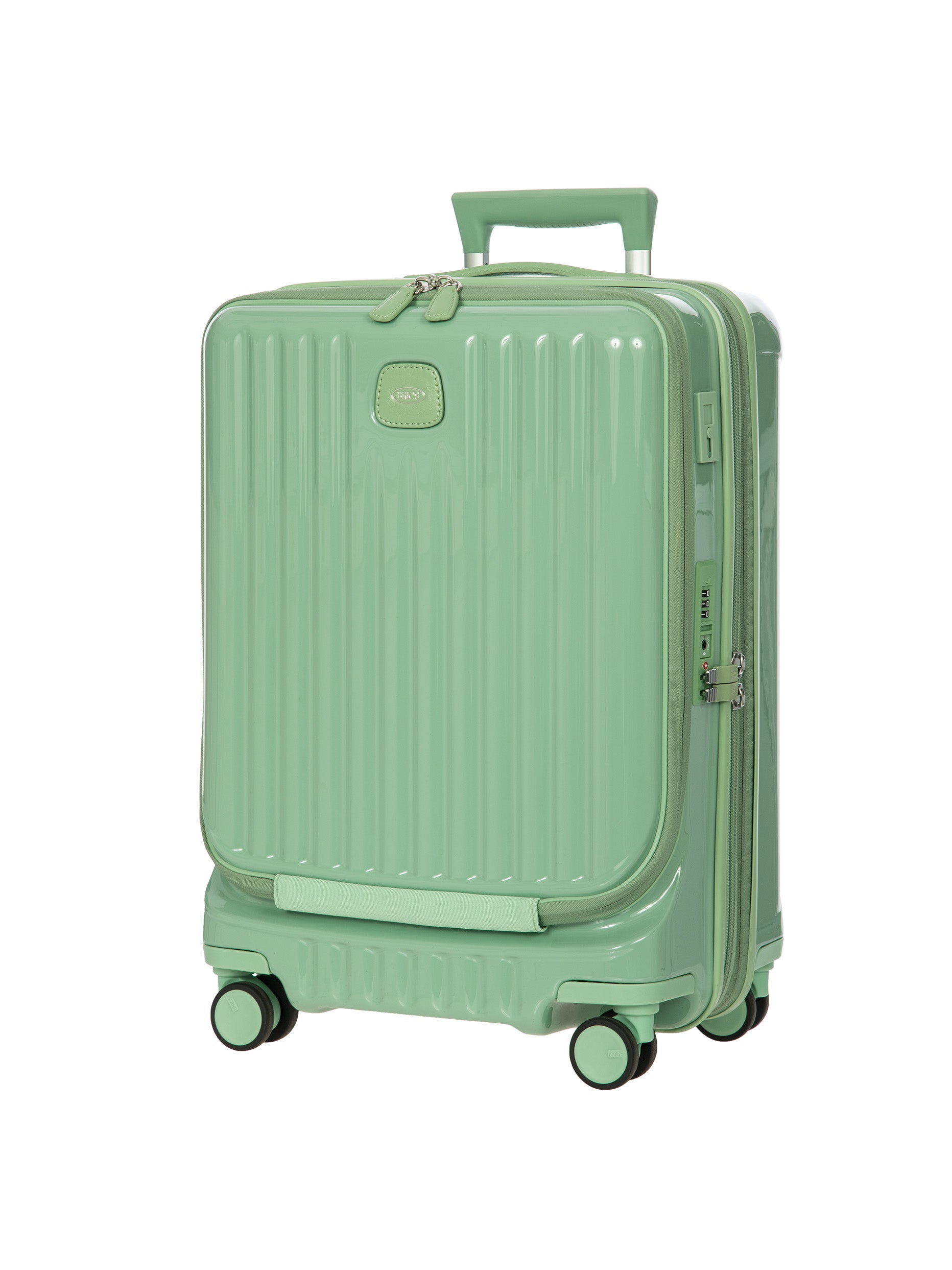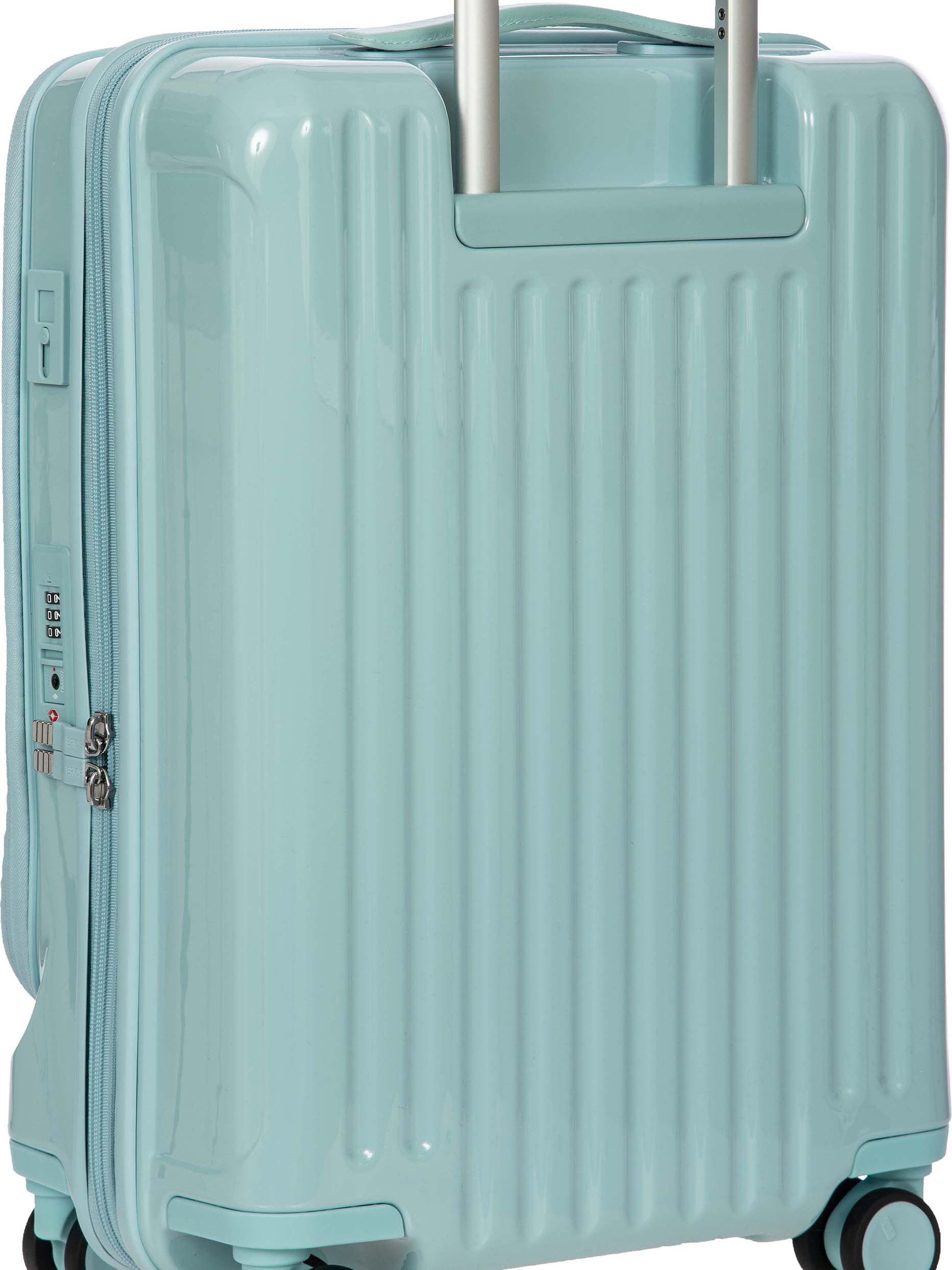 Light and durable Positano expandable hard-shell carry-on trolley with front pocket, USB port and recessed wheels.