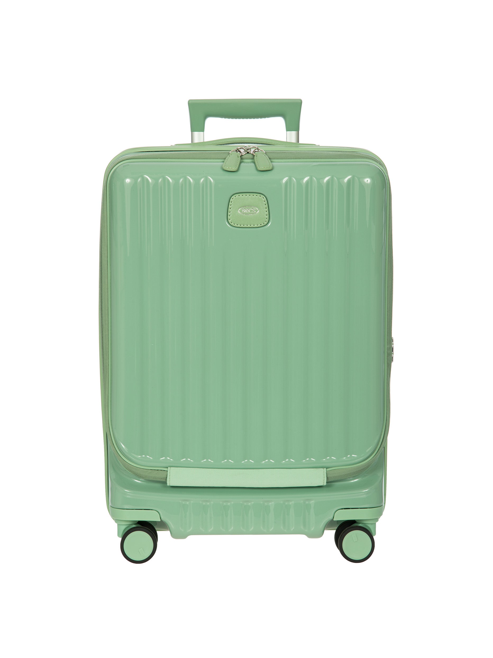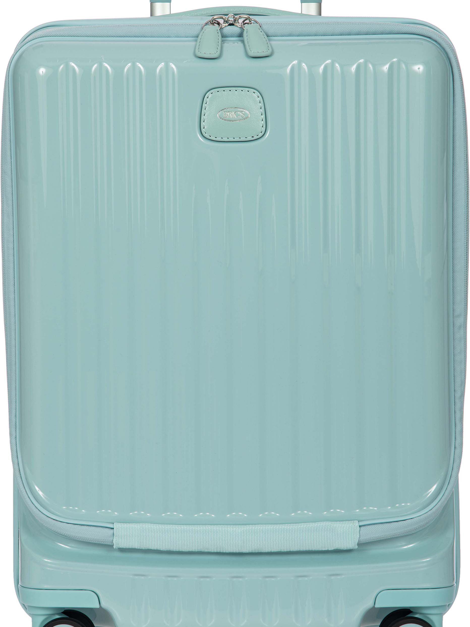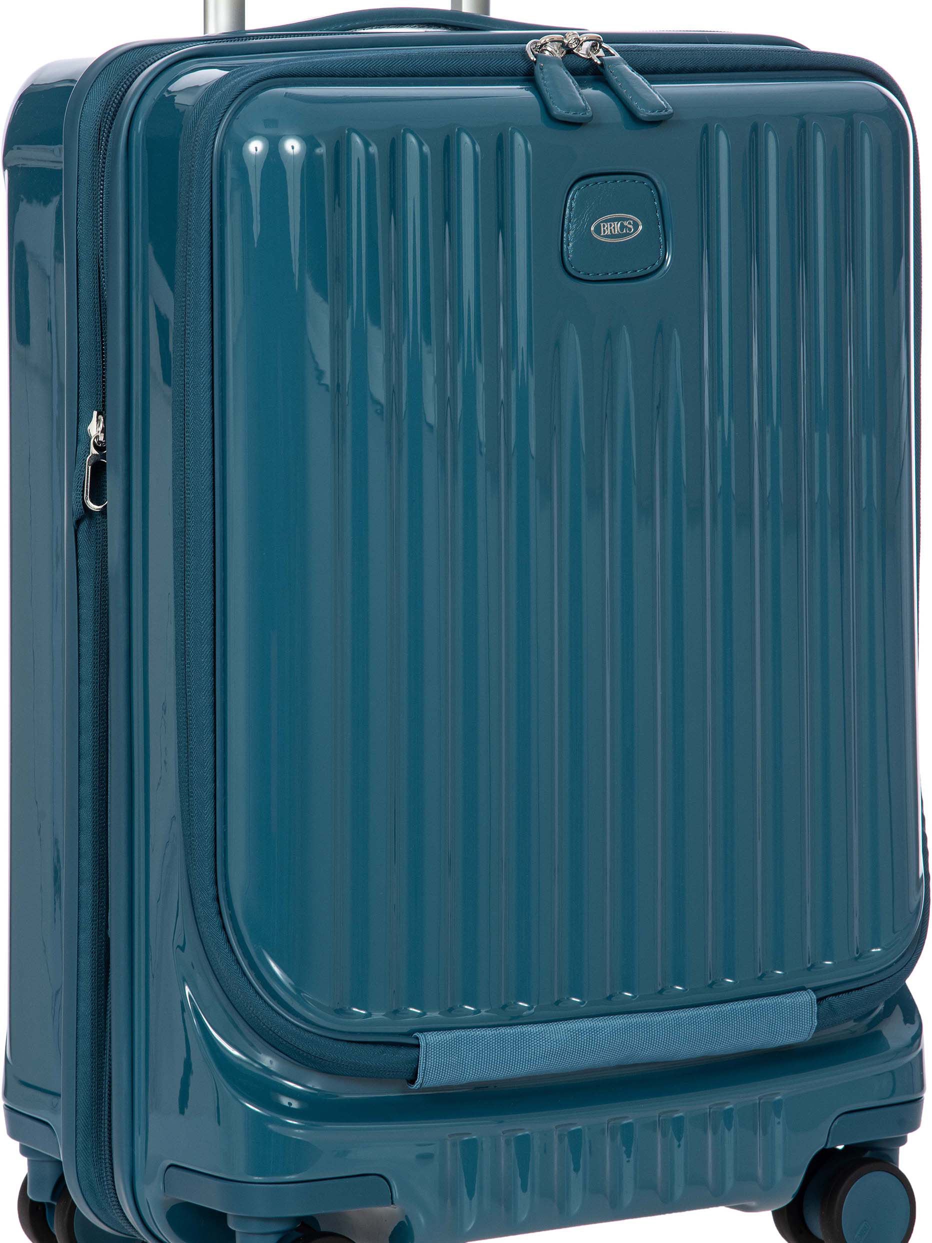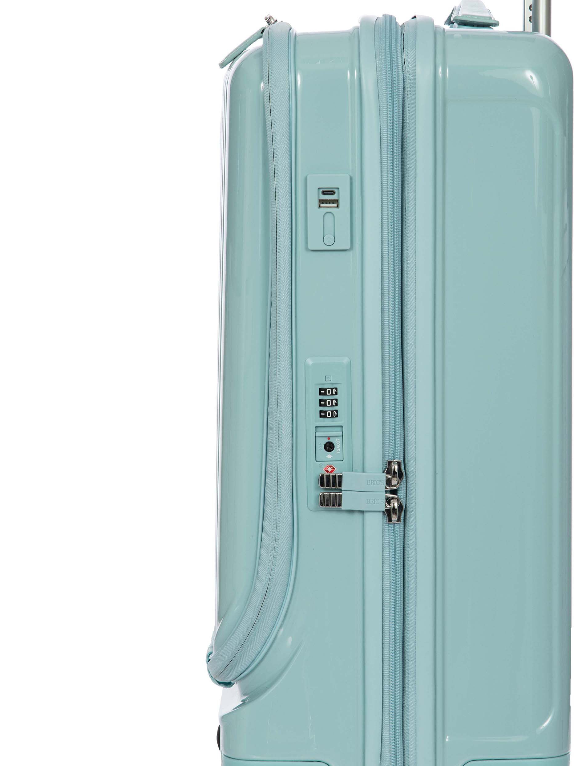 Light and durable Positano expandable hard-shell carry-on trolley with front pocket, USB port and recessed wheels.