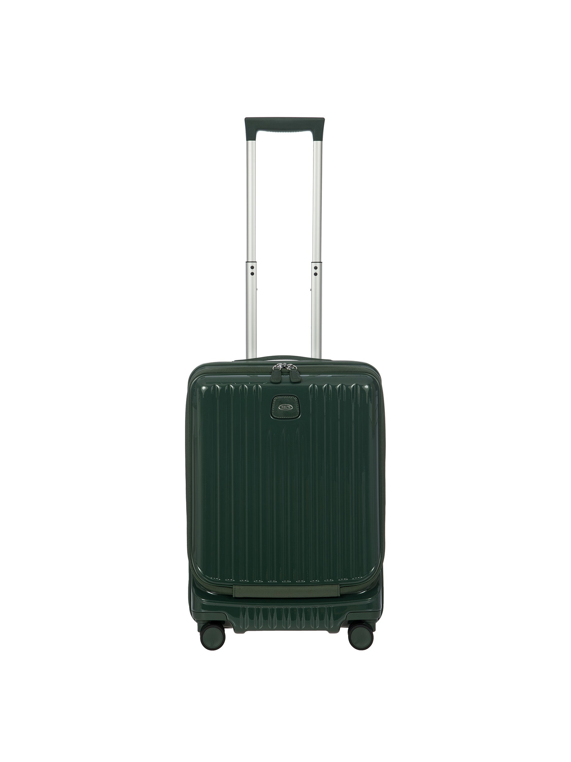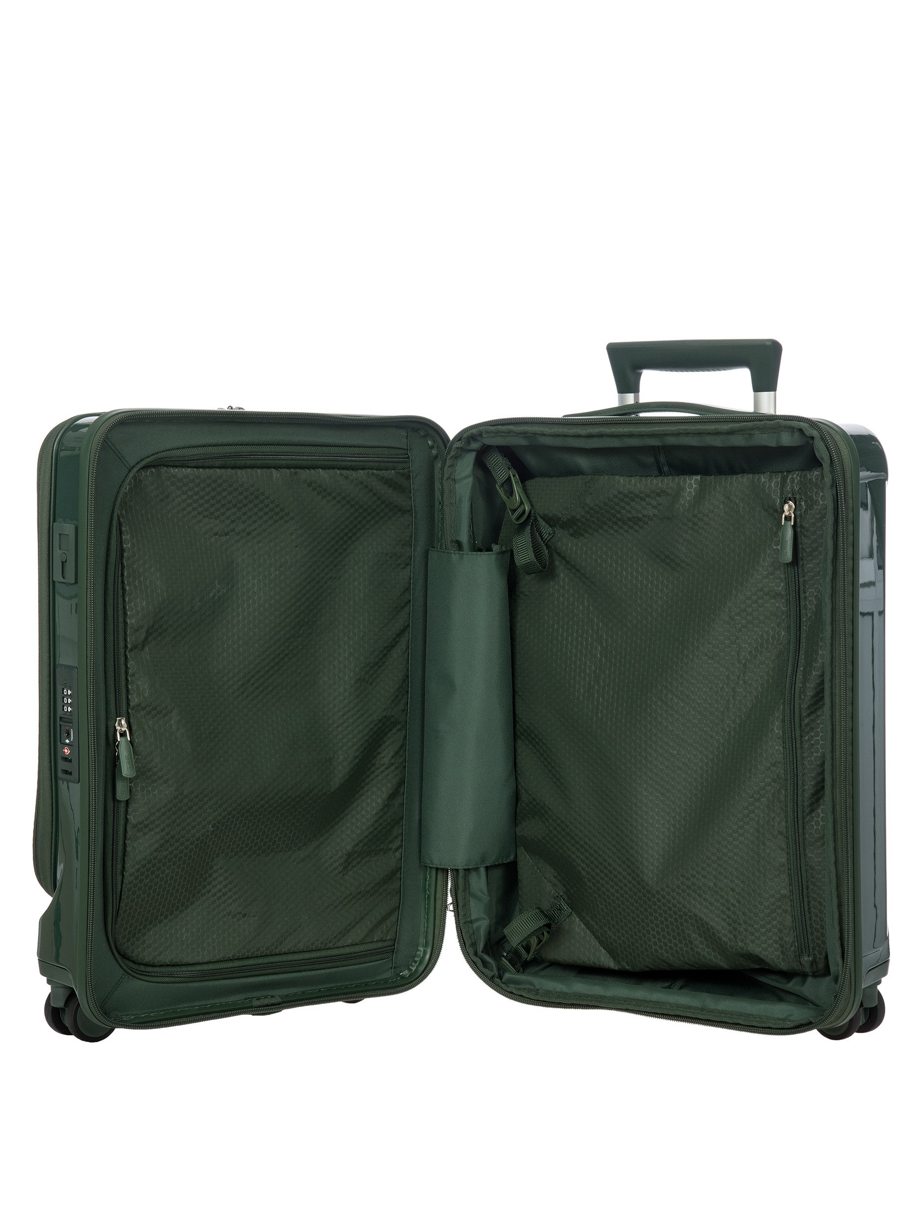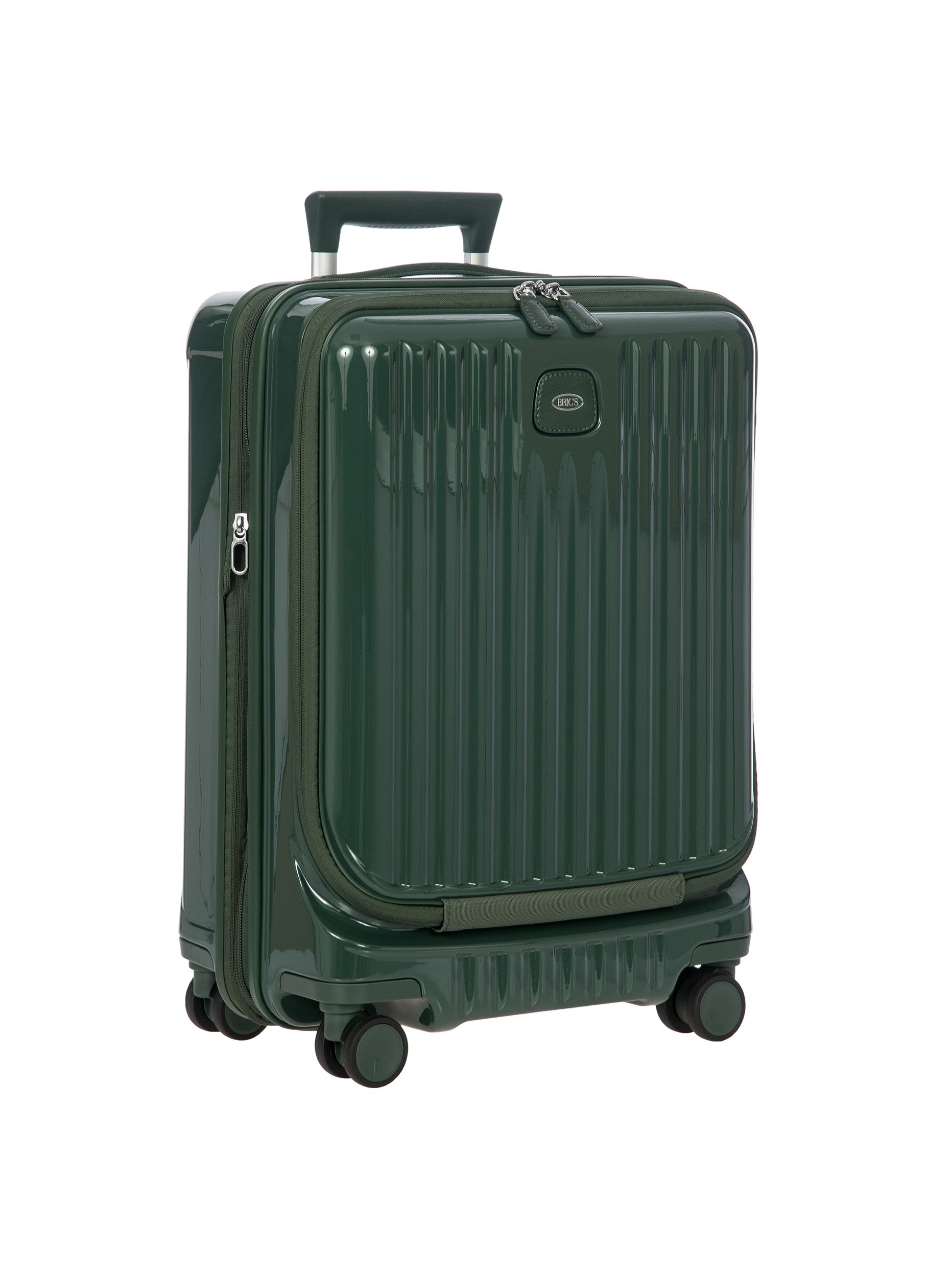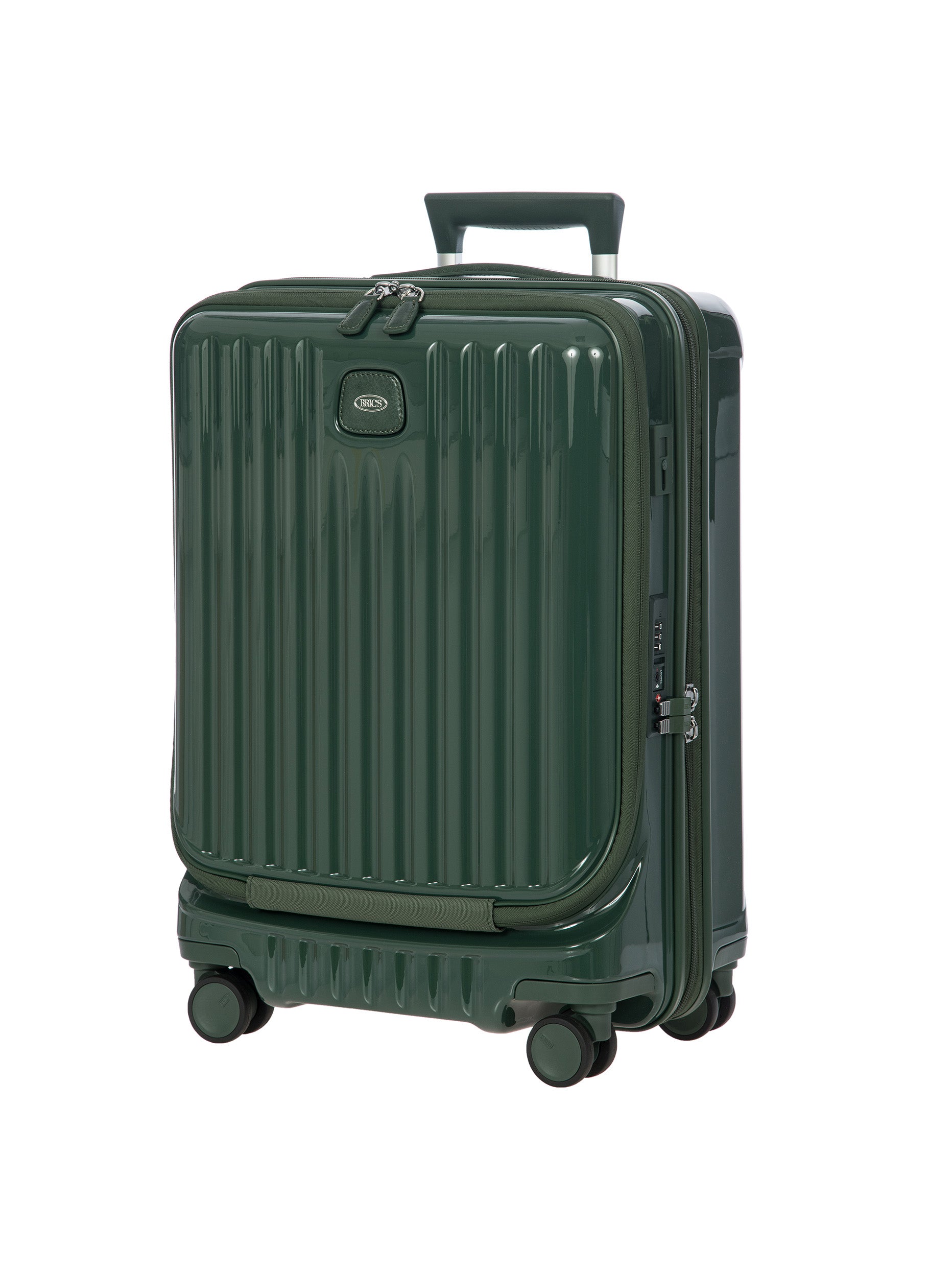 Light and durable Positano expandable hard-shell carry-on trolley with front pocket, USB port and recessed wheels.