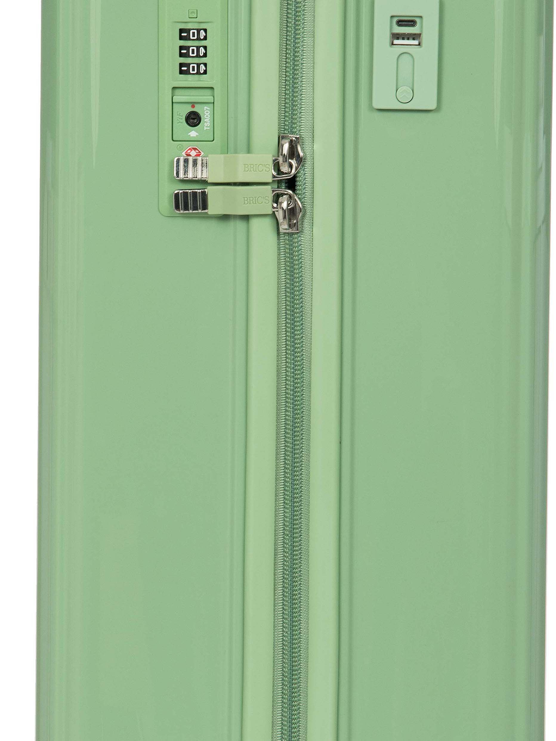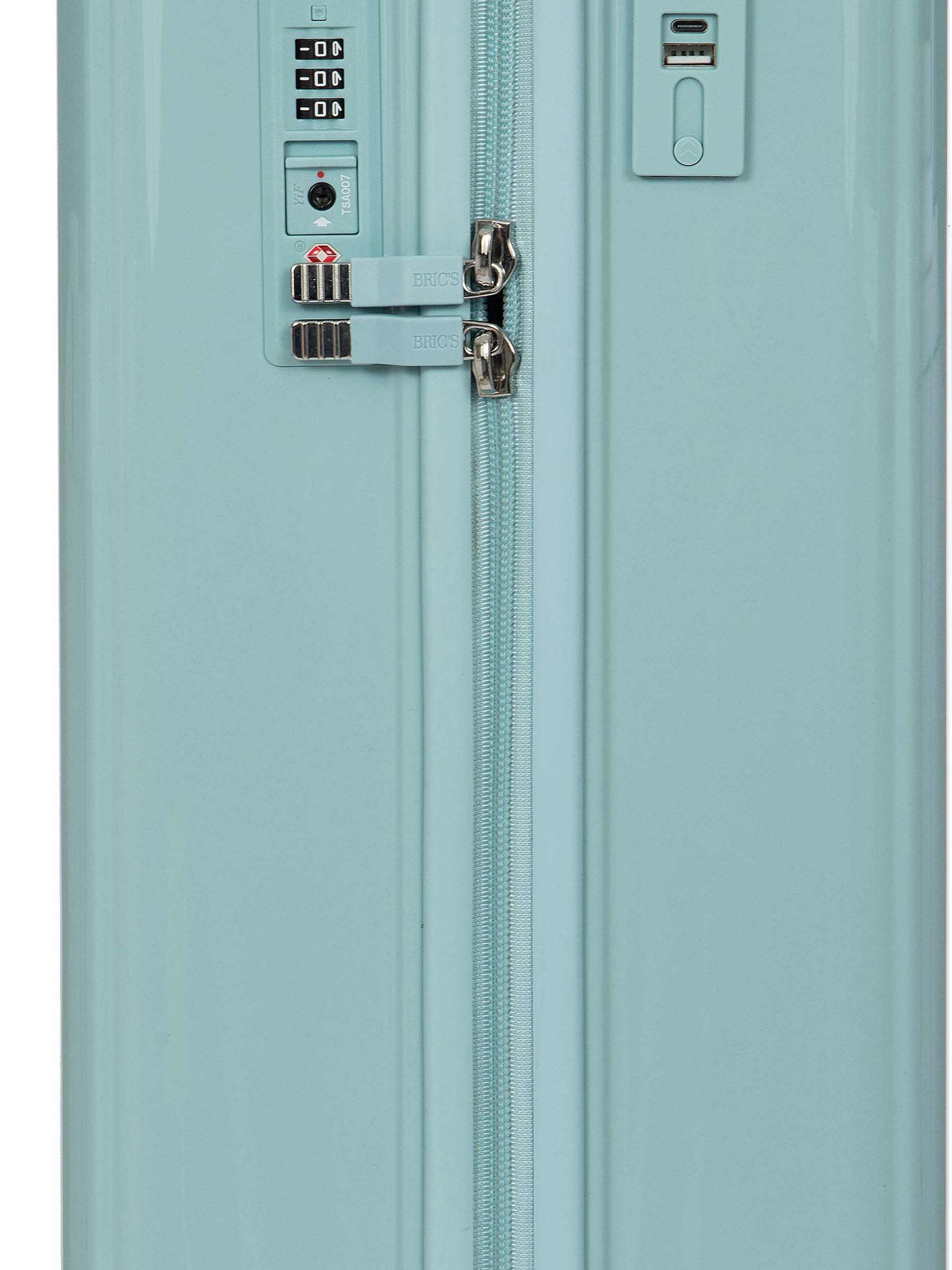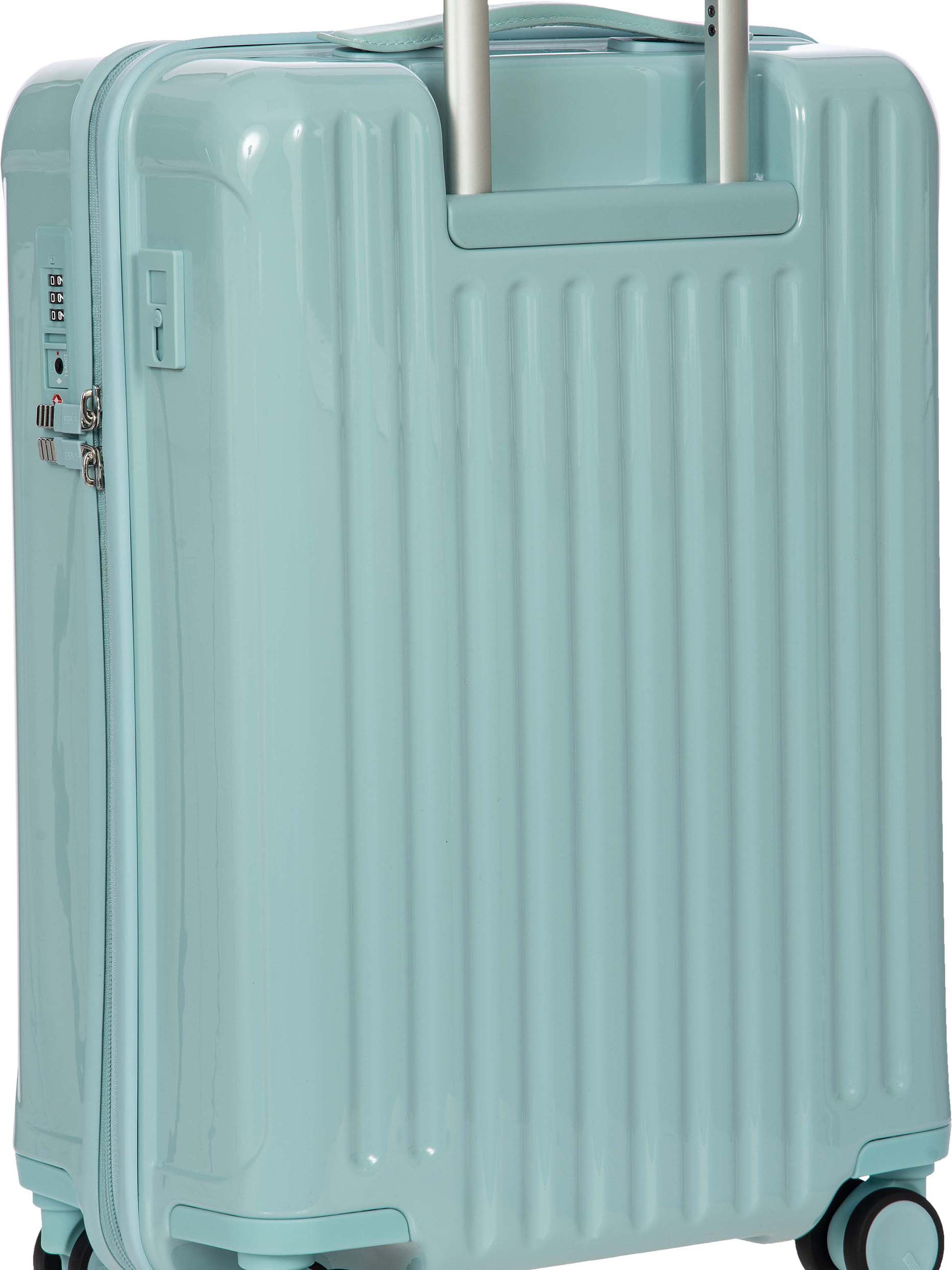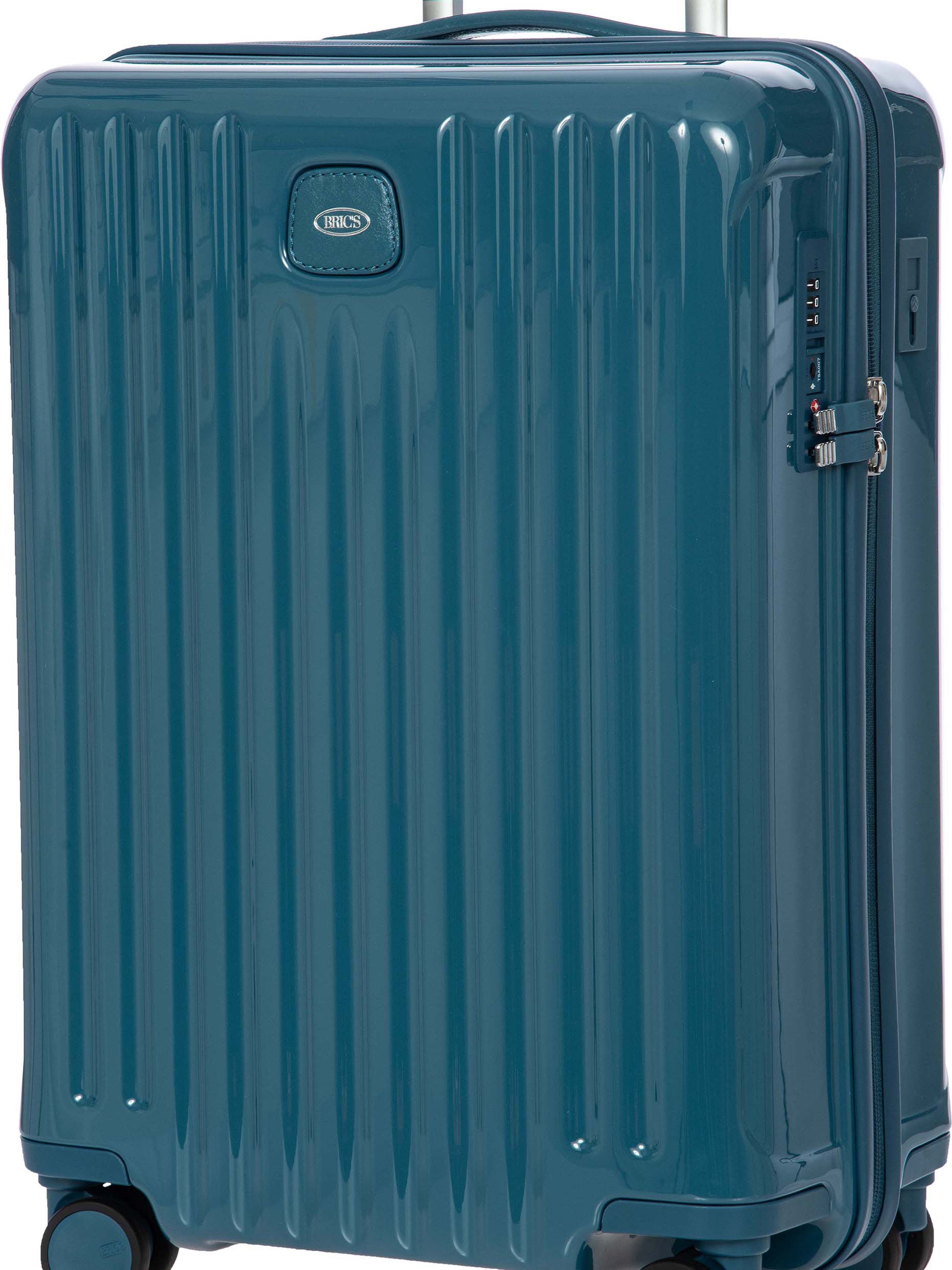 Light and durable Positano hard-shell carry-on trolley with USB port and recessed wheels.