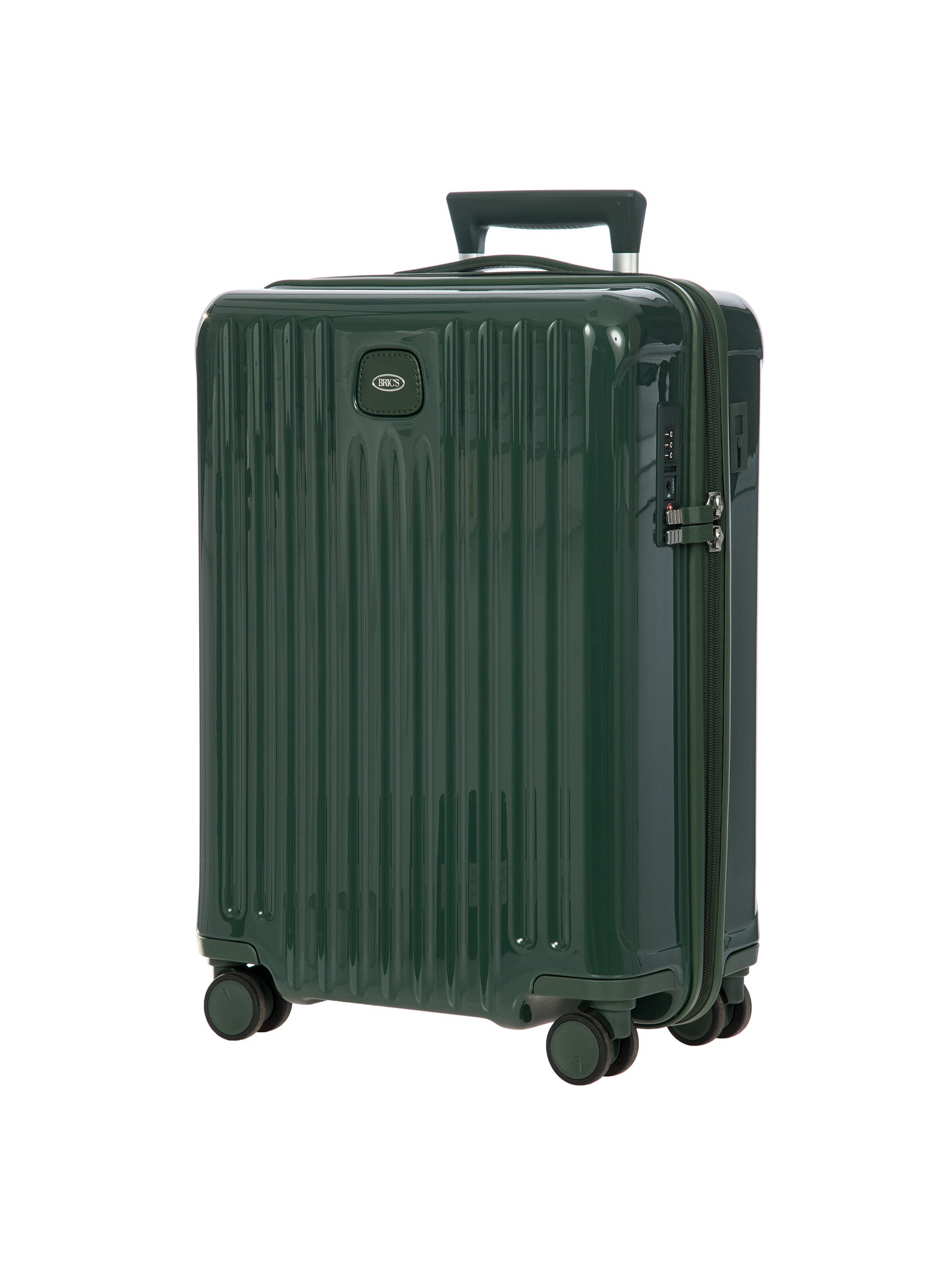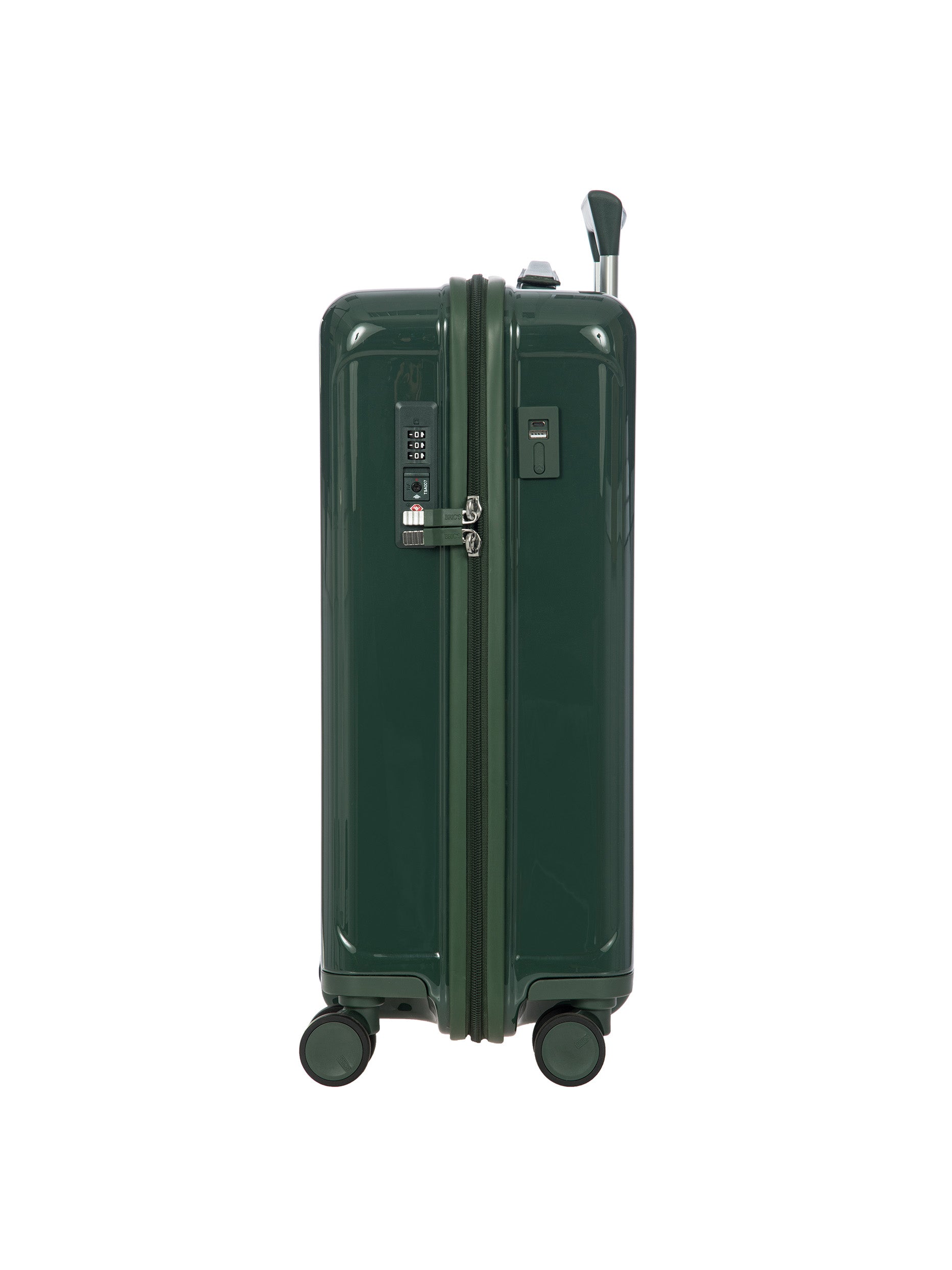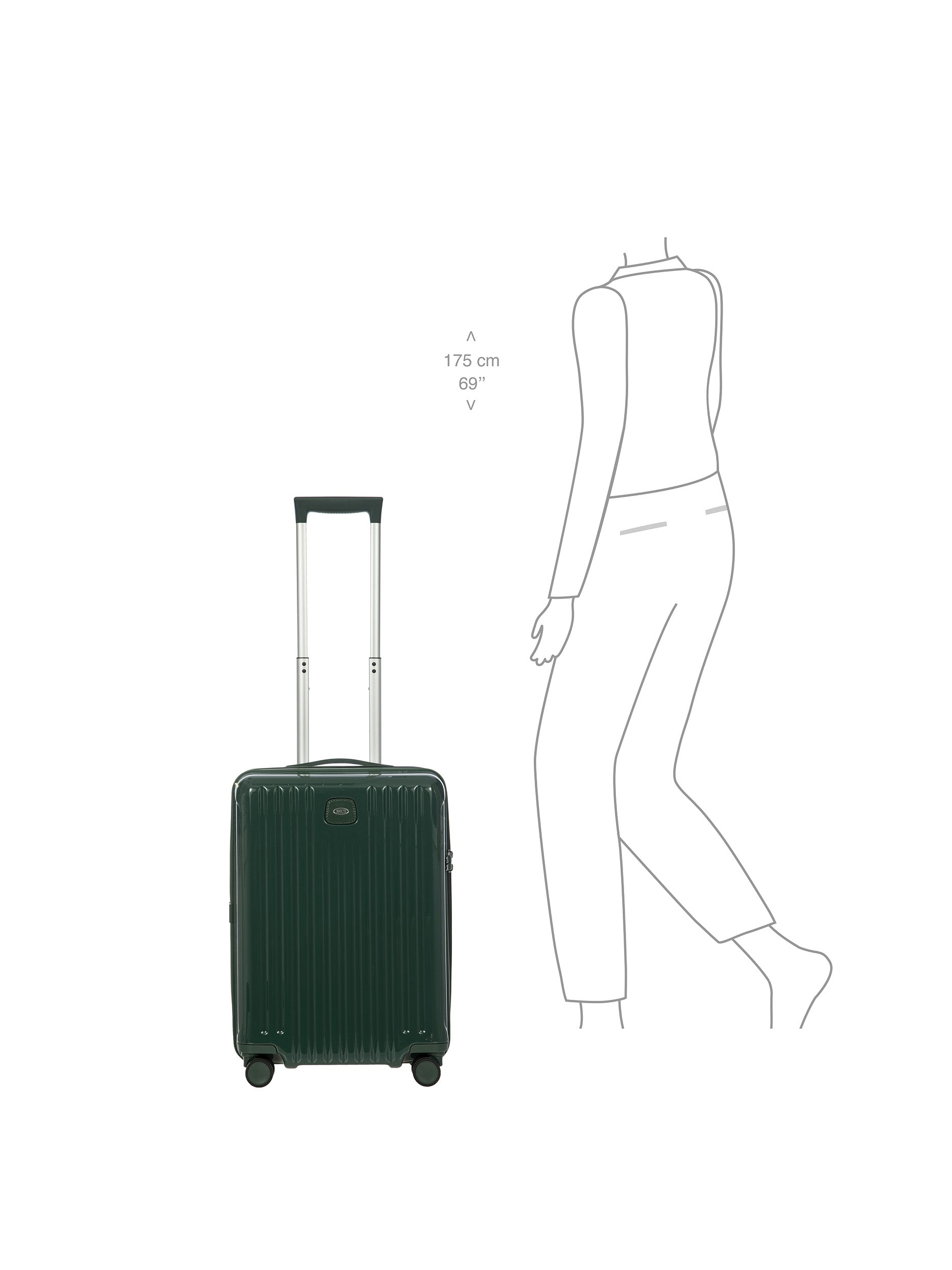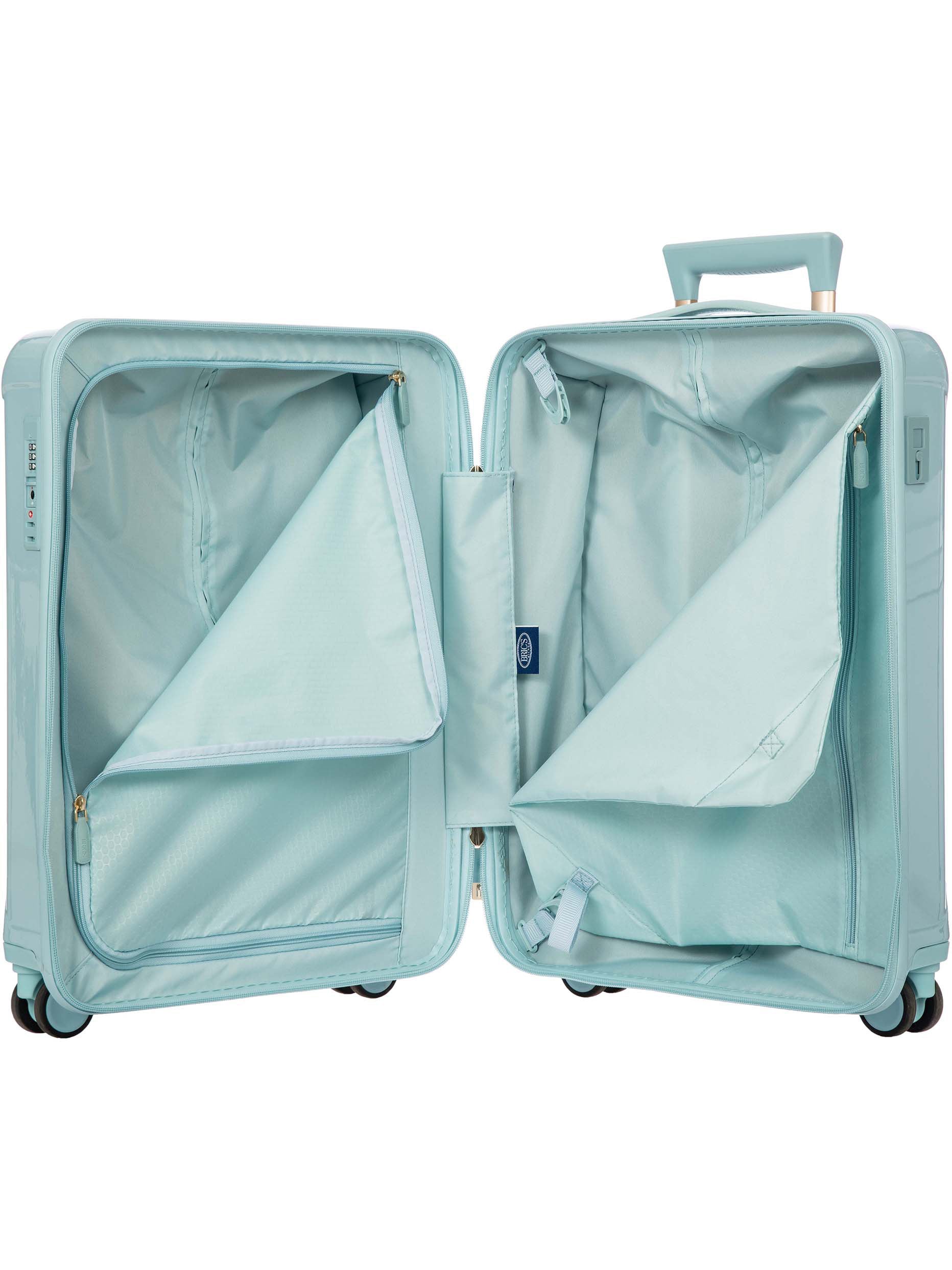 Light and durable Positano hard-shell carry-on trolley with USB port and recessed wheels.