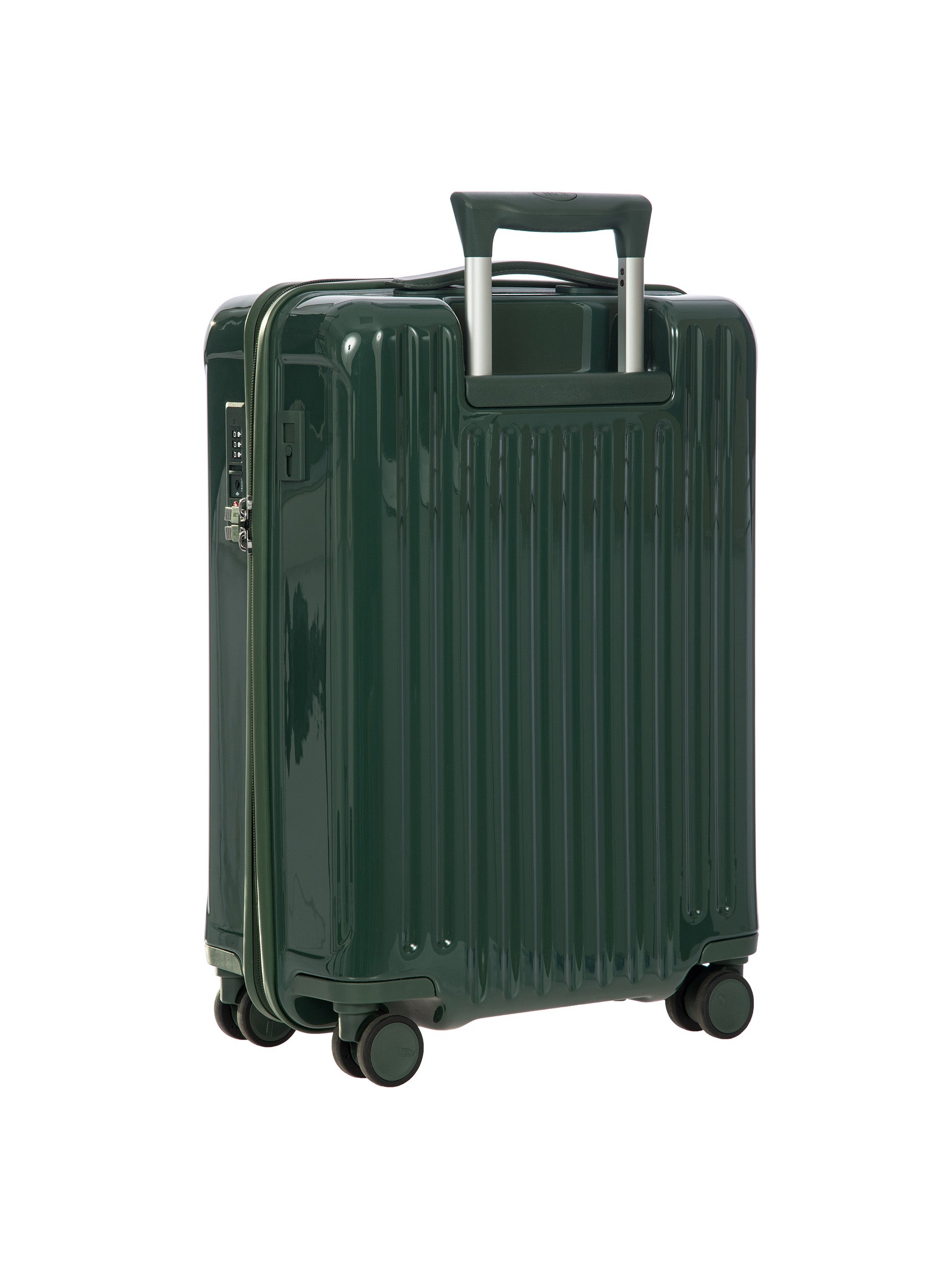 - EXTERIOR: flexible and durable recycled polycarbonate shell with leather details and contrasting top-stitching. Zipper with a TSA combination luggage lock built into the shell.