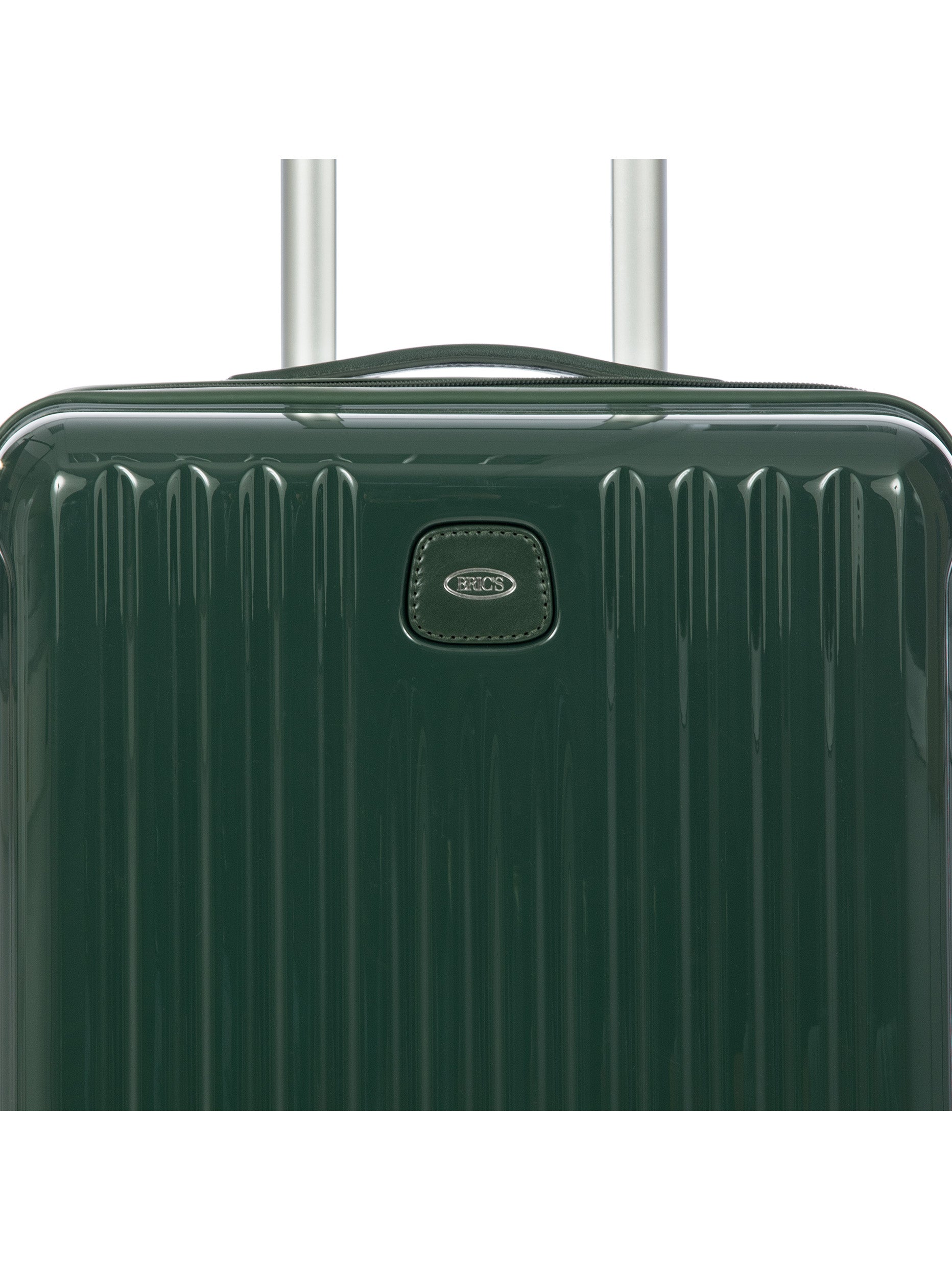 - HANDLES: pull-along handle with aluminium D-shaped tubes that are mechanically robust and stable, an ergonomic grip and logo on the button. Leather top handle.