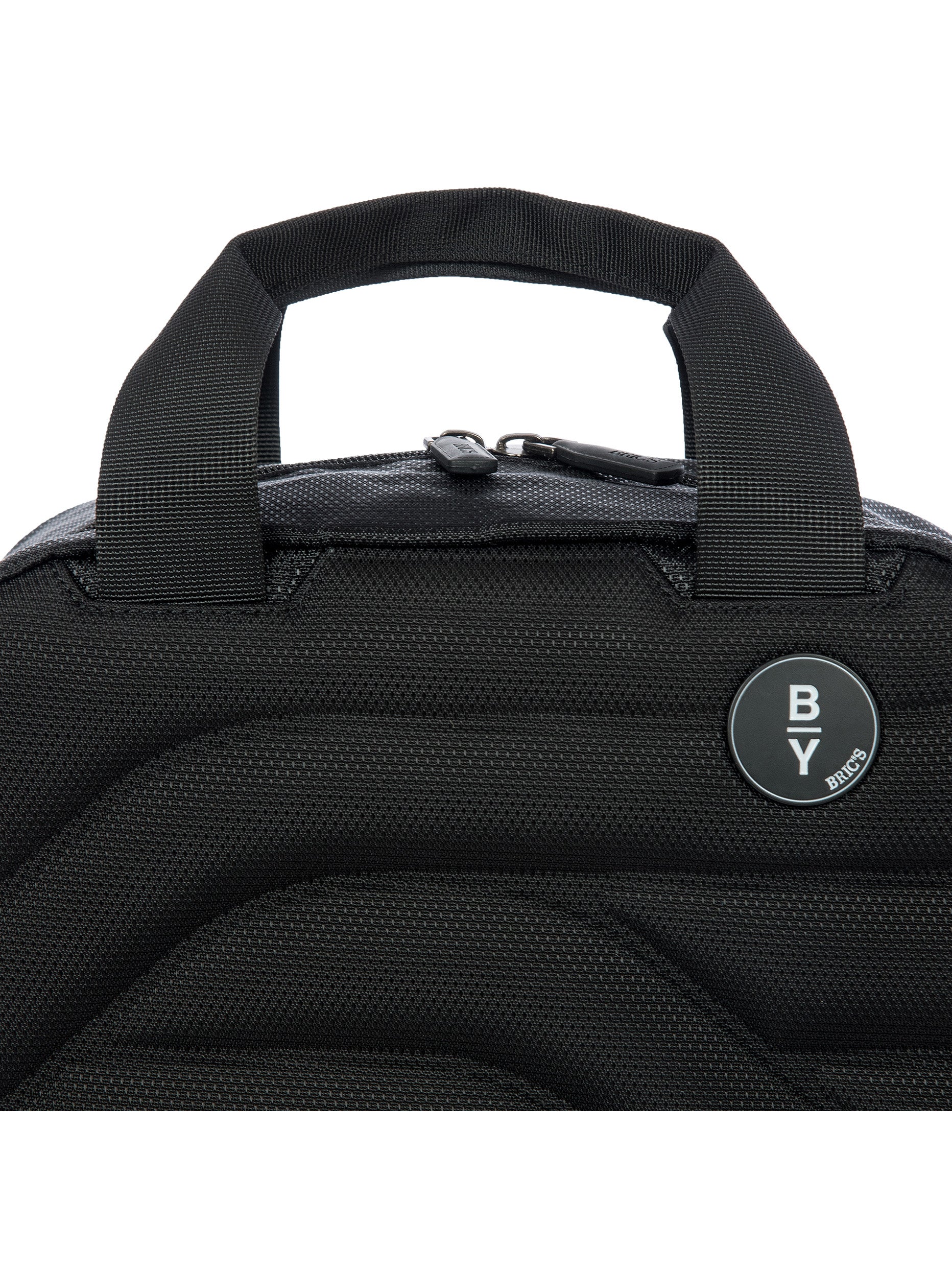 The backpack from the B|Y collection made of water resistant recycled fabric contains everything you need for your workday or a short trip out of town, combining practicality and style. Particularly lightweight and durable, on the outside it features a graphic design reminiscent of a subway map. Equipped with a spacious main compartment and padded laptop and tablet pockets with security closure. Externally it has convenient side storage pockets, and the hidden zippered pocket on the back can be used to hold valuables. There is also a strap on the back for attachment to the trolley handle. Handles on the top make it easy to carry by hand.