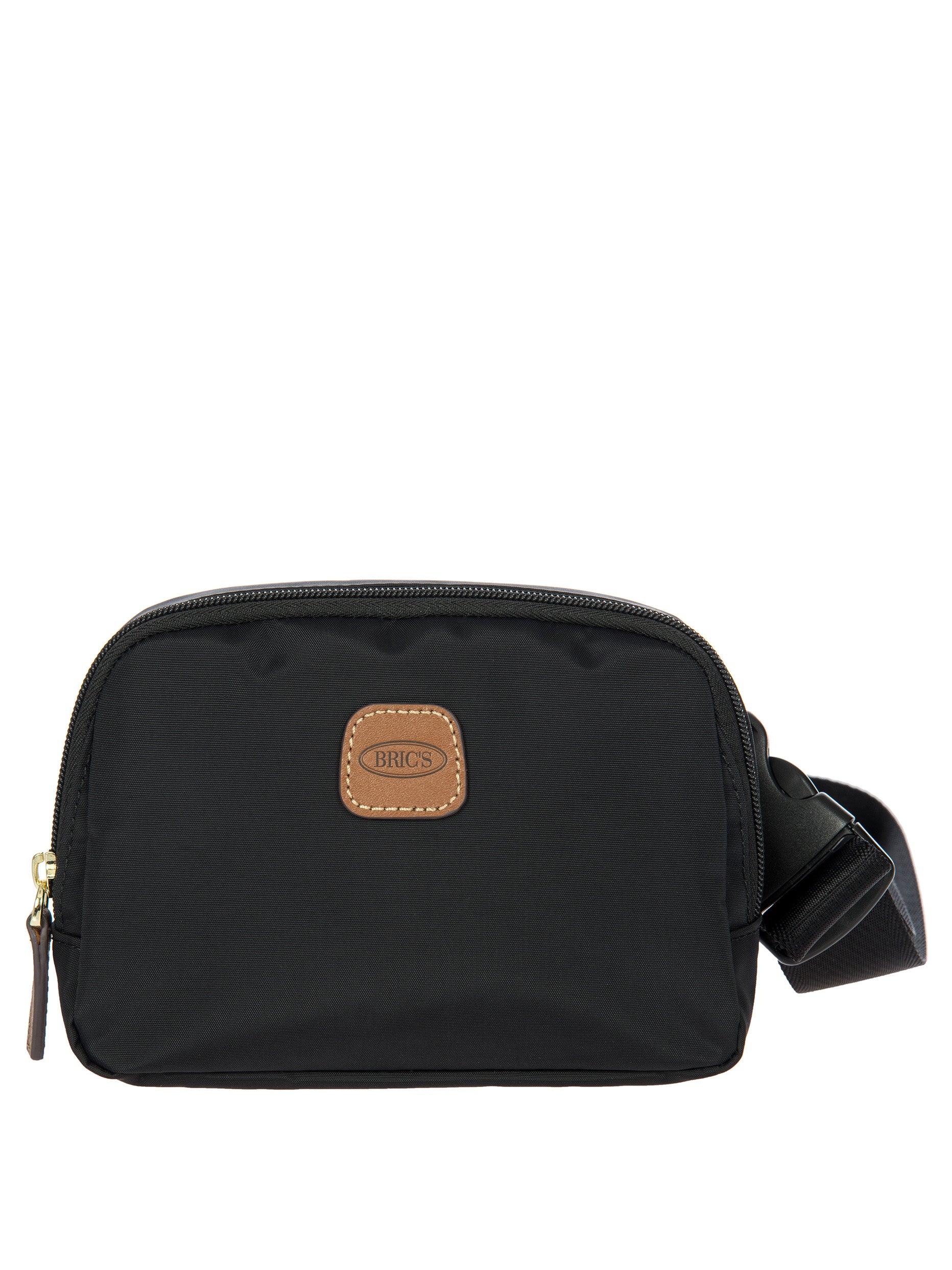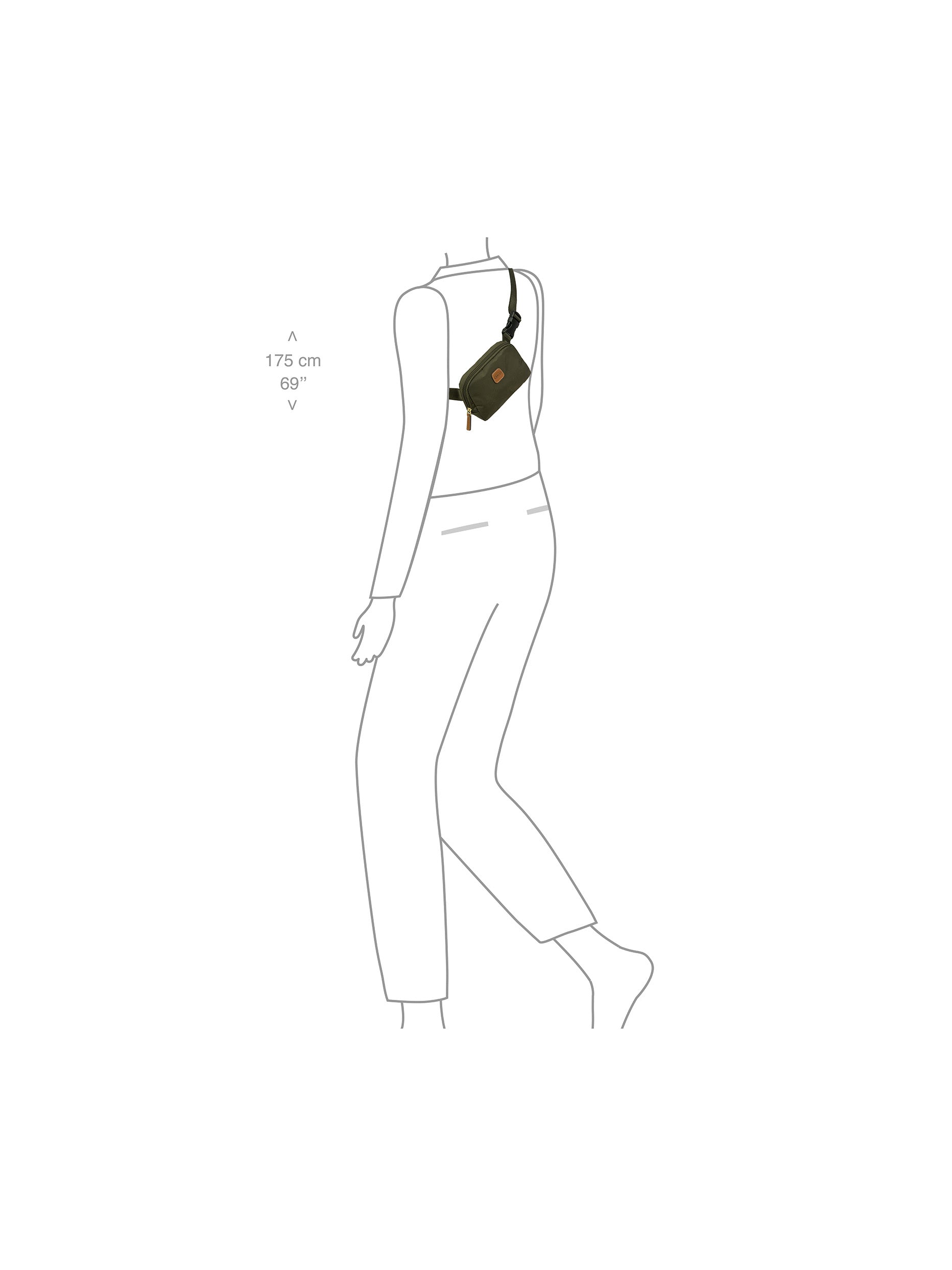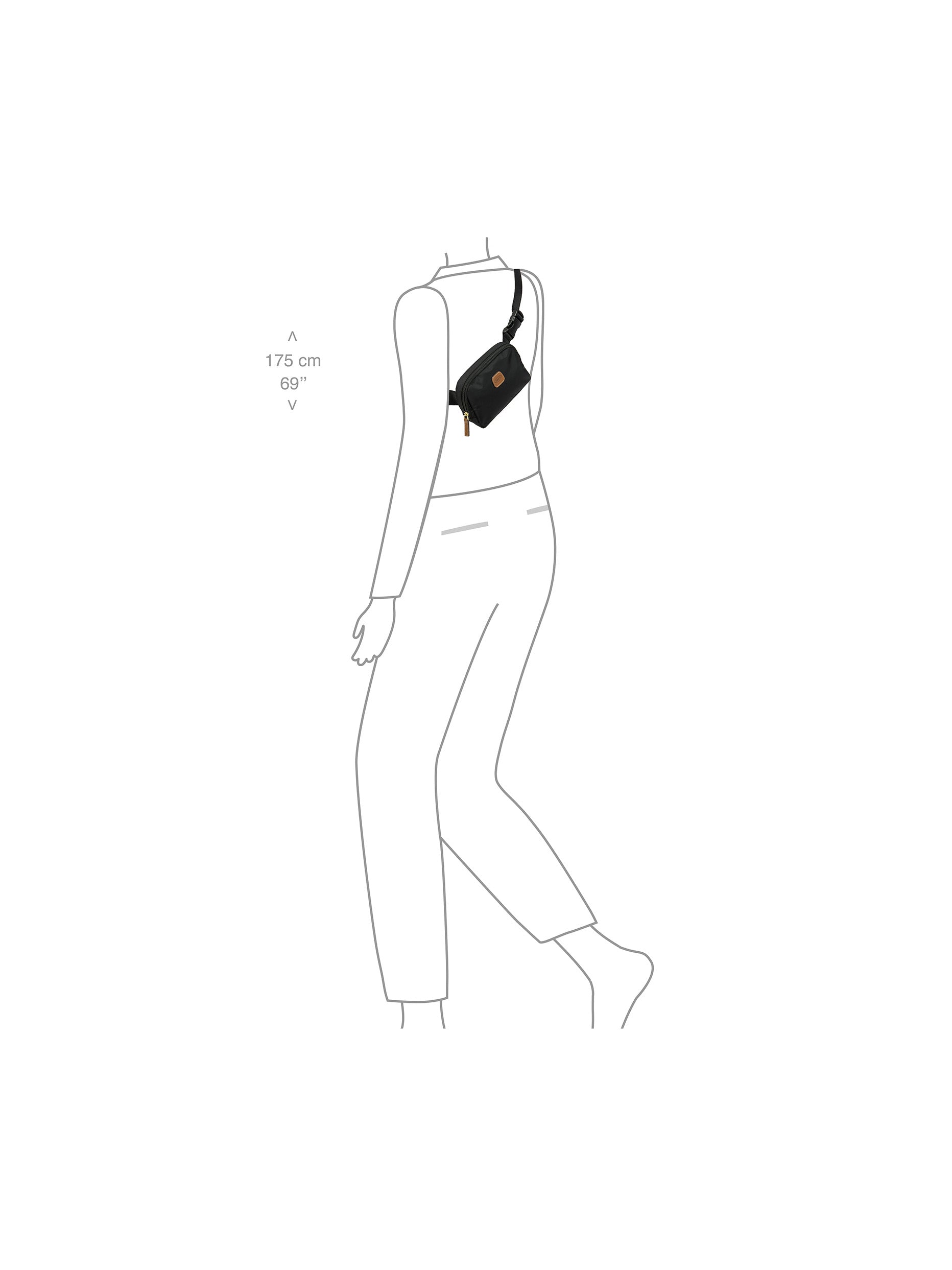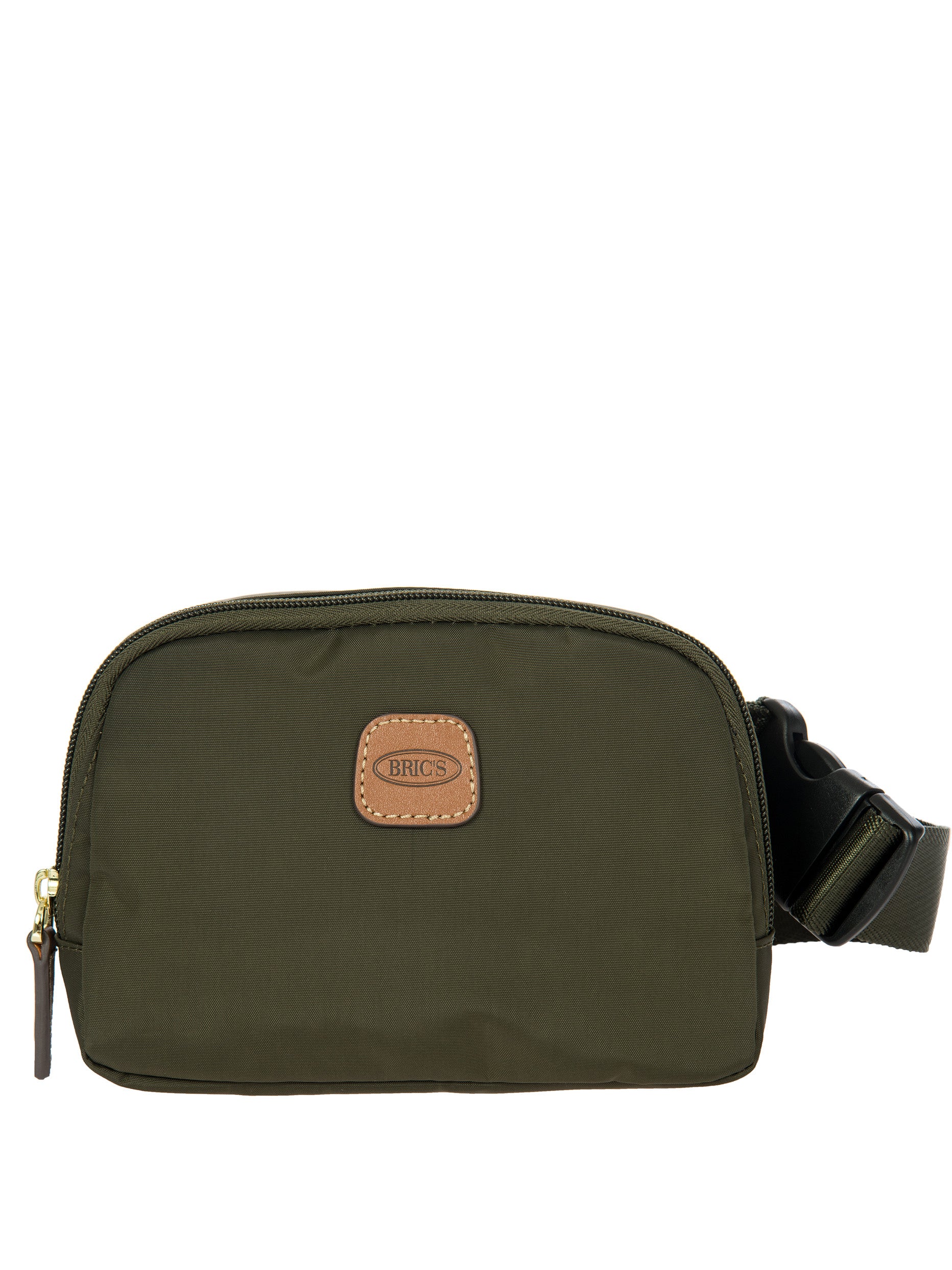 The X-Collection waist bag is made of soft recycled fabric that is water-resistant and robust. The belt buckle is positioned close to the bag for enhanced security and handling. Thanks to the length-adjustable belt, it can be worn over the shoulder or around the waist. After you set the perfect fastening length, tuck away the excess belt in the elastic band. The main compartment is roomy and closed by a zip, while the small zipped pocket on the back is ideal for smaller items. Embellished with genuine leather details, a hallmark of Bric's.