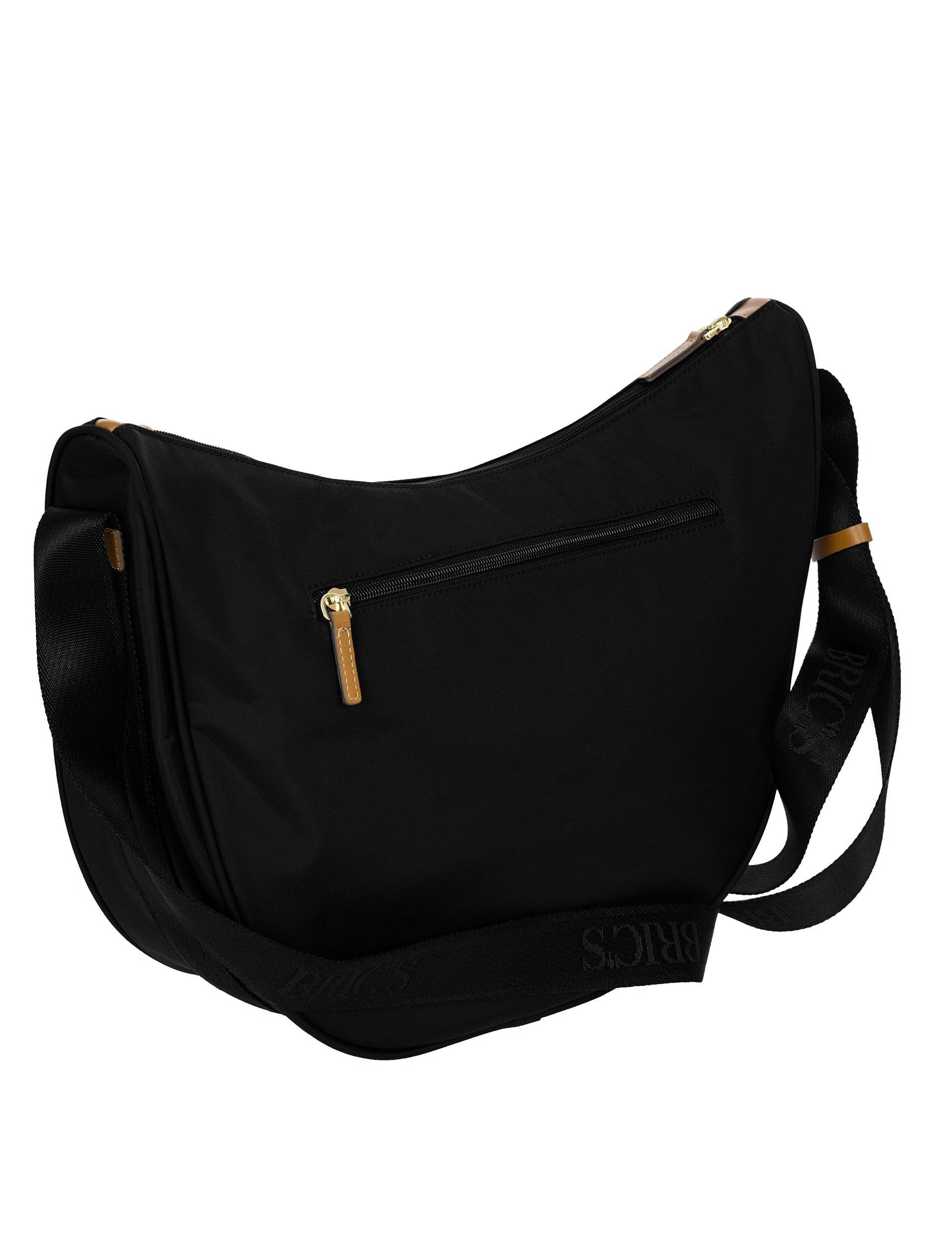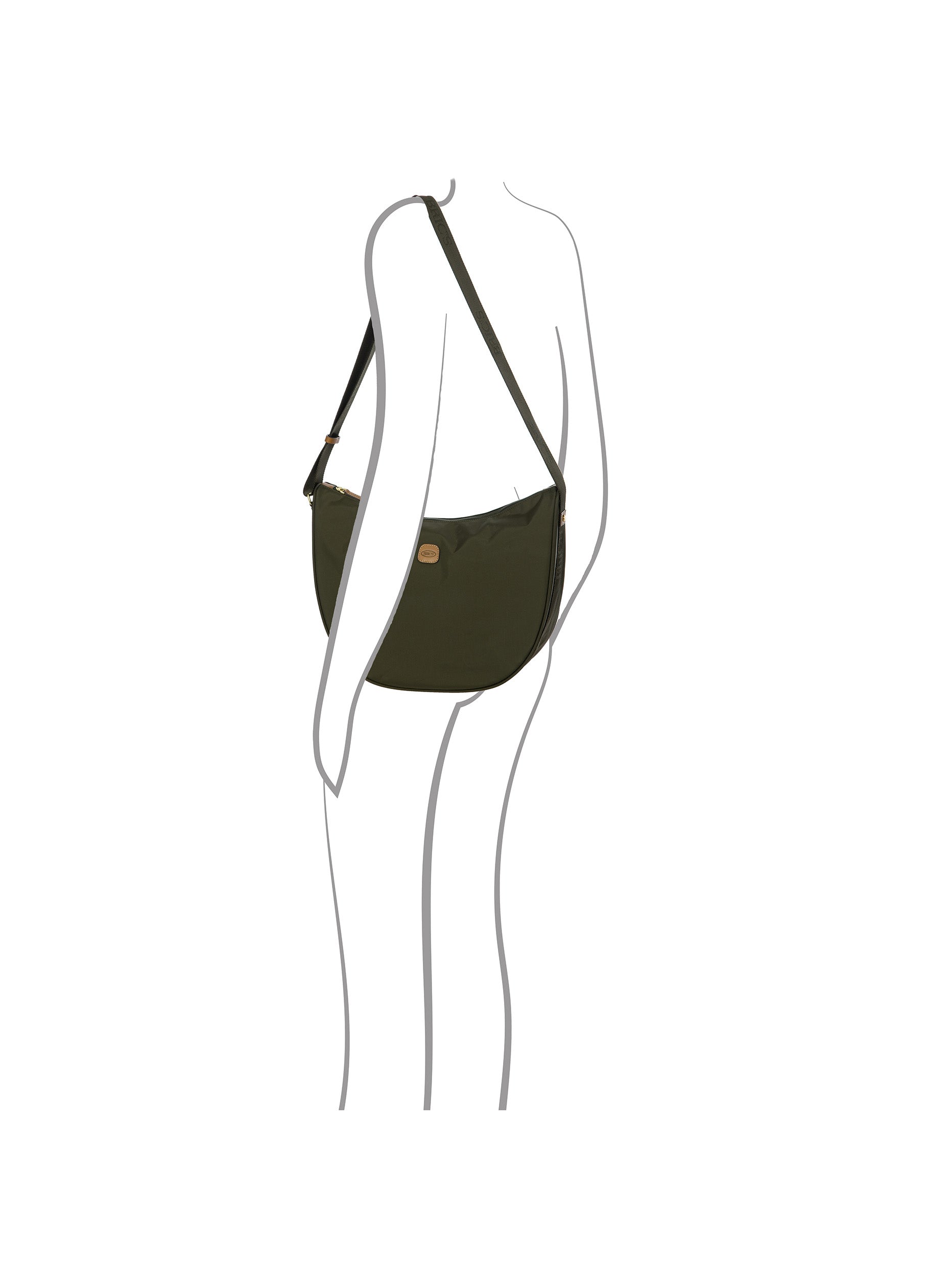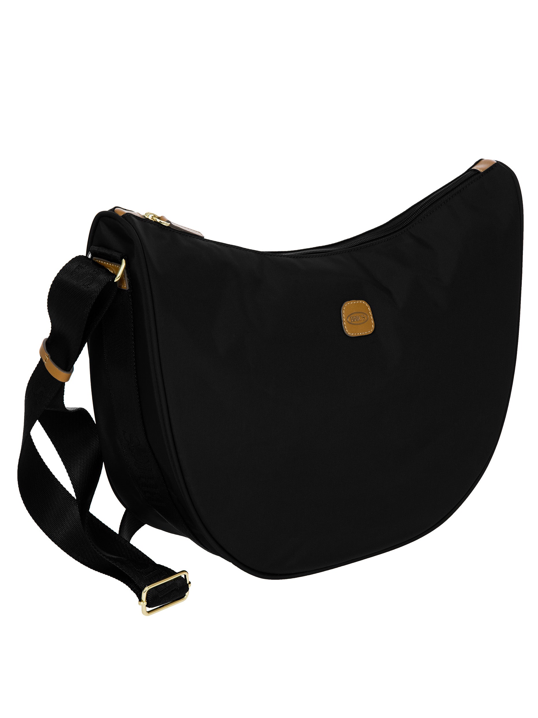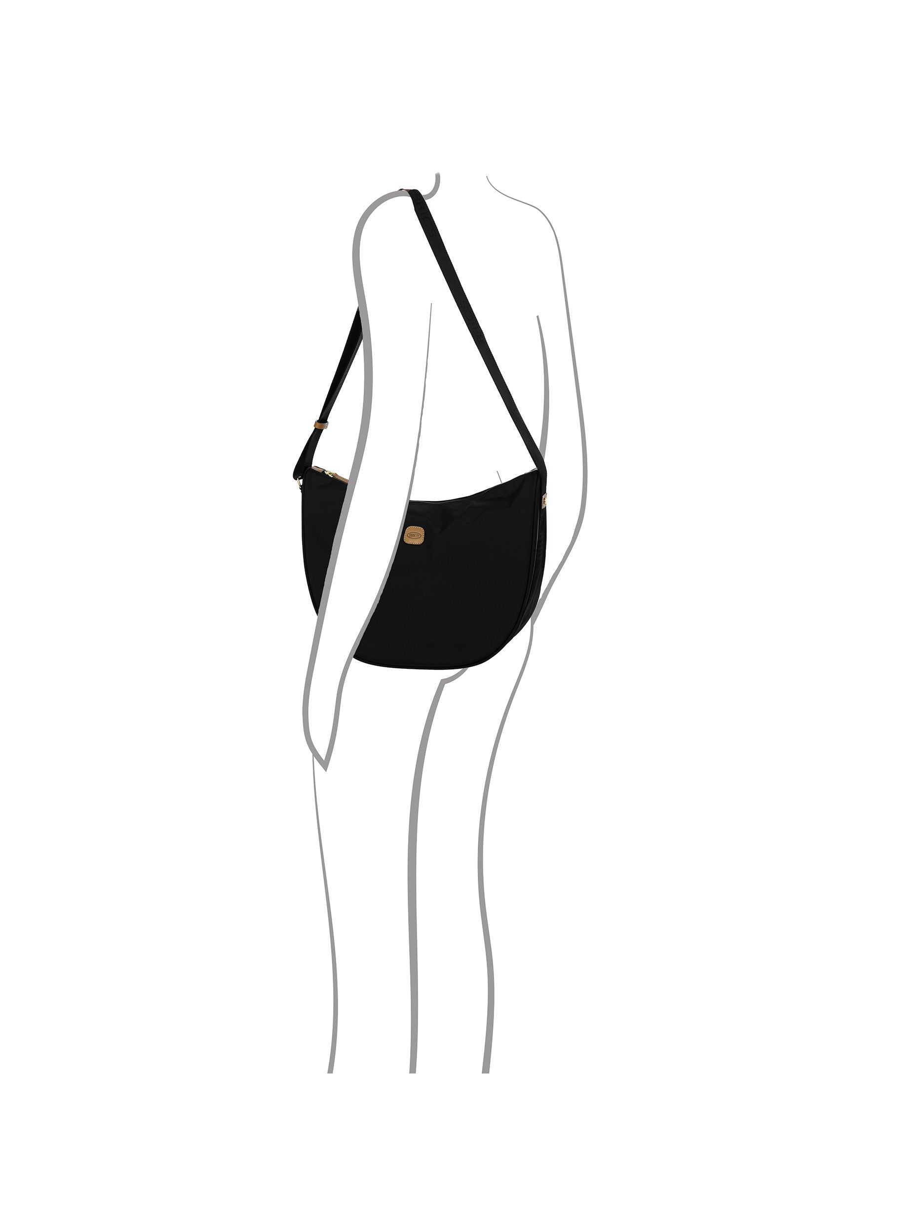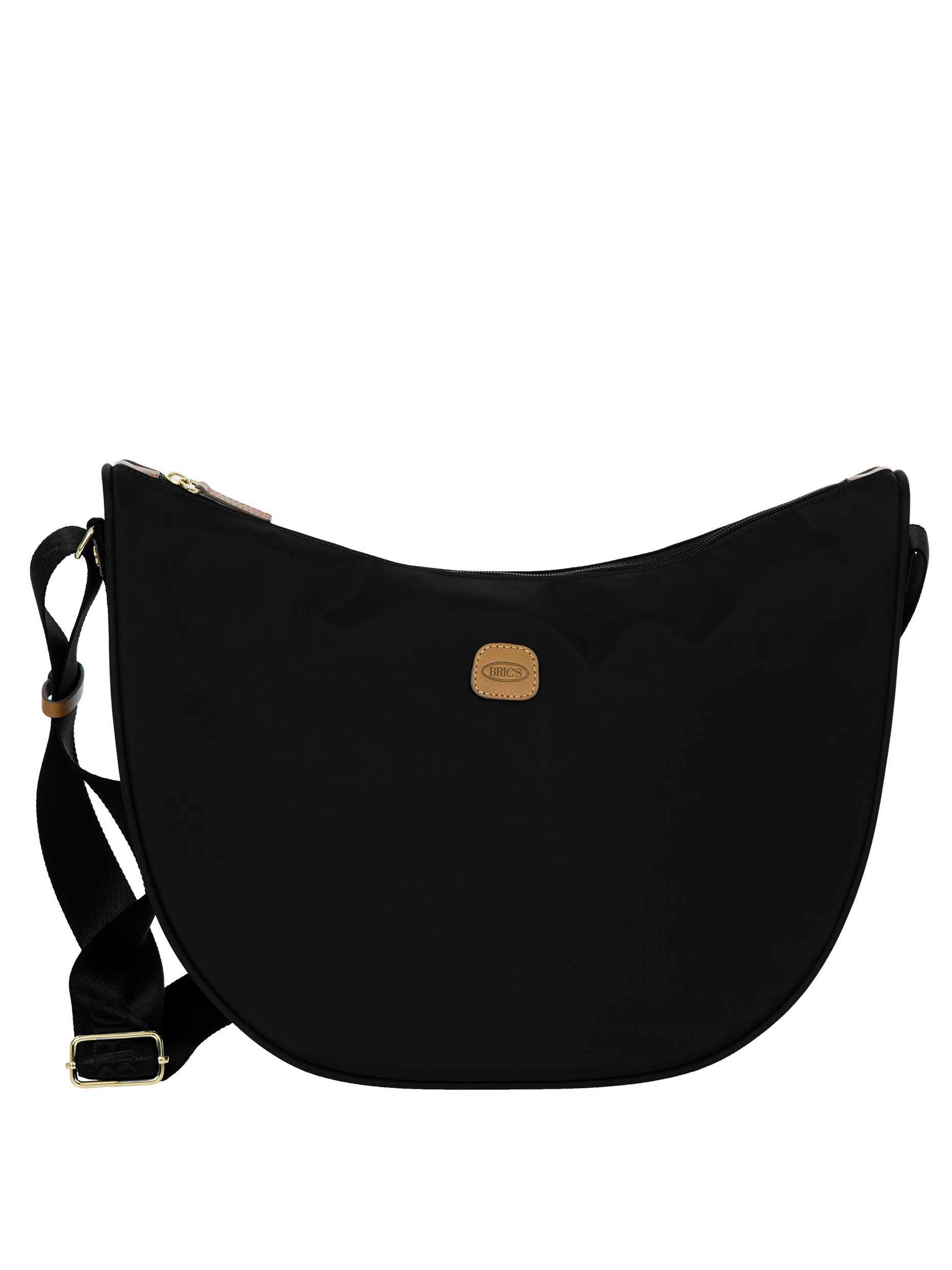 The large Halfmoon bag from the X-Collection is made of soft, lightweight and durable recycled fabric, water-resistant. Thanks to the adjustable shoulder strap, it can be comfortably carried either on the shoulder or across the body. The crescent shape is very spacious, making it ideal for everyday use. Featuring an exterior zipped pocket on the back and an internal zipped pocket, it is ideal for organising your belongings. The bag is finished with genuine leather details and fabric lining. Embellished with the iconic Bric's logo in leather on the outside.