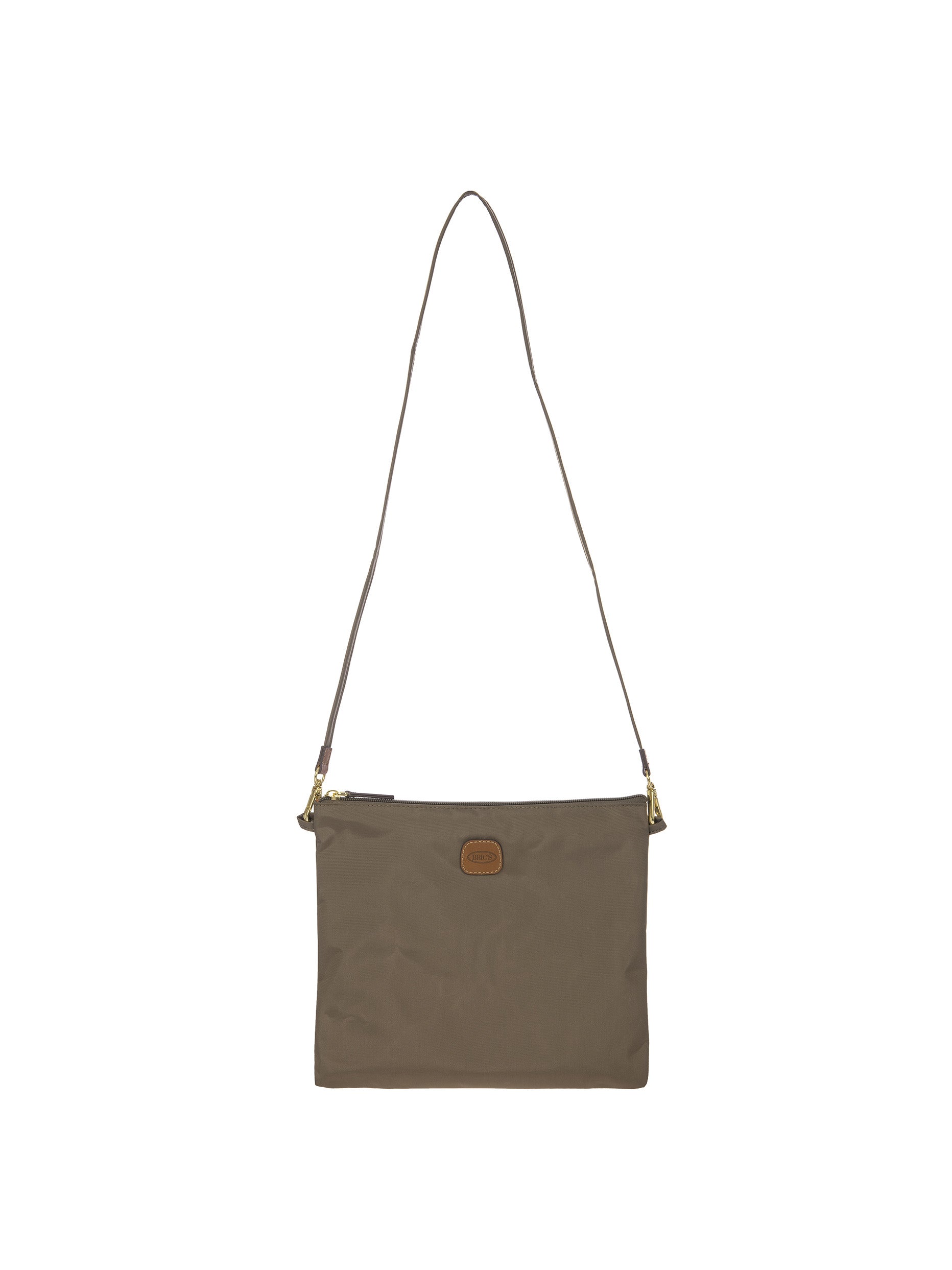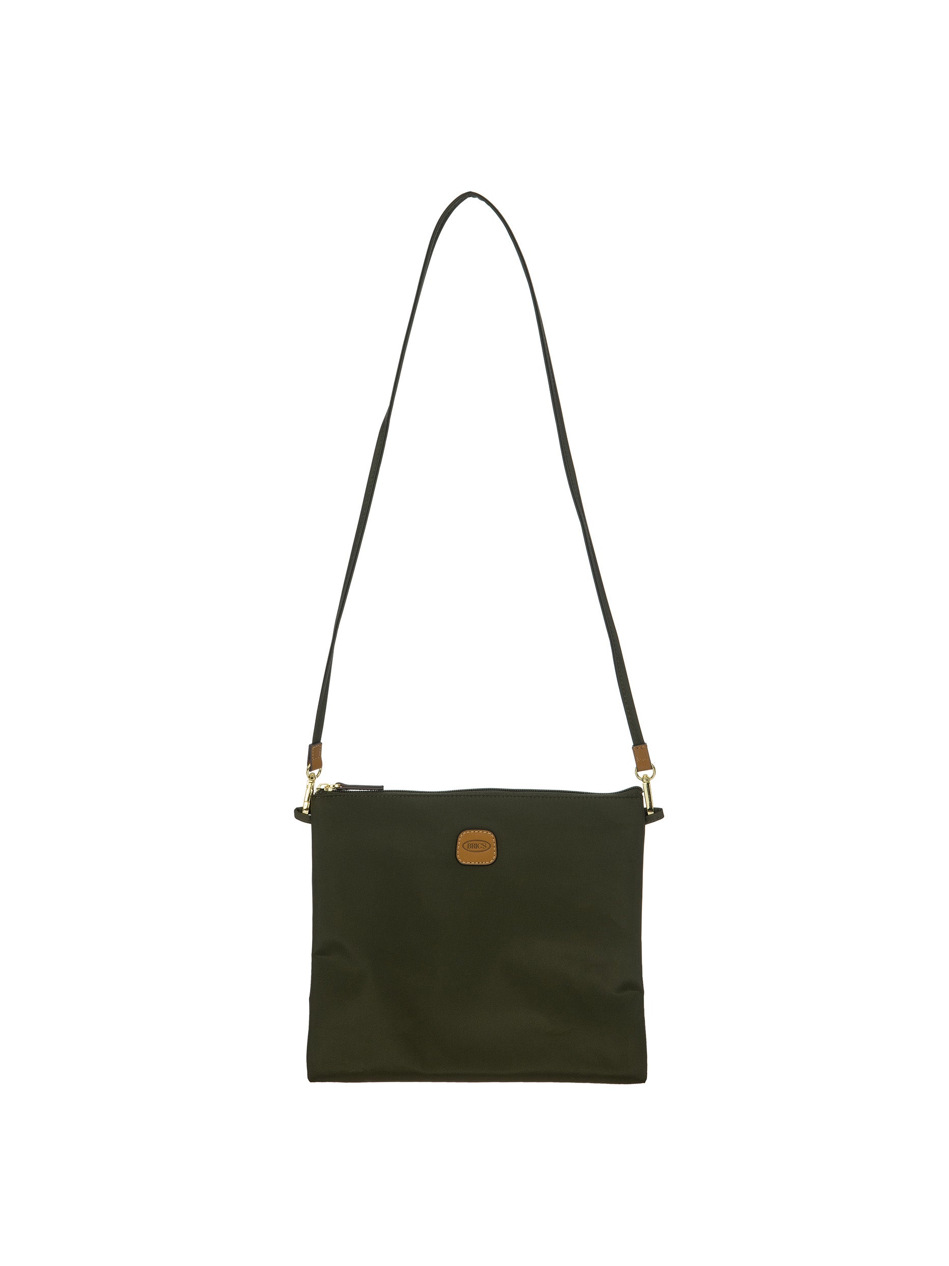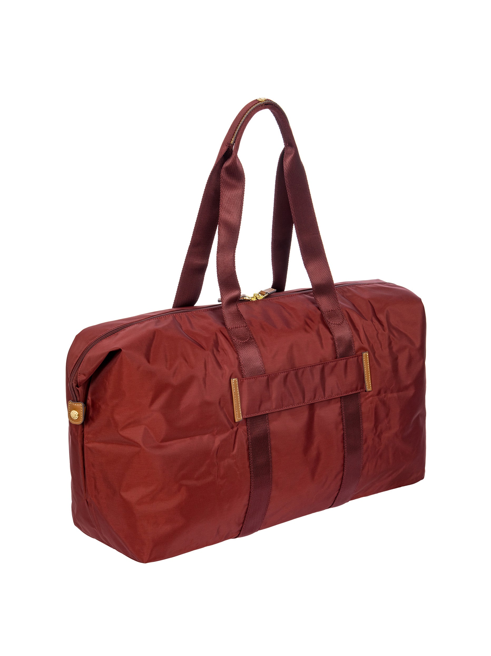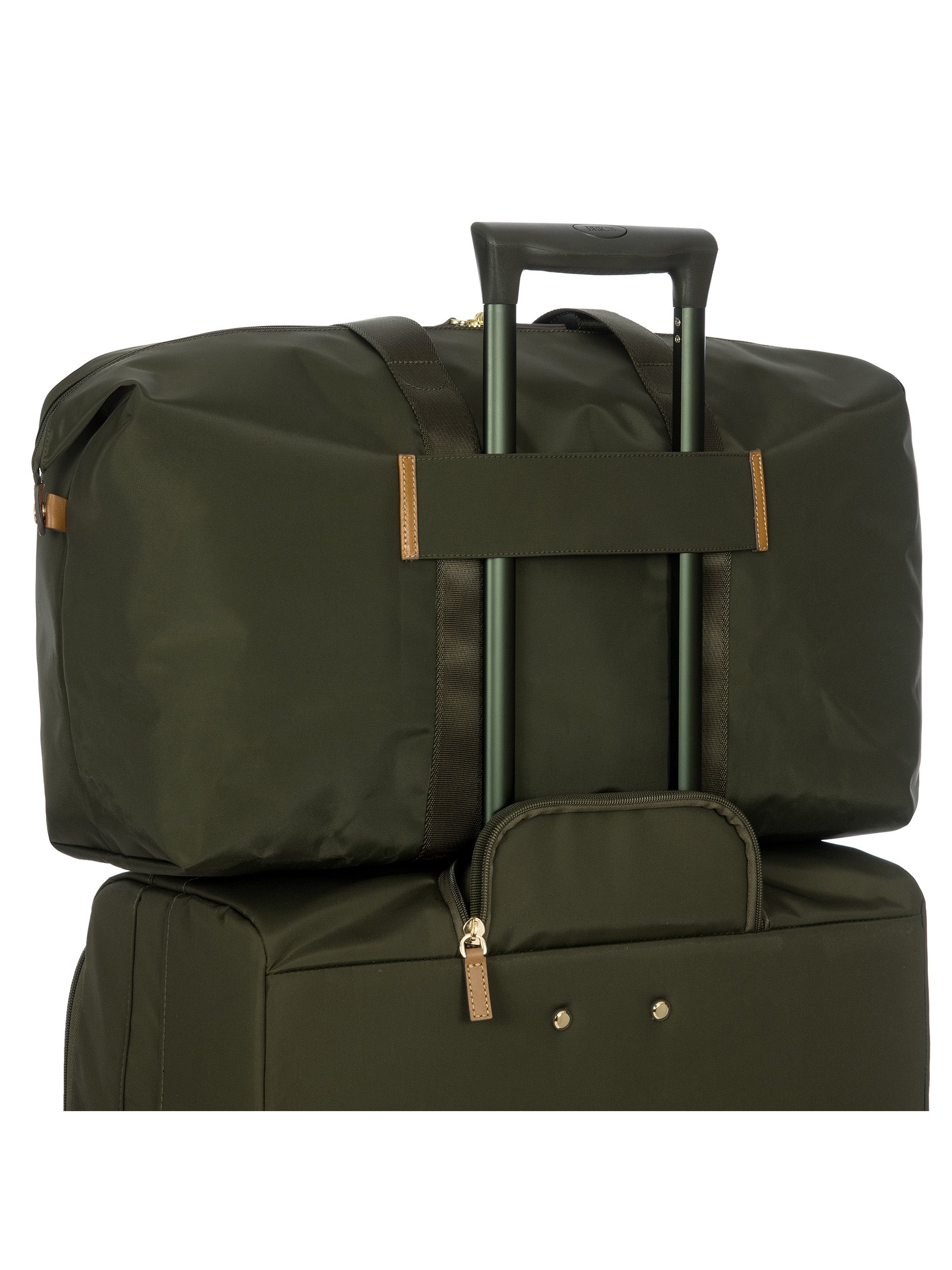 The large 2-in-1 foldable holdall from the X-Collection is made of soft, lightweight and durable recycled fabric, water-resistant. The detachable internal zipped pocket can be used as practical make-up bag or mini bag thanks to the included shoulder strap; the entire holdall can also be folded up and stored inside. This holdall can be carried by hand or on the shoulder using the handles. There is a strap on the back to attach it to a suitcase handle. Its spacious design makes it particularly practical. The main compartment is equipped with a zip with two sliders. Embellished with genuine leather details, one of Bric's signature design elements.