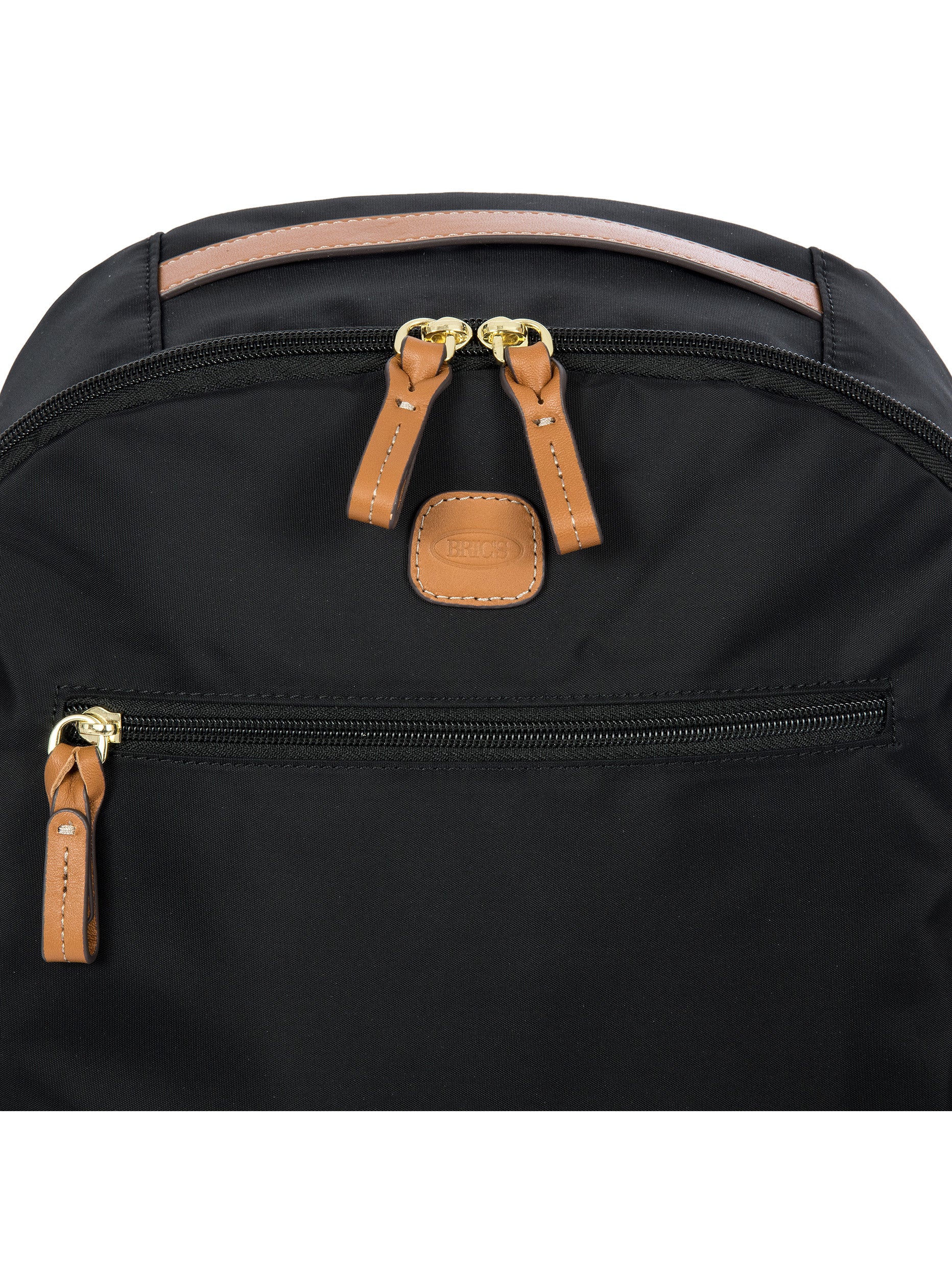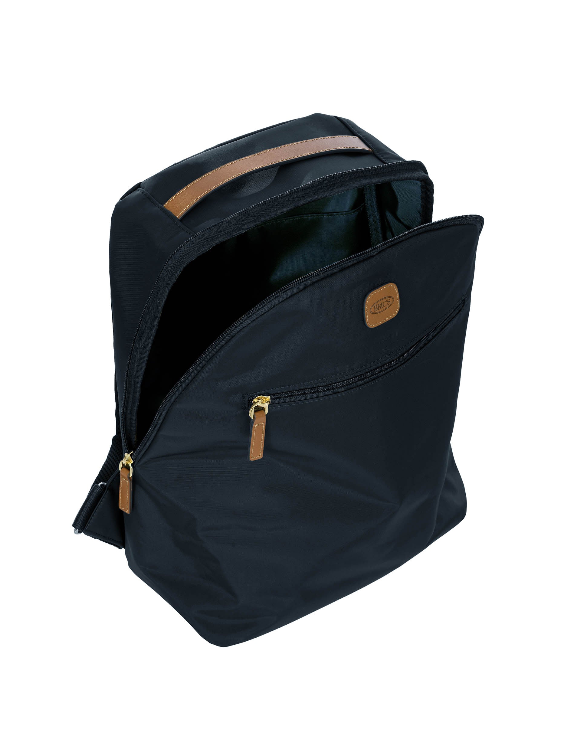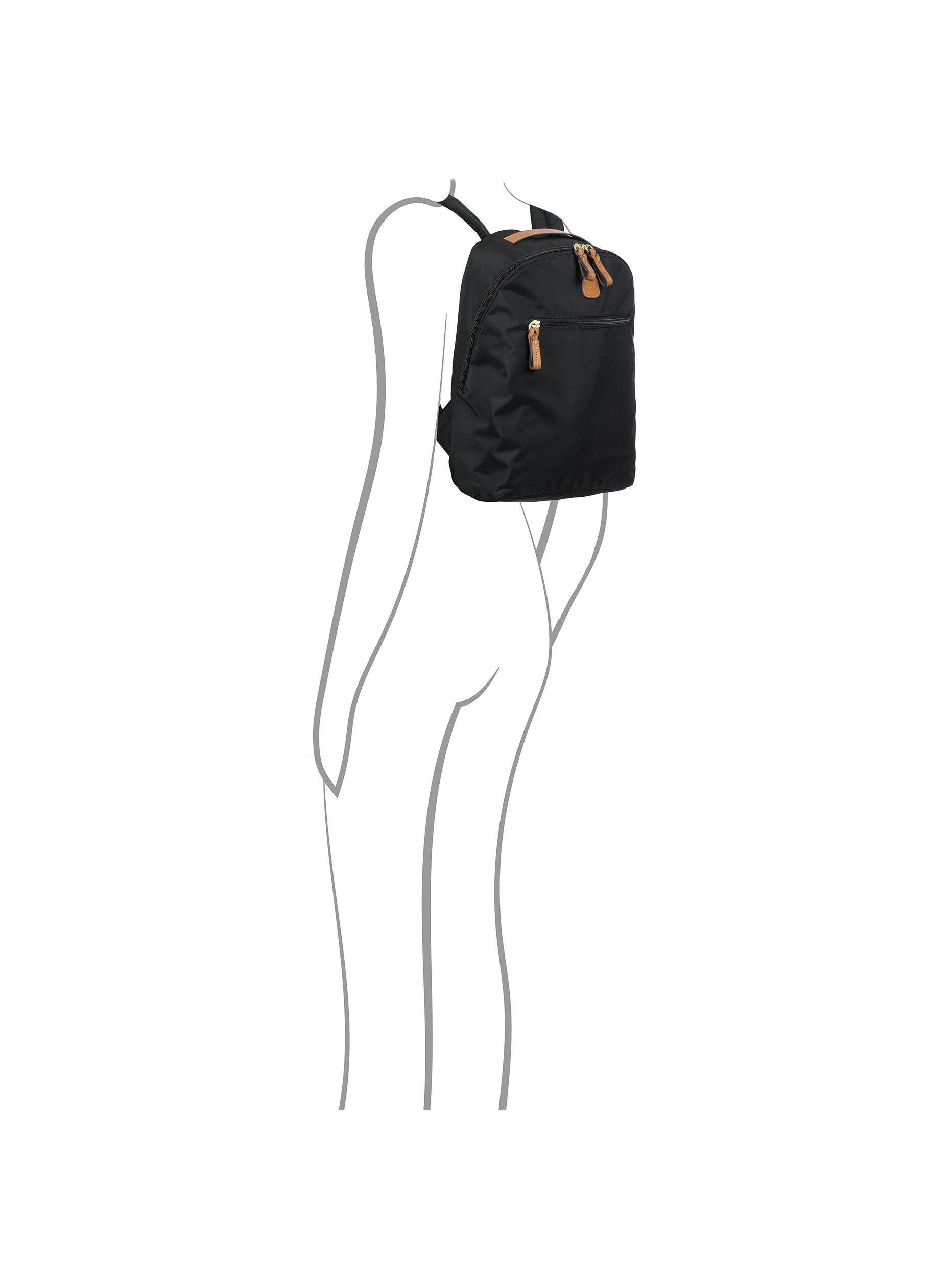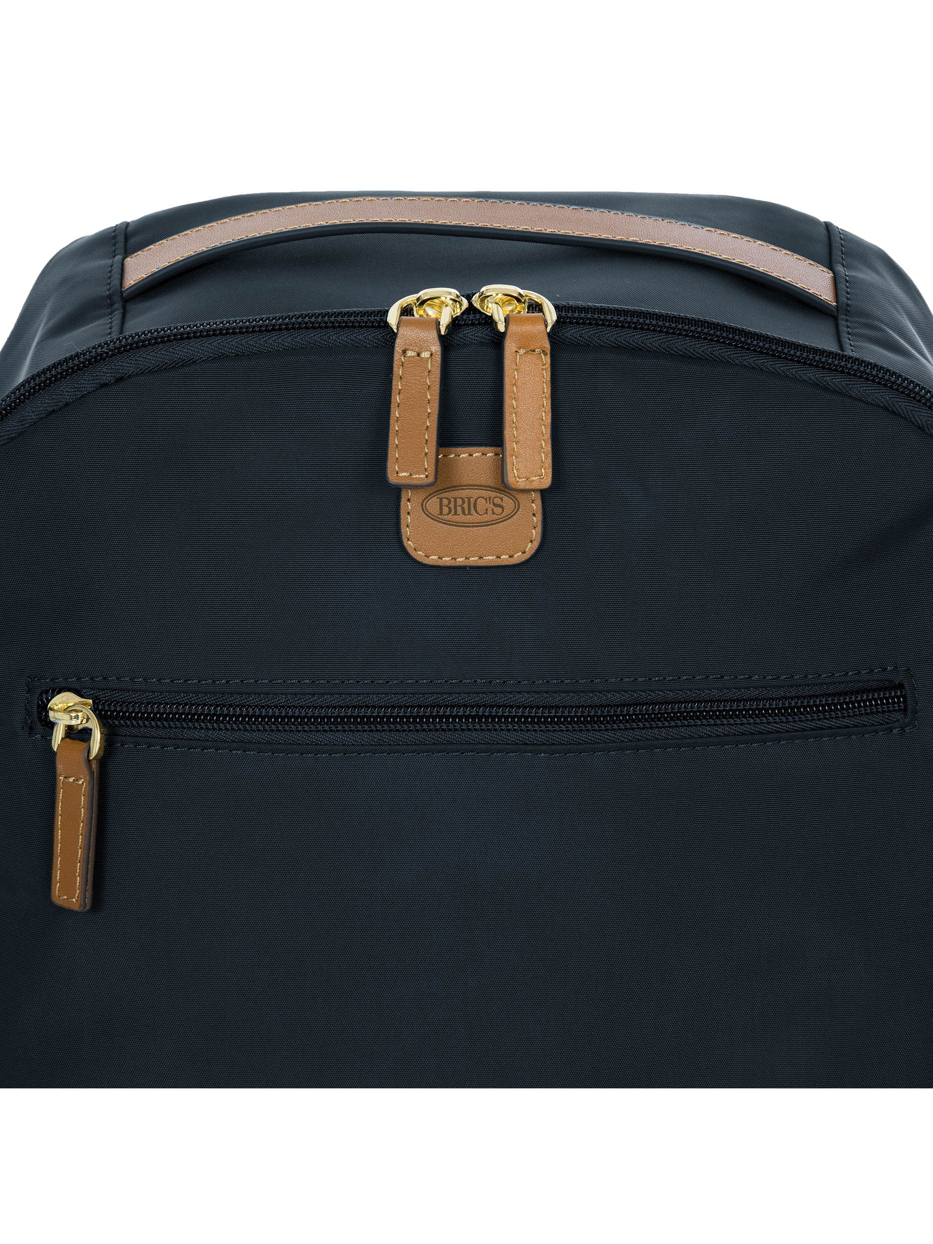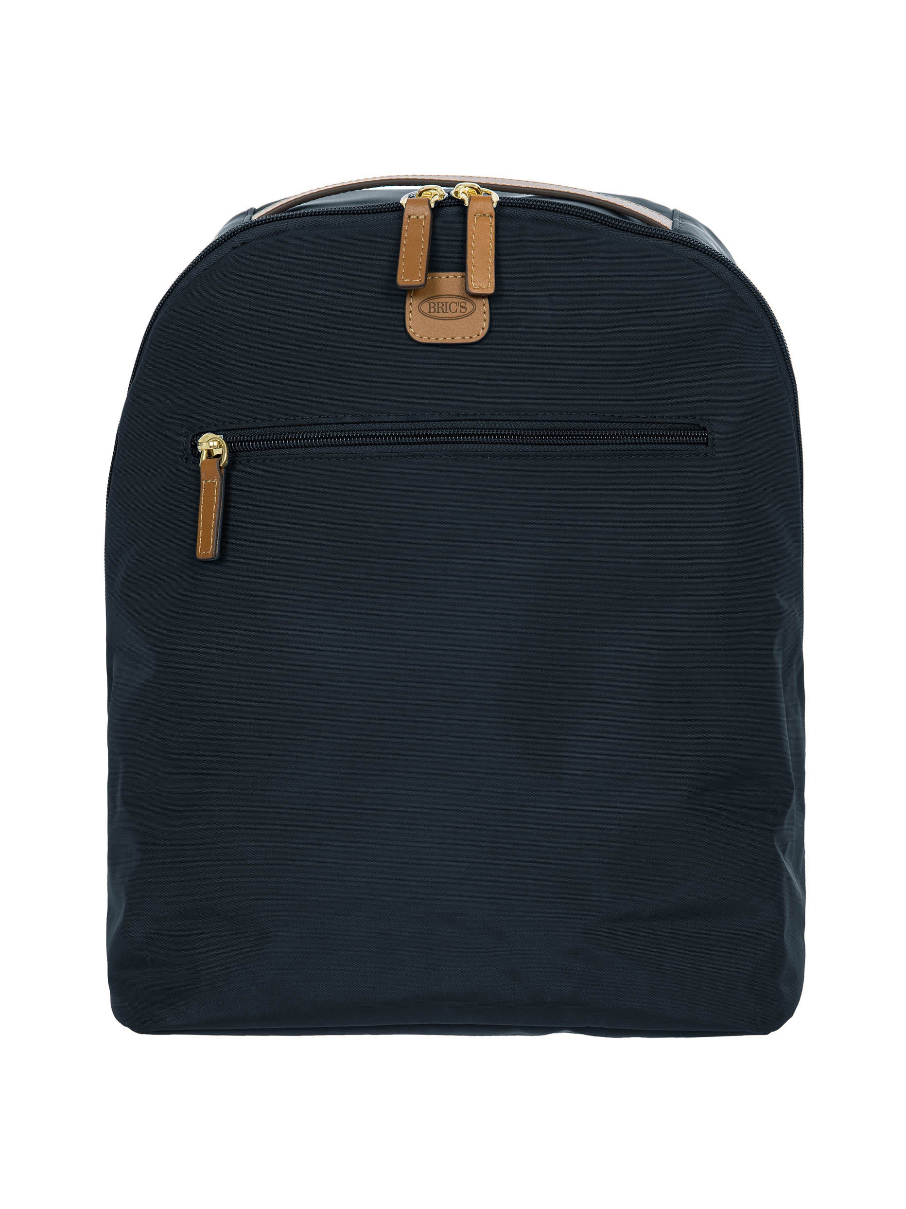 The medium city backpack from the X-Collection is made of soft, lightweight and durable recycled fabric, water-resistant. The adjustable shoulder straps ensure a comfortable fit, while the small leather handle on the top makes it easy to carry by hand. Spacious and compact, ideal for everyday outings, it has several internal pockets, one of which is zipped. The outside features zipped pockets on the front and back, ideal for holding your most precious belongings. The main compartment is equipped with a zip with two sliders. There is a strap on the back to attach it to a suitcase handle. The bag is finished with genuine leather details, one of Bric's signature design elements, and fabric lining.