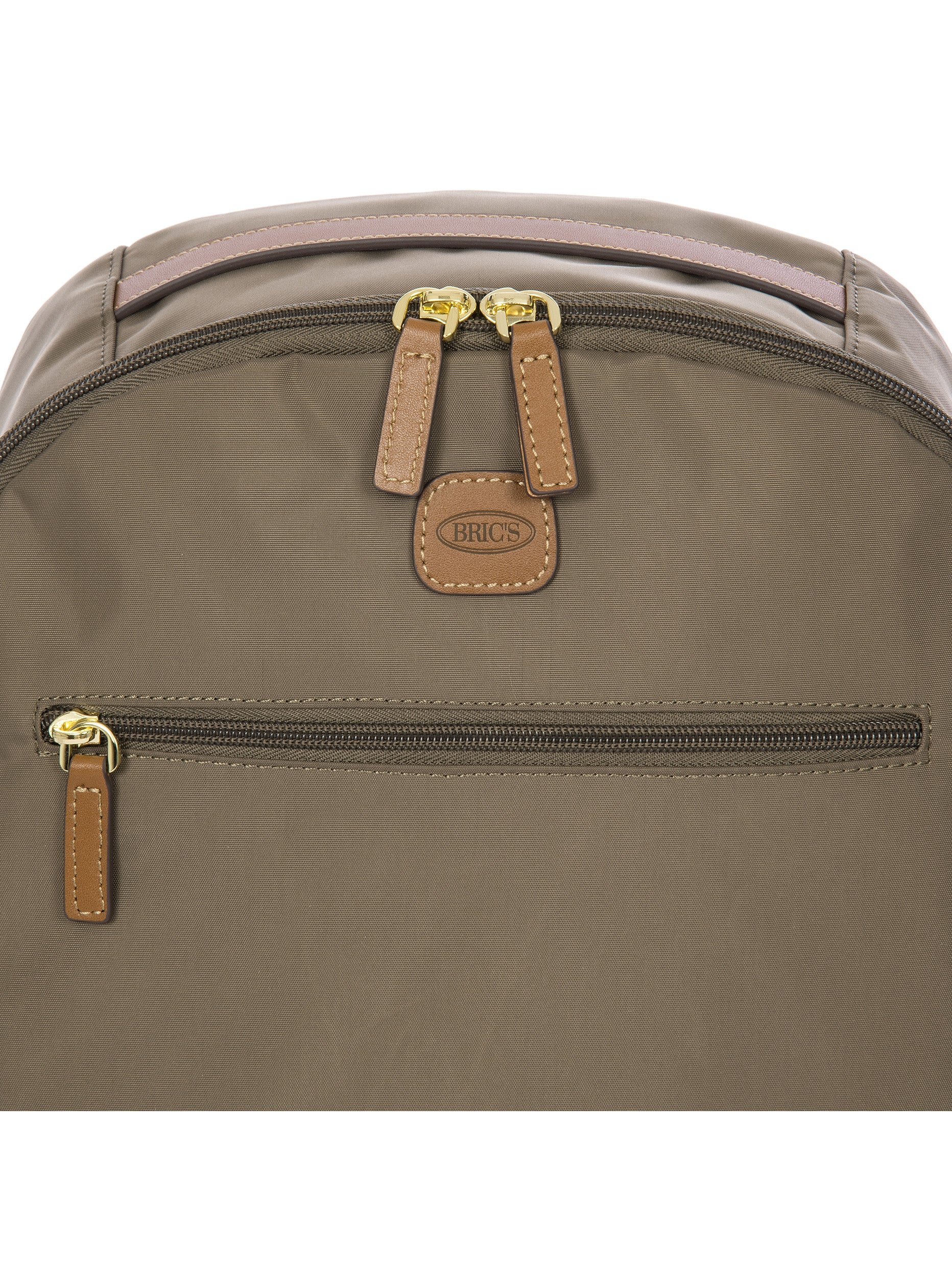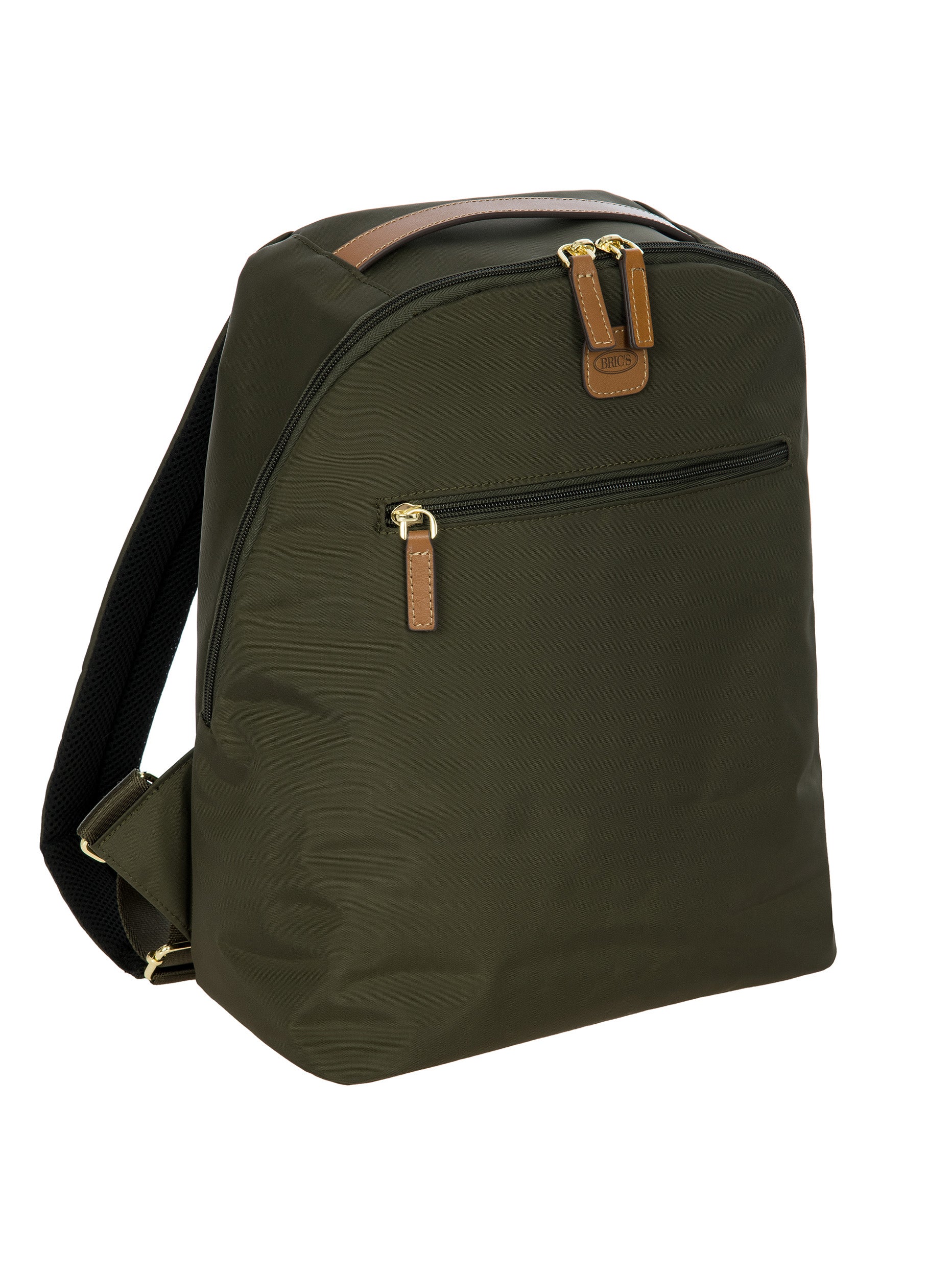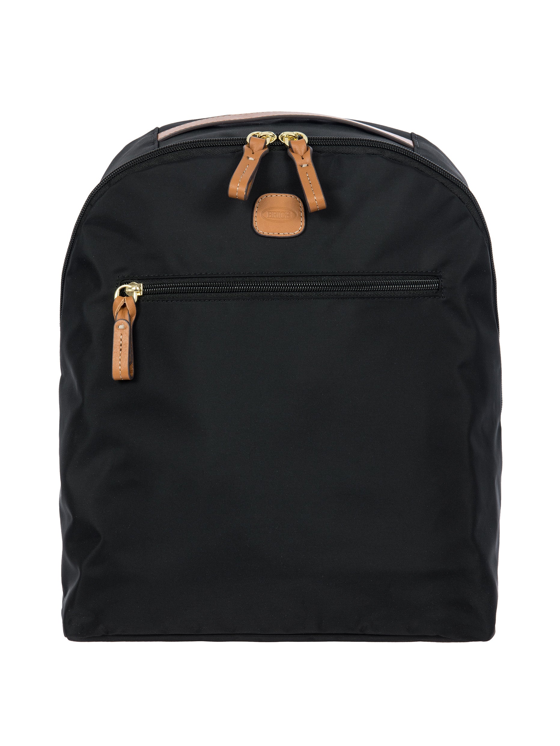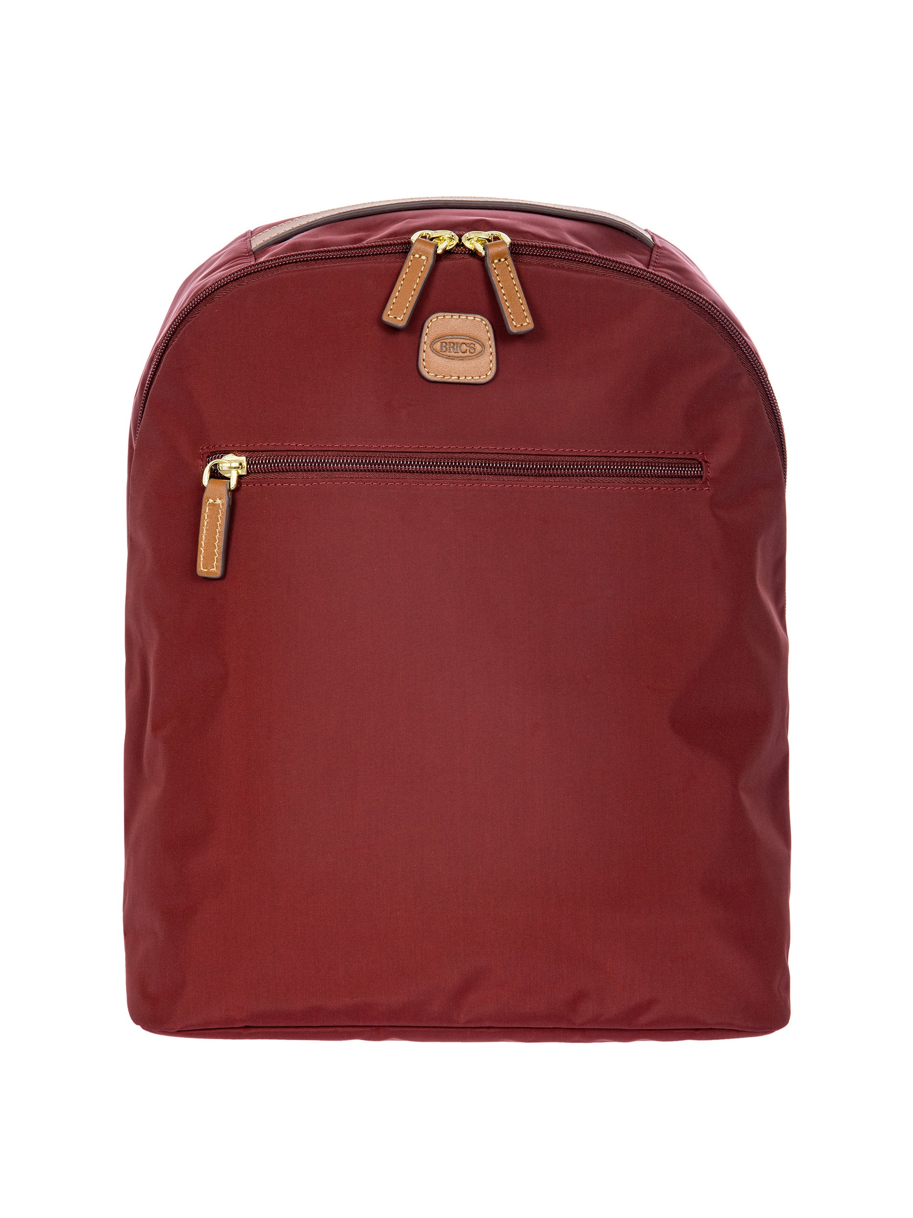 The medium city backpack from the X-Collection is made of soft, lightweight and durable recycled fabric, water-resistant. The adjustable shoulder straps ensure a comfortable fit, while the small leather handle on the top makes it easy to carry by hand. Spacious and compact, ideal for everyday outings, it has several internal pockets, one of which is zipped. The outside features zipped pockets on the front and back, ideal for holding your most precious belongings. The main compartment is equipped with a zip with two sliders. There is a strap on the back to attach it to a suitcase handle. The bag is finished with genuine leather details, one of Bric's signature design elements, and fabric lining.