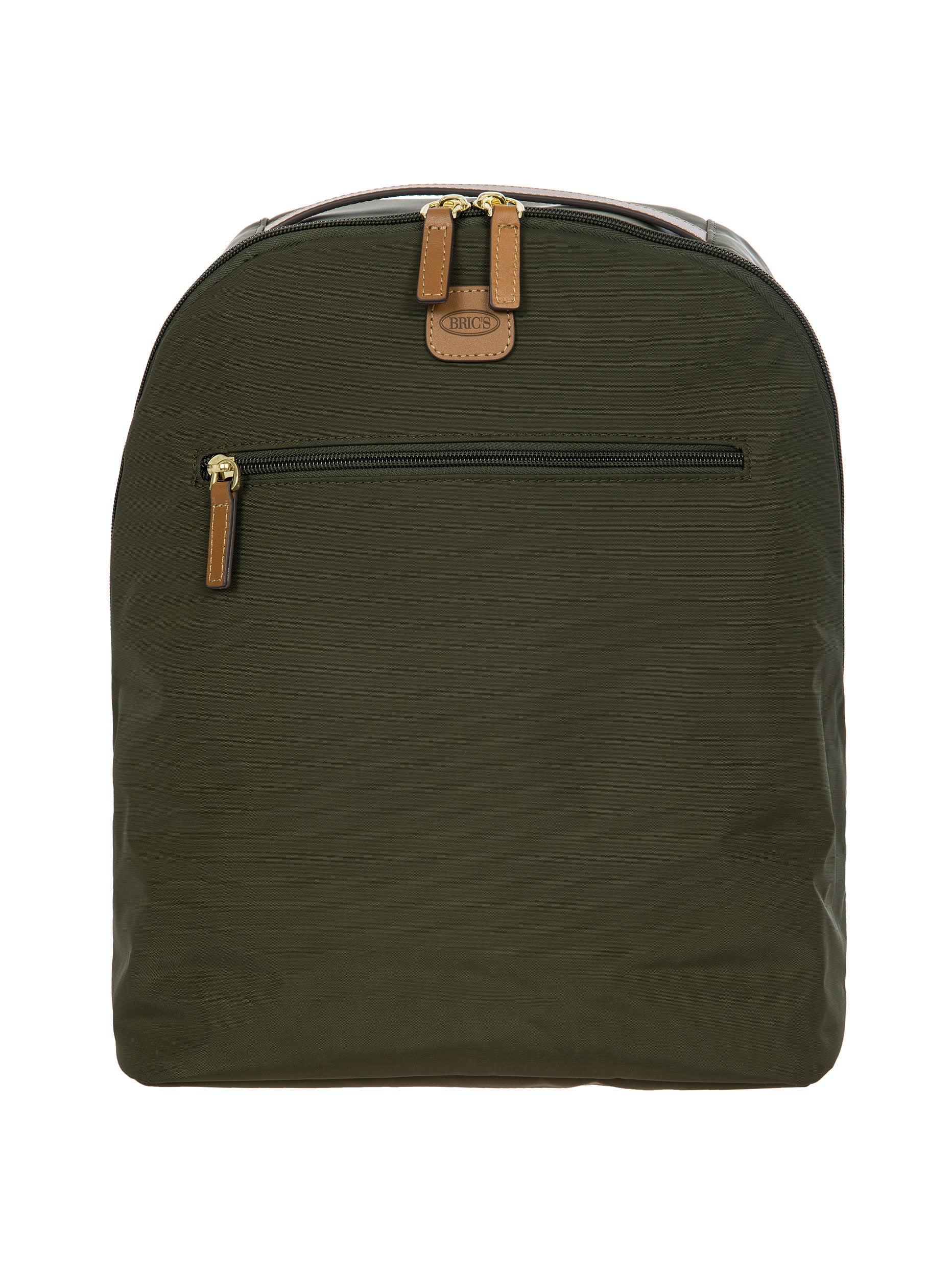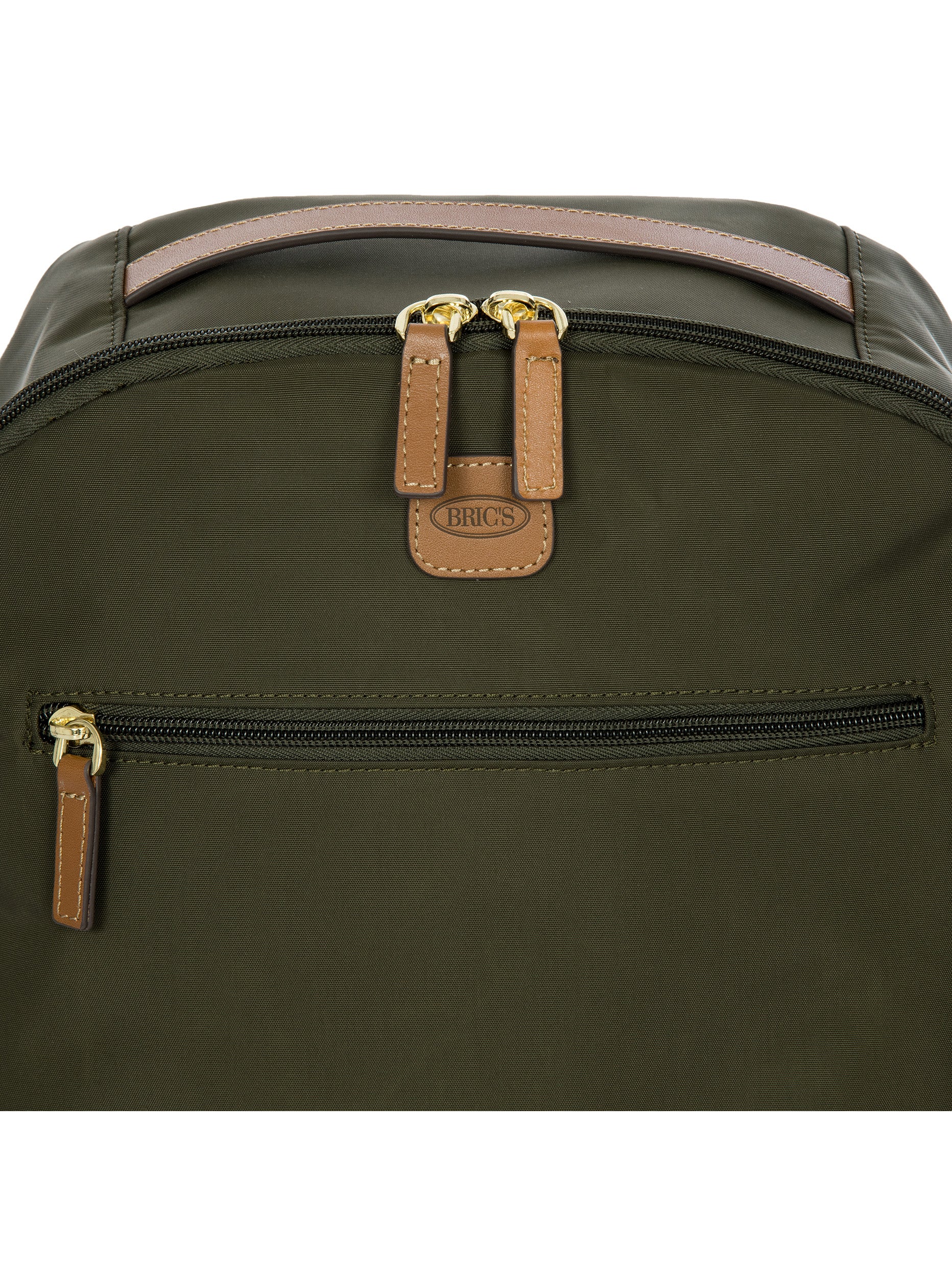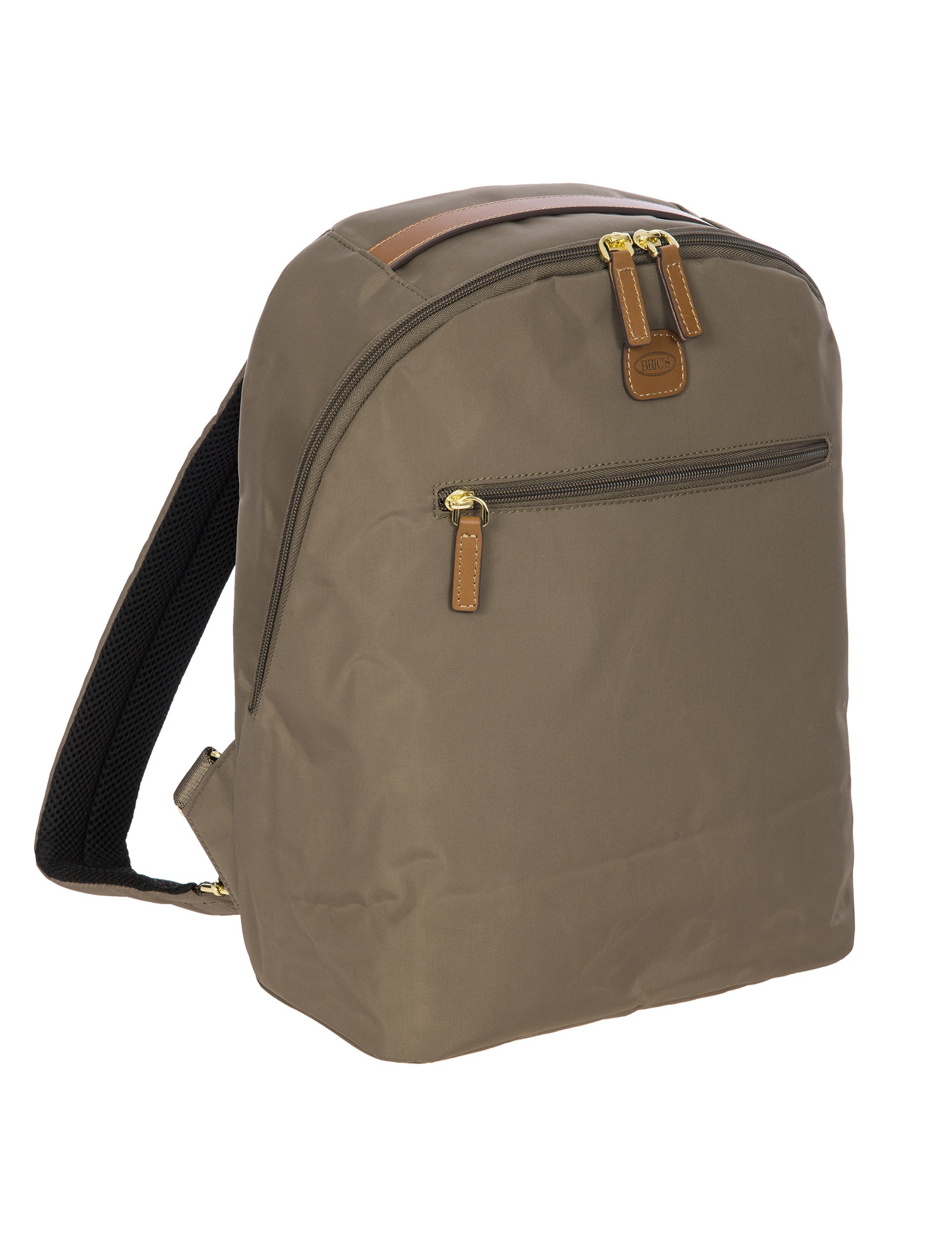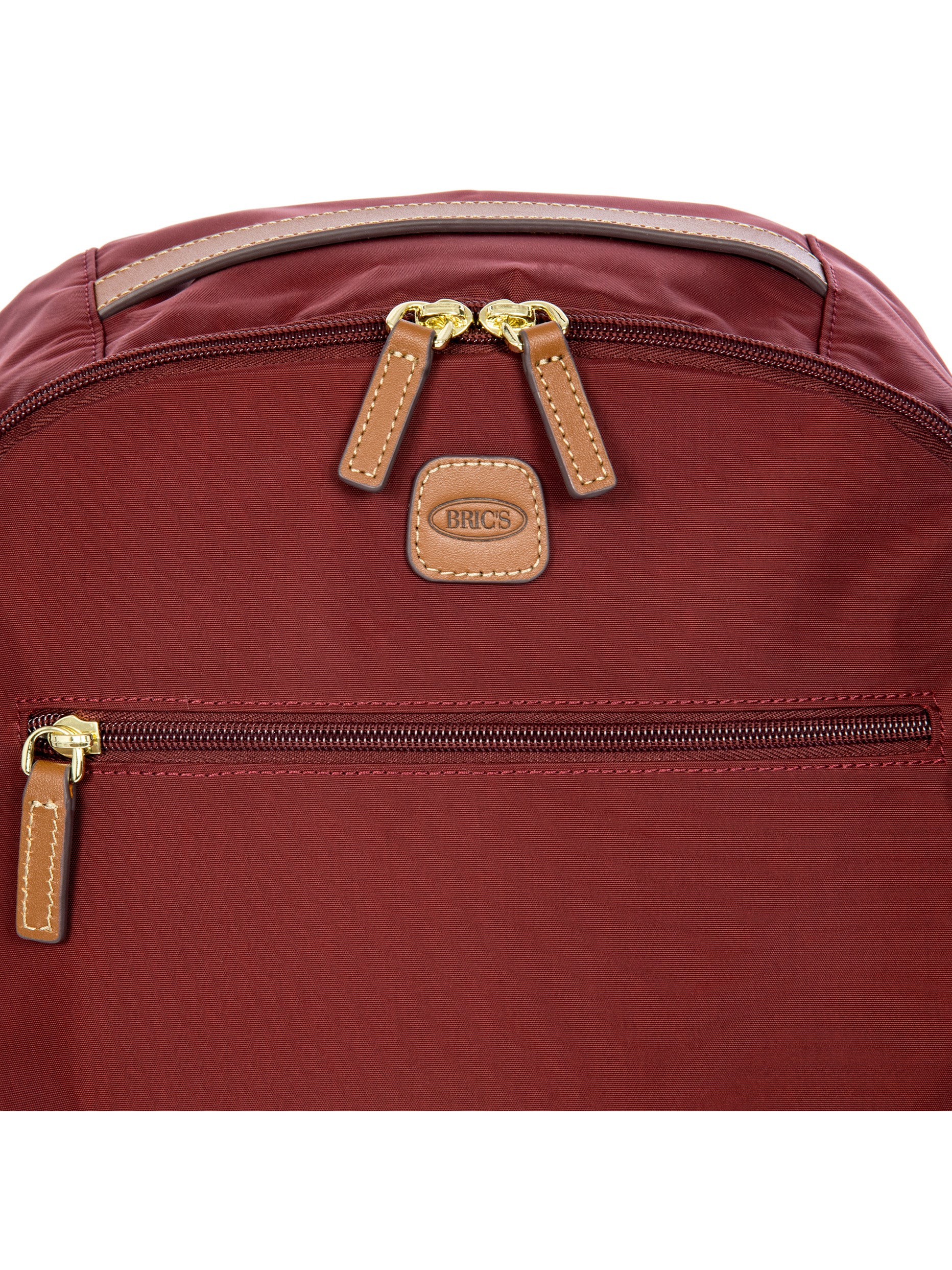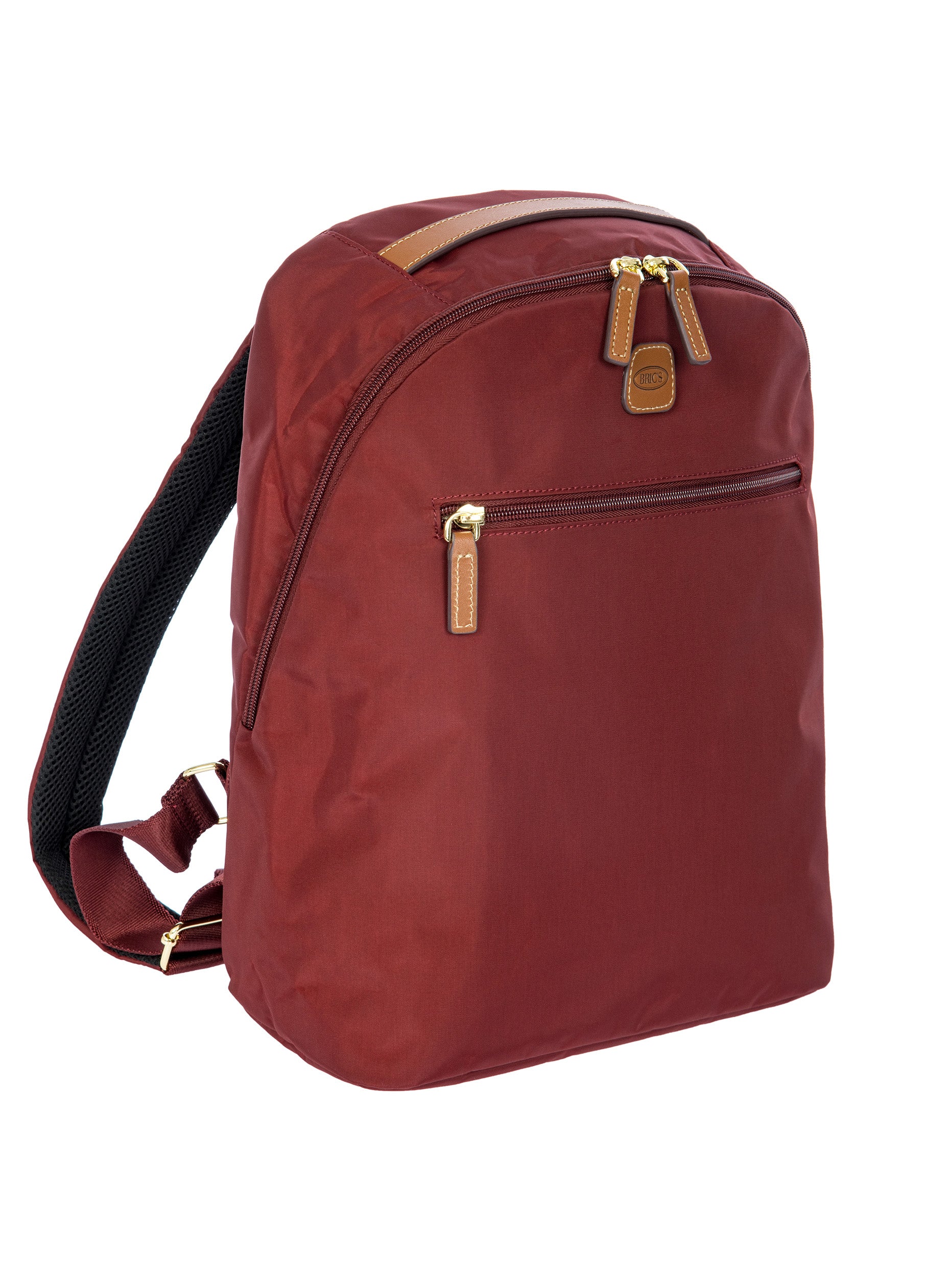 The medium city backpack from the X-Collection is made of soft, lightweight and durable recycled fabric, water-resistant. The adjustable shoulder straps ensure a comfortable fit, while the small leather handle on the top makes it easy to carry by hand. Spacious and compact, ideal for everyday outings, it has several internal pockets, one of which is zipped. The outside features zipped pockets on the front and back, ideal for holding your most precious belongings. The main compartment is equipped with a zip with two sliders. There is a strap on the back to attach it to a suitcase handle. The bag is finished with genuine leather details, one of Bric's signature design elements, and fabric lining.