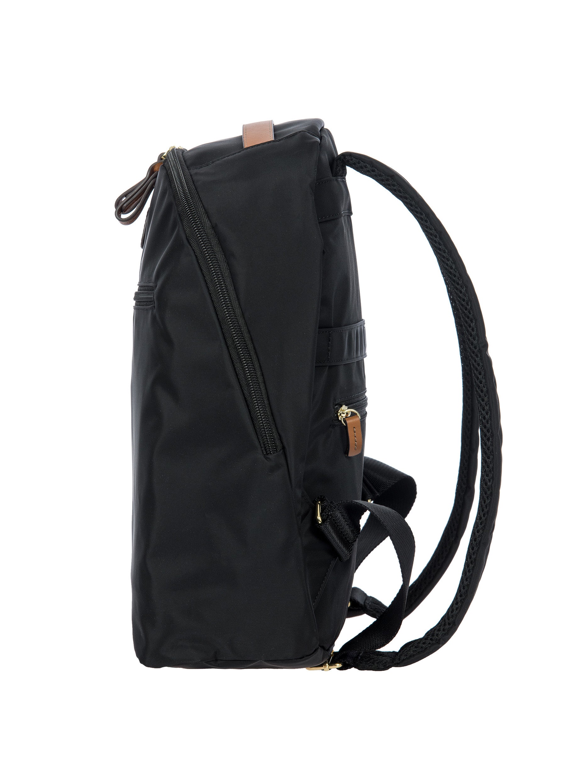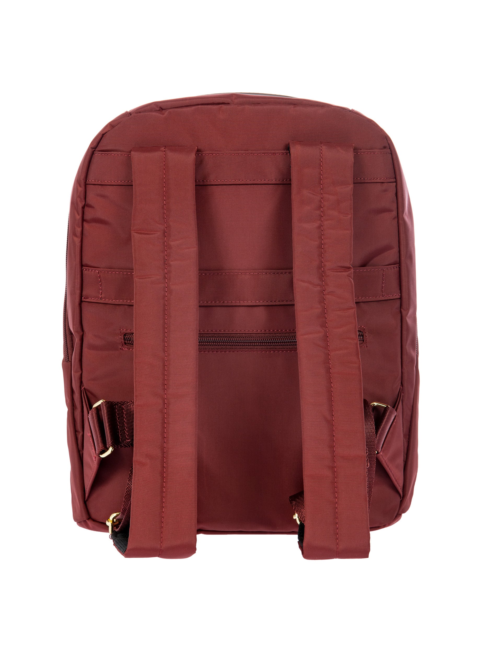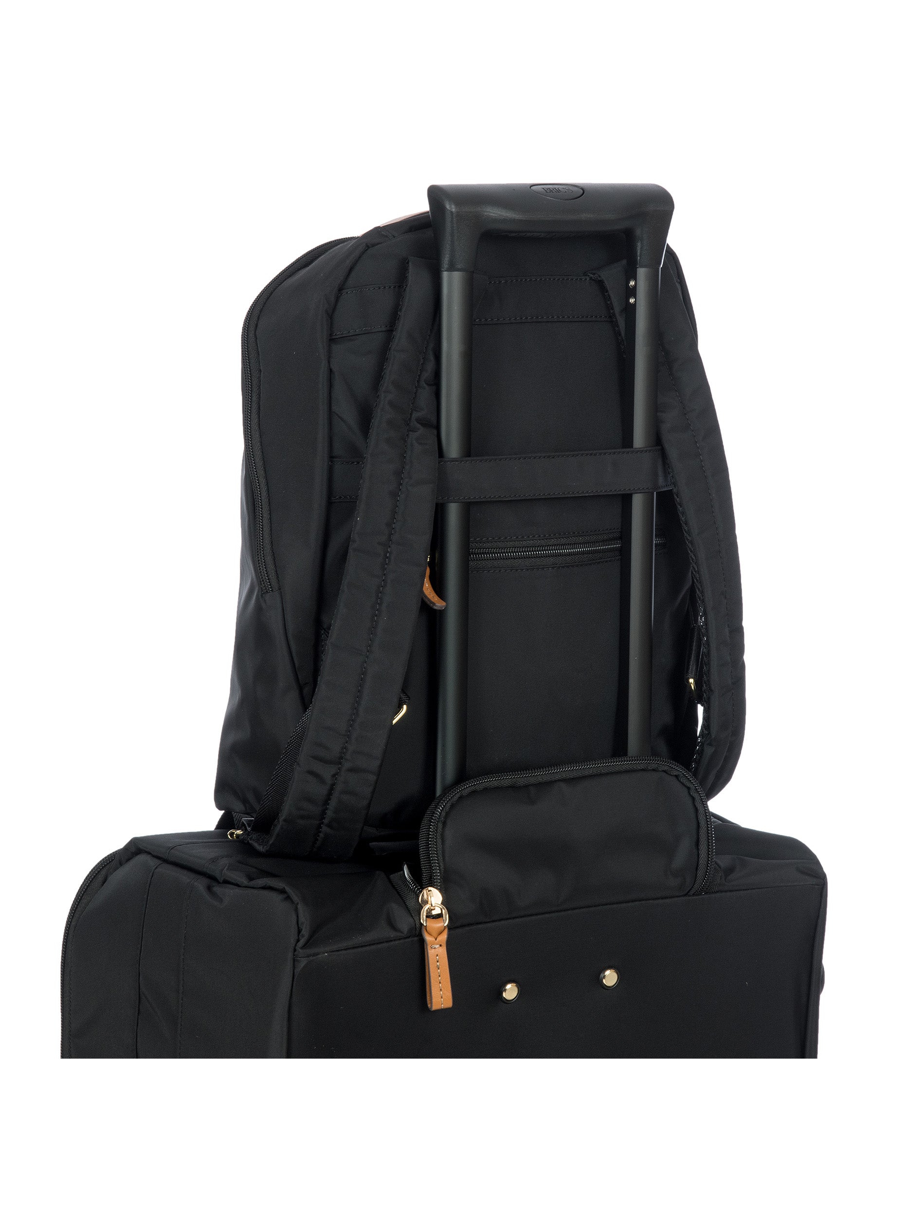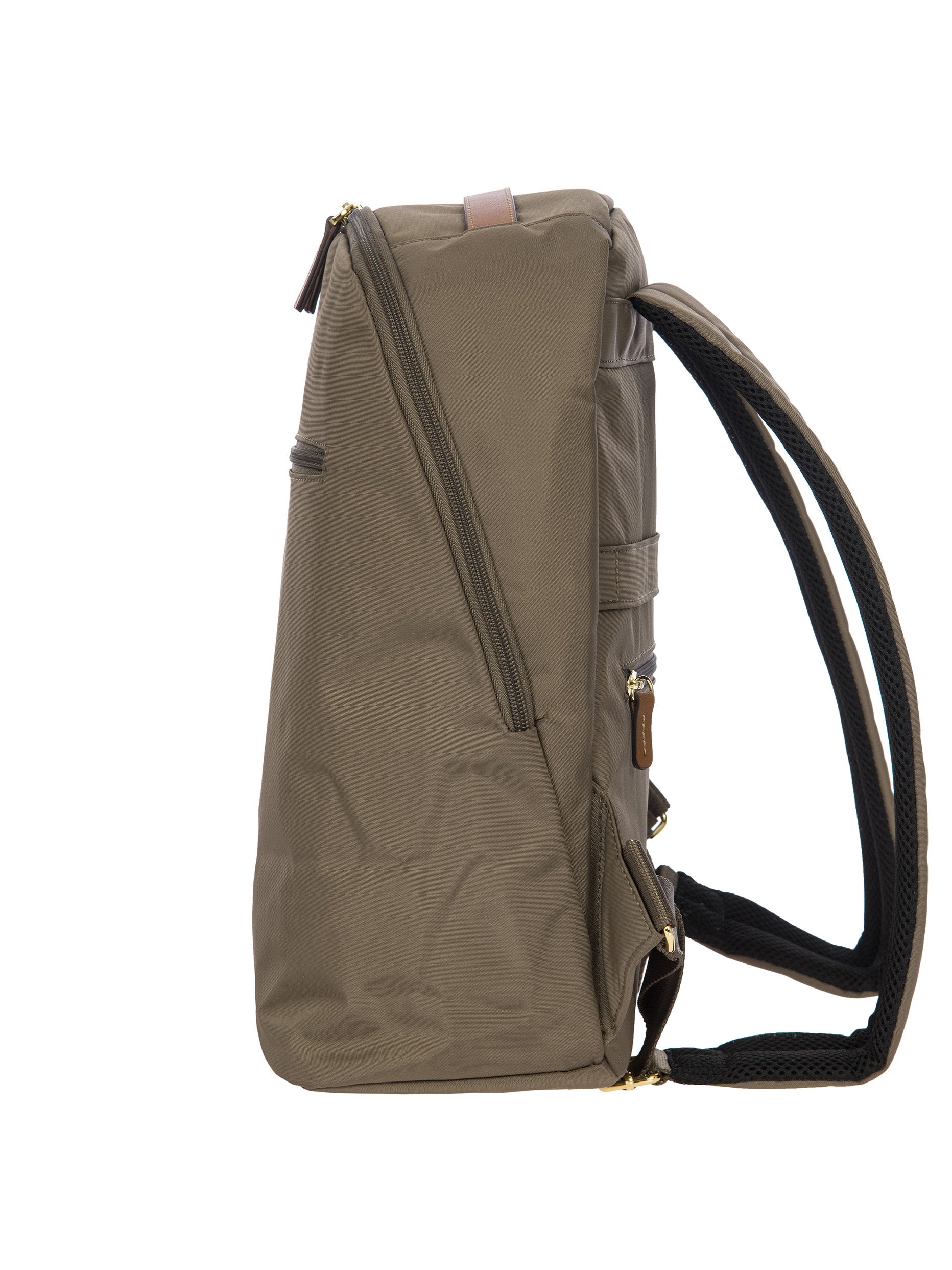 The medium city backpack from the X-Collection is made of soft, lightweight and durable recycled fabric, water-resistant. The adjustable shoulder straps ensure a comfortable fit, while the small leather handle on the top makes it easy to carry by hand. Spacious and compact, ideal for everyday outings, it has several internal pockets, one of which is zipped. The outside features zipped pockets on the front and back, ideal for holding your most precious belongings. The main compartment is equipped with a zip with two sliders. There is a strap on the back to attach it to a suitcase handle. The bag is finished with genuine leather details, one of Bric's signature design elements, and fabric lining.