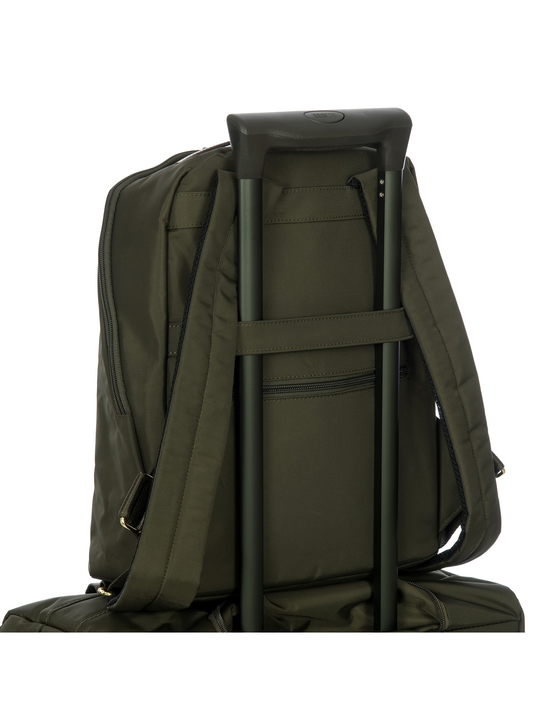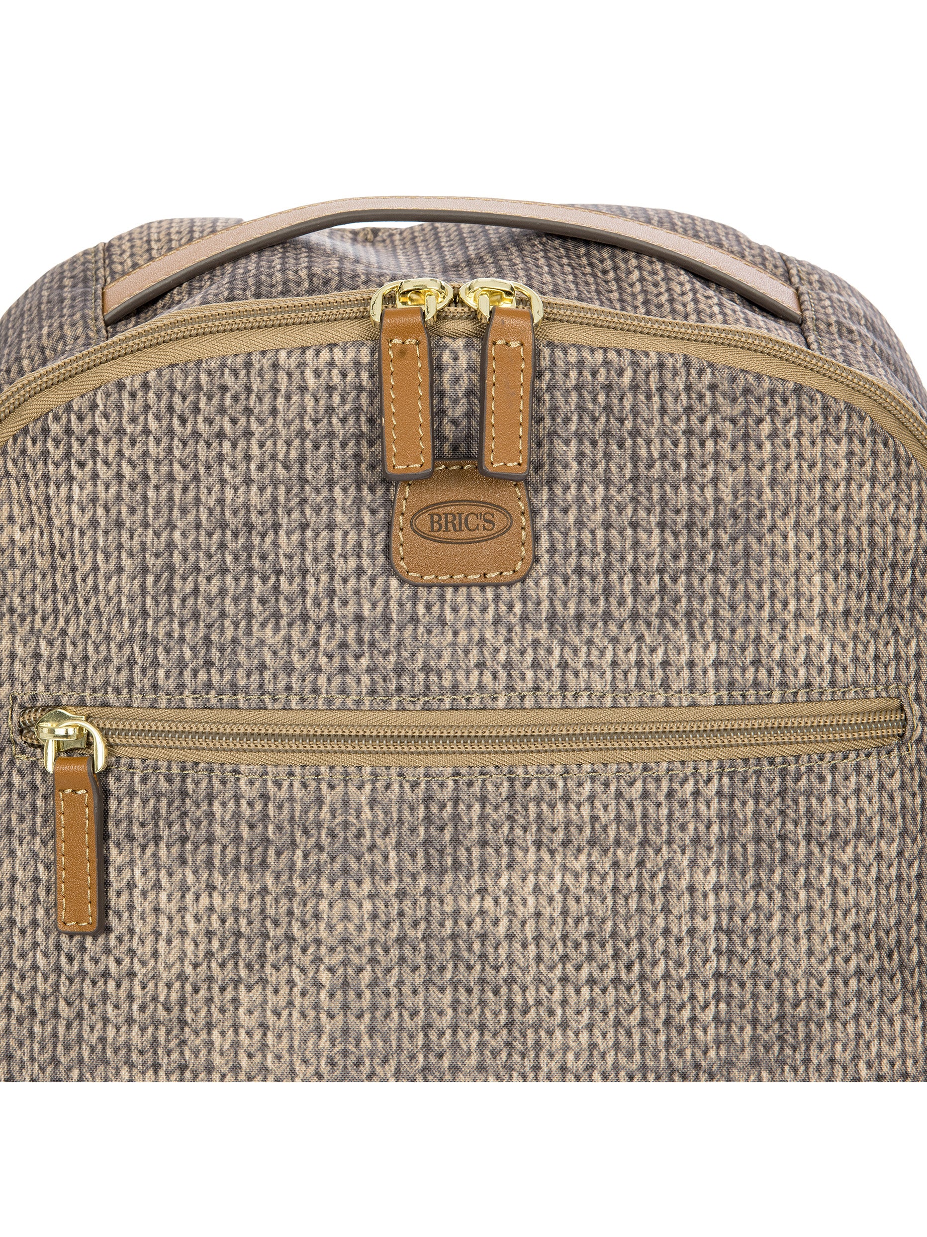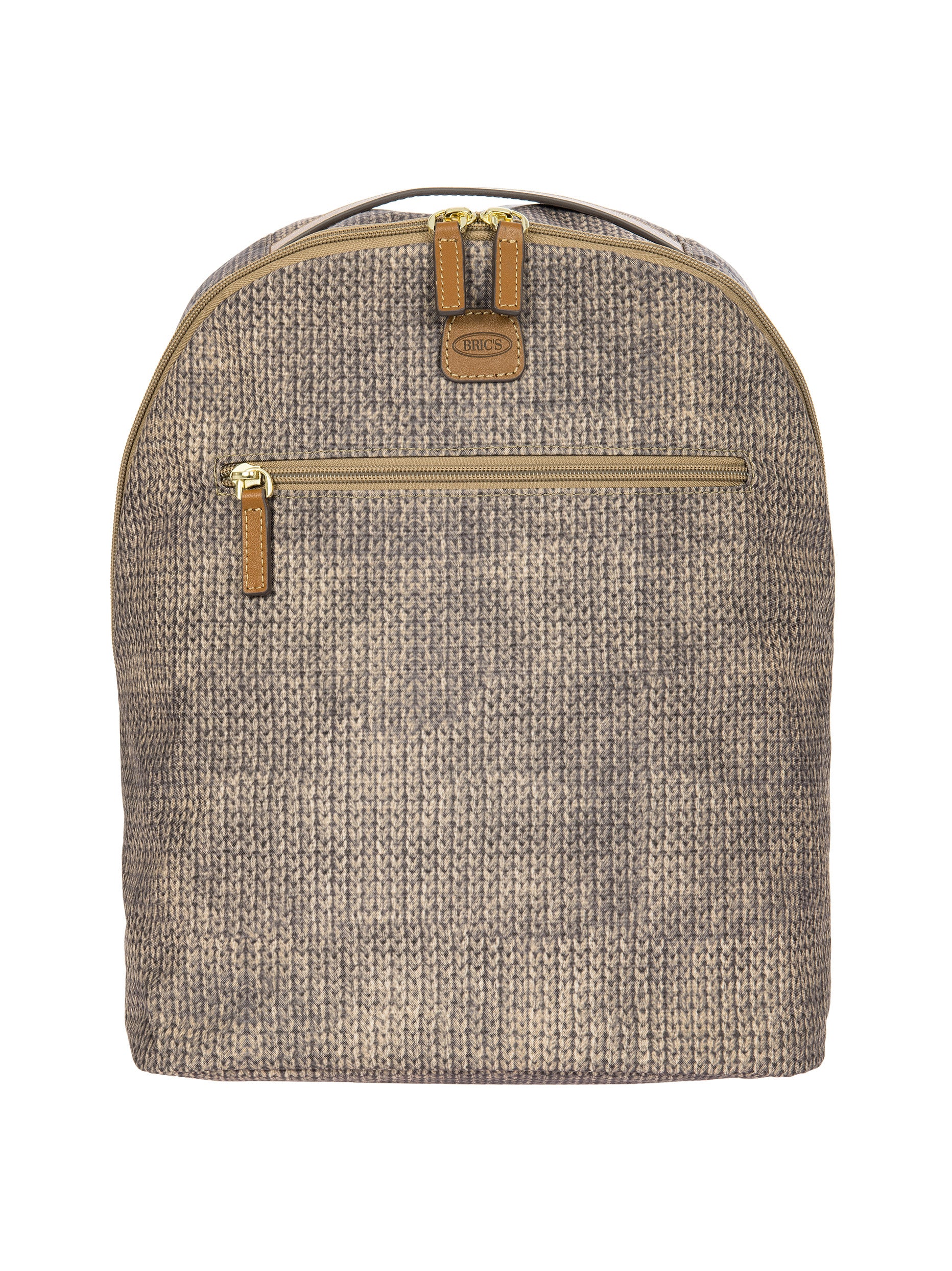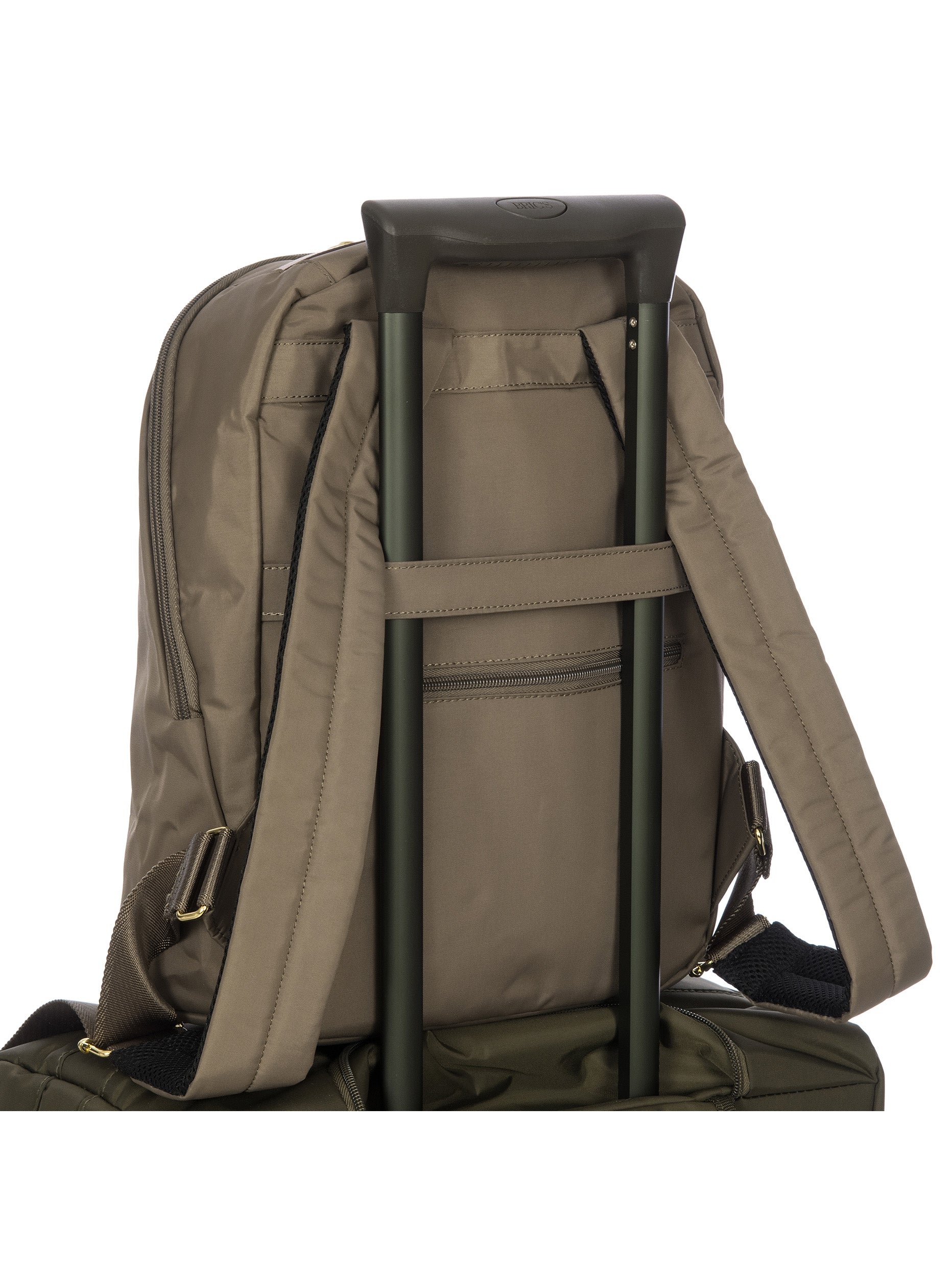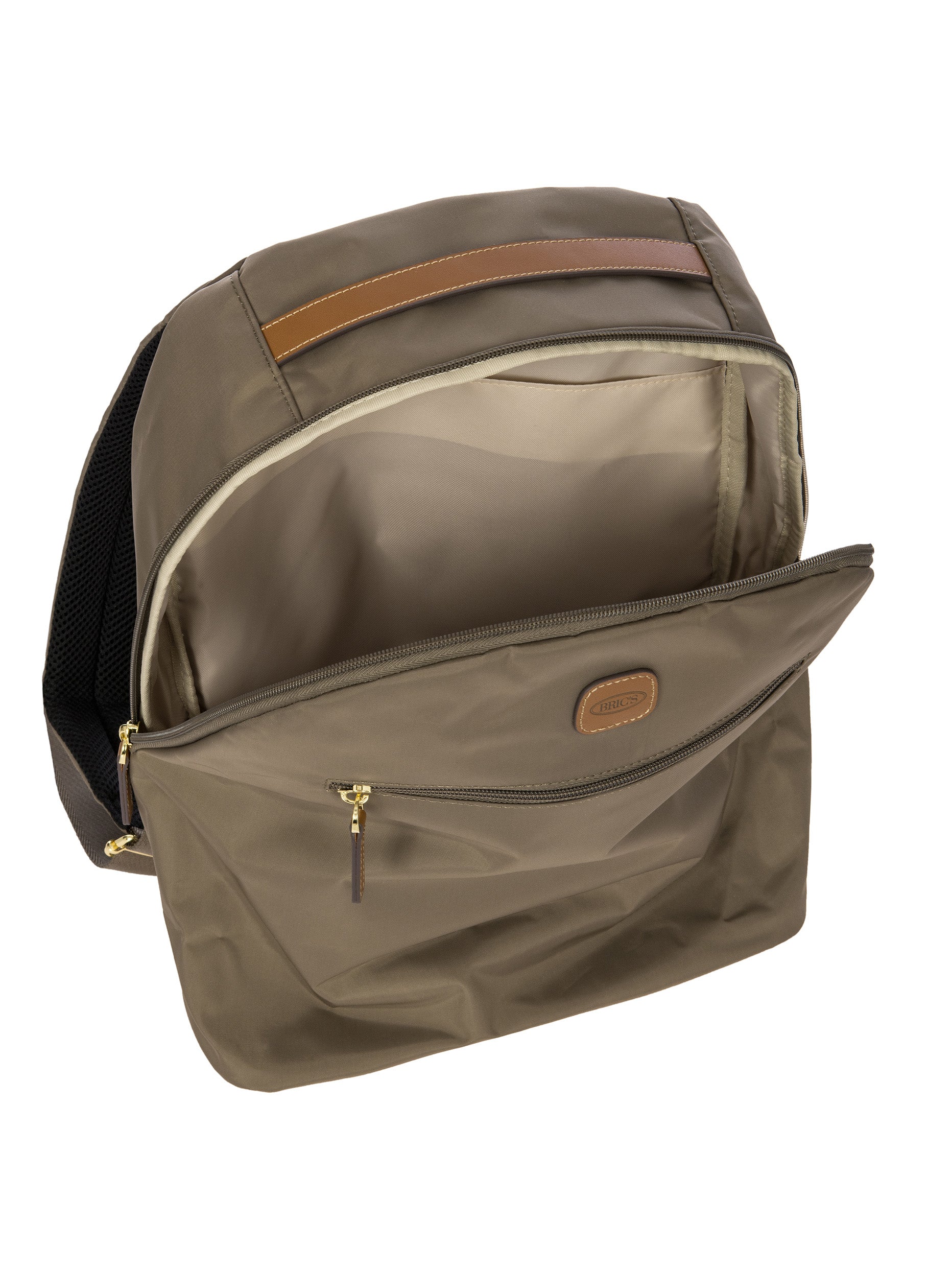 The medium city backpack from the X-Collection is made of soft, lightweight and durable recycled fabric, water-resistant. The adjustable shoulder straps ensure a comfortable fit, while the small leather handle on the top makes it easy to carry by hand. Spacious and compact, ideal for everyday outings, it has several internal pockets, one of which is zipped. The outside features zipped pockets on the front and back, ideal for holding your most precious belongings. The main compartment is equipped with a zip with two sliders. There is a strap on the back to attach it to a suitcase handle. The bag is finished with genuine leather details, one of Bric's signature design elements, and fabric lining.