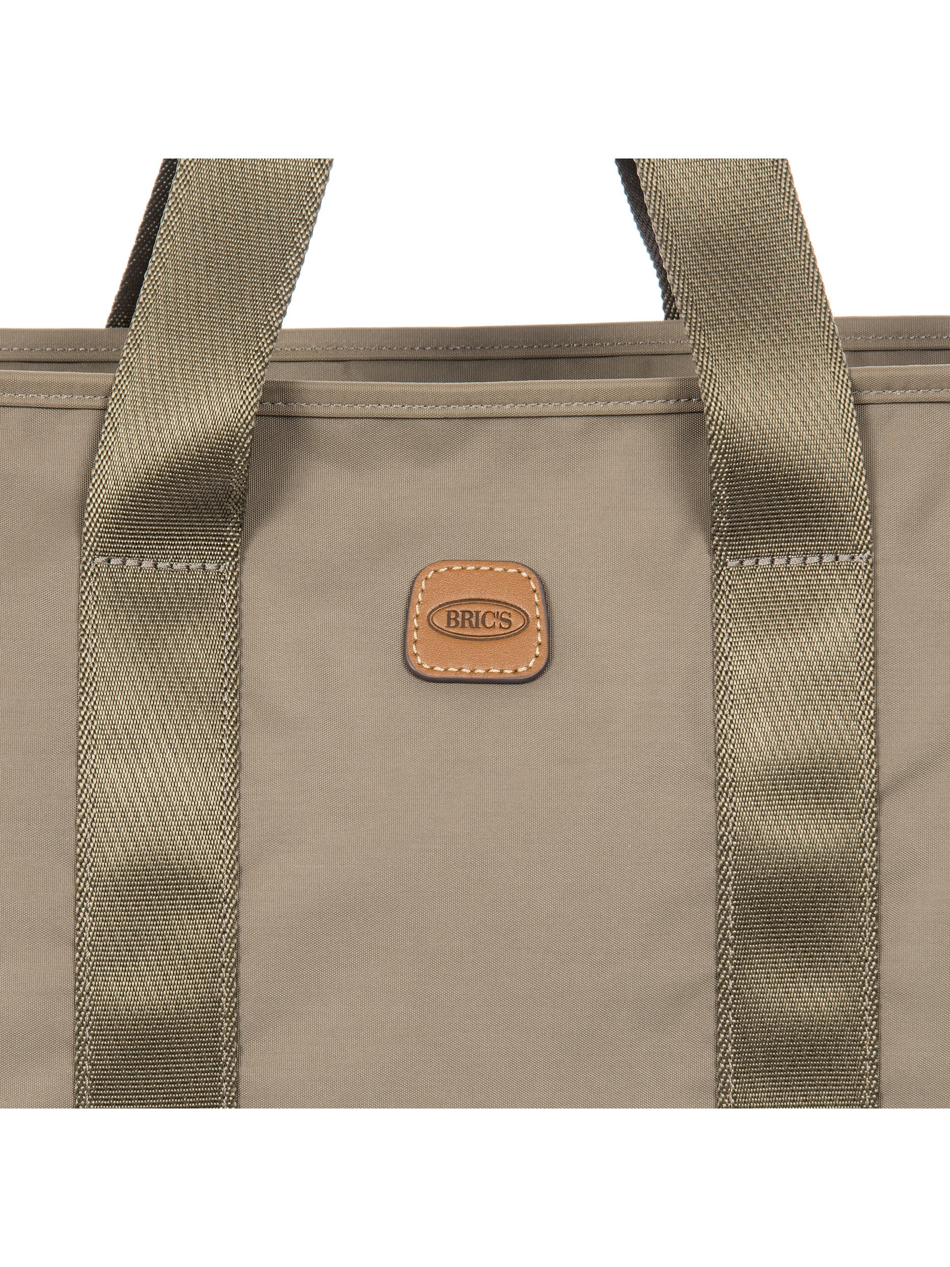 The X-Collection Opera Bag combines function and essential line, and is made of a water-proof, recycled fabric. With its reinforced bottom, padded laptop pocket, and trolley strap on the back, this bag is perfect for work and travel. Safe zipped fastening, double handle and removable shoulder strap. This functional 24/7 bag is embellished by ribbons and genuine leather details - Bric's hallmark.