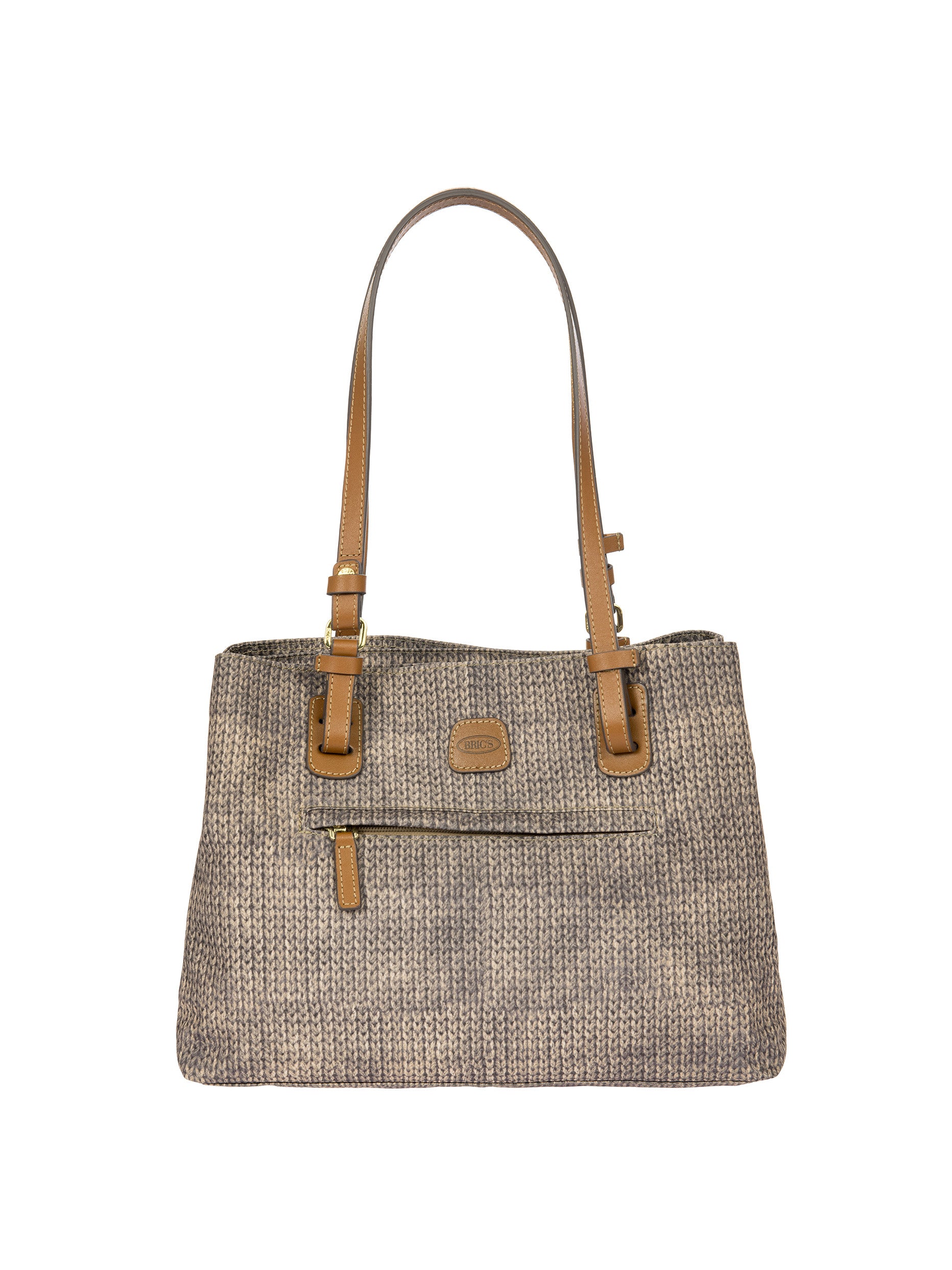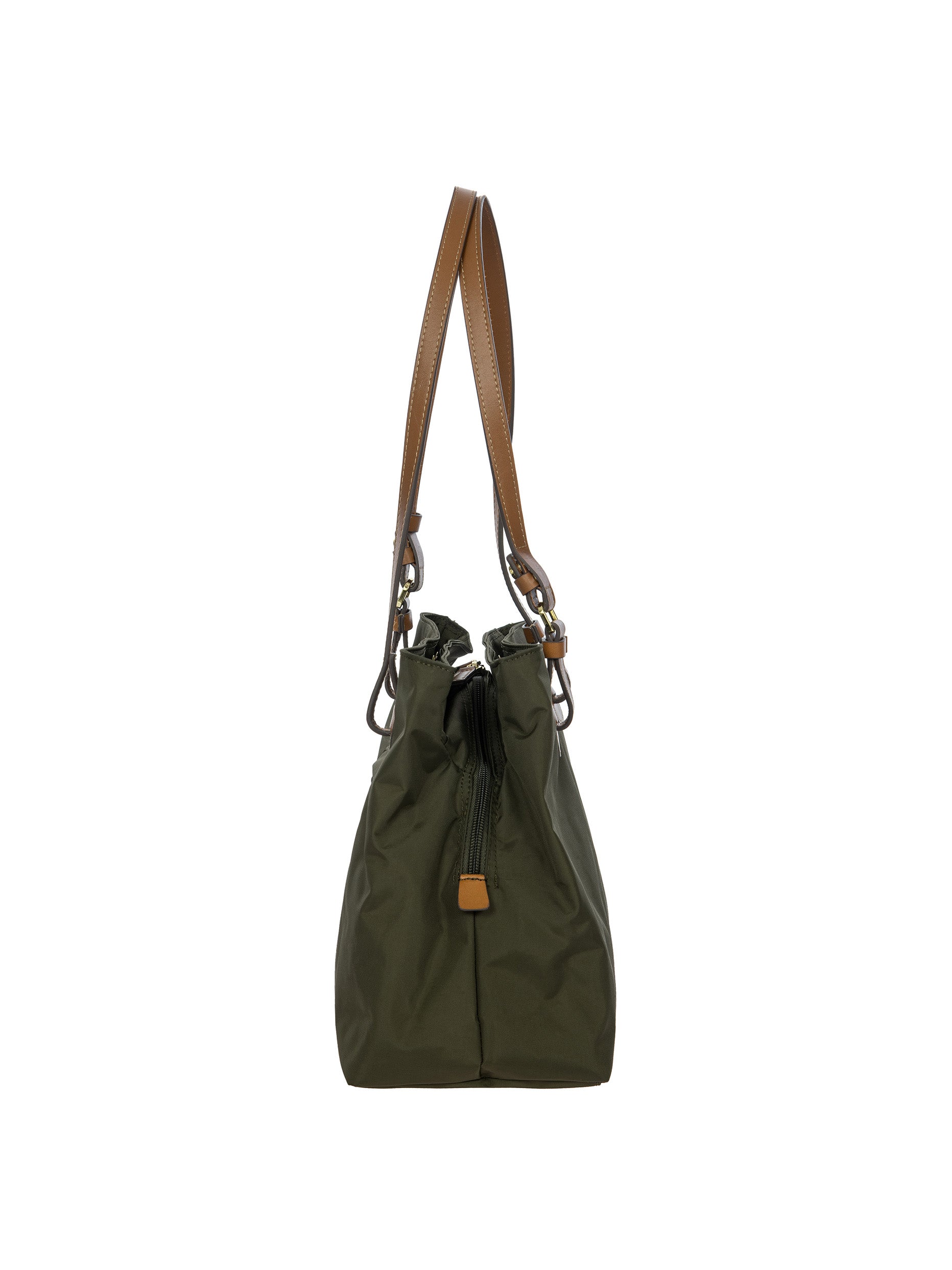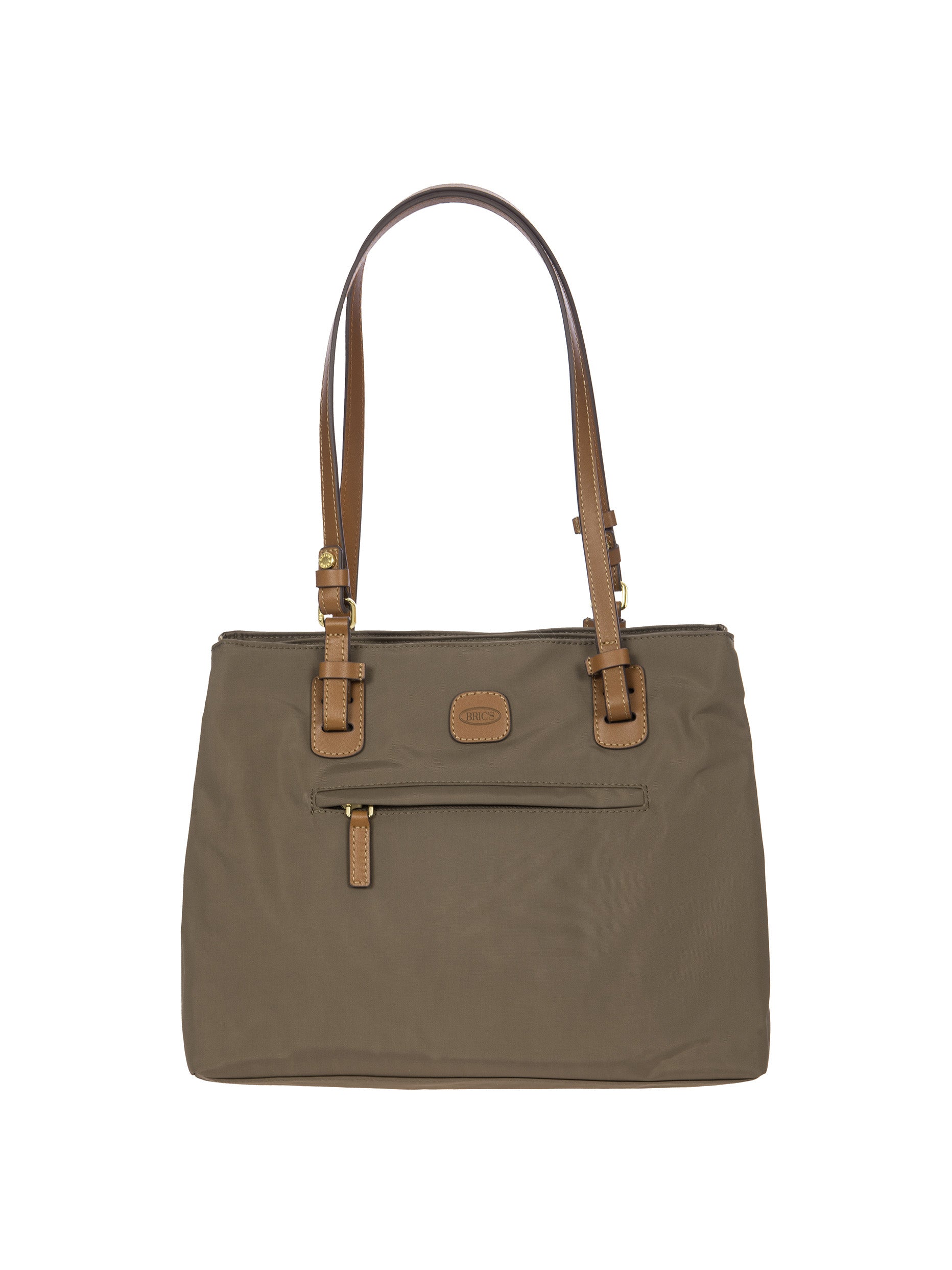 Part of our X-Collection, this medium shopper bag is made of a durable and water-resistant recycled fabric. Inside, it features three compartments: a central zipped section, and two magnet button smaller sections. It also has a zipped pocket on the front, and additional pockets inside to keep all your belongings properly organized. This shoulder bag features soft and thin leather straps. And it can also be worn as a cross-body bag, by snapping the straps together. This functional bag is embellished by genuine leather details - a hallmark of Bric's.