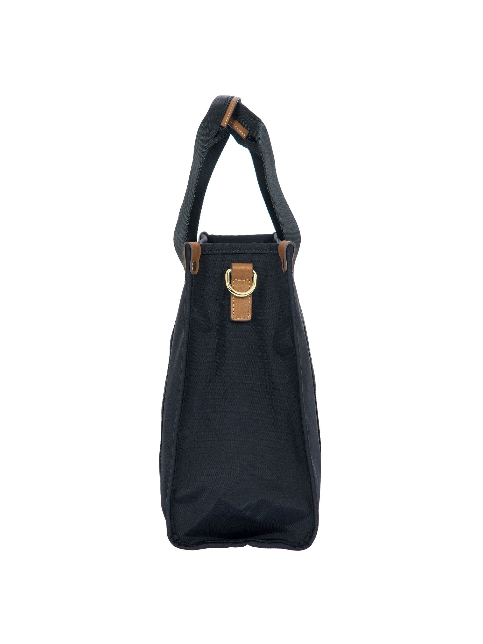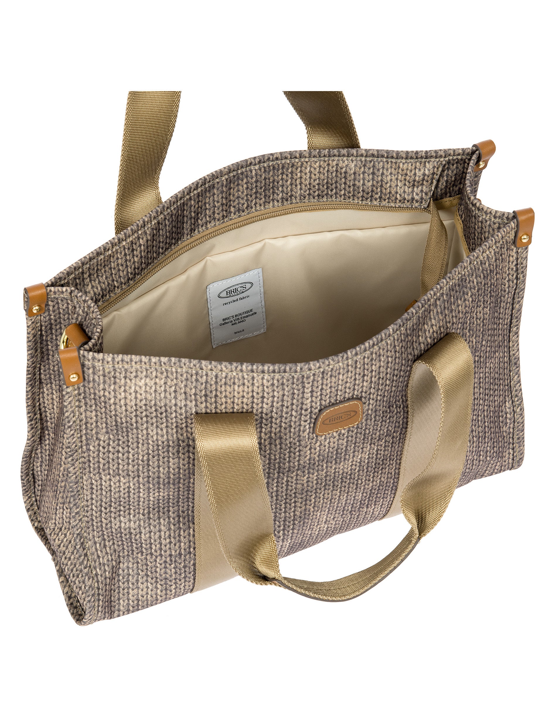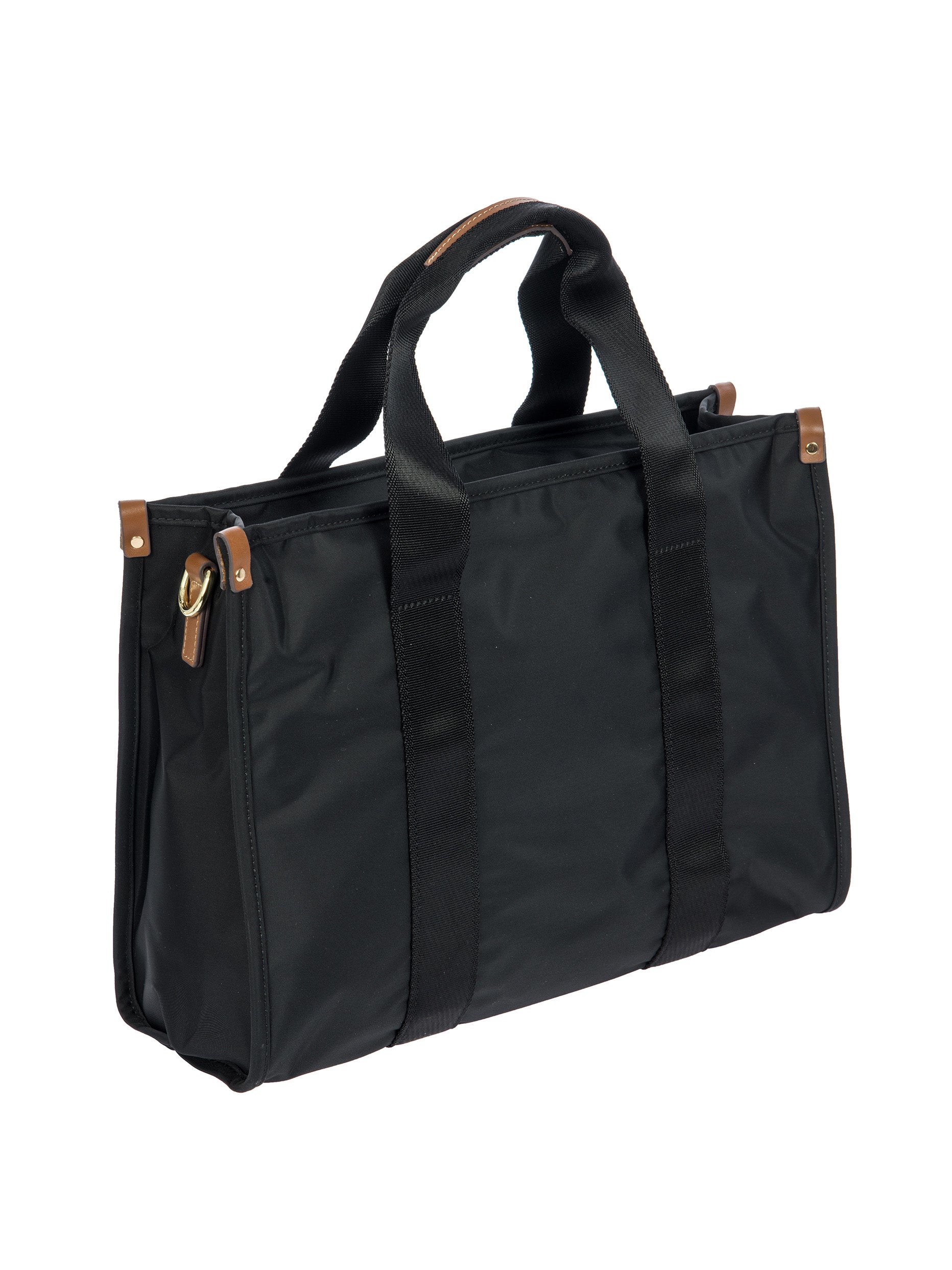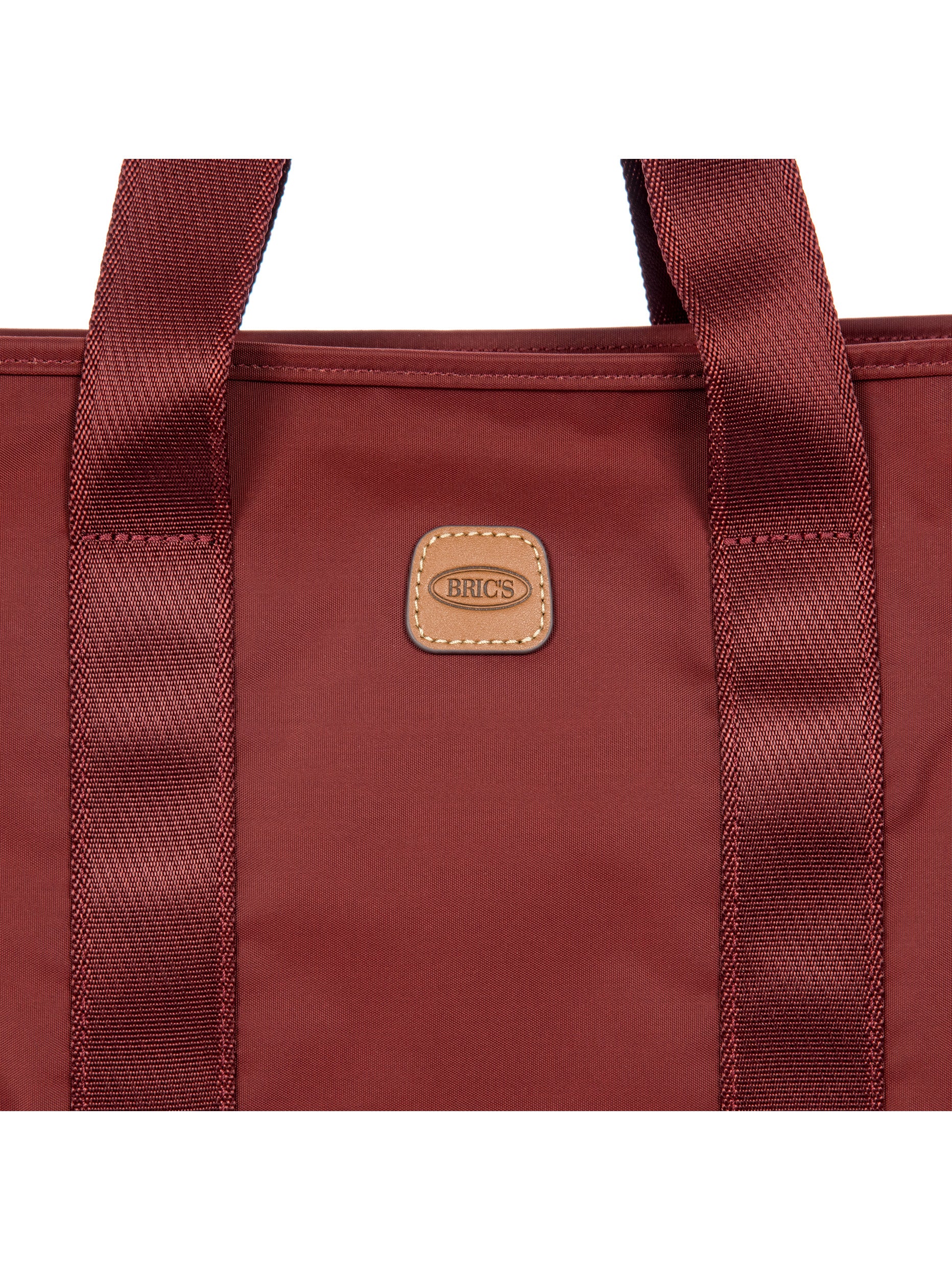 The X-Collection Opera Bag combines volume and essential lines, and is made of a water-proof, recycled fabric. Reinforced bottom, padded tablet pocket, double handle and removable shoulder strap for this functionally elegant bag. Safe zipped fastening. This functional 24/7 bag is embellished by ribbons and genuine leather details - Bric's hallmark.