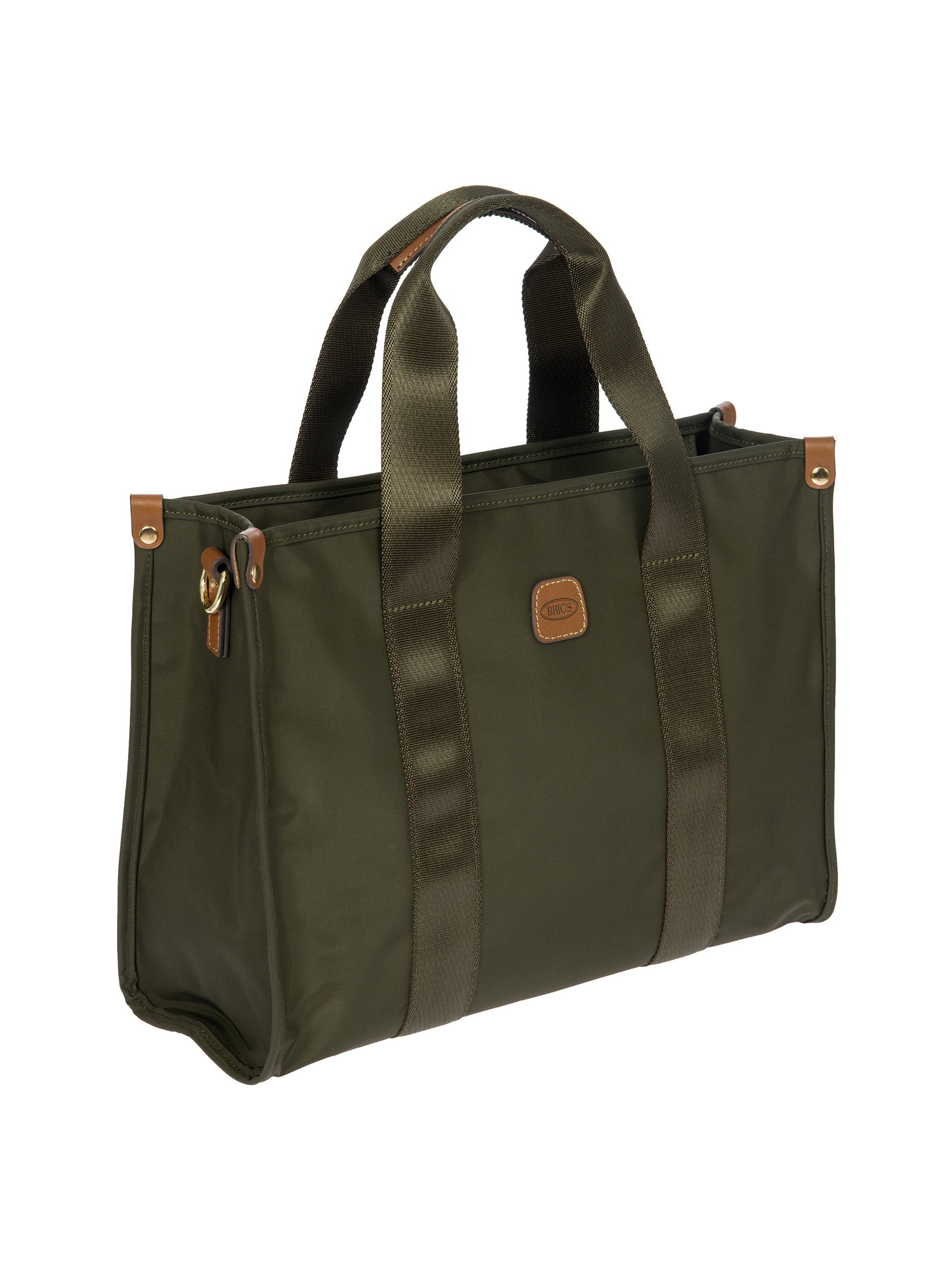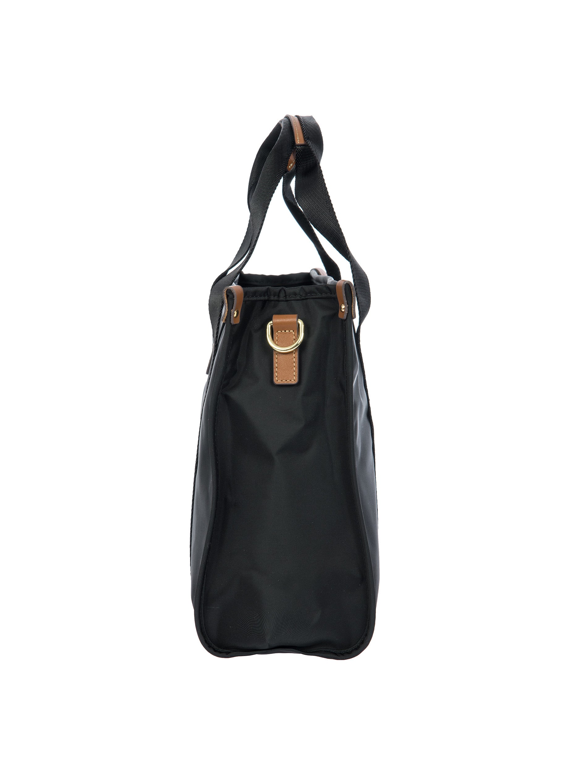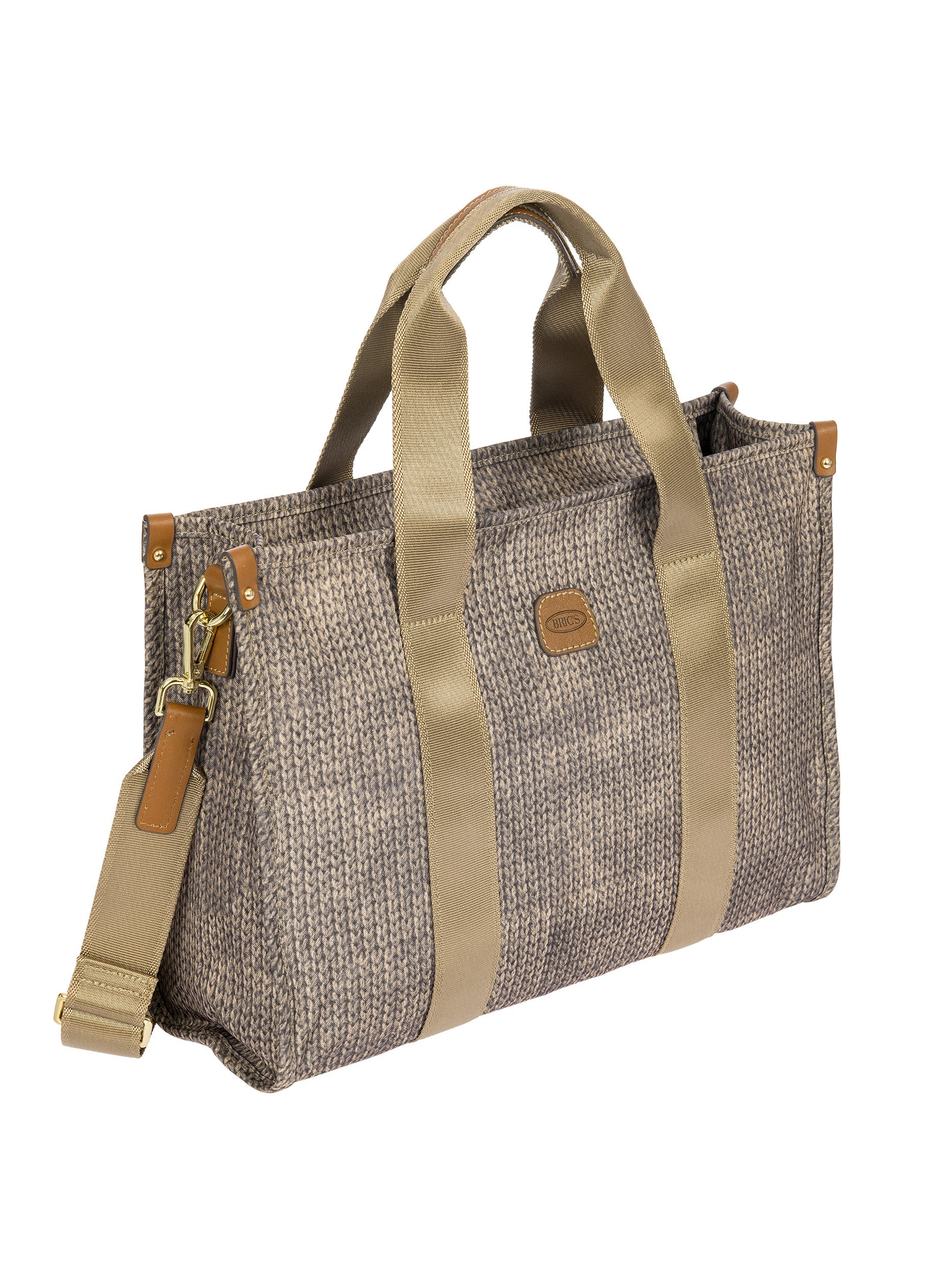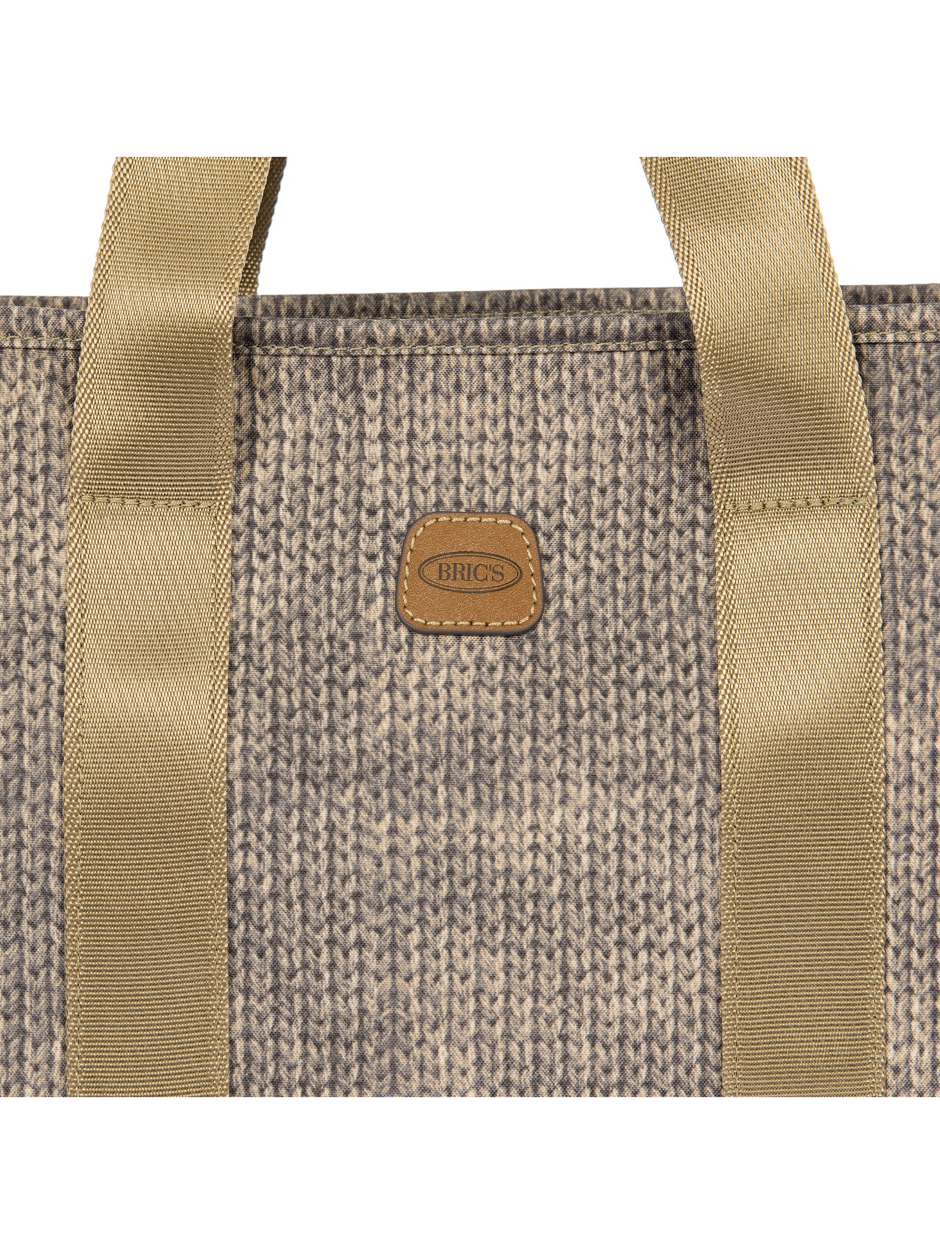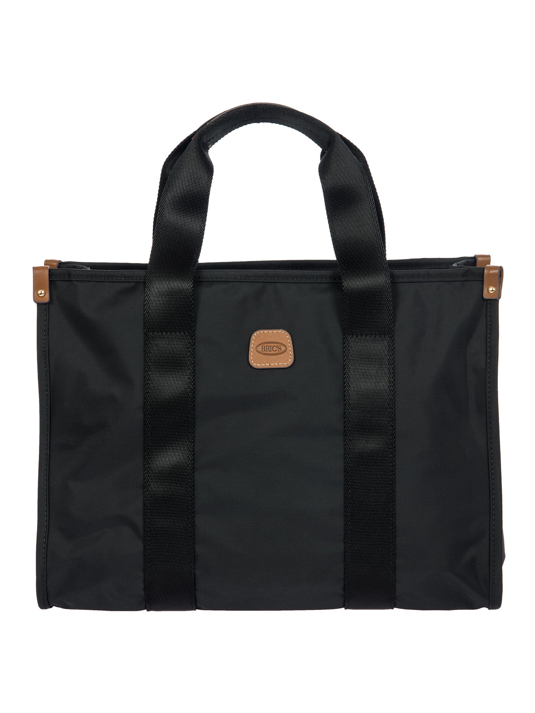 The X-Collection Opera Bag combines volume and essential lines, and is made of a water-proof, recycled fabric. Reinforced bottom, padded tablet pocket, double handle and removable shoulder strap for this functionally elegant bag. Safe zipped fastening. This functional 24/7 bag is embellished by ribbons and genuine leather details - Bric's hallmark.