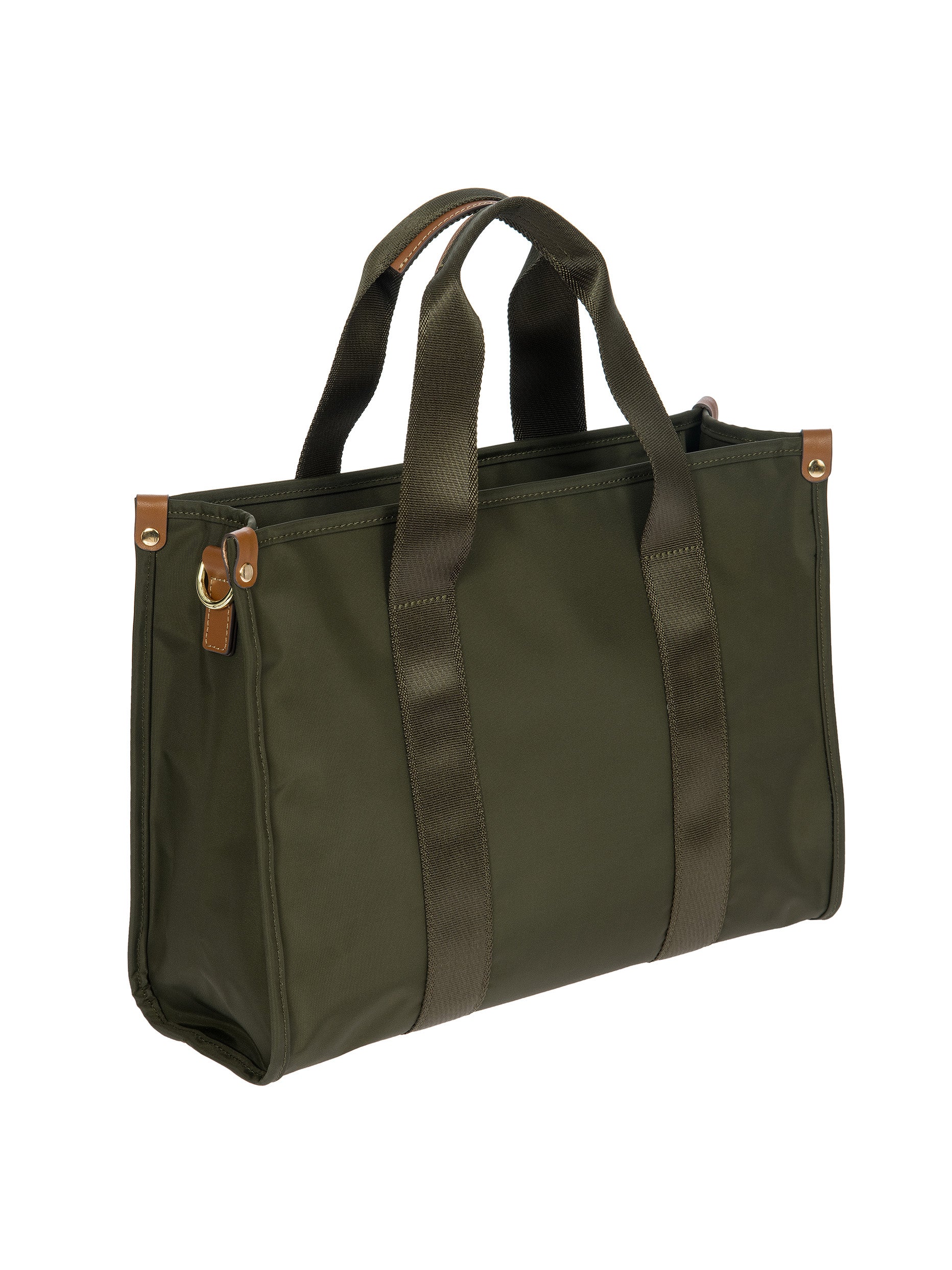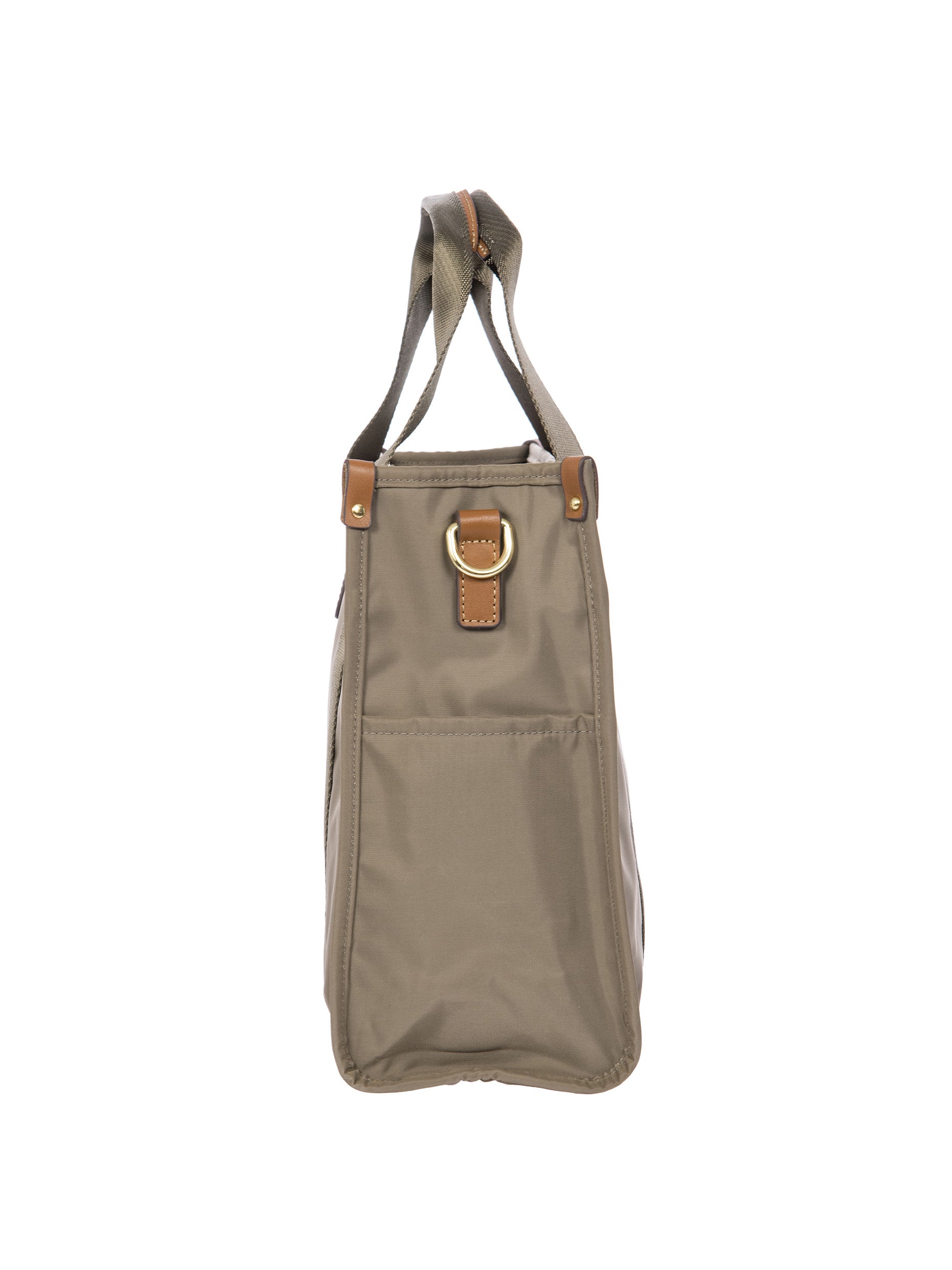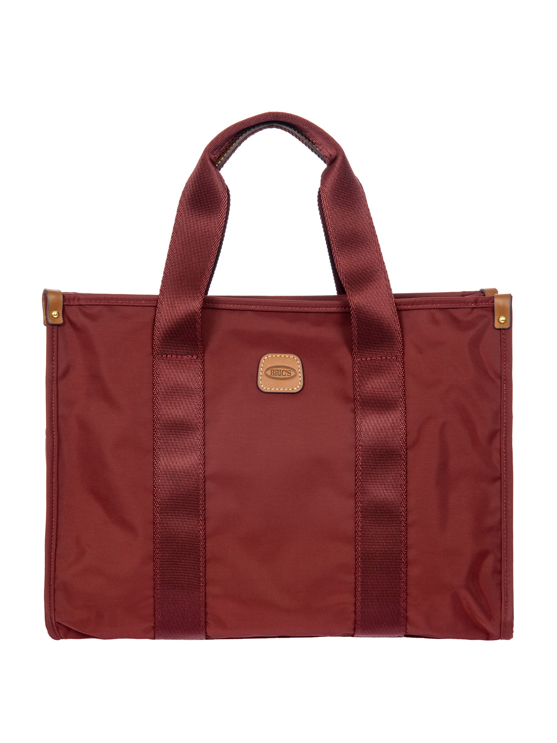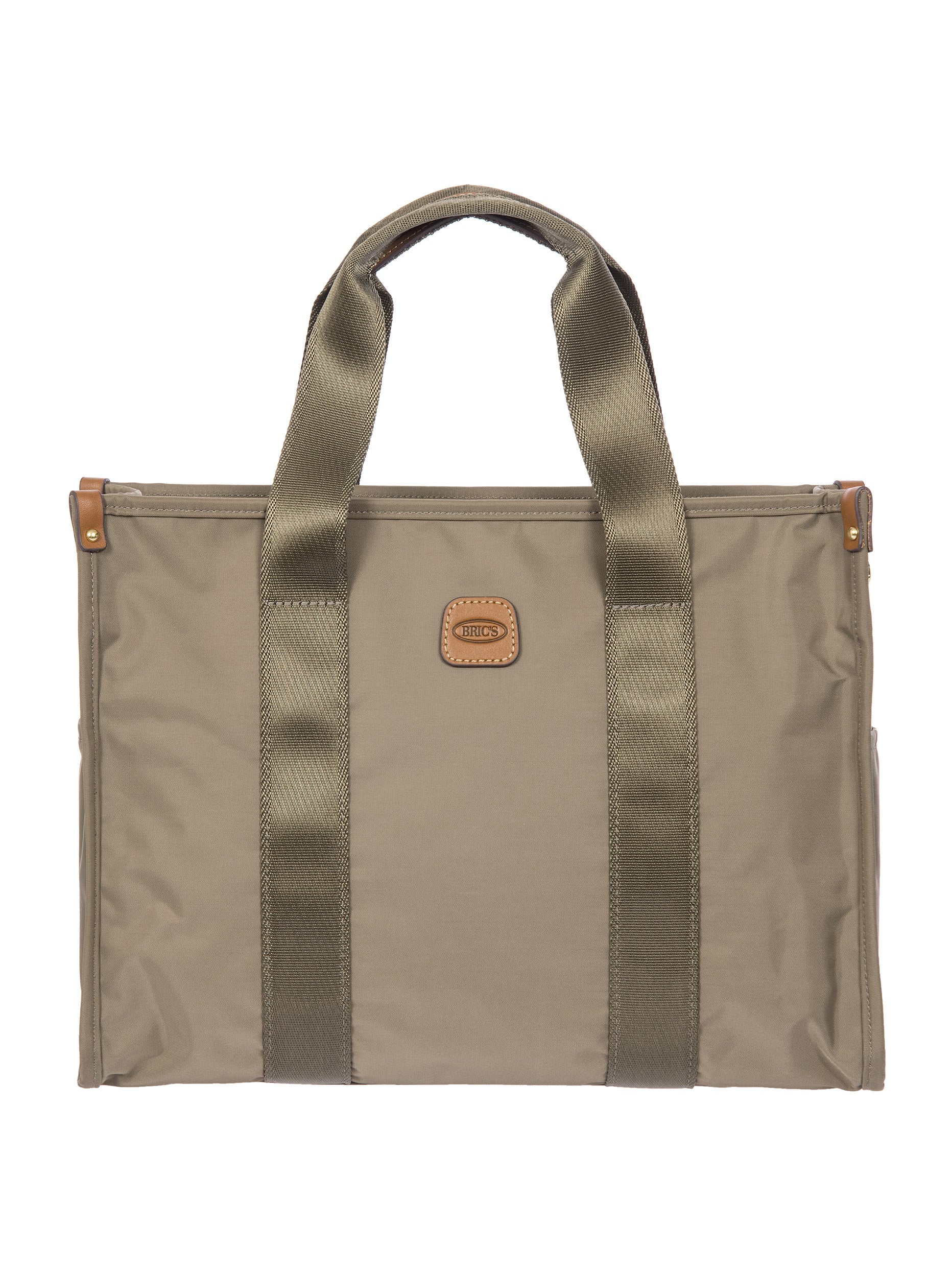 The X-Collection Opera Bag combines volume and essential lines, and is made of a water-proof, recycled fabric. Reinforced bottom, padded tablet pocket, double handle and removable shoulder strap for this functionally elegant bag. Safe zipped fastening. This functional 24/7 bag is embellished by ribbons and genuine leather details - Bric's hallmark.