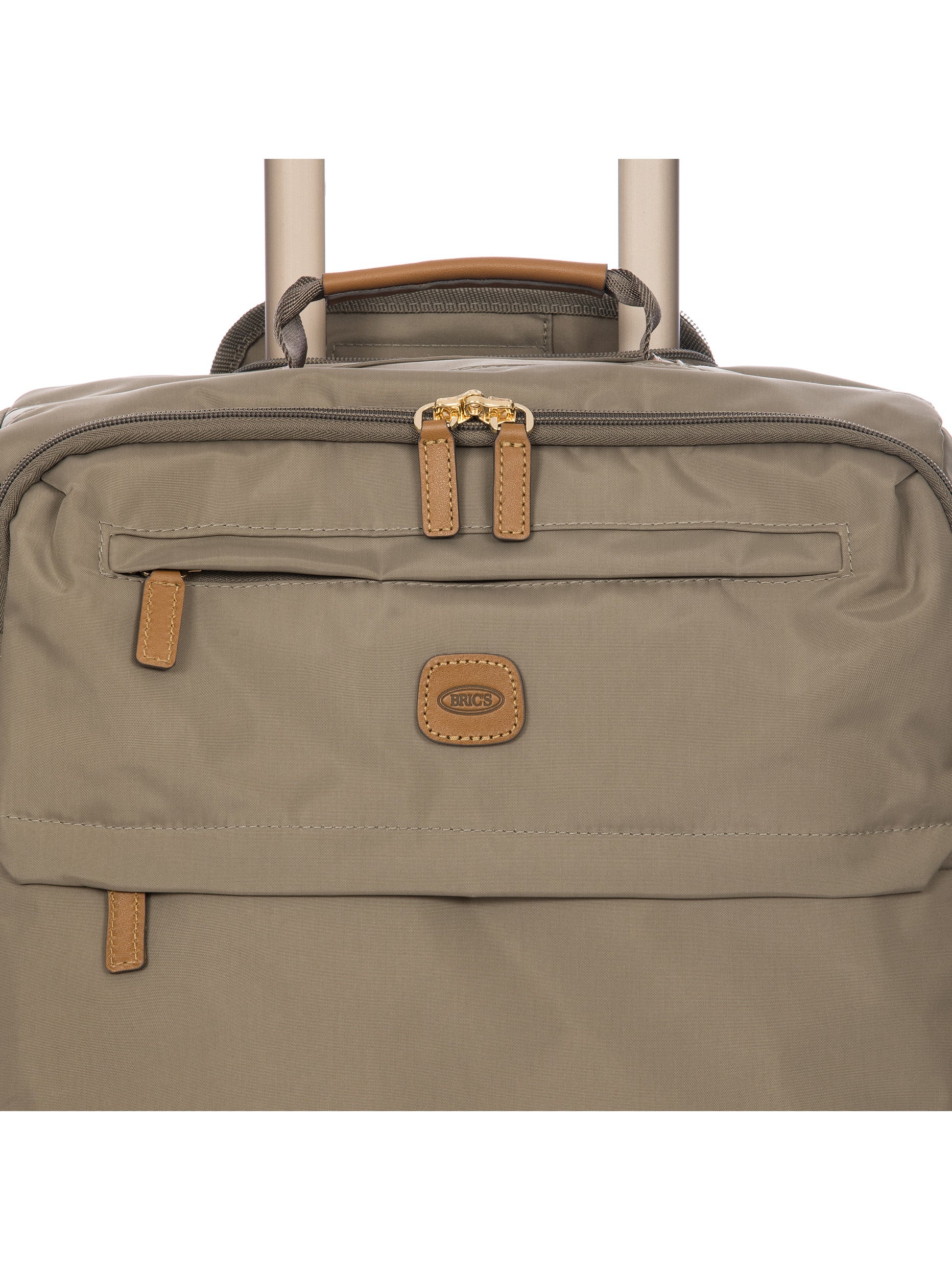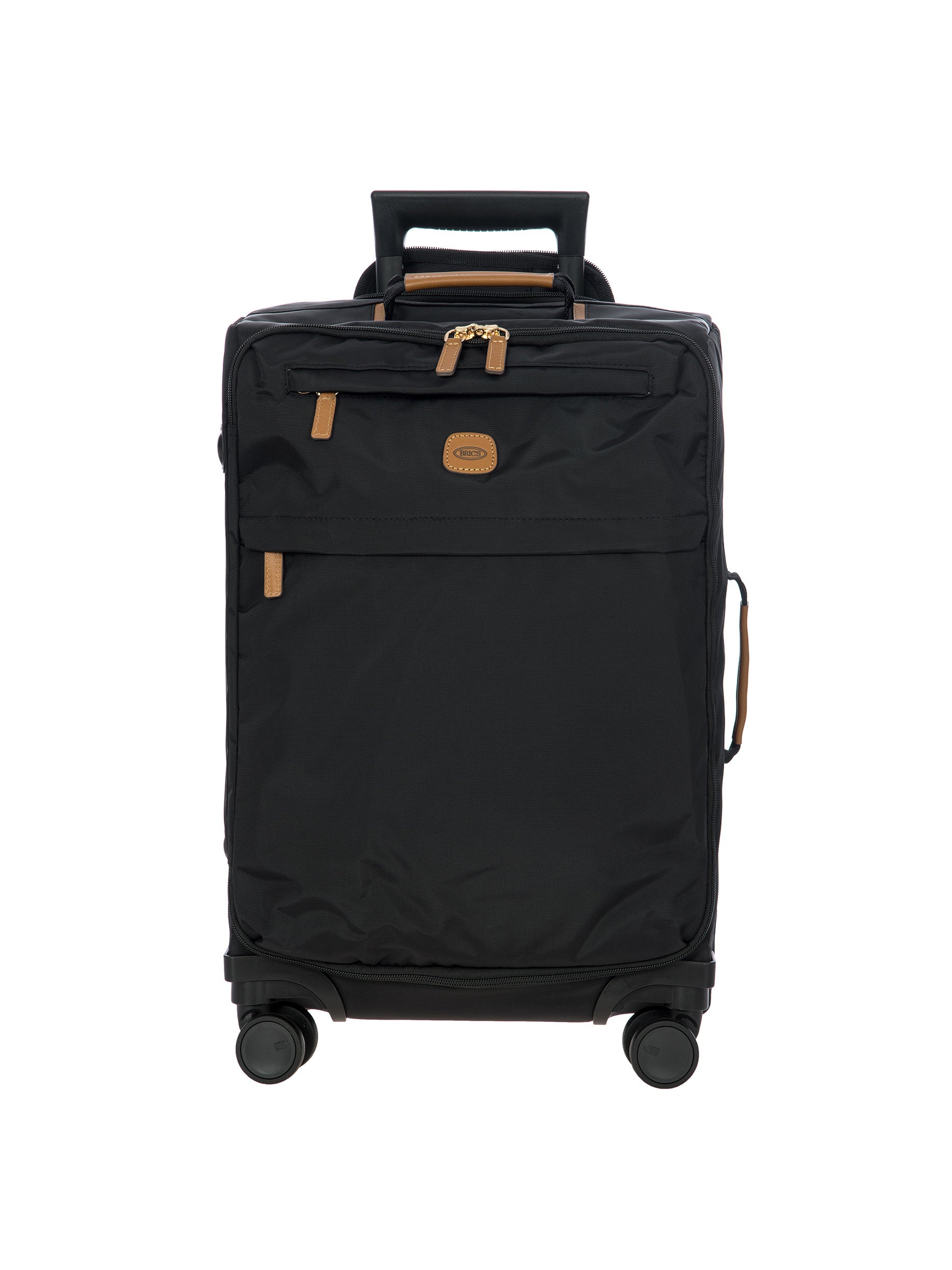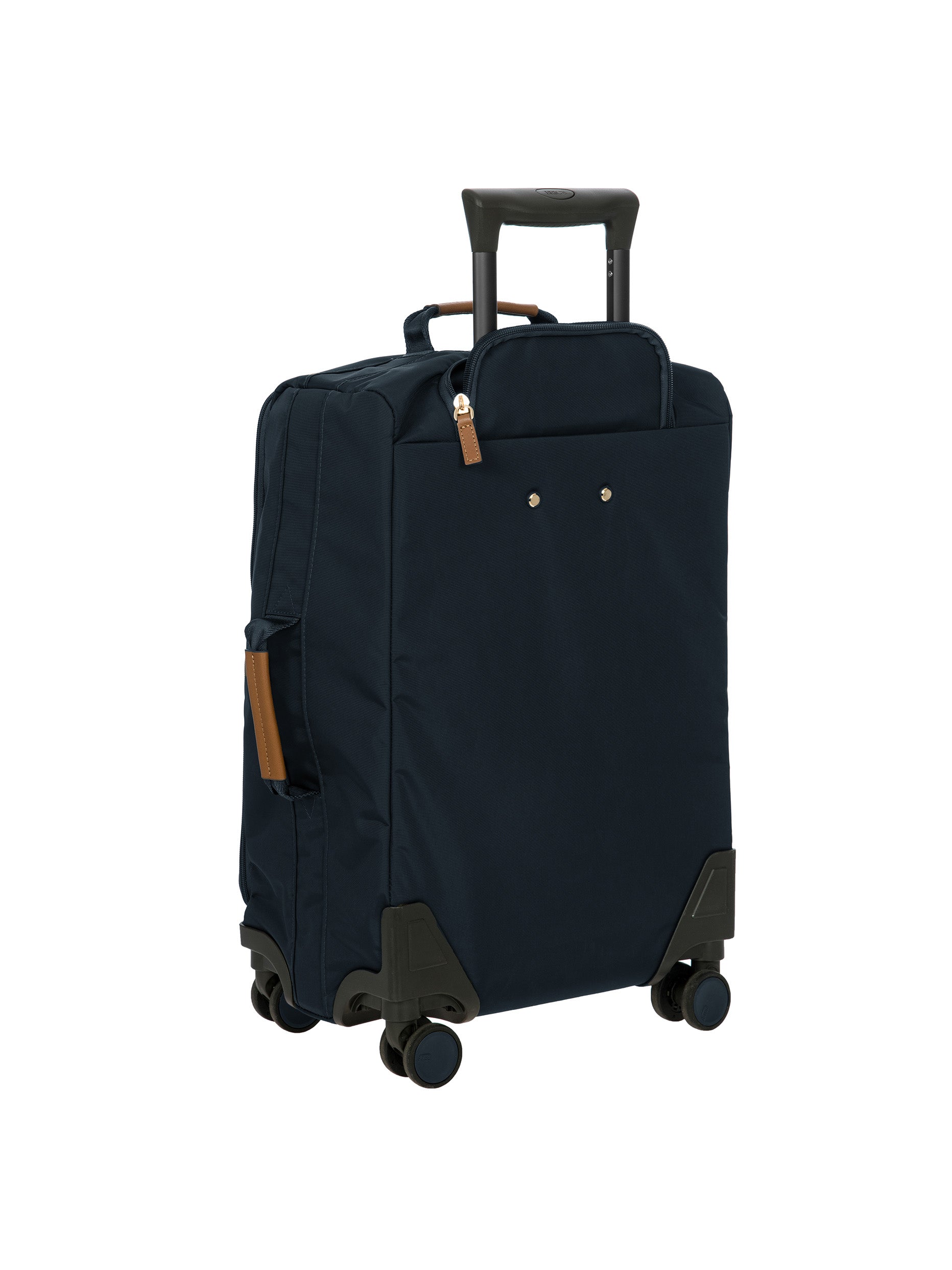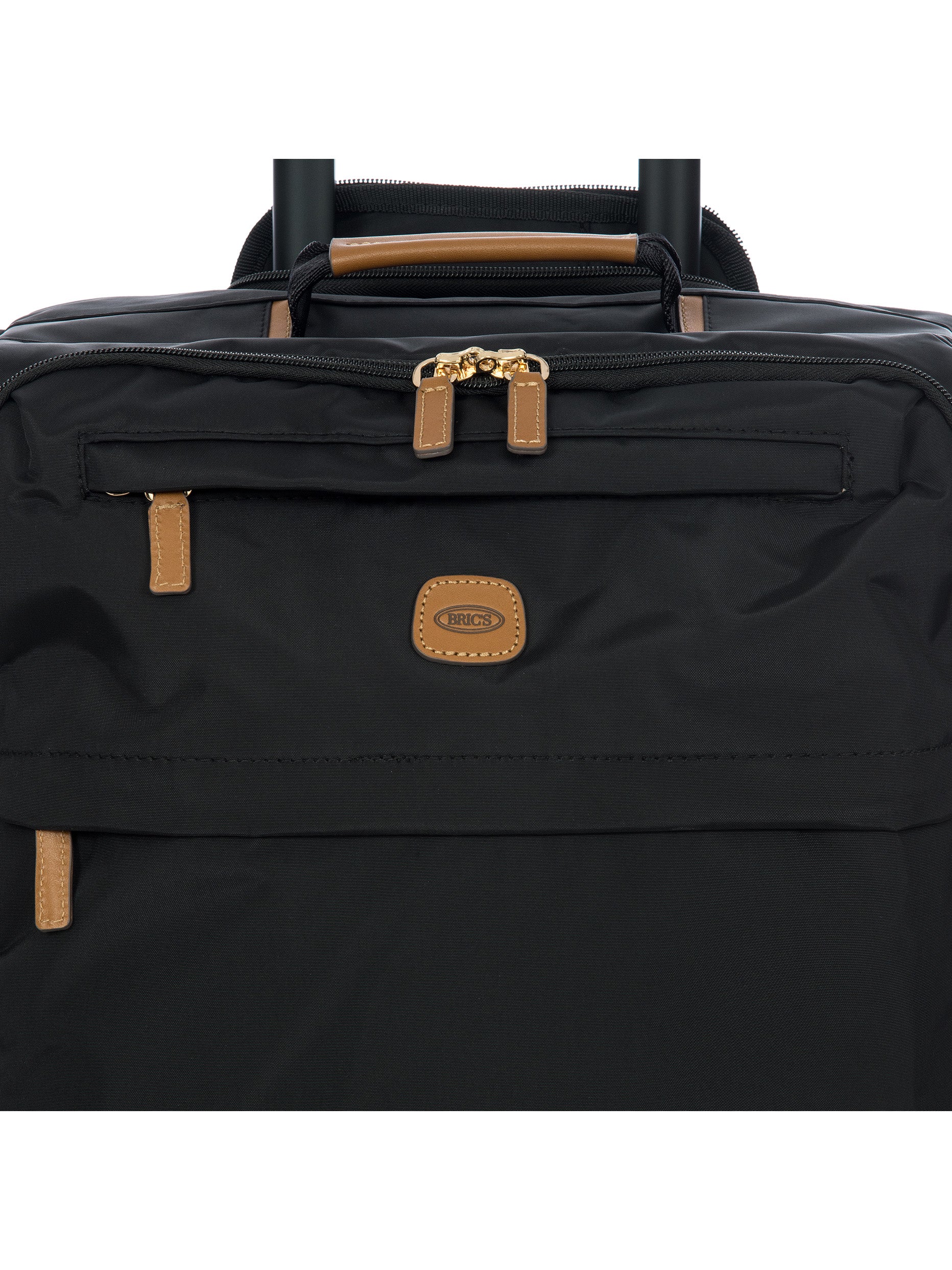 The 55 cm carry-on Trolley from the X-Collection is made of durable recycled fabric, water-resistant, with a rigid and lightweight internal structure. The main compartment is equipped with a zip with two sliders. It also includes two zipped front pockets, interior pockets and straps to help you organise your belongings. The wheels swivel to ensure smooth 360° movement, and are recessed to maximise the internal capacity of the trolley bag. Complete with an address tag and rings for a padlock (sold separately). The trolley bag features a padded handle on the top, four double silent wheels with bearings, sturdy and stable aluminium tubes, and an ergonomic handle for complete comfort. Finished with genuine leather details, one of Bric's signature design elements, and the brand's logo.