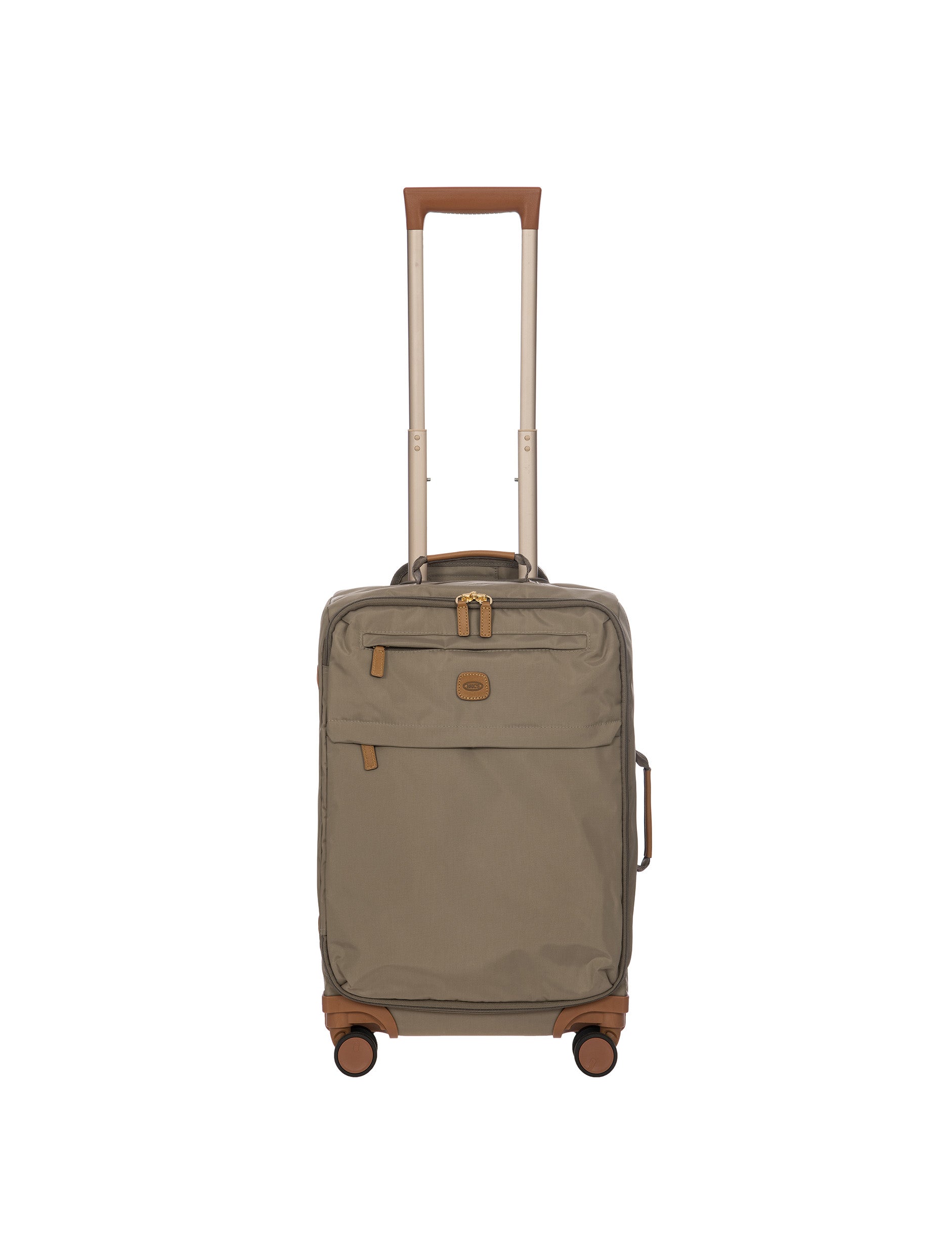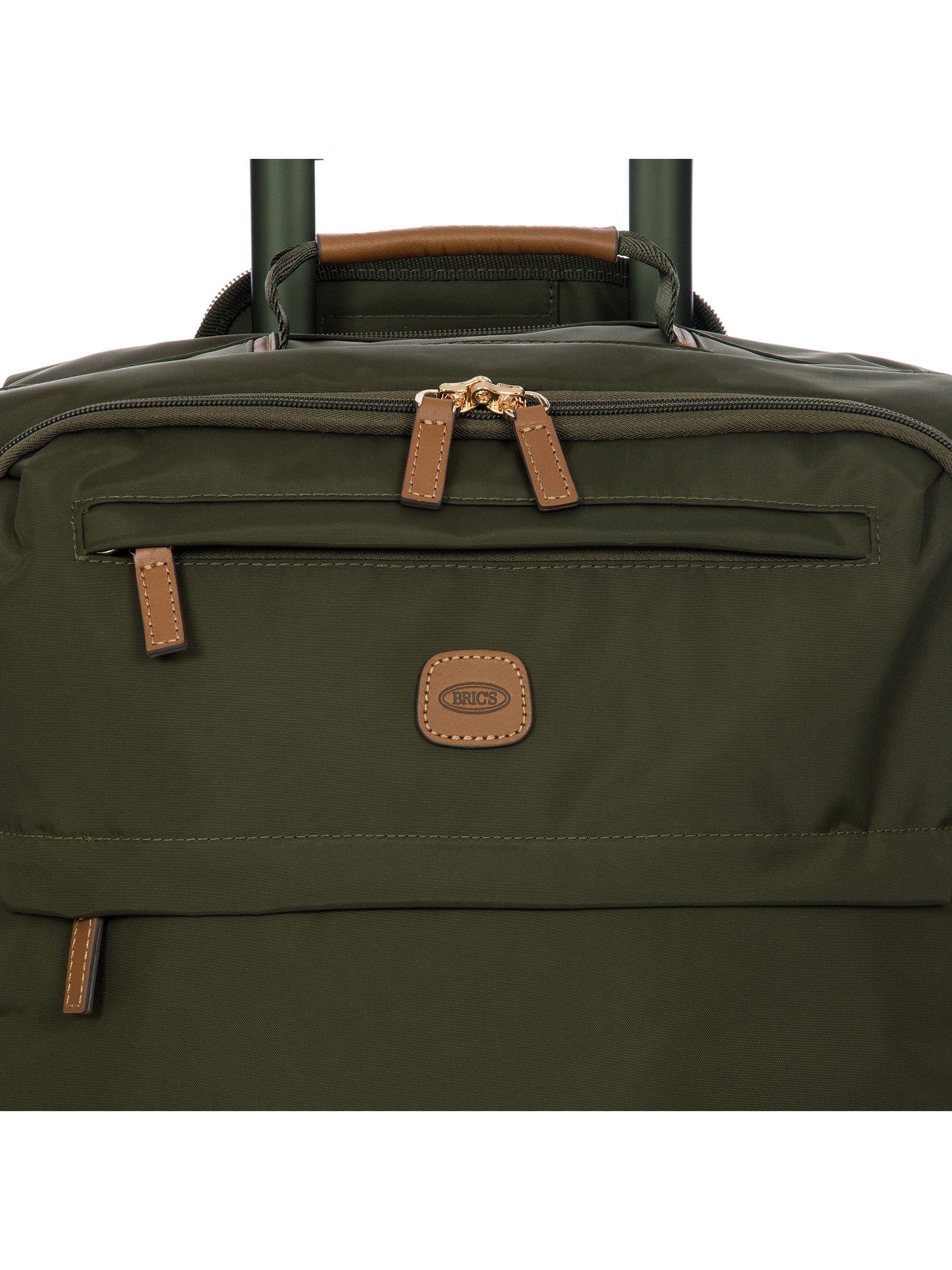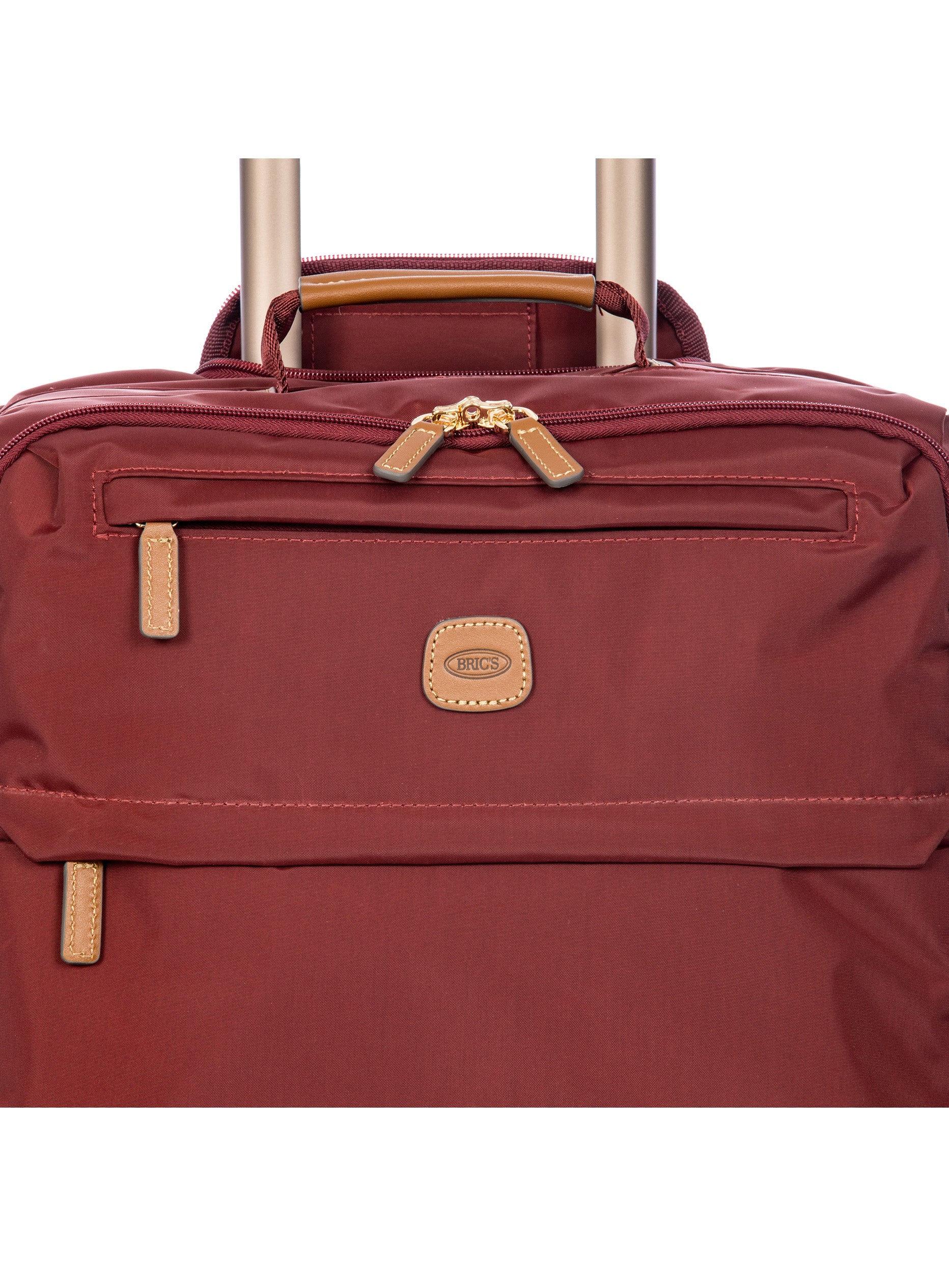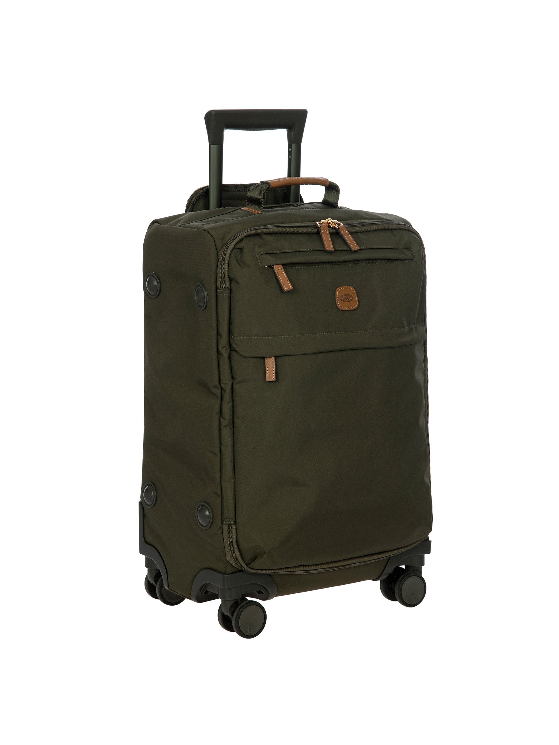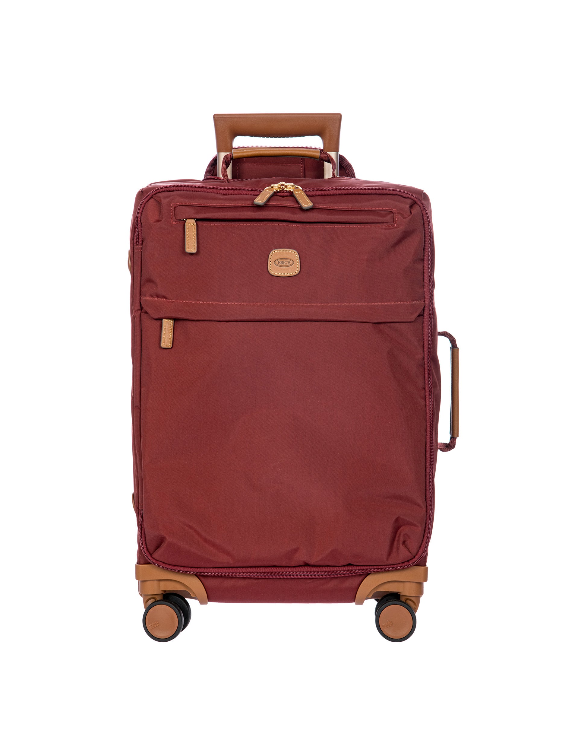 The 55 cm carry-on Trolley from the X-Collection is made of durable recycled fabric, water-resistant, with a rigid and lightweight internal structure. The main compartment is equipped with a zip with two sliders. It also includes two zipped front pockets, interior pockets and straps to help you organise your belongings. The wheels swivel to ensure smooth 360° movement, and are recessed to maximise the internal capacity of the trolley bag. Complete with an address tag and rings for a padlock (sold separately). The trolley bag features a padded handle on the top, four double silent wheels with bearings, sturdy and stable aluminium tubes, and an ergonomic handle for complete comfort. Finished with genuine leather details, one of Bric's signature design elements, and the brand's logo.