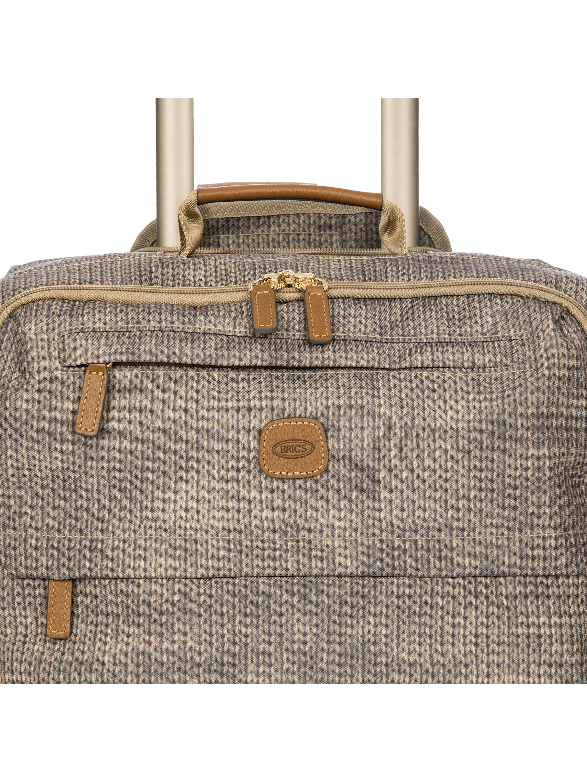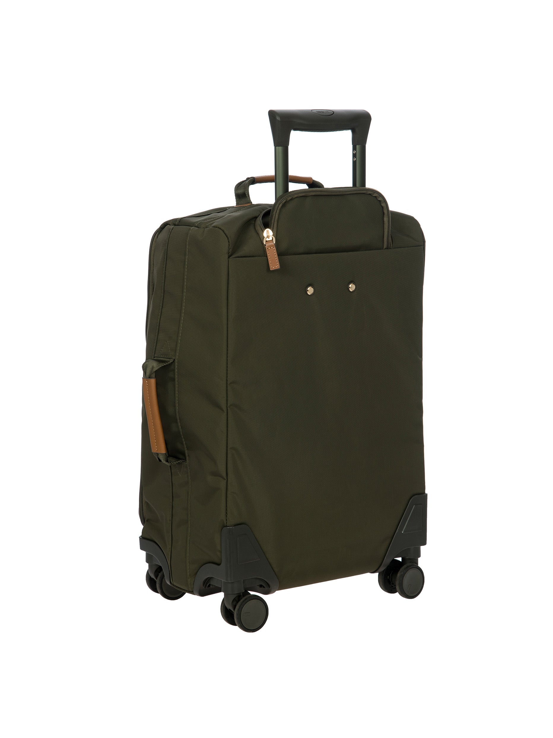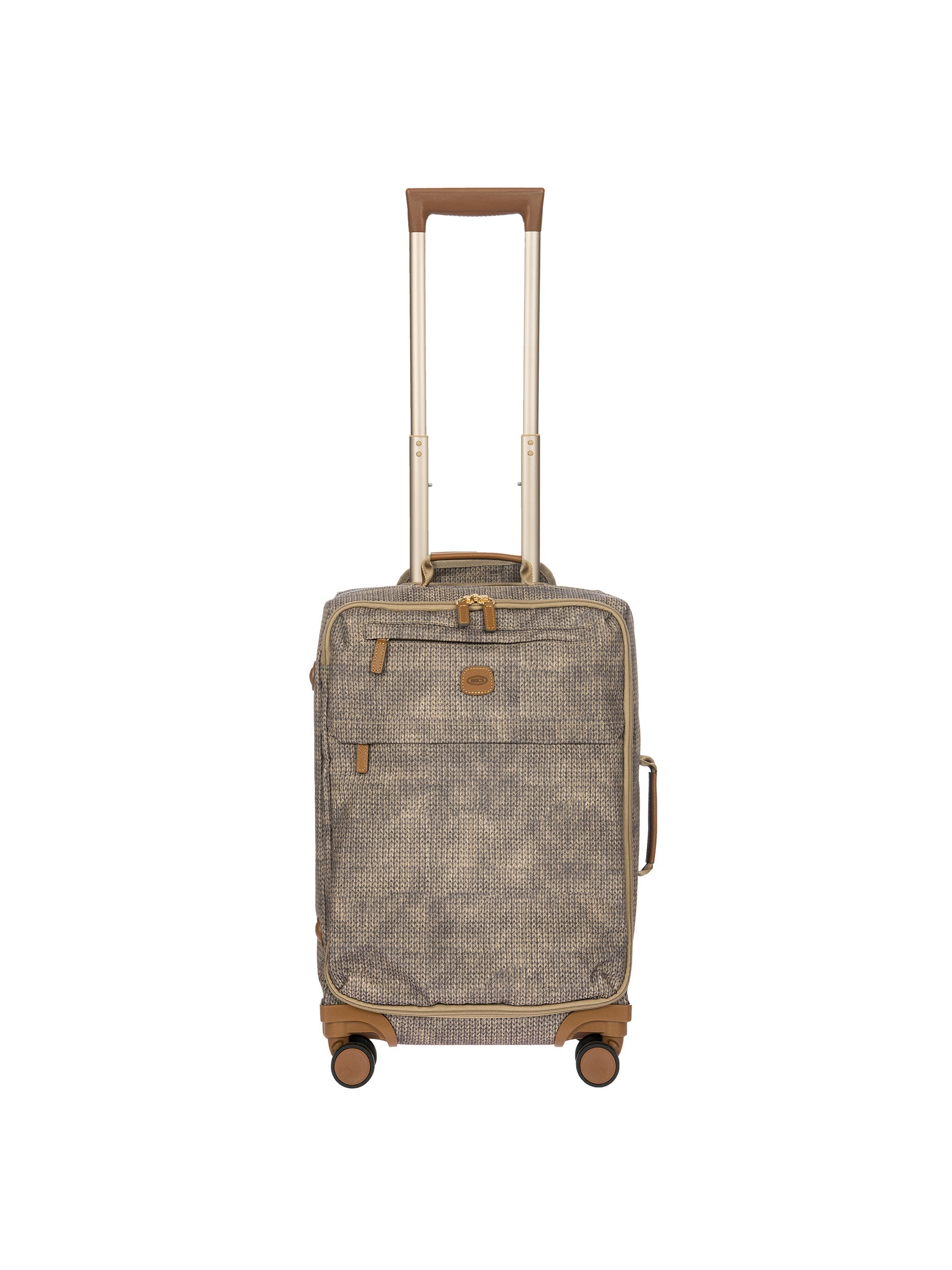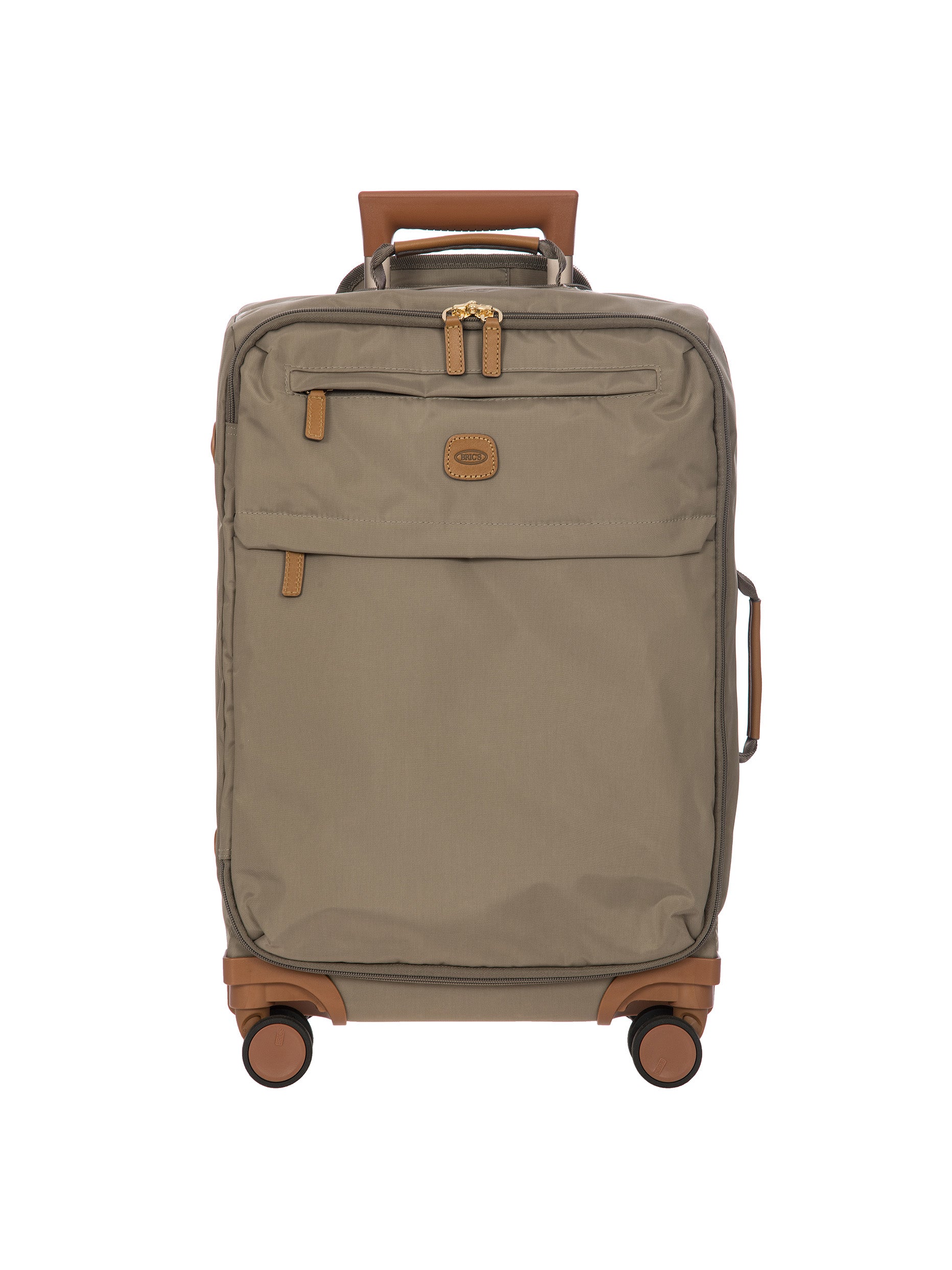 The 55 cm carry-on Trolley from the X-Collection is made of durable recycled fabric, water-resistant, with a rigid and lightweight internal structure. The main compartment is equipped with a zip with two sliders. It also includes two zipped front pockets, interior pockets and straps to help you organise your belongings. The wheels swivel to ensure smooth 360° movement, and are recessed to maximise the internal capacity of the trolley bag. Complete with an address tag and rings for a padlock (sold separately). The trolley bag features a padded handle on the top, four double silent wheels with bearings, sturdy and stable aluminium tubes, and an ergonomic handle for complete comfort. Finished with genuine leather details, one of Bric's signature design elements, and the brand's logo.