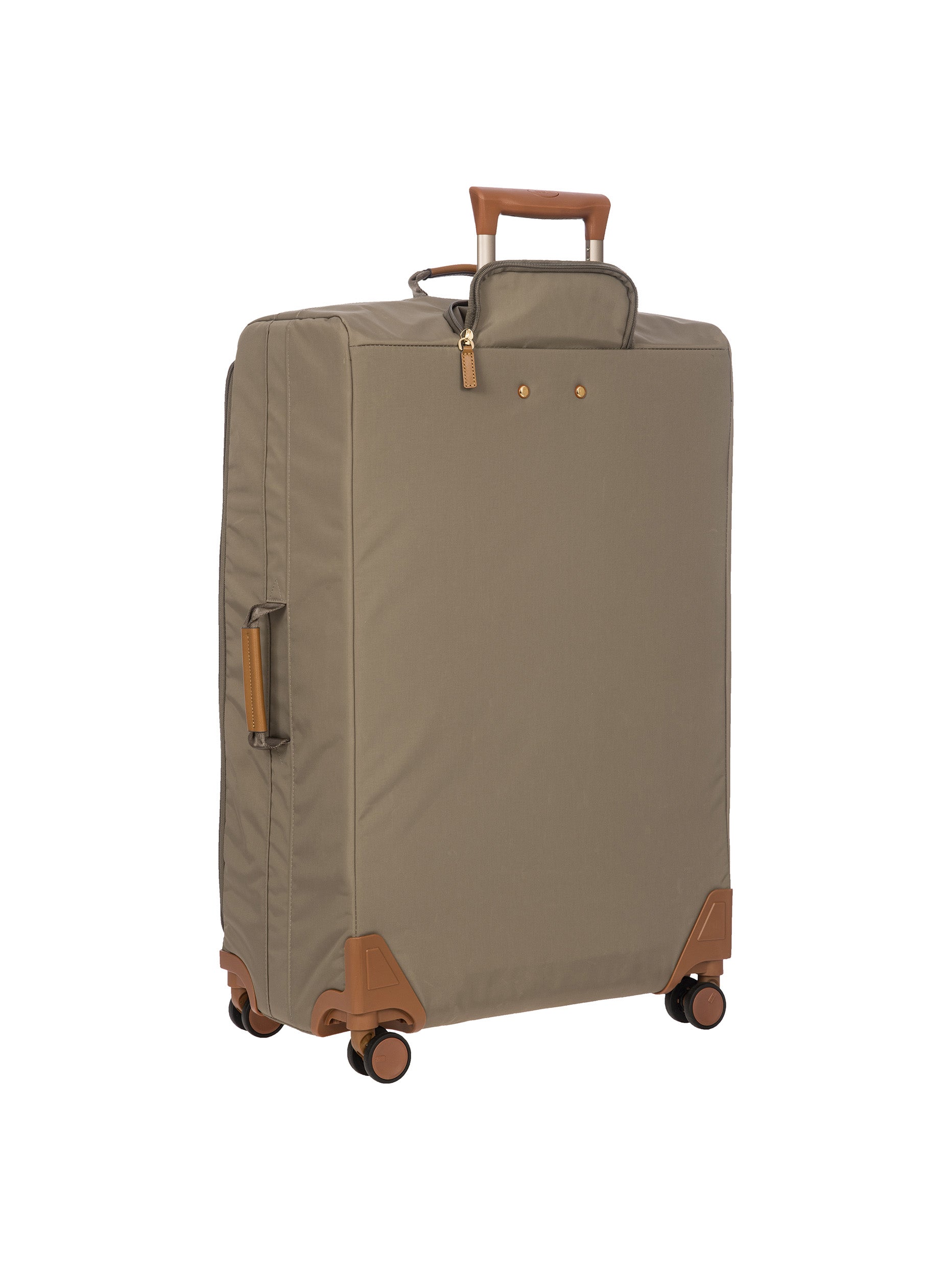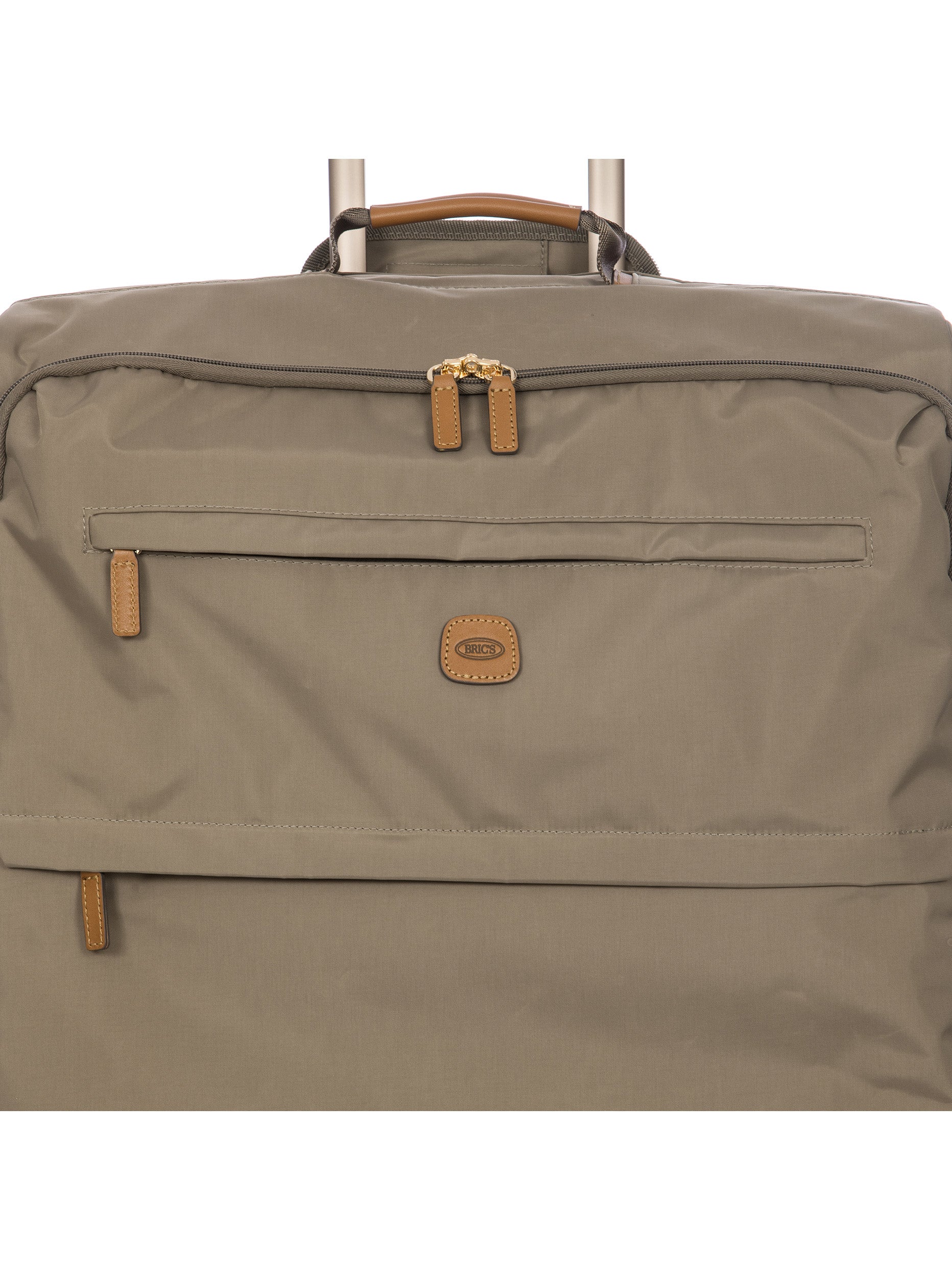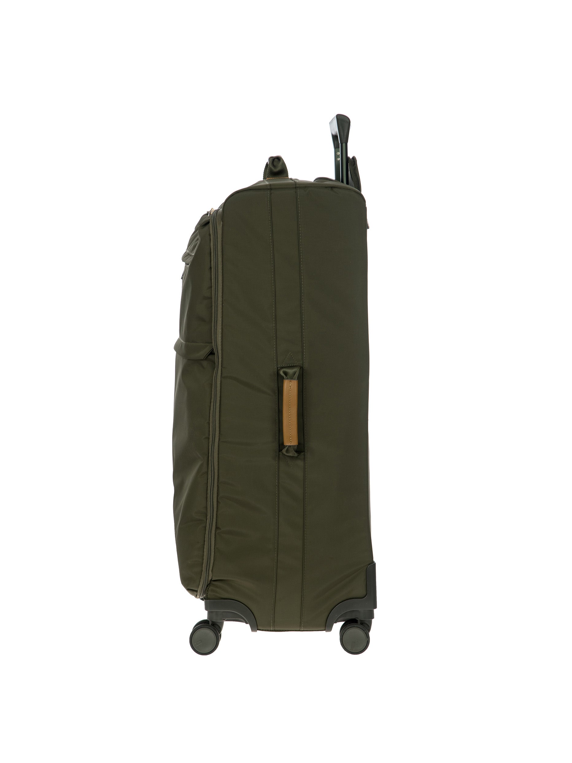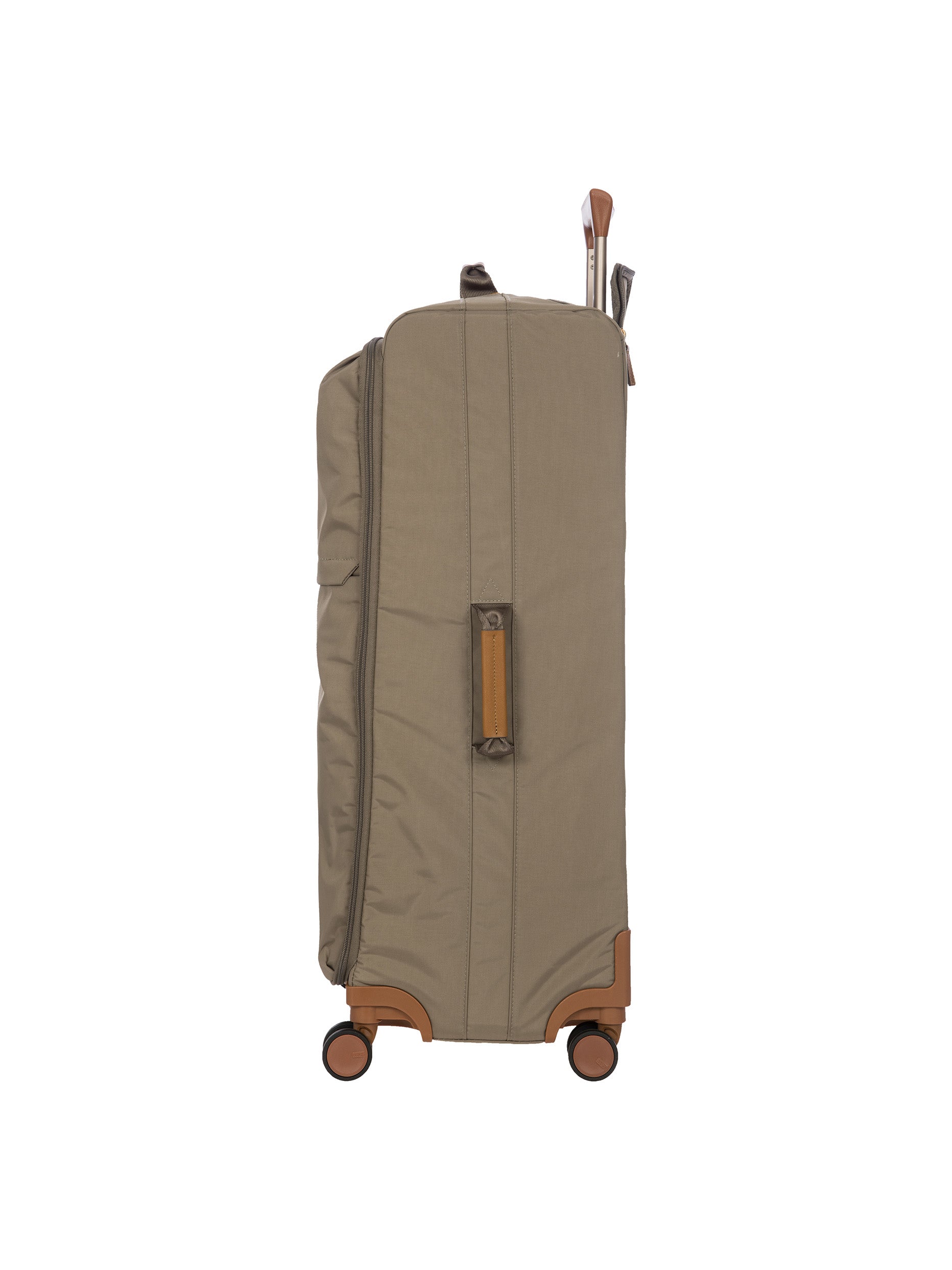 The 77 cm XL Trolley from the X-Collection is made of durable recycled fabric, water-resistant, with a rigid and lightweight internal structure. The main compartment is equipped with a zip with two sliders. It also includes two zipped front pockets, interior pockets and straps to help you organise your belongings. The wheels swivel to ensure smooth 360° movement, and are recessed to maximise the internal capacity of the trolley bag. Complete with an address tag and rings for a padlock (sold separately). The trolley bag features a padded handle on the top, four double silent wheels with bearings, sturdy and stable aluminium tubes, and an ergonomic handle for complete comfort. Finished with genuine leather details, one of Bric's signature design elements, and the brand's logo.
