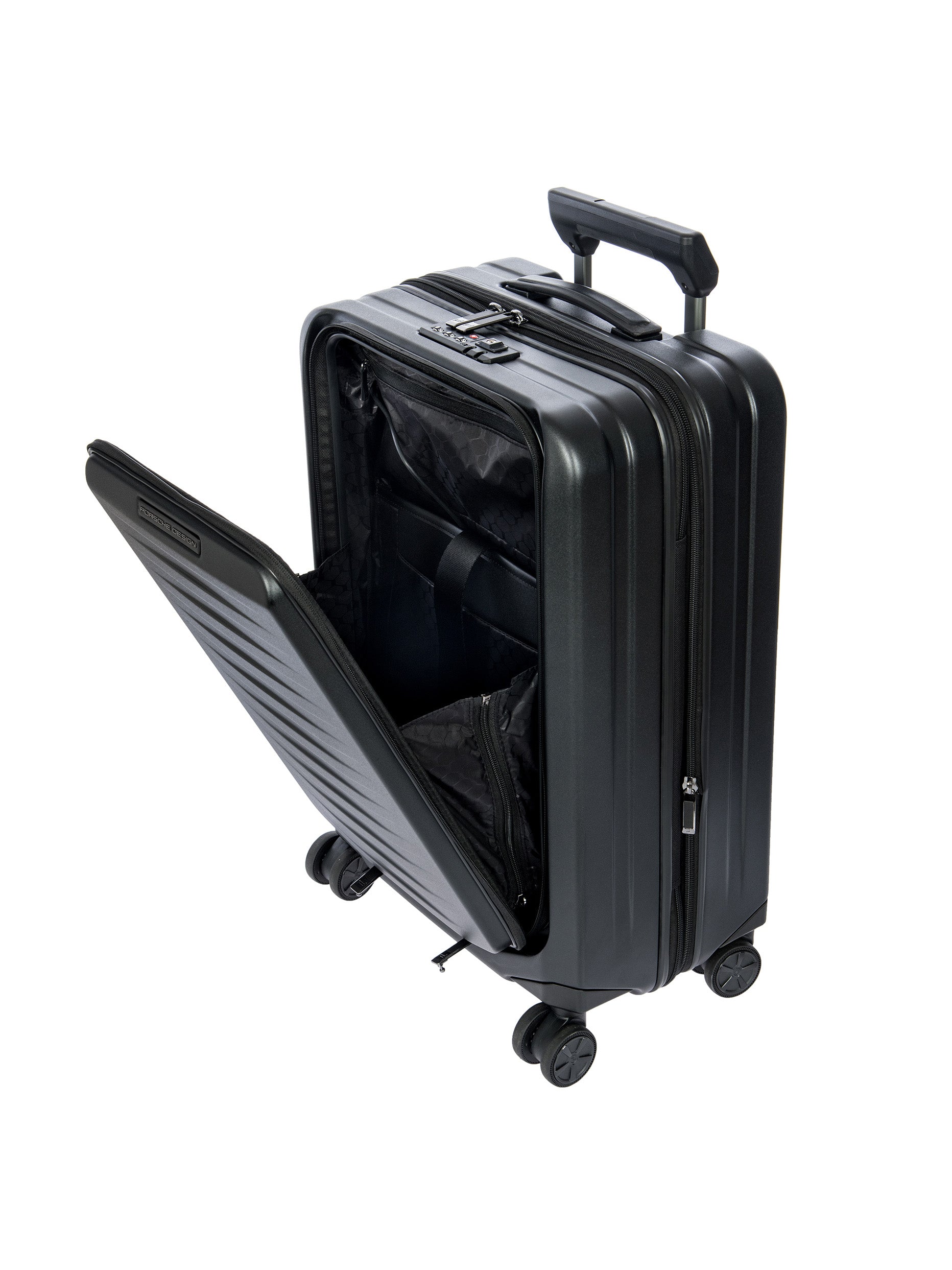 Ultra-light and inspired by the colors of the Porsche cars: the Roadster Hardcase collection. The polycarbonate luggage series developed by the Studio F.A. Porsche is the perfect fusion of form, function and design. The Porsche Design Roadster Hardcase 4W Business Trolley S in carry-on luggage size amazes with its well-thought-out construction, lightweight and with dynamic monochrome look with Porsche Signature details. The spacious front pocket with business organizer and USB plug-in offers ideal space for laptops, documents and extras that you may want to have quick access to at the airport.