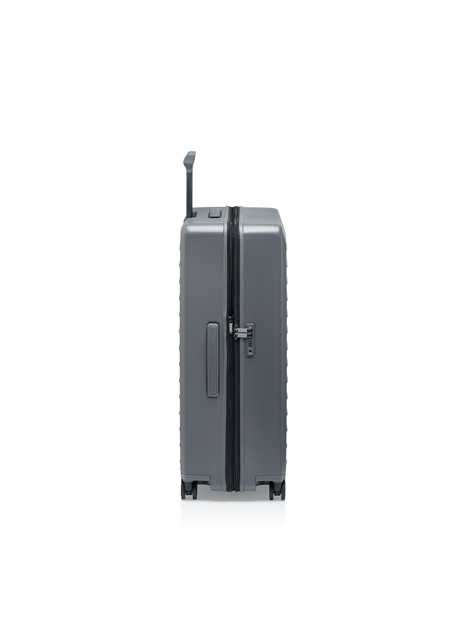 Ball bearing, smooth-rolling wheels in the style of Porsche Taycan rims and a multi-step, ergonomic handle provide for the perfect performance. Through the rounded edges of the handle, bags can be easily attached and removed. The divided interior is also flexible - and can be expanded at any time. An ultra-secure two-way zipper and a TSA lock protect your luggage.