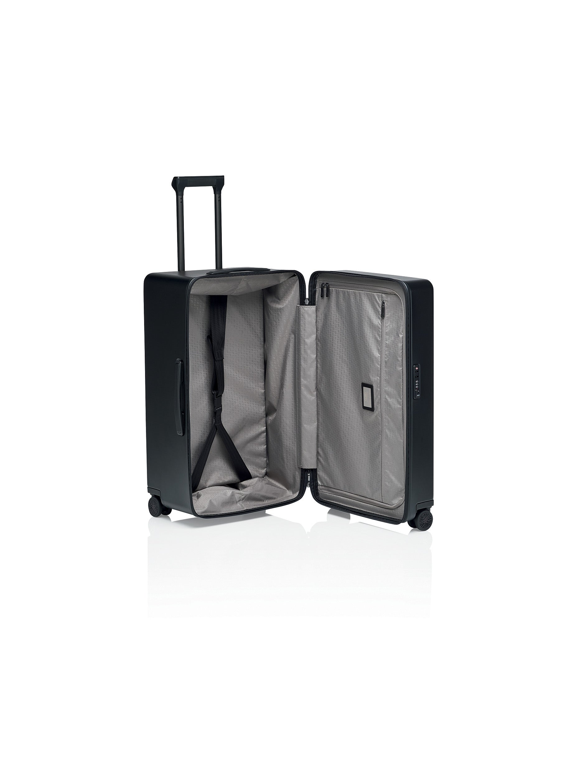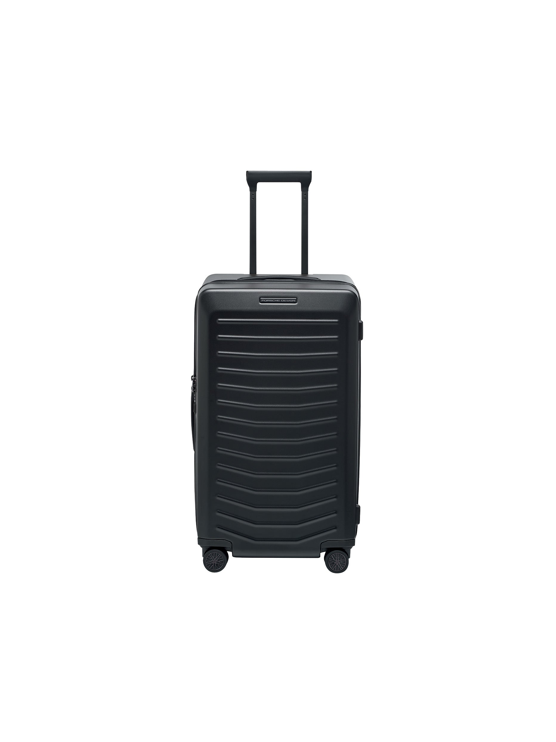 Ultra-light and inspired by the colors of the Porsche 911: the Roadster Hardcase collection. The polycarbonate luggage series developed by the Studio F.A. Porsche is the perfect fusion of form, function and design. The medium Porsche Design Roadster Hardcase 4W Trunk M amazes with its dynamic, monochrome look with Porsche Signature details - and modern proportions for optimal space when packing.