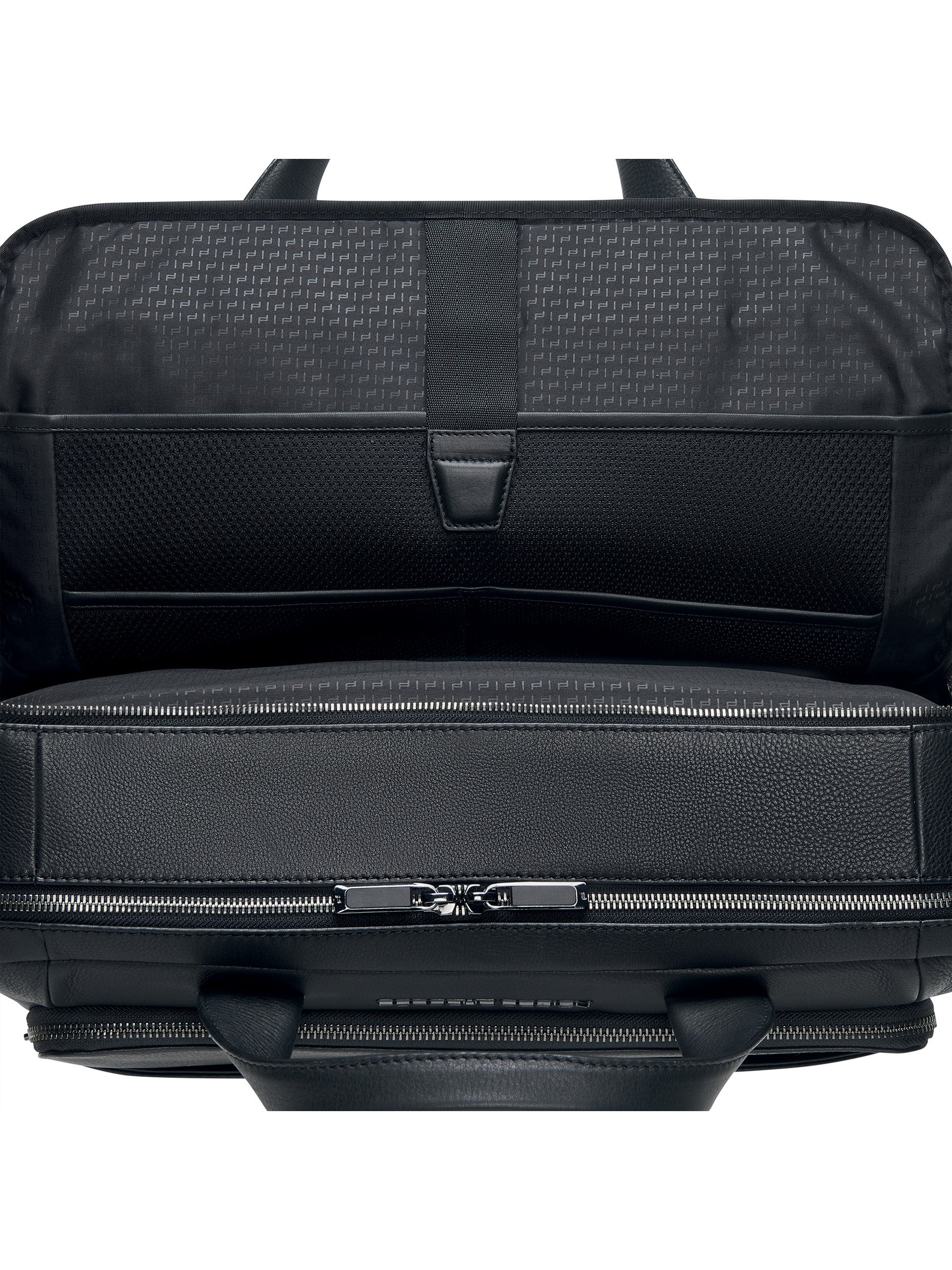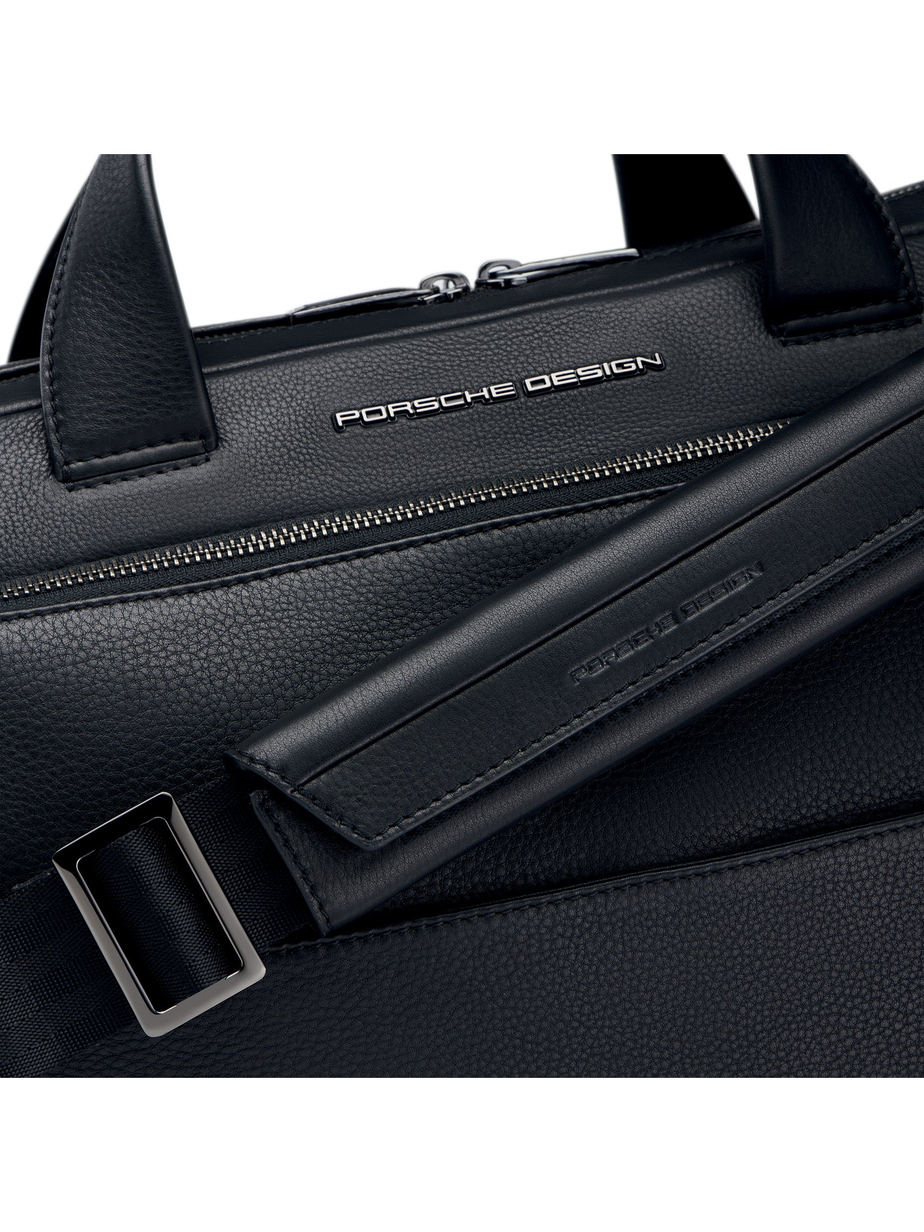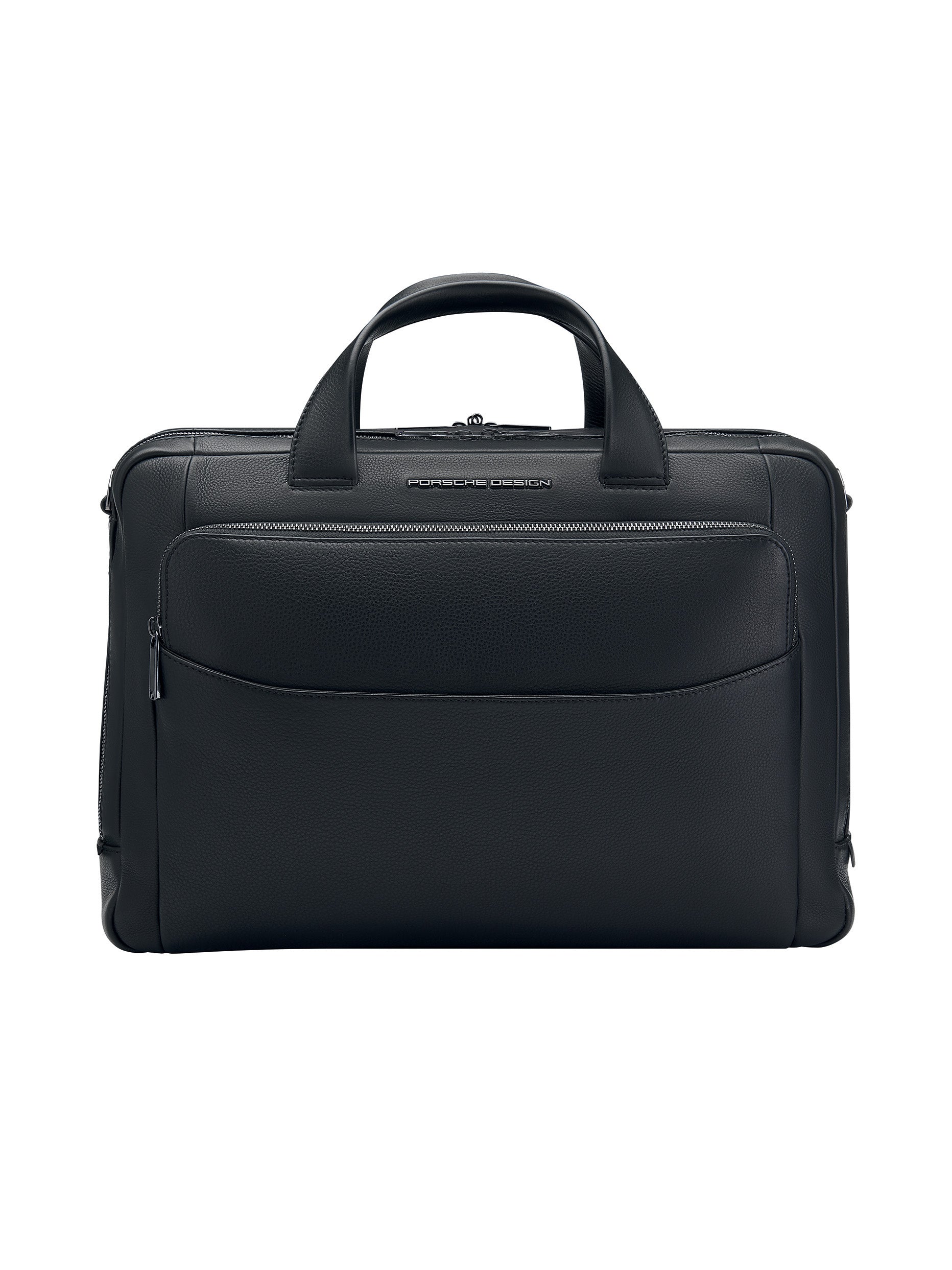 Soft, completely grained calfskin meets perfect amenities: the Porsche Design Roadster Leather collection was designed exclusively for the high demands of business travelers. The spacious Porsche Design Roadster Leather Briefcase M is the ideal briefcase for those who may have to carry along more materials sometimes. Behind the puristic design, just like all bags and backpacks from the series, you will find intelligent equipment full of options and details. The two spacious main compartments have an integrated 17" laptop case and a business organizer with karabiner can be found in the separate front pocket.