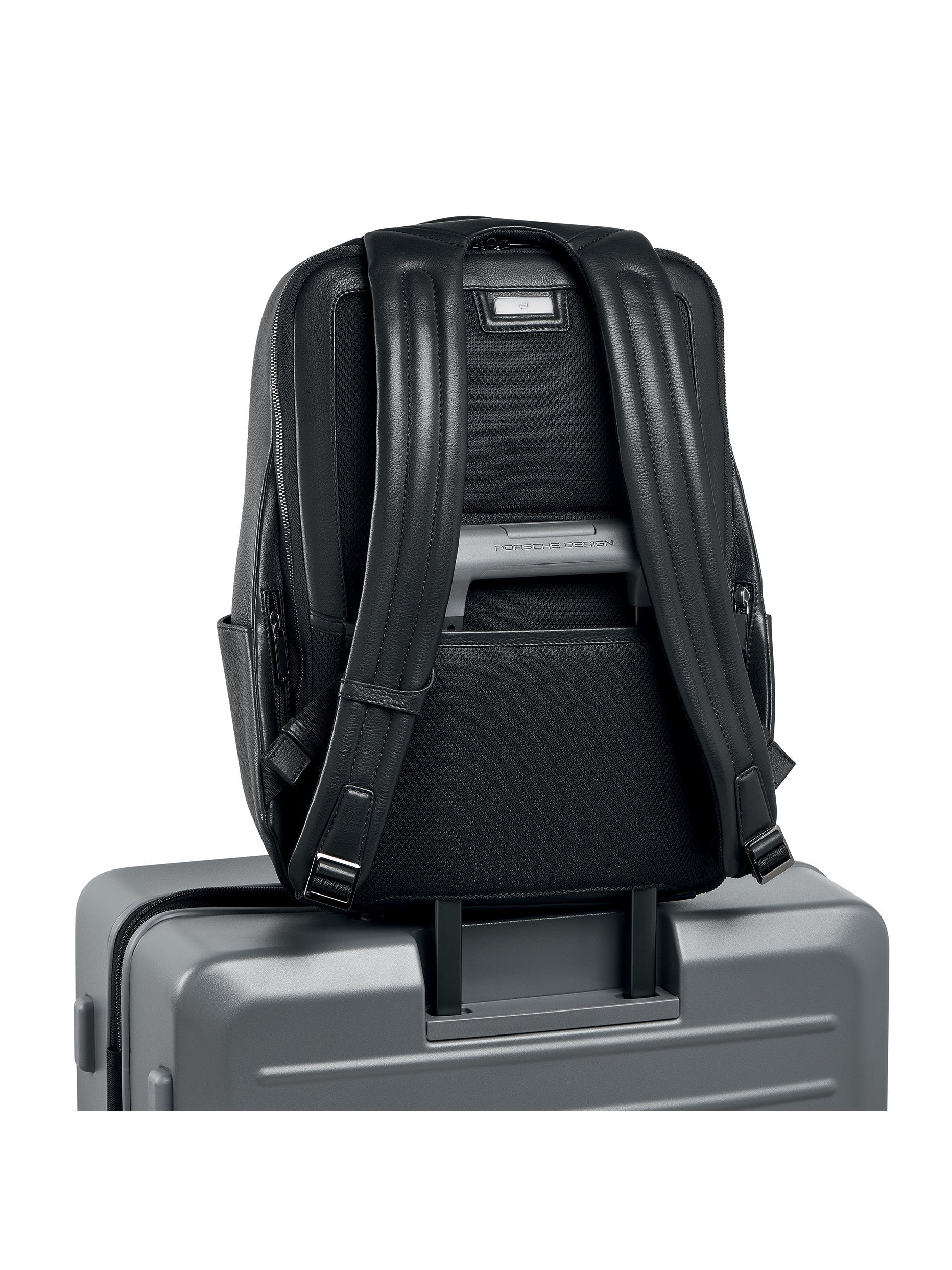 Soft, completely grained calfskin meets perfect amenities: the Porsche Design Roadster Leather collection was designed exclusively for the high demands of business travelers. The Porsche Design Roadster Leather Backpack M is the perfect implementation of the motto "Pure & Secure". A smart construction can be found behind the reduced design: access to the large main compartment with a 15" laptop compartment is provided on the backside underneath the padded shoulder straps. This means all of your items are securely protected - an essential advantage when traveling.