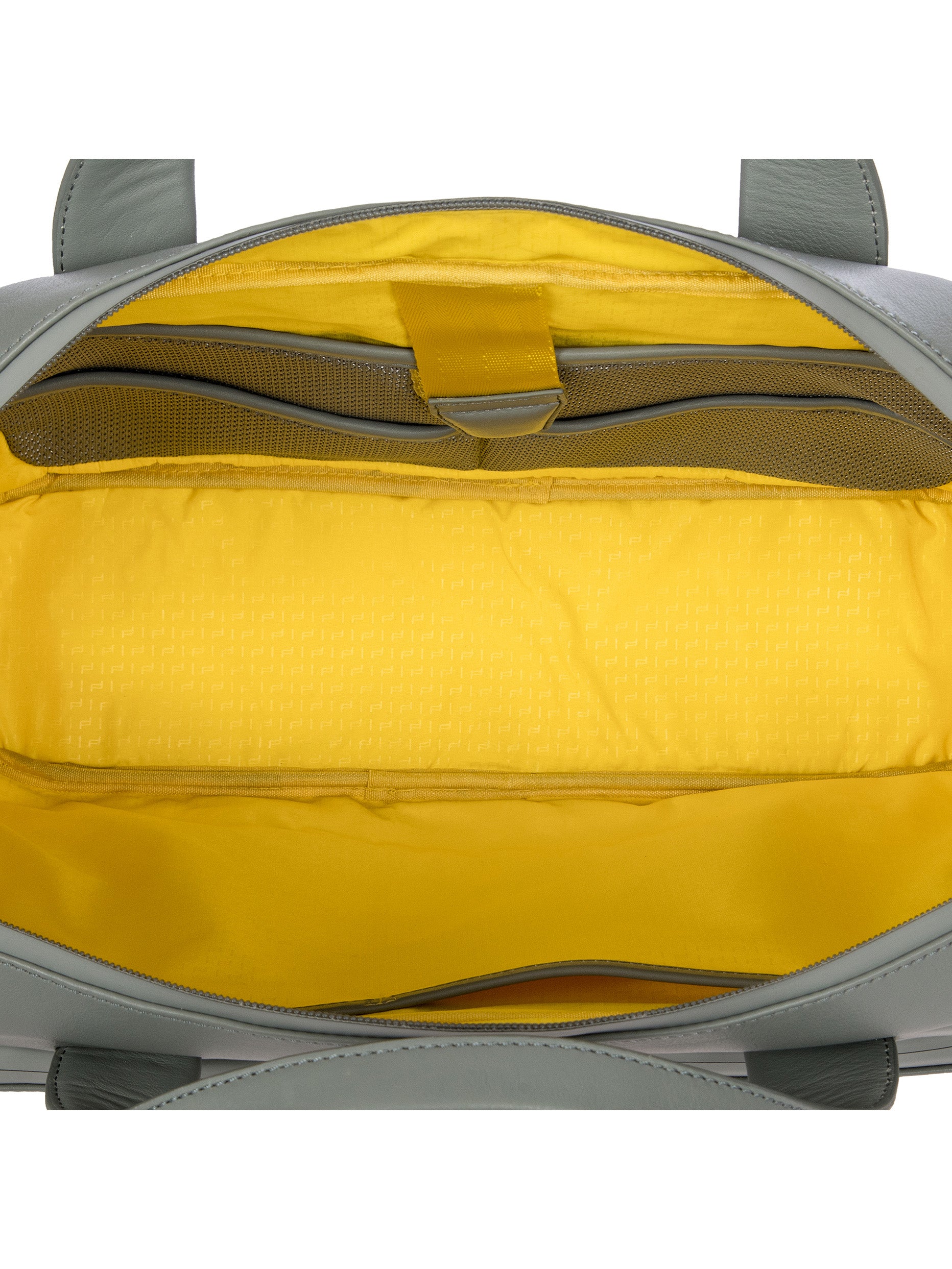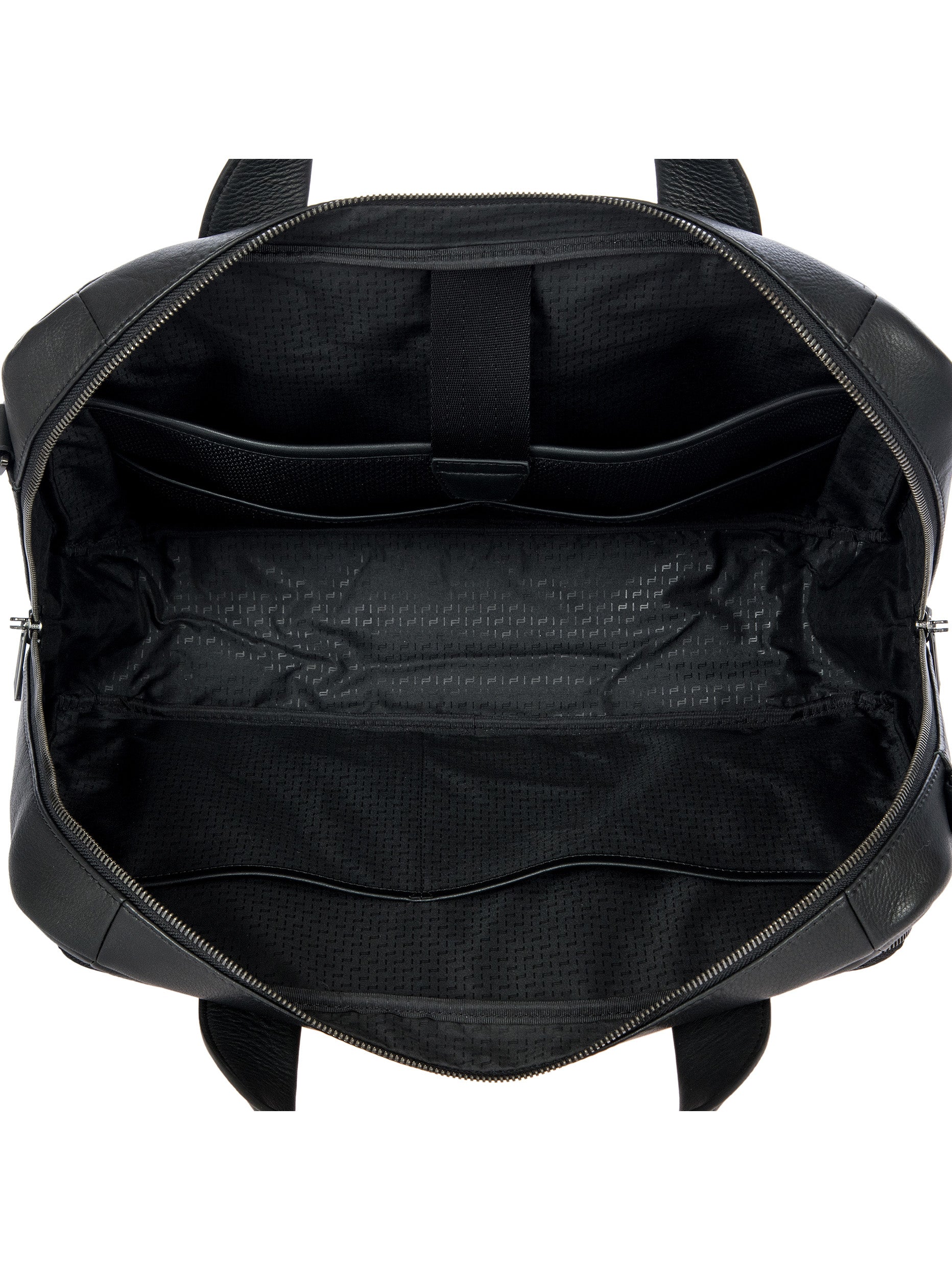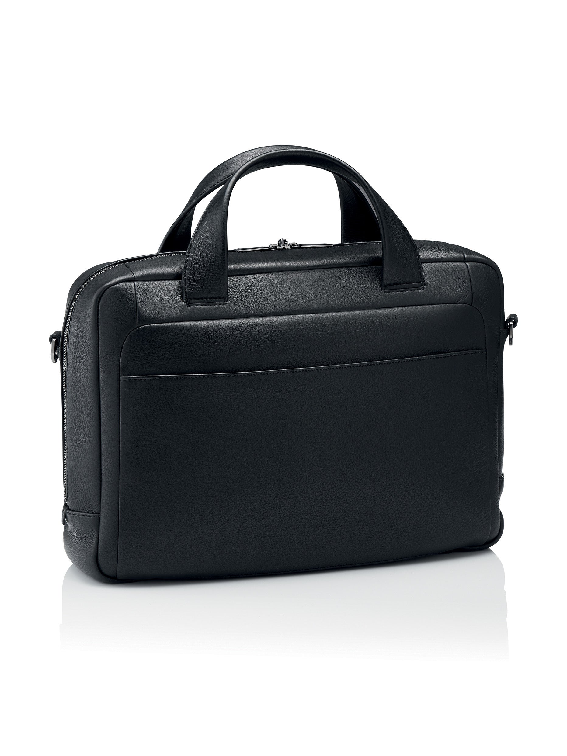 There is an integrated 15" laptop pocket in the spacious main compartment with two-way zipper. The separately accessible front pocket has a business organizer. The back trolley sleeve makes flying more comfortable. You can also wear the bag using the padded shoulder strap for shorter trips or you can carry it casually by hand. Maximum functionality in a timeless, puristic form.