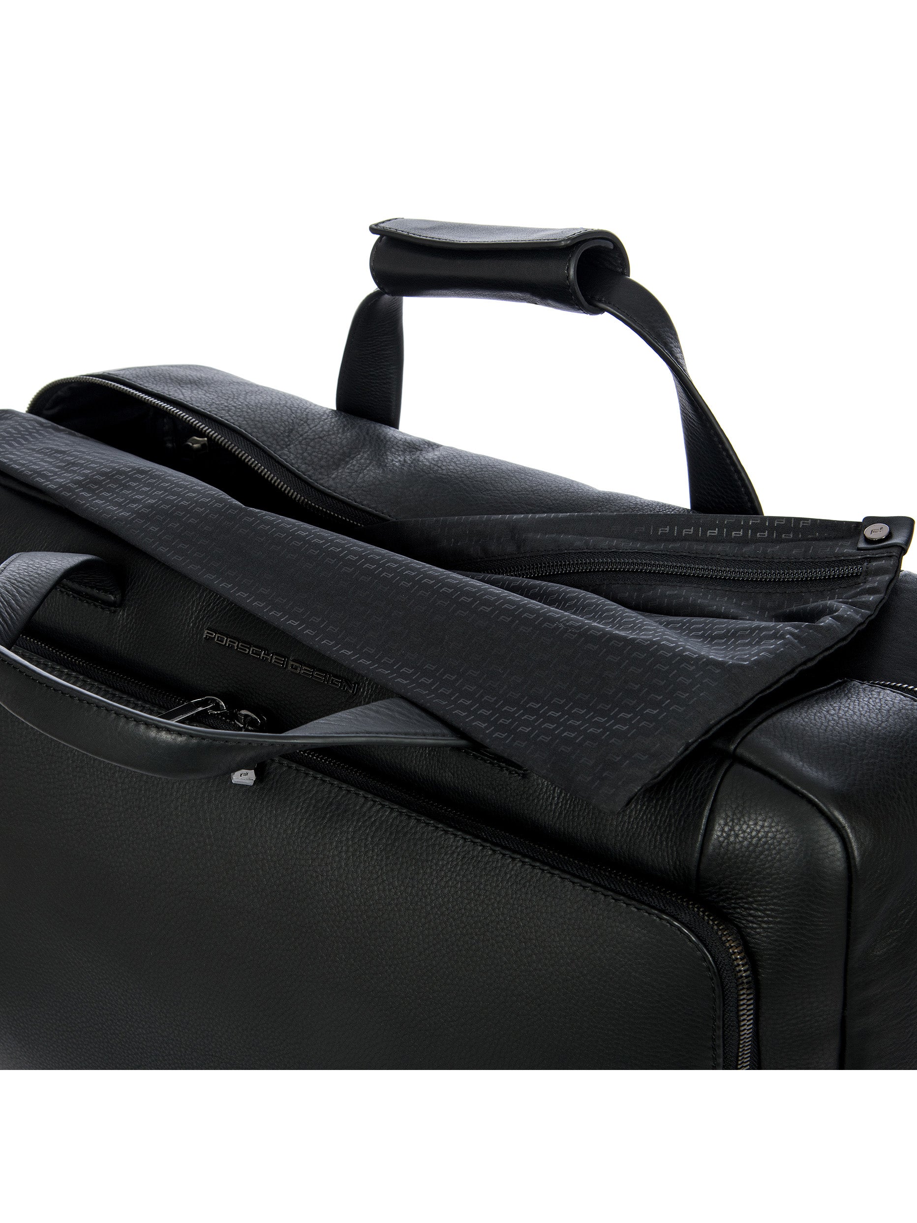 Soft, completely grained calfskin meets perfect amenities: the Porsche Design Roadster Leather collection was designed exclusively for the high demands of business travelers. The Porsche Design Roadster Leather Weekender is the stylish alternative to a trolley. Compact in format, high-quality finishing, smart details. The main compartment is accessible through a large zipper.