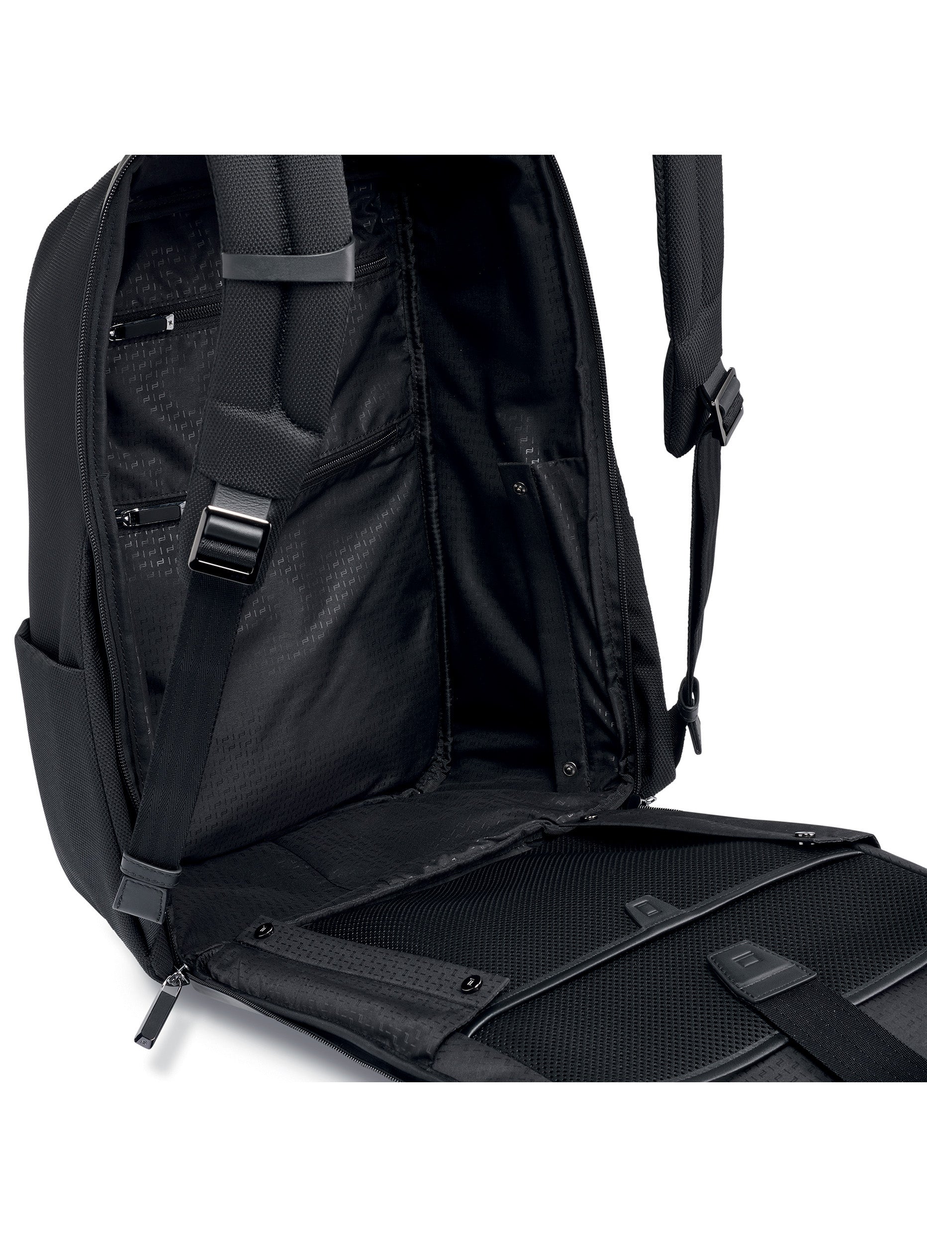 The Porsche Design Roadster Nylon collection convinces through intelligent functionality and an exclusive technical design. The combination of structured water-repellent nylon and significant smooth leather details does not just make the Porsche Design Roadster Nylon Backpack M an optical highlight - the modern business backpack is the perfect implementation of the motto "Pure & Secure".