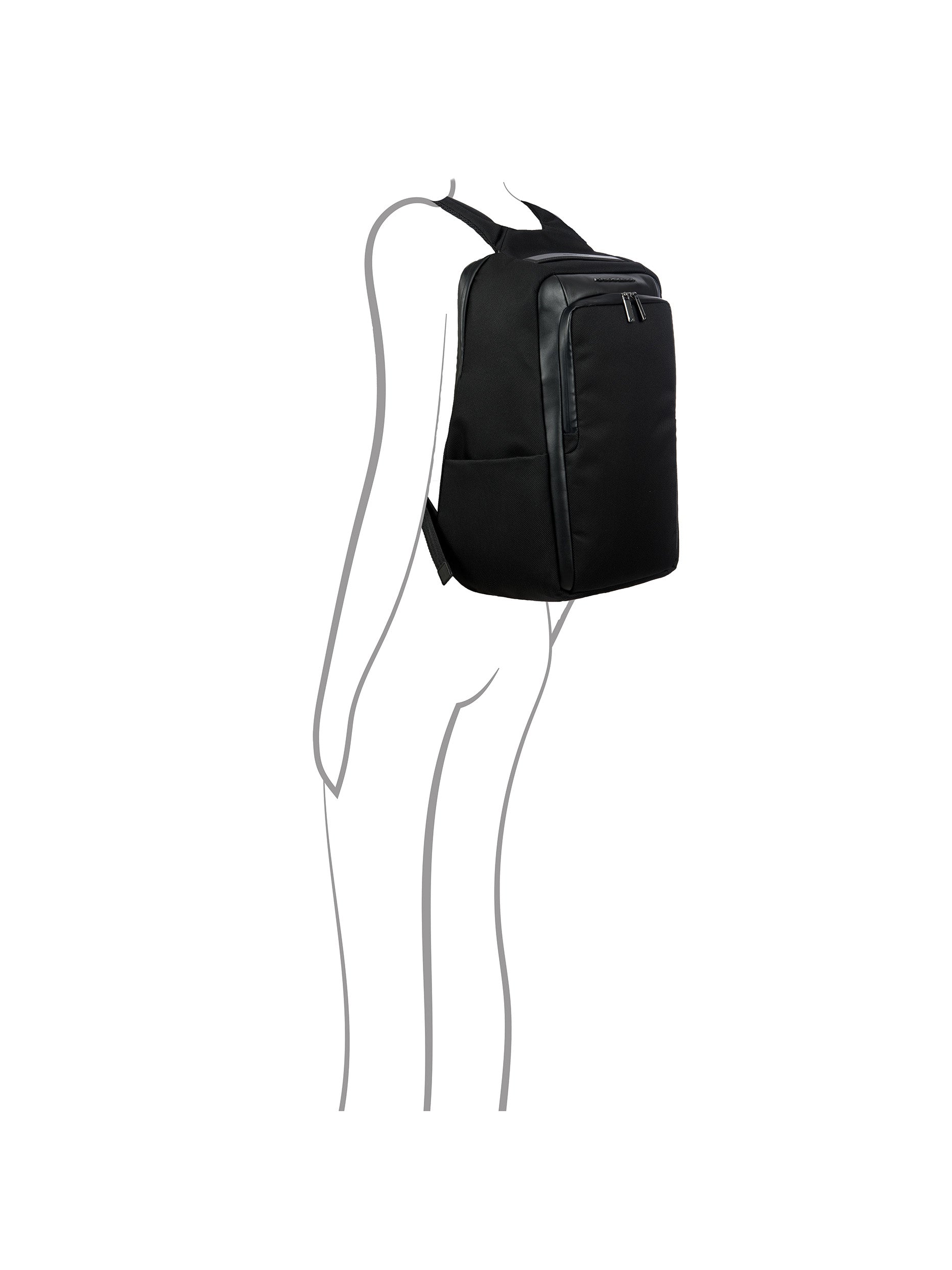 The large main compartment with a 15" laptop compartment can be accessed on the backside, underneath the padded shoulder straps. This means all of your items are securely protected - an essential advantage when traveling. The front compartment with business organizer holds all important small items. Valuables such as keys can be stored in the pocket hidden in the trolley link. The softly padded backside and padded shoulder straps make sure that the backpack can be worn comfortably.
