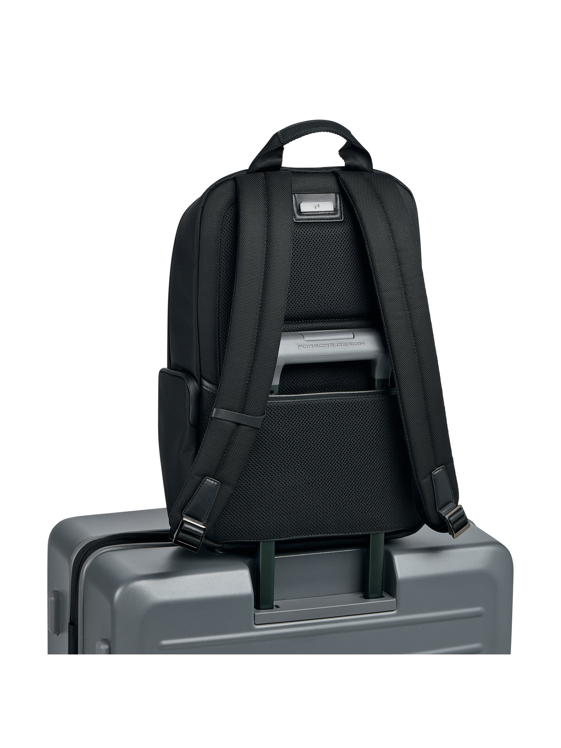 The Porsche Design Roadster Nylon collection convinces through intelligent functionality and an exclusive technical design. The combination of structured water-repellent nylon and significant smooth leather details does not just make the Porsche Design Roadster Nylon Backpack S an optical highlight, but rather extremely durable as well. Just like all bags and backpacks from this series, the construction was exactly matched to the needs of modern, dynamic day-to-day life. Your 13" laptop can find a secure spot in an integrated laptop compartment found in the large main compartment.