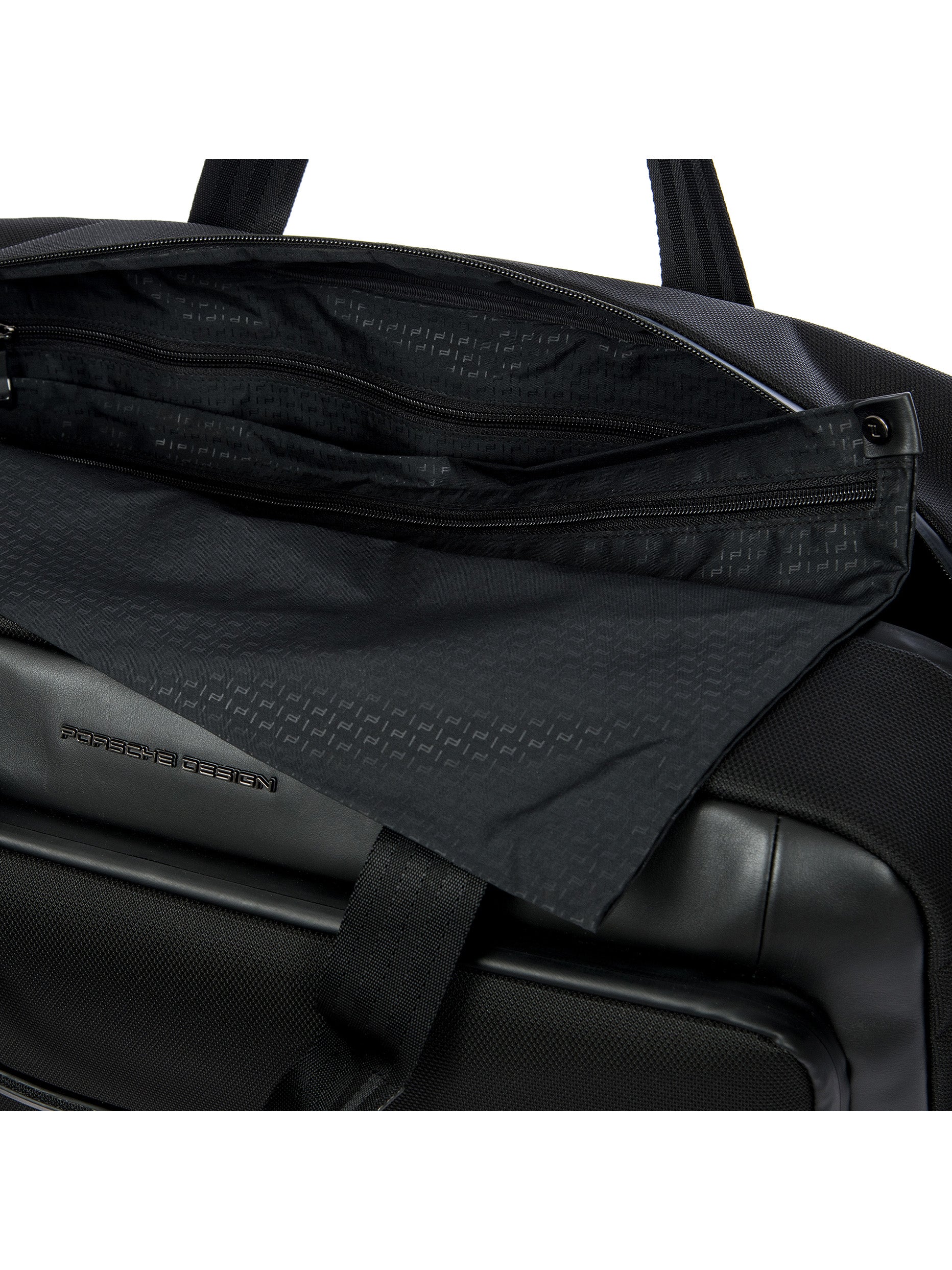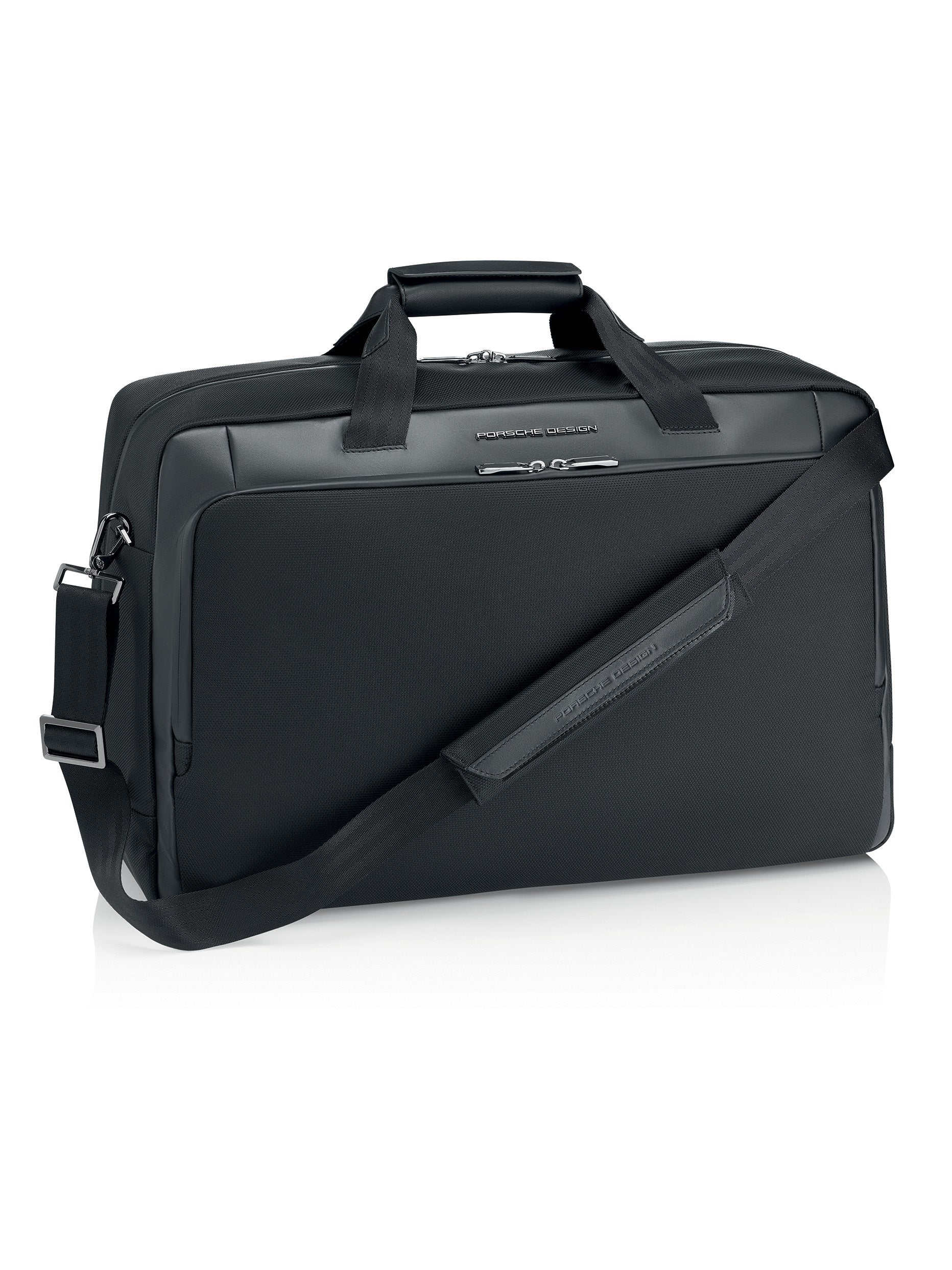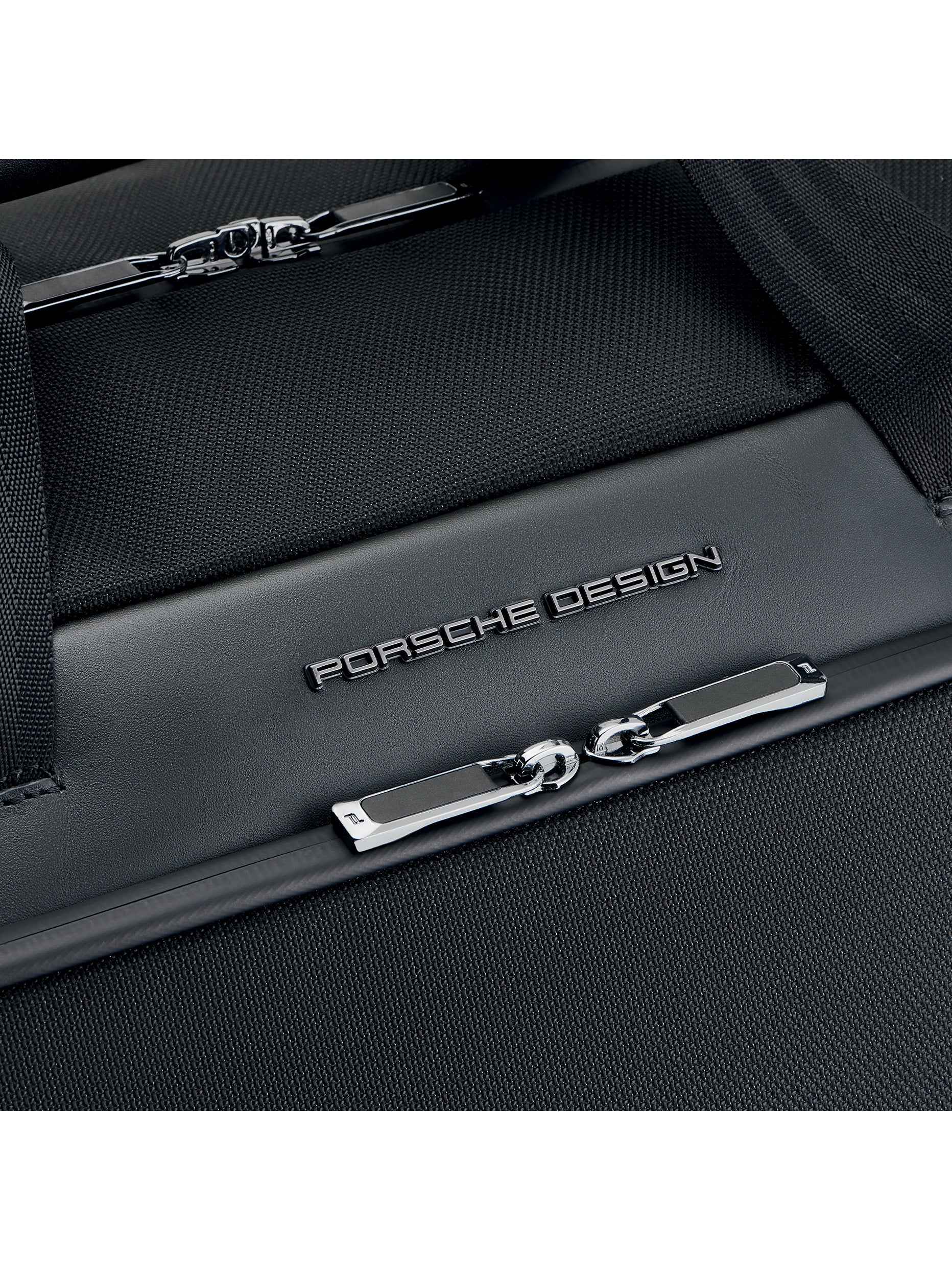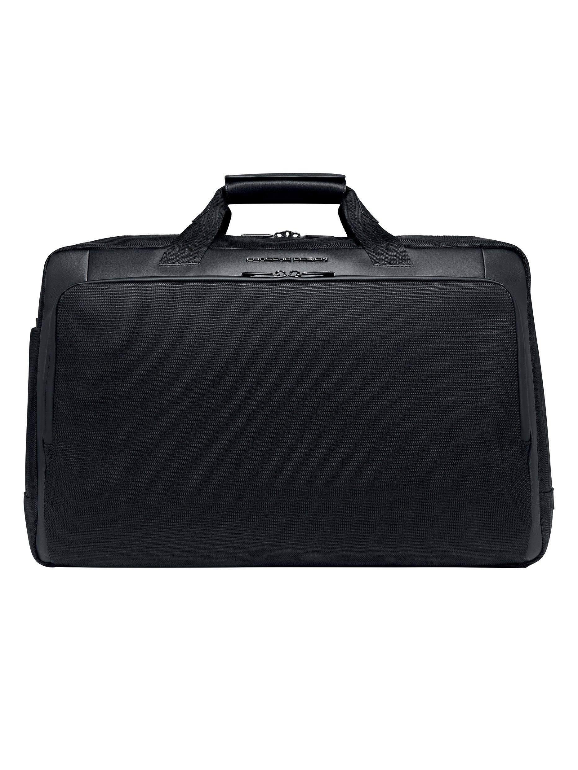 The Porsche Design Roadster Nylon collection convinces through intelligent functionality and an exclusive technical design. The combination of structured water-repellent nylon and significant smooth leather details makes the Porsche Design Nylon Weekender an optical highlight - and extremely durable. Just like all bags and backpacks from this series, the construction was exactly matched to the needs of modern, dynamic day-to-day business. The main compartment has additional zipper pockets inside.
