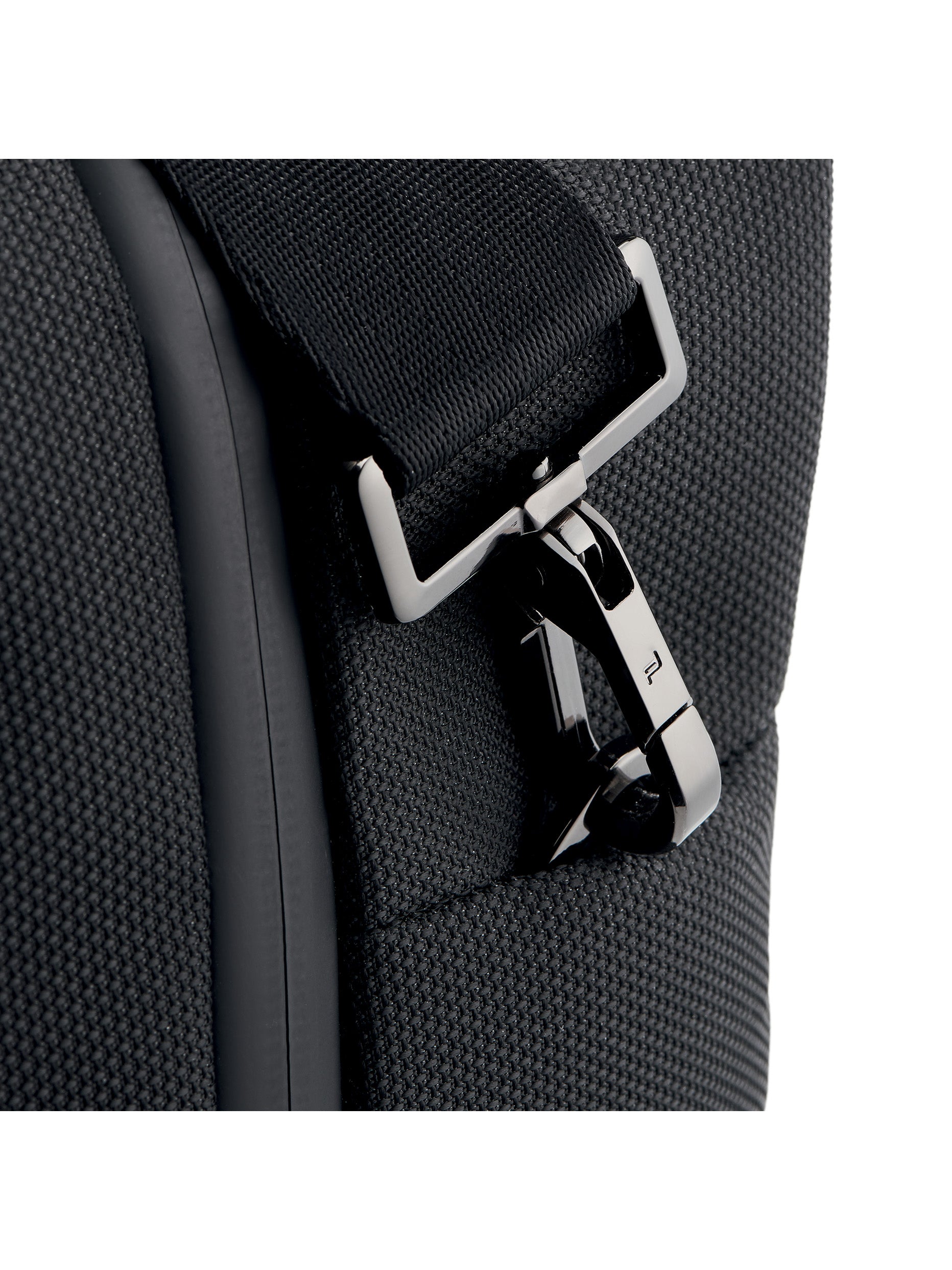 Porsche Design technical nylon fabric with PVC backing, with genuine calf leather and metal details. Lining: polyester fabric with heat printed Porsche Design icon logo on black color.. Clean delicately the stained area with a so and dry cloth. In case of greasy or persistent stain, use a small quantity of gentle degreaser. Do not use benzene or alcohol based products. Avoid ironing.