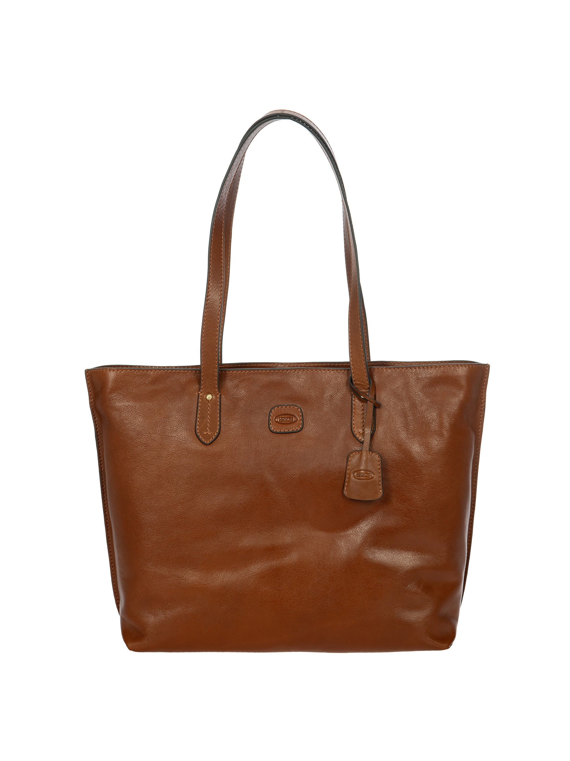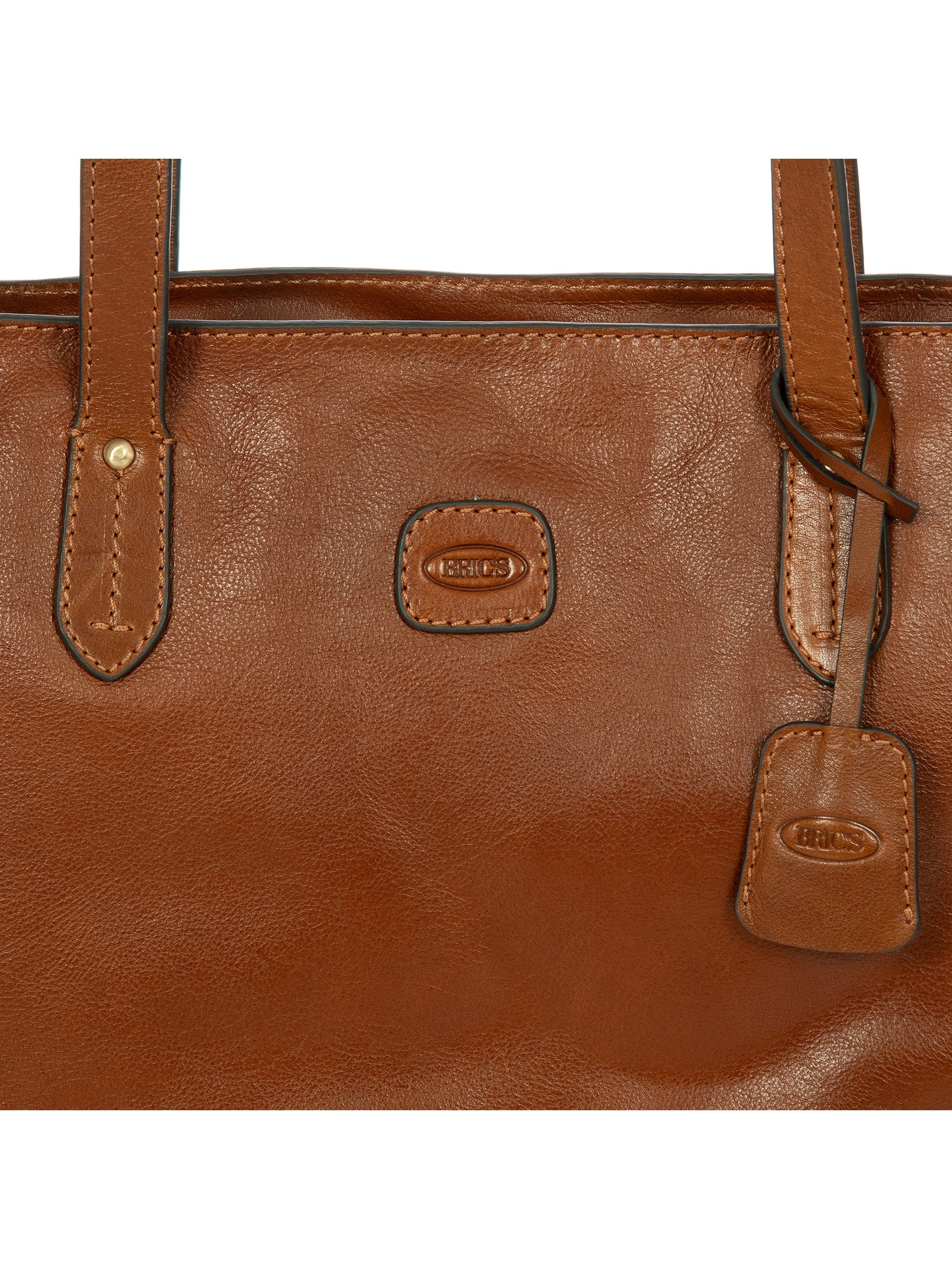 Every item in the Volterra Collection by Bric’s represents the natural elegance of exquisitely soft leather. Every seam, the rib-finish edges and the brushed gold hardware lend a handcrafted feel to the collection. This bag is perfect for everyday use: the inside is divided into roomy compartments lined in soft nubuck, while the shape is feminine. Its size is designed to hold all the objects you’ll need throughout the day -Double handles offer the option to carry it over the shoulder or by hand -Zip closure -Hidden zip pocket at the back to keep precious items close at hand -Practical inner pockets -Trimmed by a keychain charm