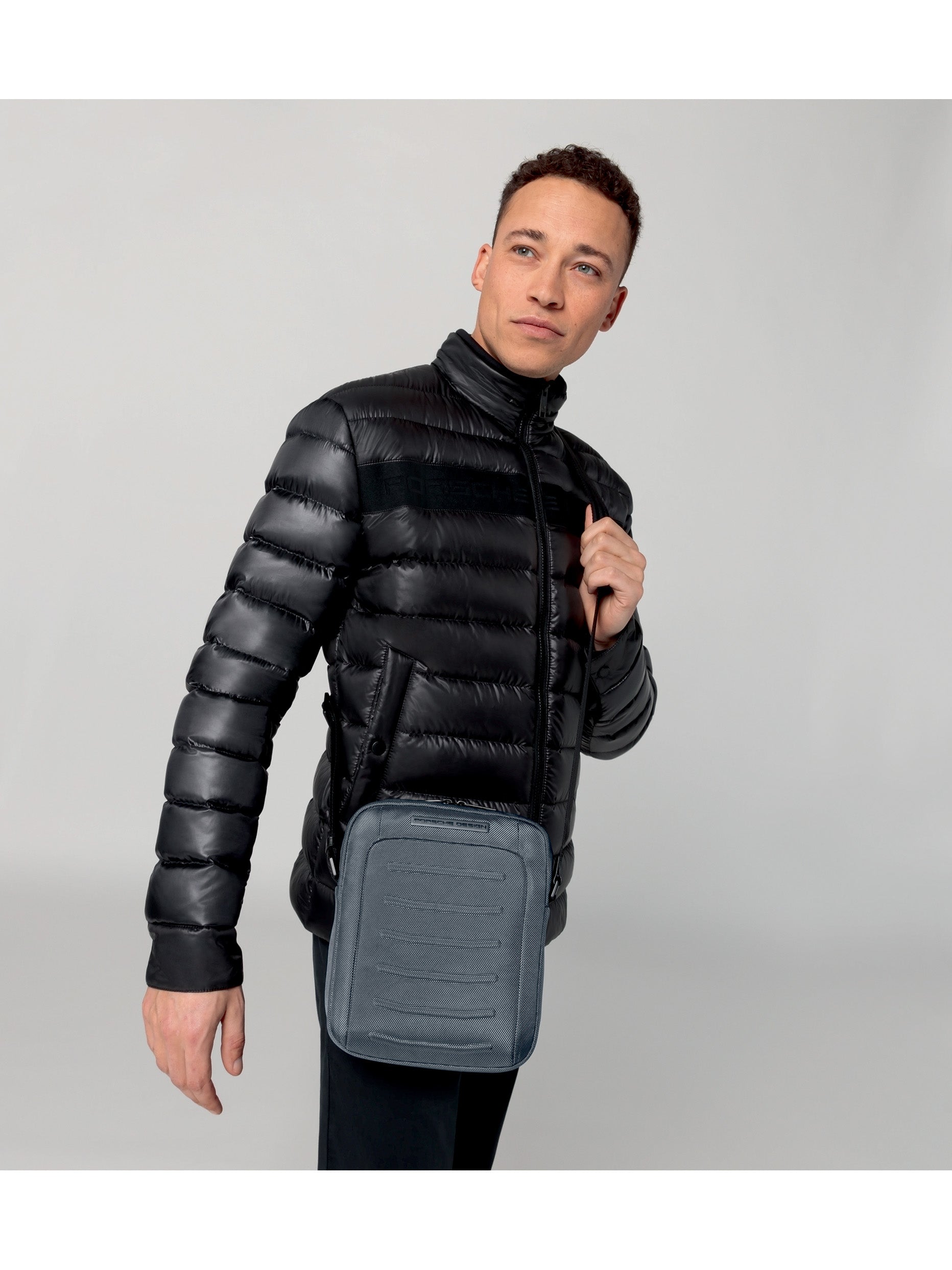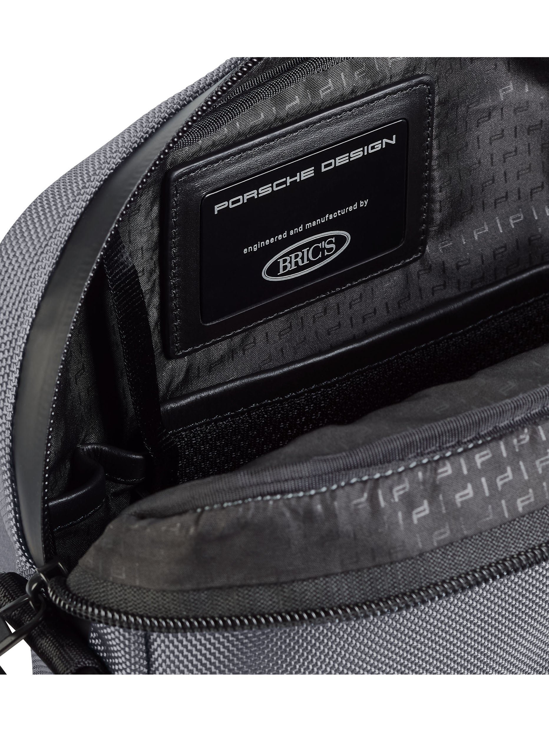 Porsche Design technical fabric with metal details. Lining: Polyester fabric with heat printed Porsche Design icon logo on black color.. Clean delicately the stained area with a so and dry cloth. In case of greasy or persistent stain, use a small quantity of gentle degreaser. Do not use benzene or alcohol based products. Avoid ironing.