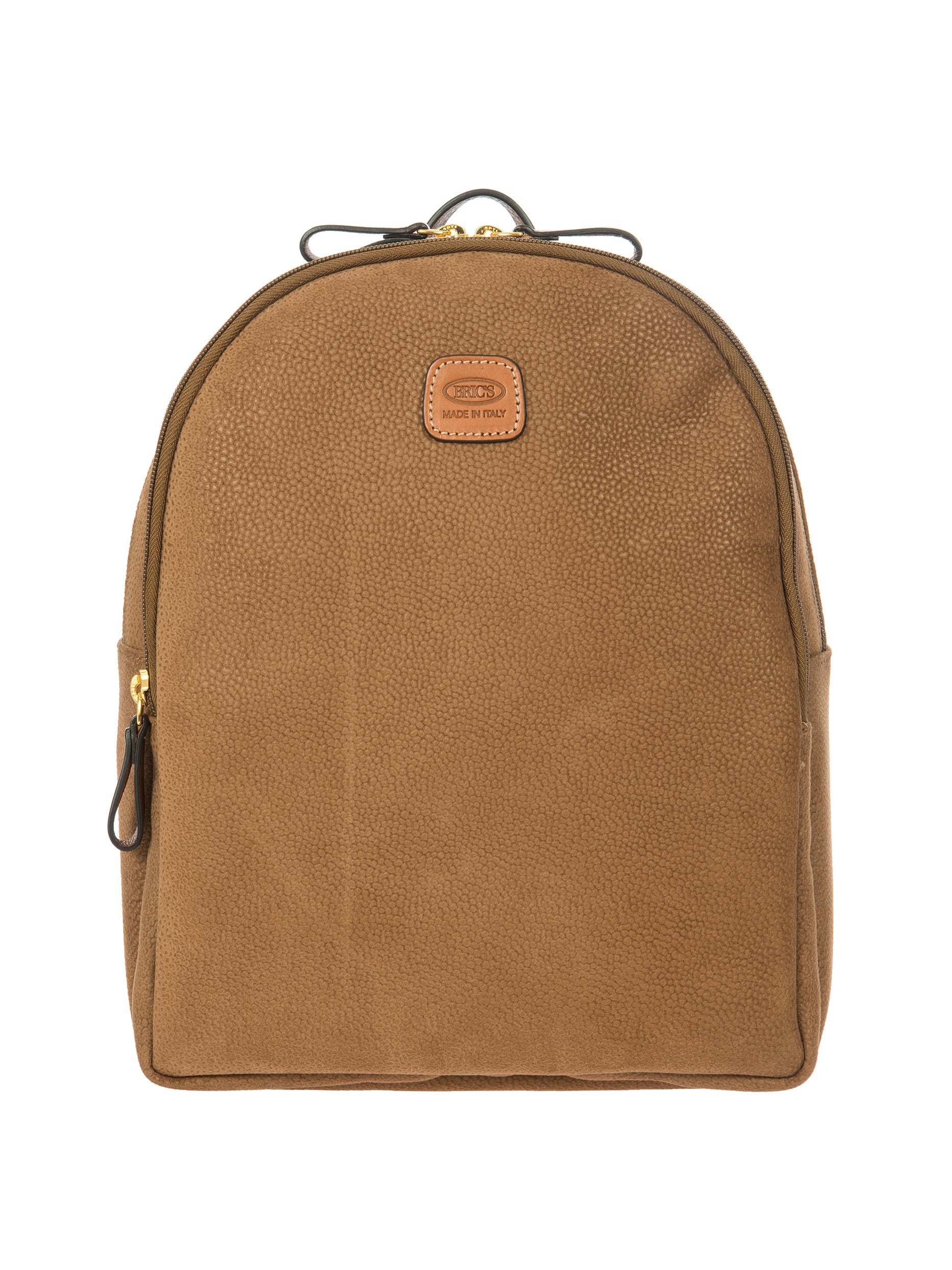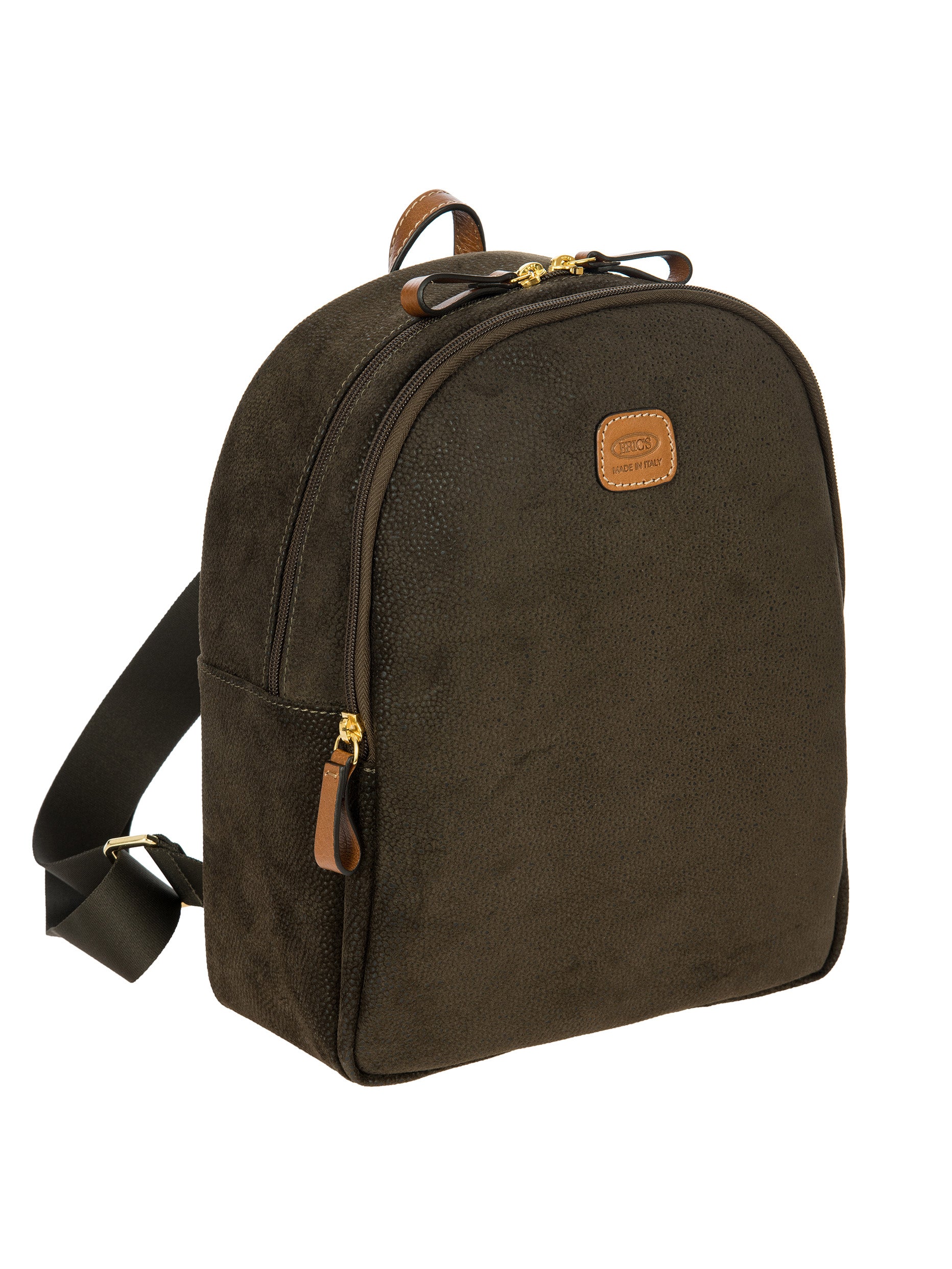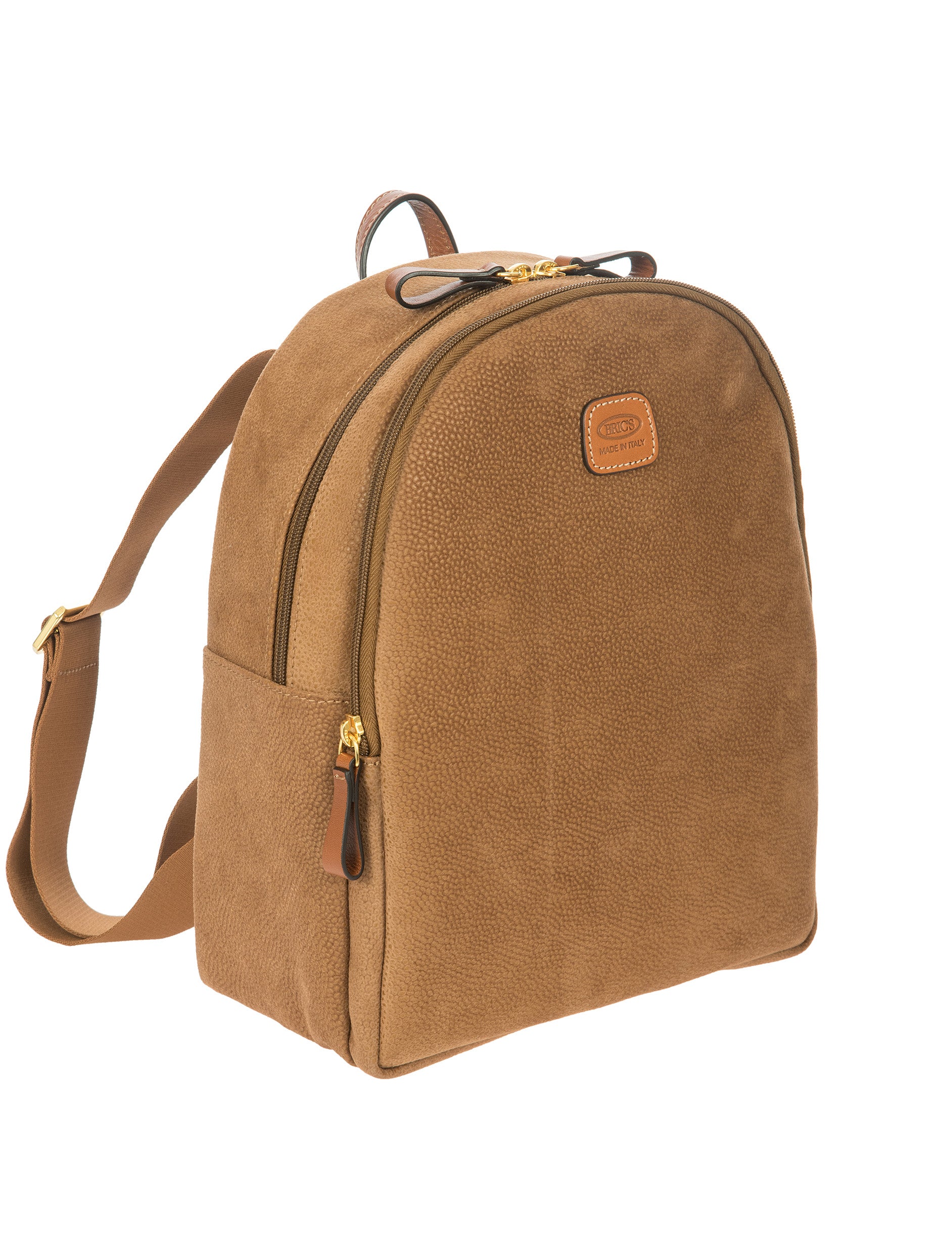 Designed and manufactured in Italy, the Serena backpack from the Life Collection is intended to last. Made from Bric's iconic suede-effect material, which is waterproof and very durable, it is the result of expert craftsmanship. The adjustable shoulder straps ensures it is comfortable to use, while the small handle on the top makes it easy to carry by hand. Its spacious and feminine design features a double compartment, ideal for everyday commitments, and two internal pockets, one of which is zipped, as well as a zipped pocket on the back ideal to hold your most precious belongings. The main compartment is equipped with a zip with two sliders. Internally it is finished with fabric lining, externally it is embellished with genuine leather details.