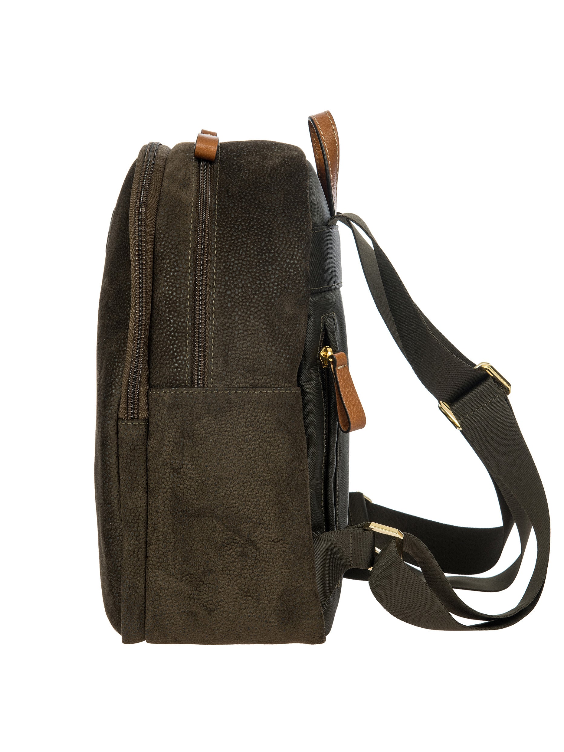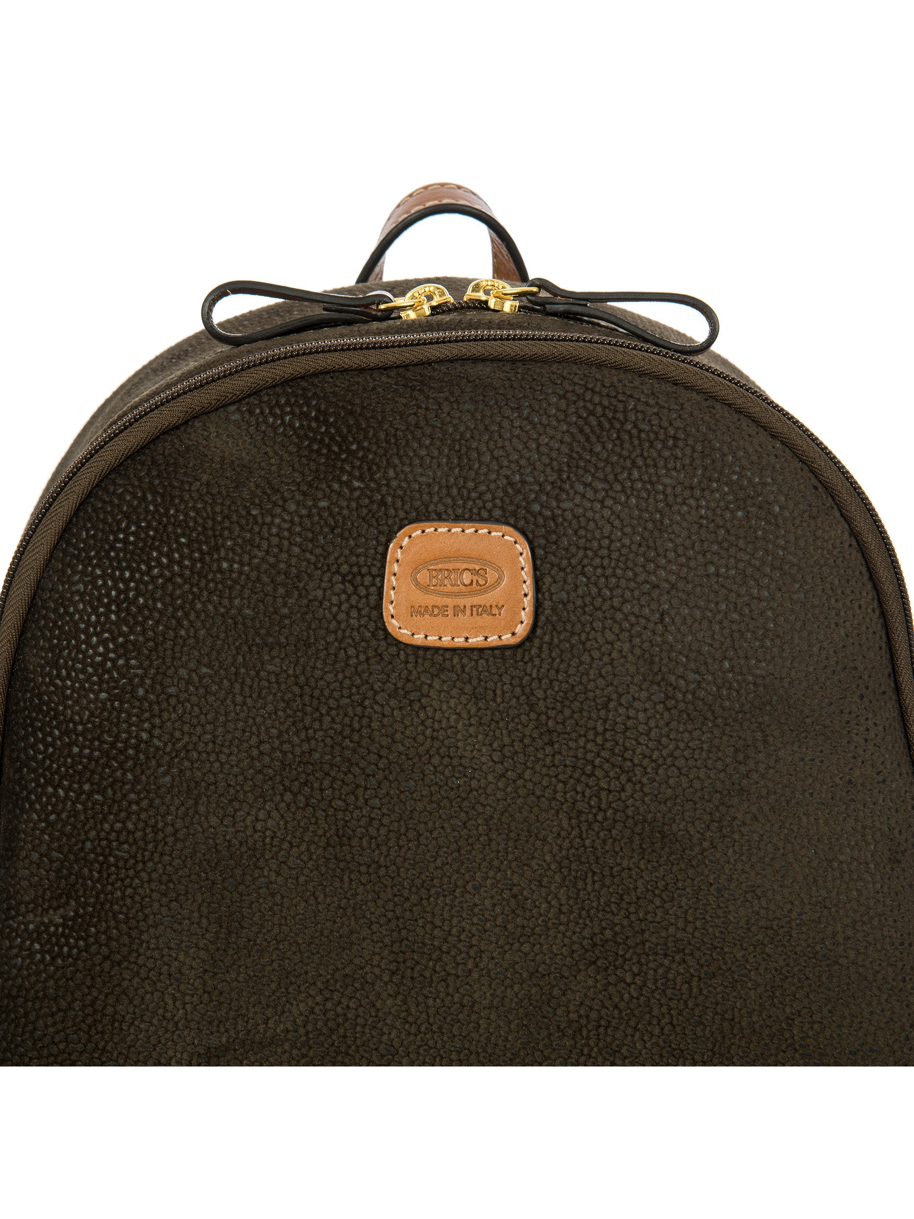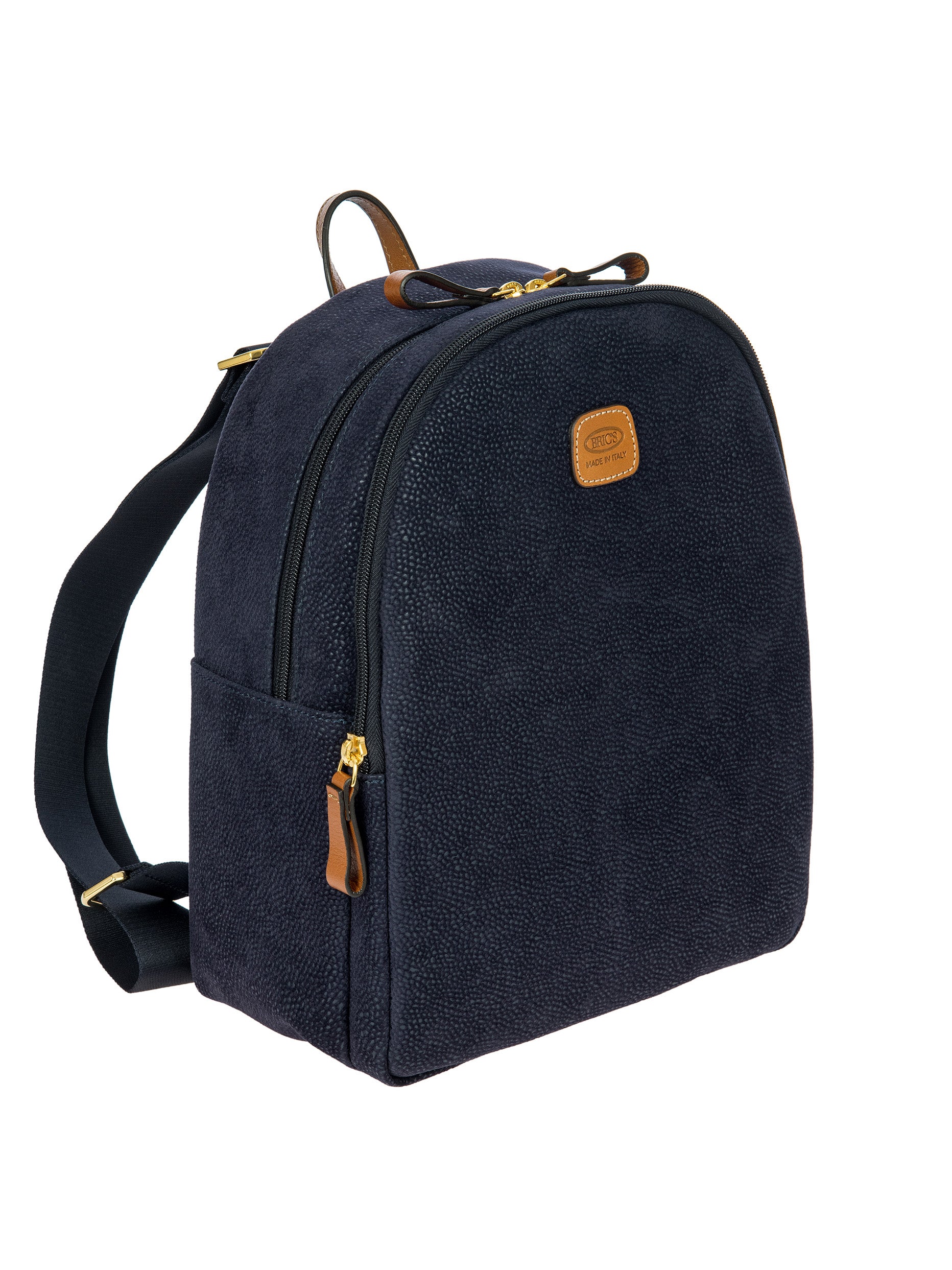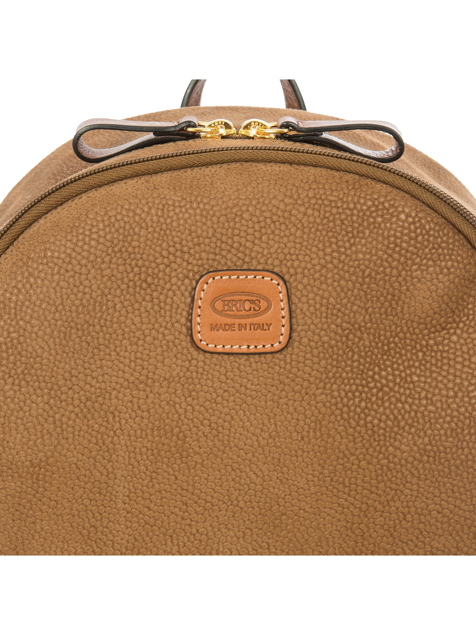 Designed and manufactured in Italy, the Serena backpack from the Life Collection is intended to last. Made from Bric's iconic suede-effect material, which is waterproof and very durable, it is the result of expert craftsmanship. The adjustable shoulder straps ensures it is comfortable to use, while the small handle on the top makes it easy to carry by hand. Its spacious and feminine design features a double compartment, ideal for everyday commitments, and two internal pockets, one of which is zipped, as well as a zipped pocket on the back ideal to hold your most precious belongings. The main compartment is equipped with a zip with two sliders. Internally it is finished with fabric lining, externally it is embellished with genuine leather details.