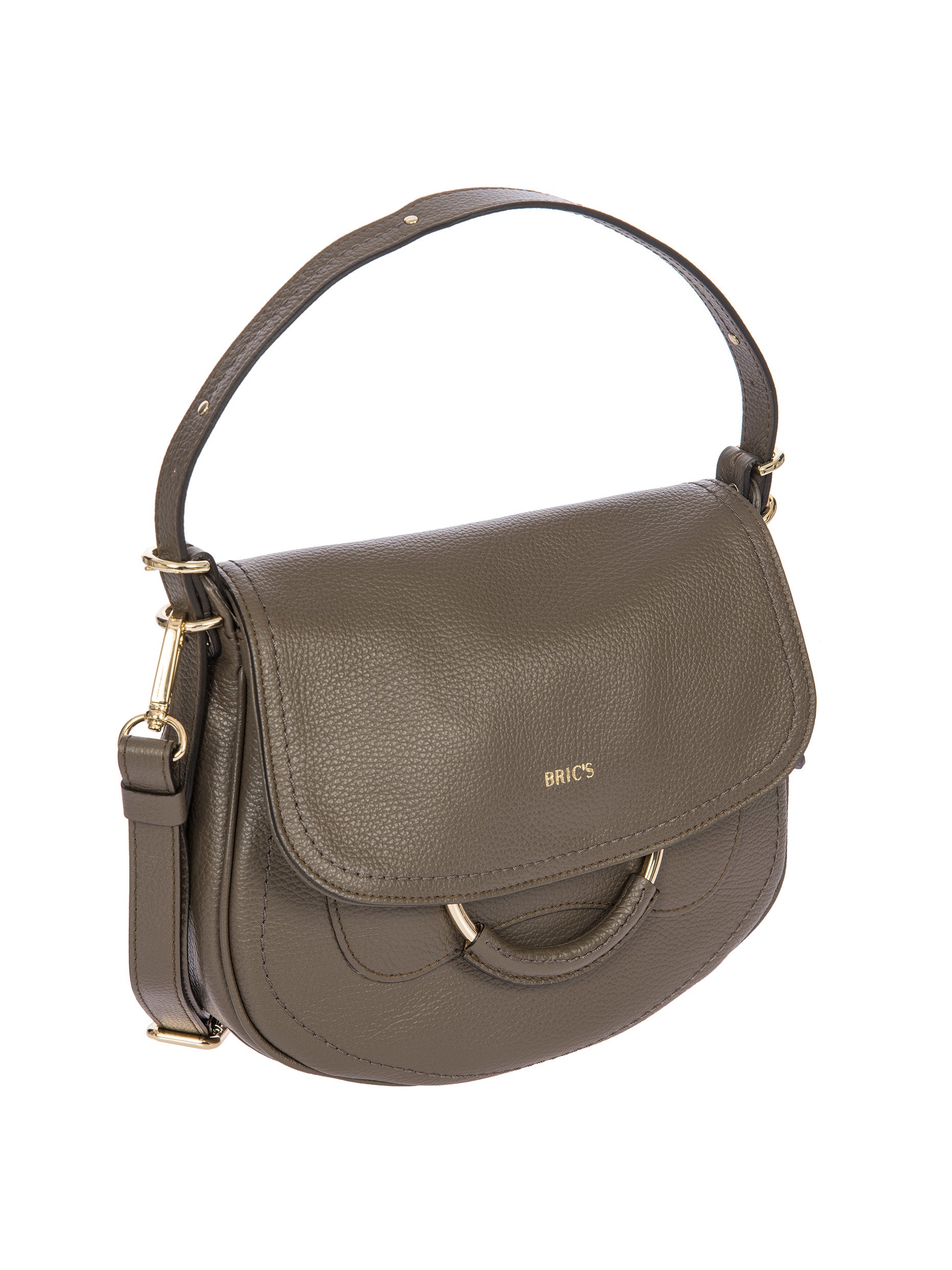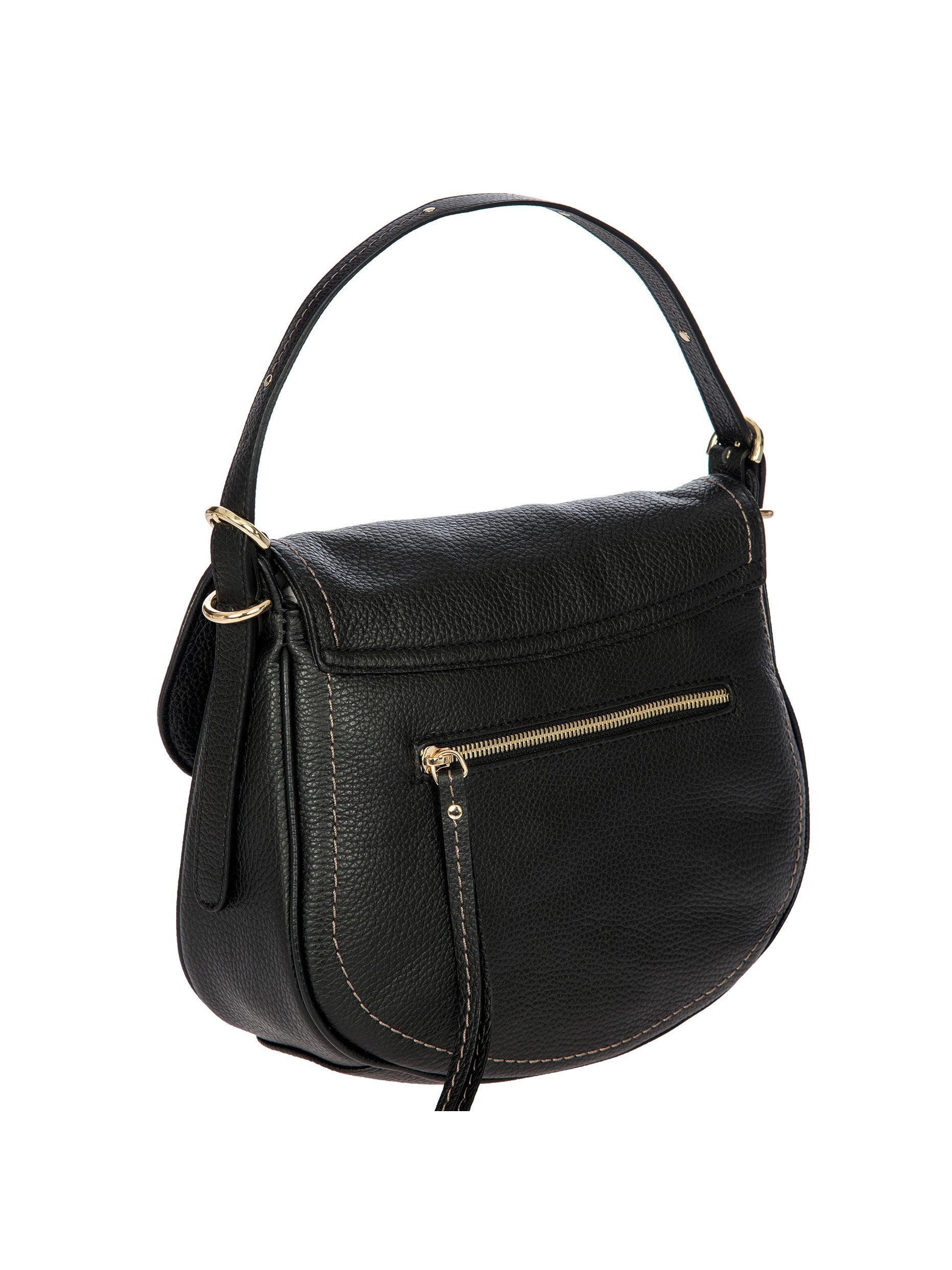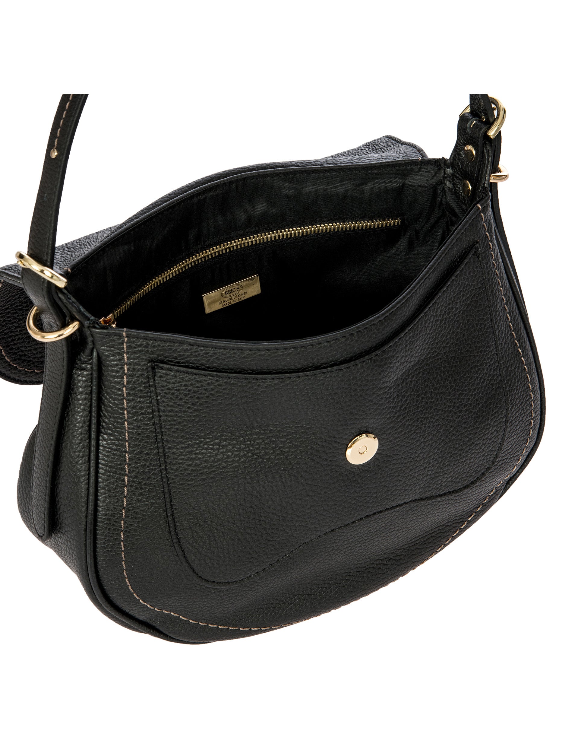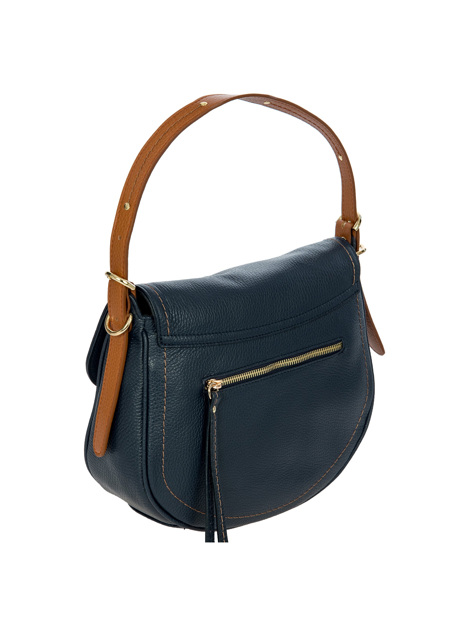 The Bric's Gondola Collection is exclusively designed and made in Italy. Created using soft, durable and lightweight genuine leather, with an elegant stamped Bric's logo. -Interchangeable handle and shoulder strap - Magnetic clasp embellished with a metal detail - Exterior suede details - Zipped outside pocket - Inside pockets - Metal elements with a gold finish - Soft fabric lining - Customisable with an additional shoulder strap