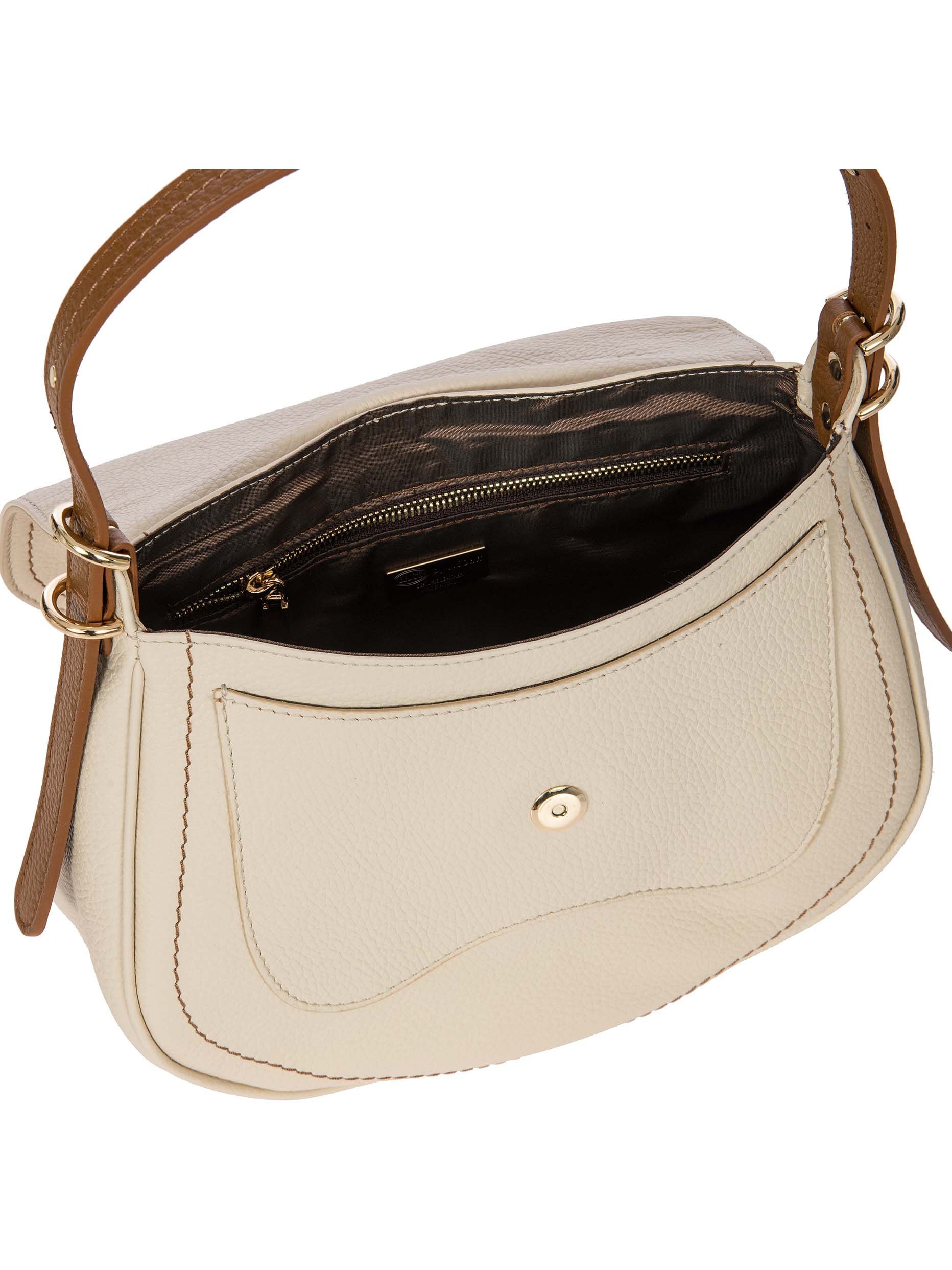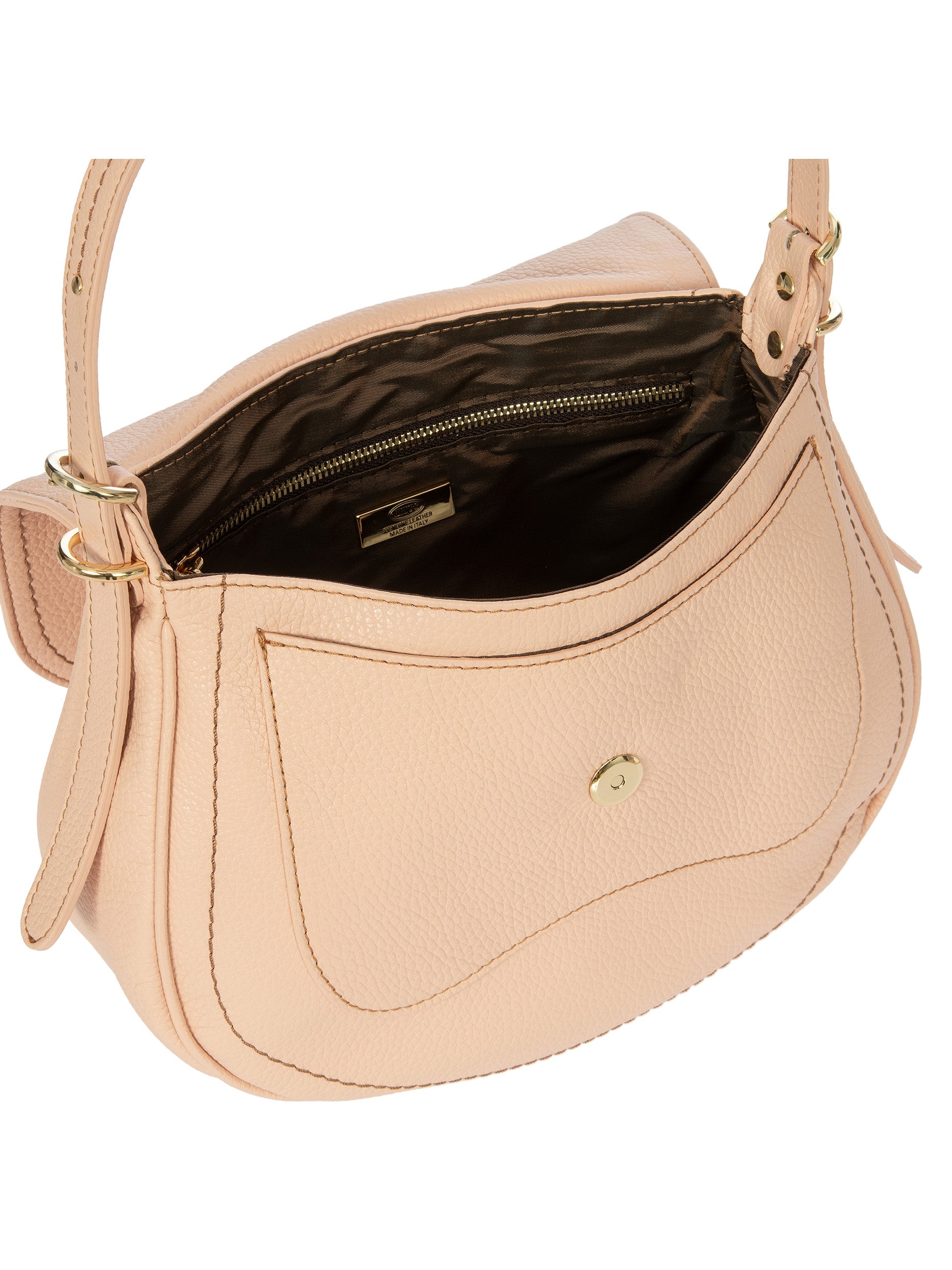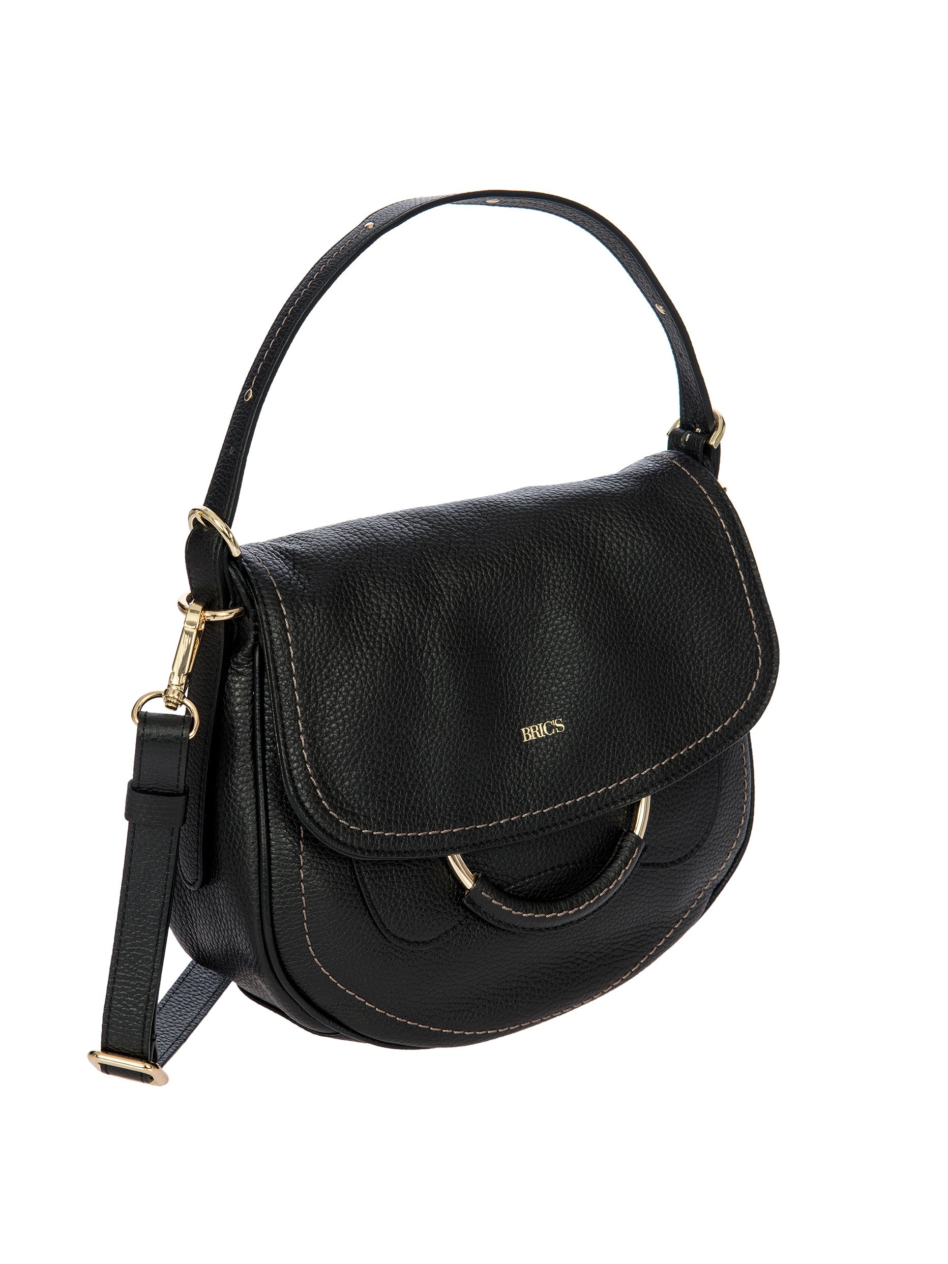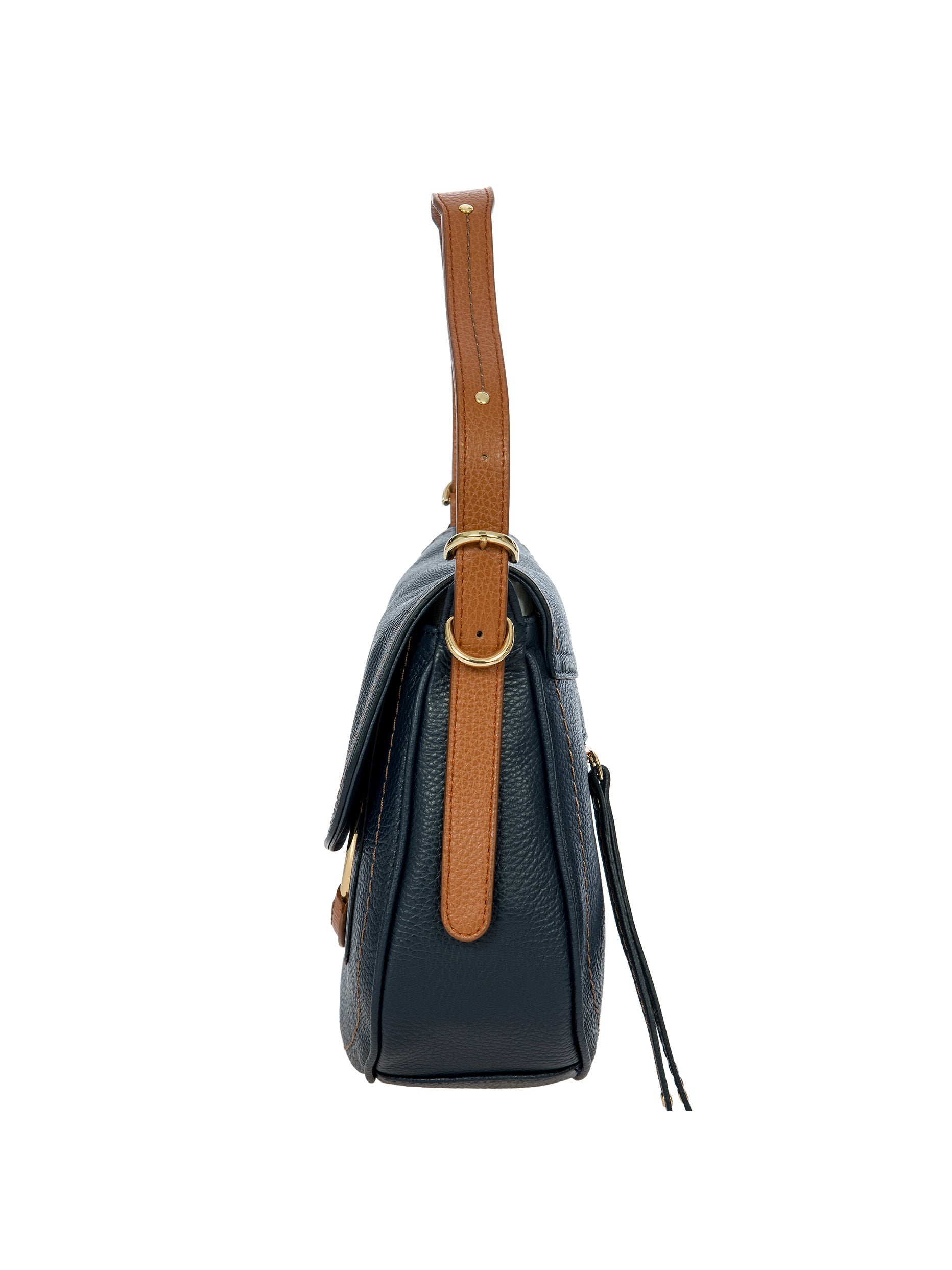 The Bric's Gondola Collection is exclusively designed and made in Italy. Created using soft, durable and lightweight genuine leather, with an elegant stamped Bric's logo. -Interchangeable handle and shoulder strap - Magnetic clasp embellished with a metal detail - Exterior suede details - Zipped outside pocket - Inside pockets - Metal elements with a gold finish - Soft fabric lining - Customisable with an additional shoulder strap
