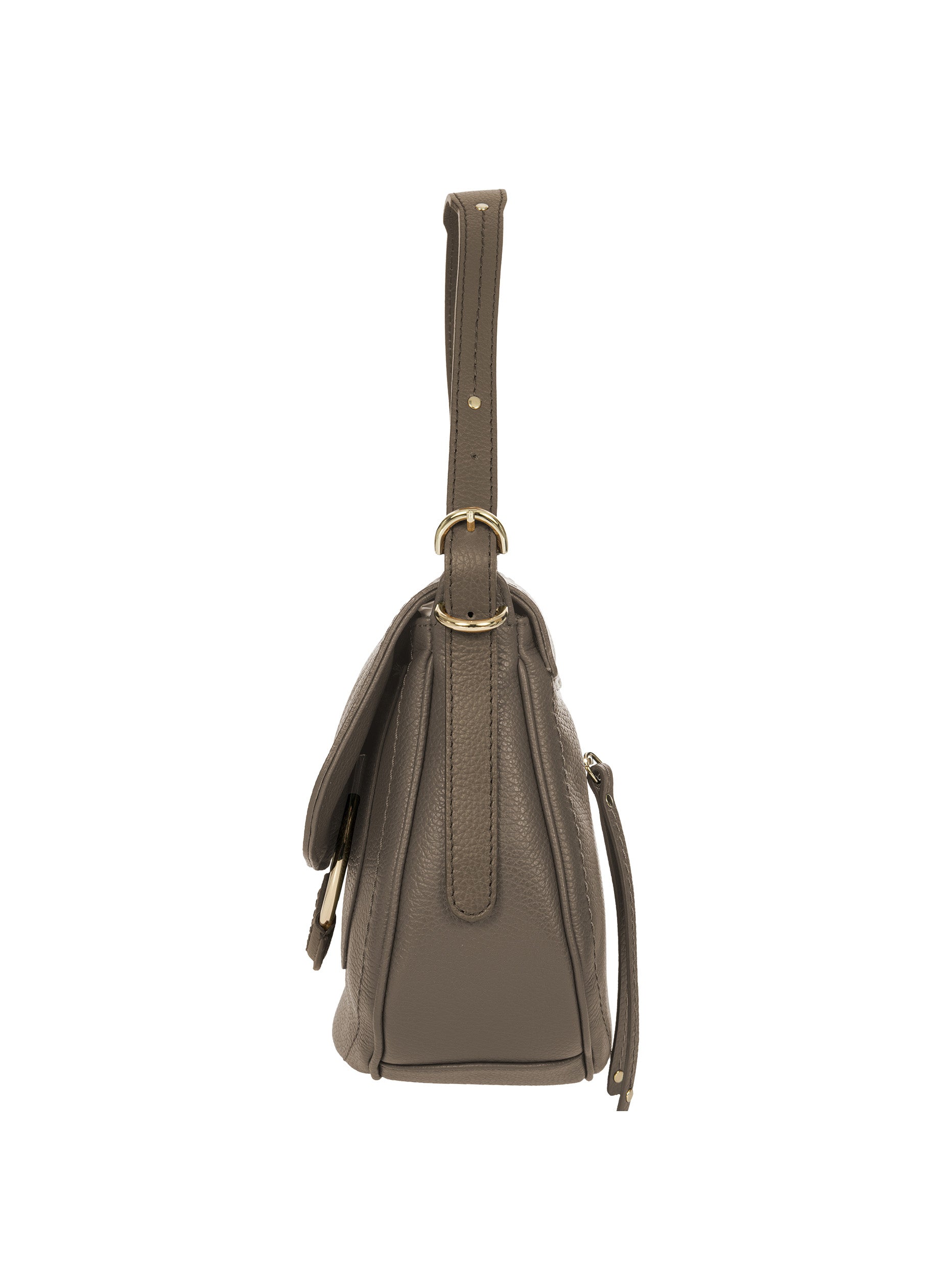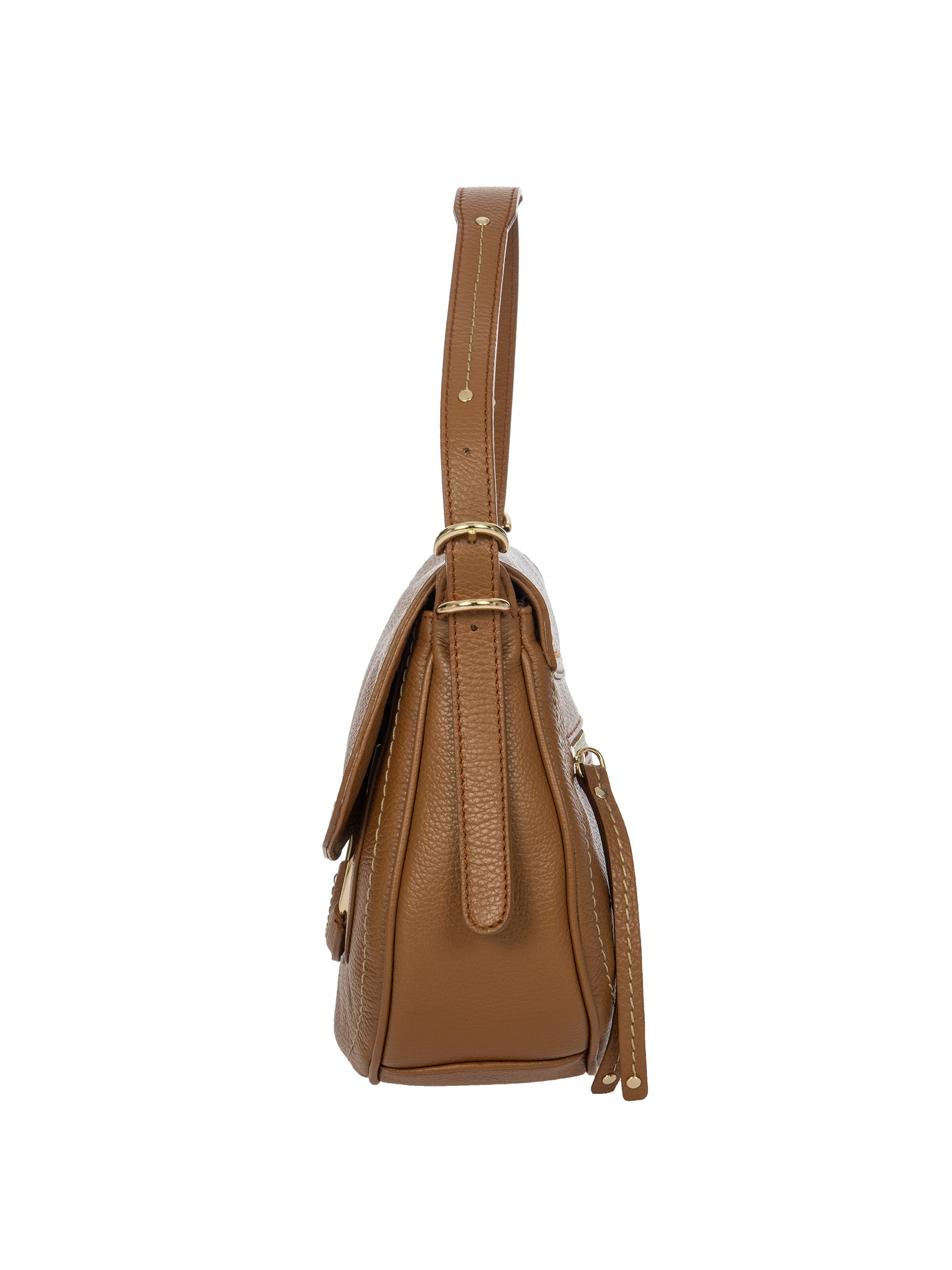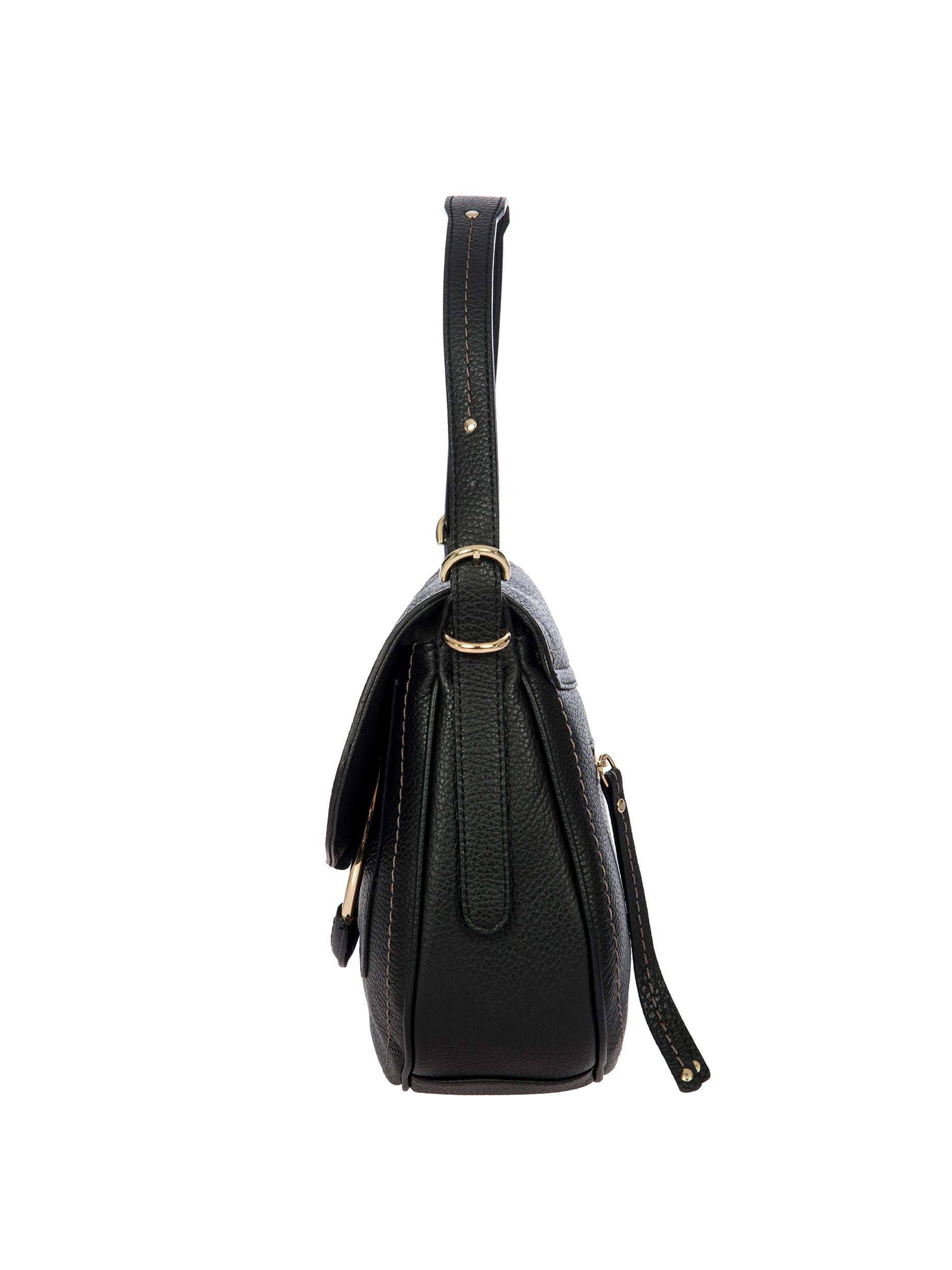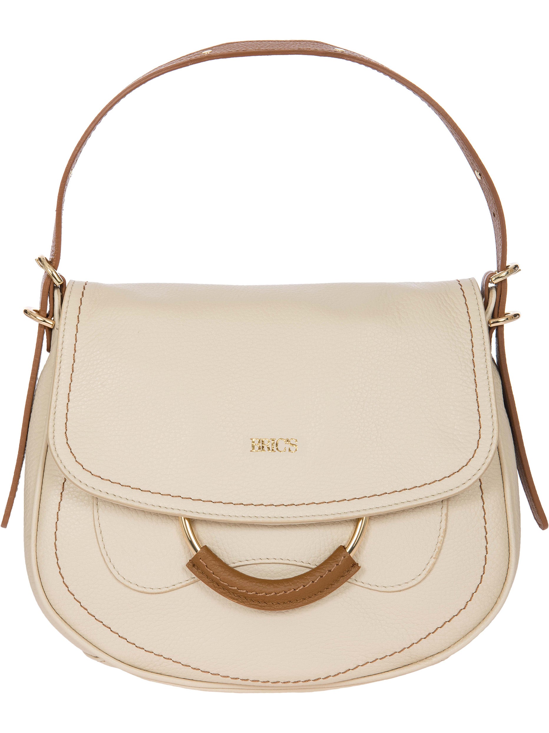 The Bric's Gondola Collection is exclusively designed and made in Italy. Created using soft, durable and lightweight genuine leather, with an elegant stamped Bric's logo. -Interchangeable handle and shoulder strap - Magnetic clasp embellished with a metal detail - Exterior suede details - Zipped outside pocket - Inside pockets - Metal elements with a gold finish - Soft fabric lining - Customisable with an additional shoulder strap