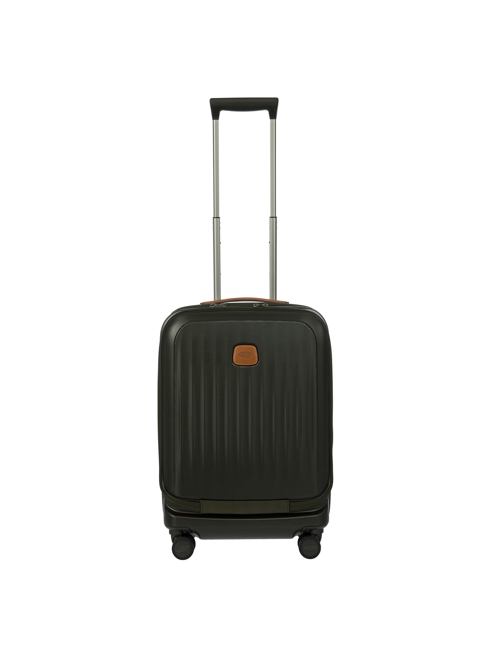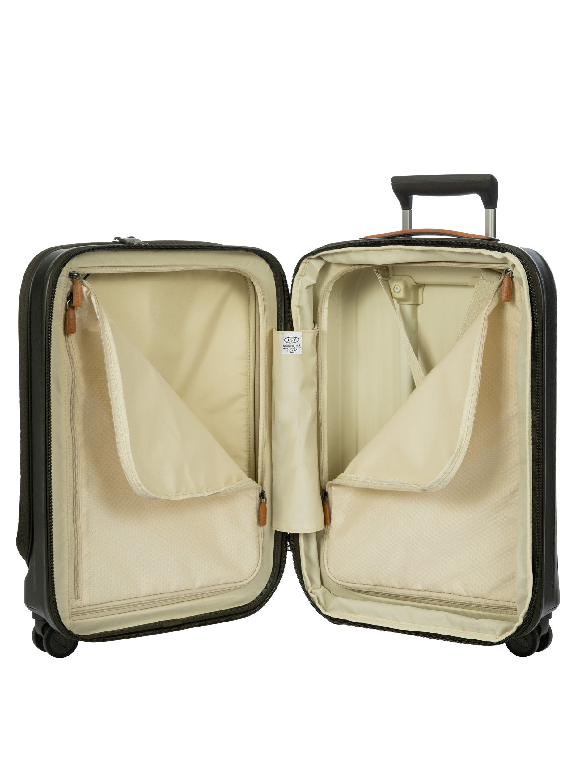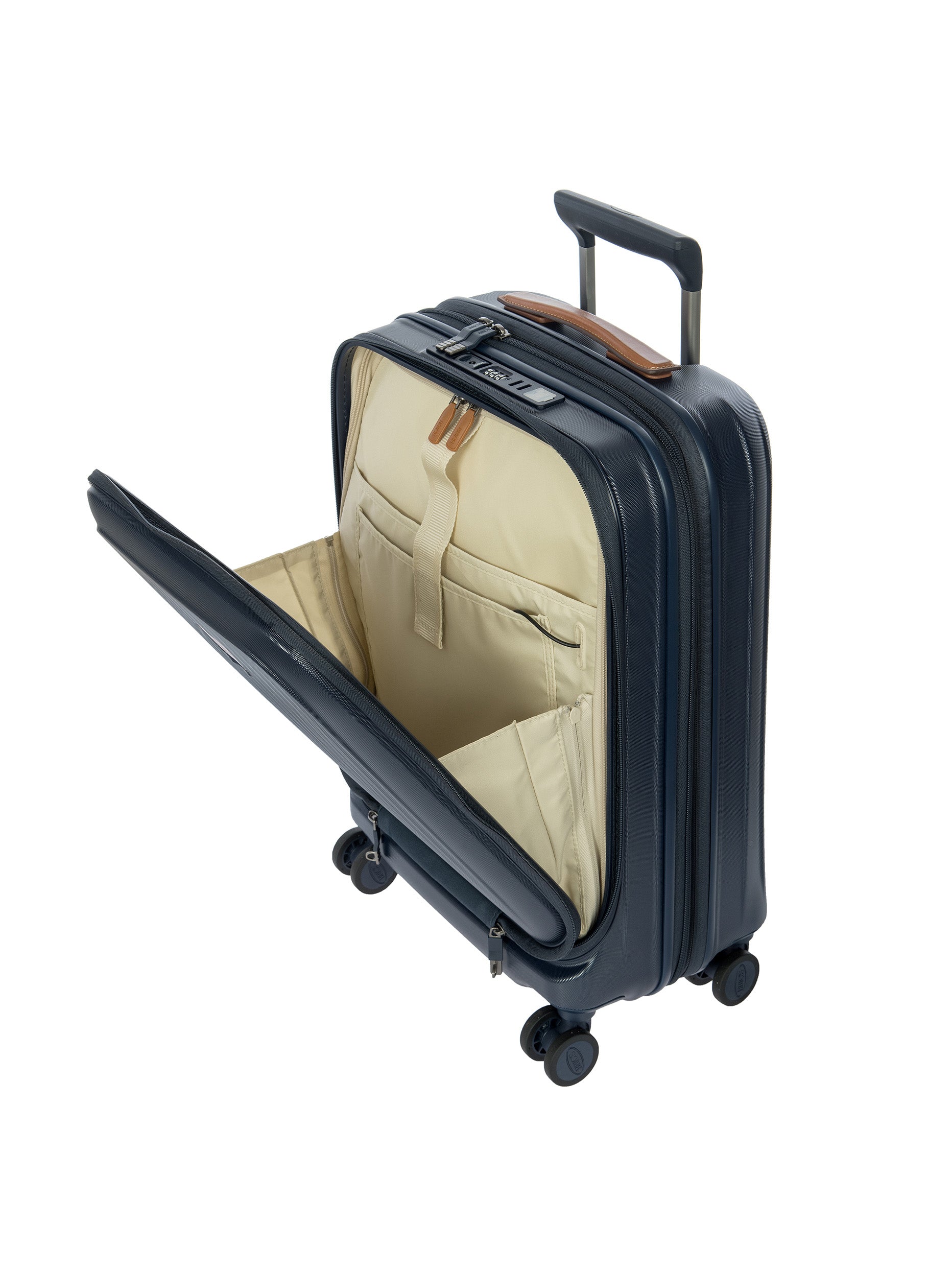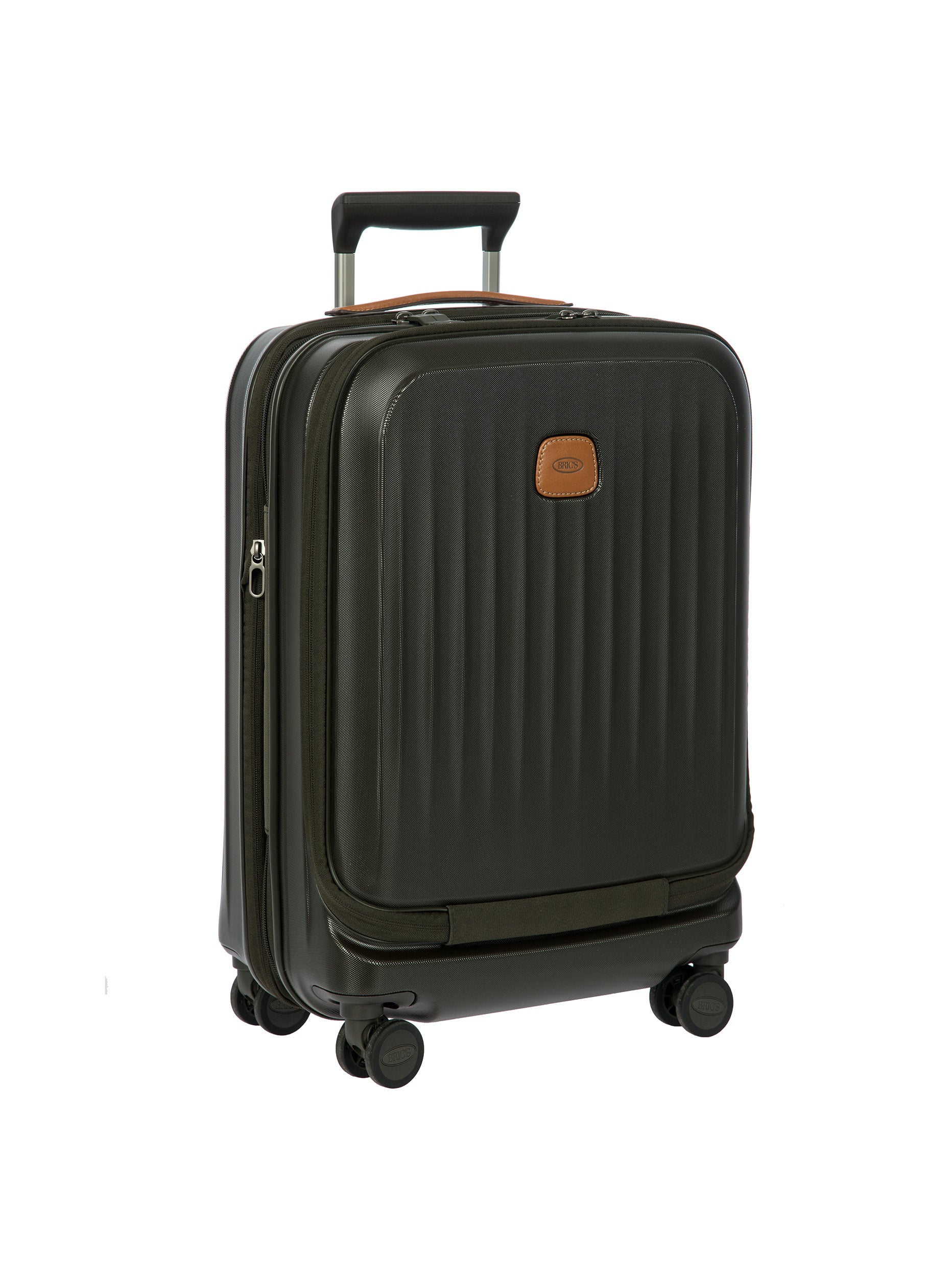 Taormina is Bric’s ultra-lightweight trolley, made of impact- and scratch-resistant polycarbonate. Practical interior, with easy-to-clean surface, zip, and clothes-holding straps, for a perfectly organized luggage. And also the option to expand it even further, when needed. TSA lock and anti-tampering zip protecting both the main compartment, and the front compartment with laptop pocket. Built-in USB port. Two silent castors, multistop towing system, and soft leather upper handle for enhanced comfort.
