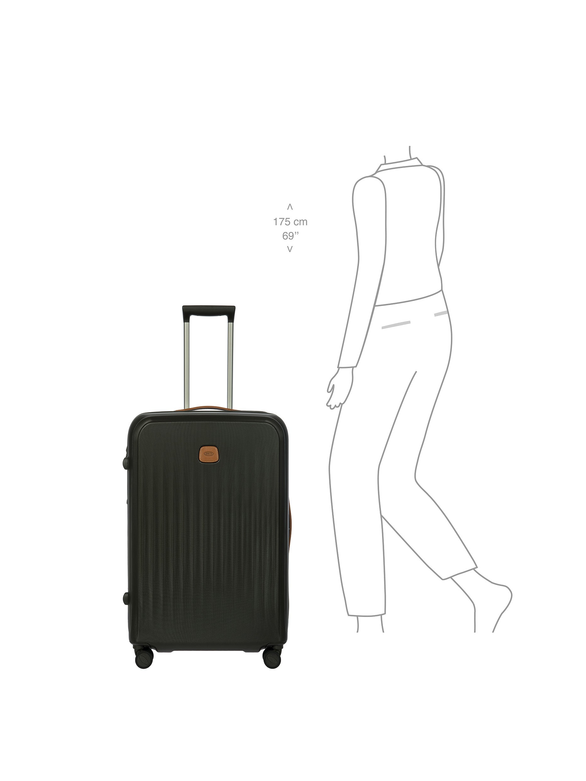 Taormina is Bric’s ultra-lightweight trolley, made of impact- and scratch-resistant polycarbonate. Practical interior, with easy-to-clean surface, zip, and clothes-holding straps, for a perfectly organized luggage. And also the option to expand it even further, when needed. Safe TSA lock and anti-tampering zip. Two silent castors, multistop towing system, and soft leather upper handle for enhanced comfort.