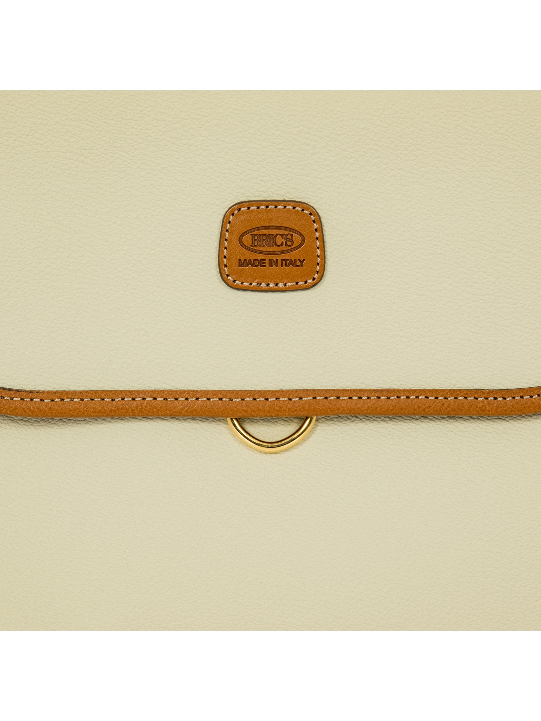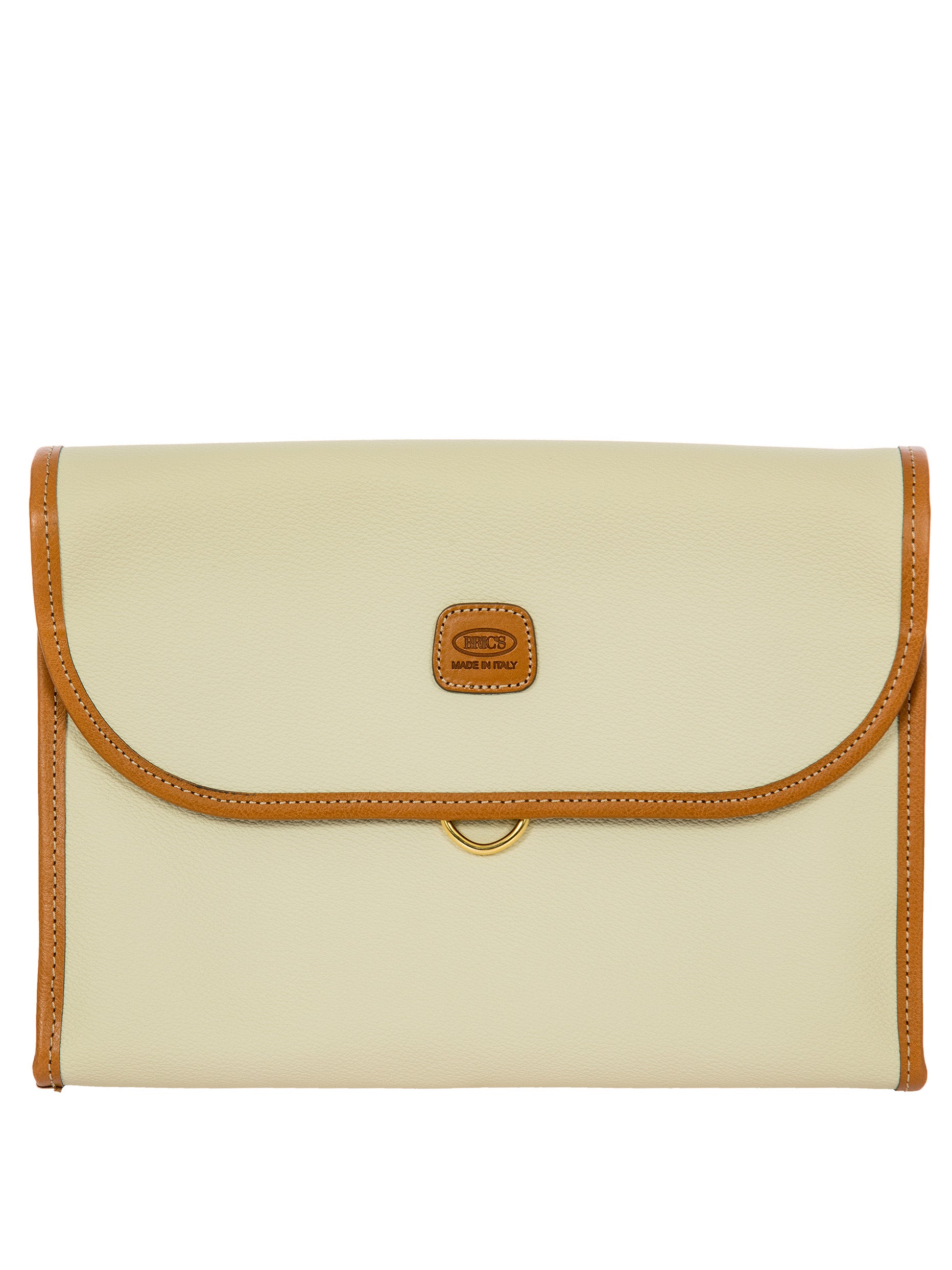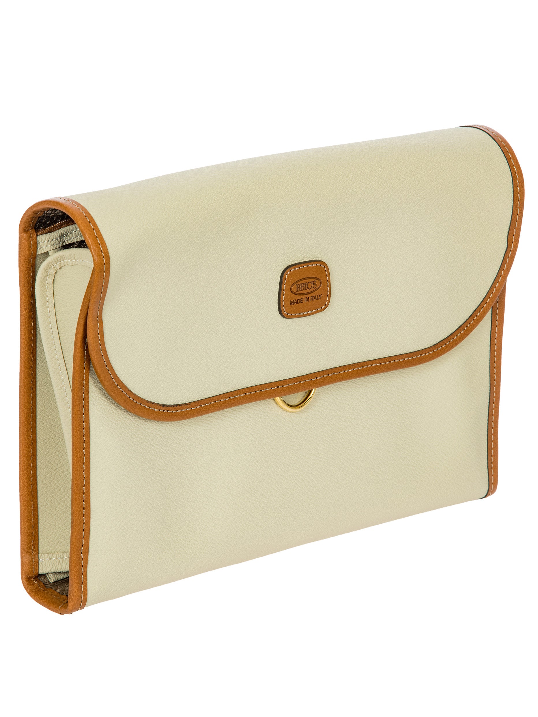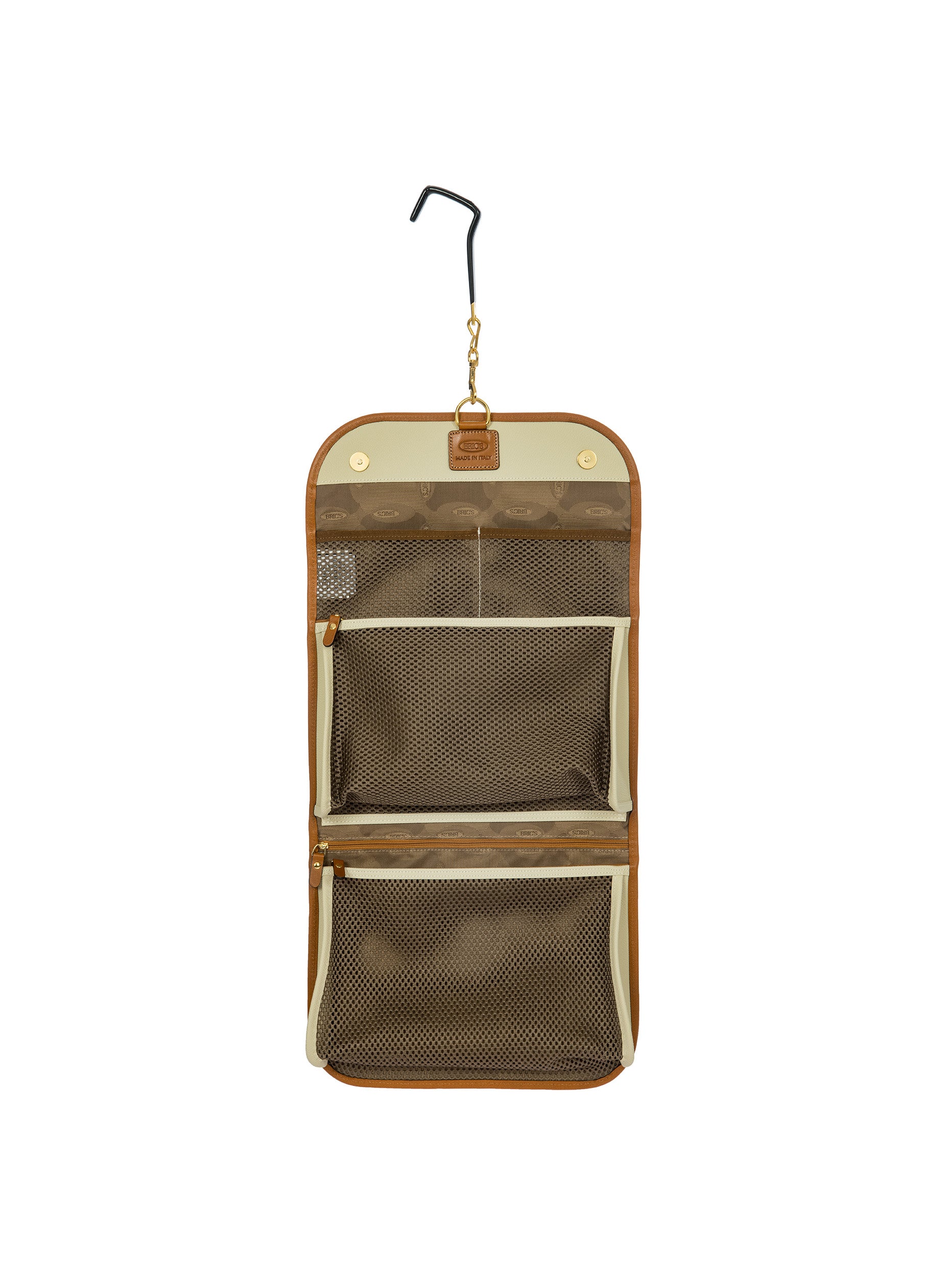 Tri-fold toiletry bag from Bric's Firenze collection, made in soft, embossed synthetic material. The iconic and elegant design is completed by the fine, vegetable tanned, Tuscan leather finishes. This overnight case ensures that all your toiletries will stay in order within an ample and organised space. EXTERIOR: two magnetic button closures; fine Tuscan leather finishes. INTERIOR: it comes with three zipped pockets and two transparent compartments; thanks to the convenient hook detail, you can also use it in an upright position.
