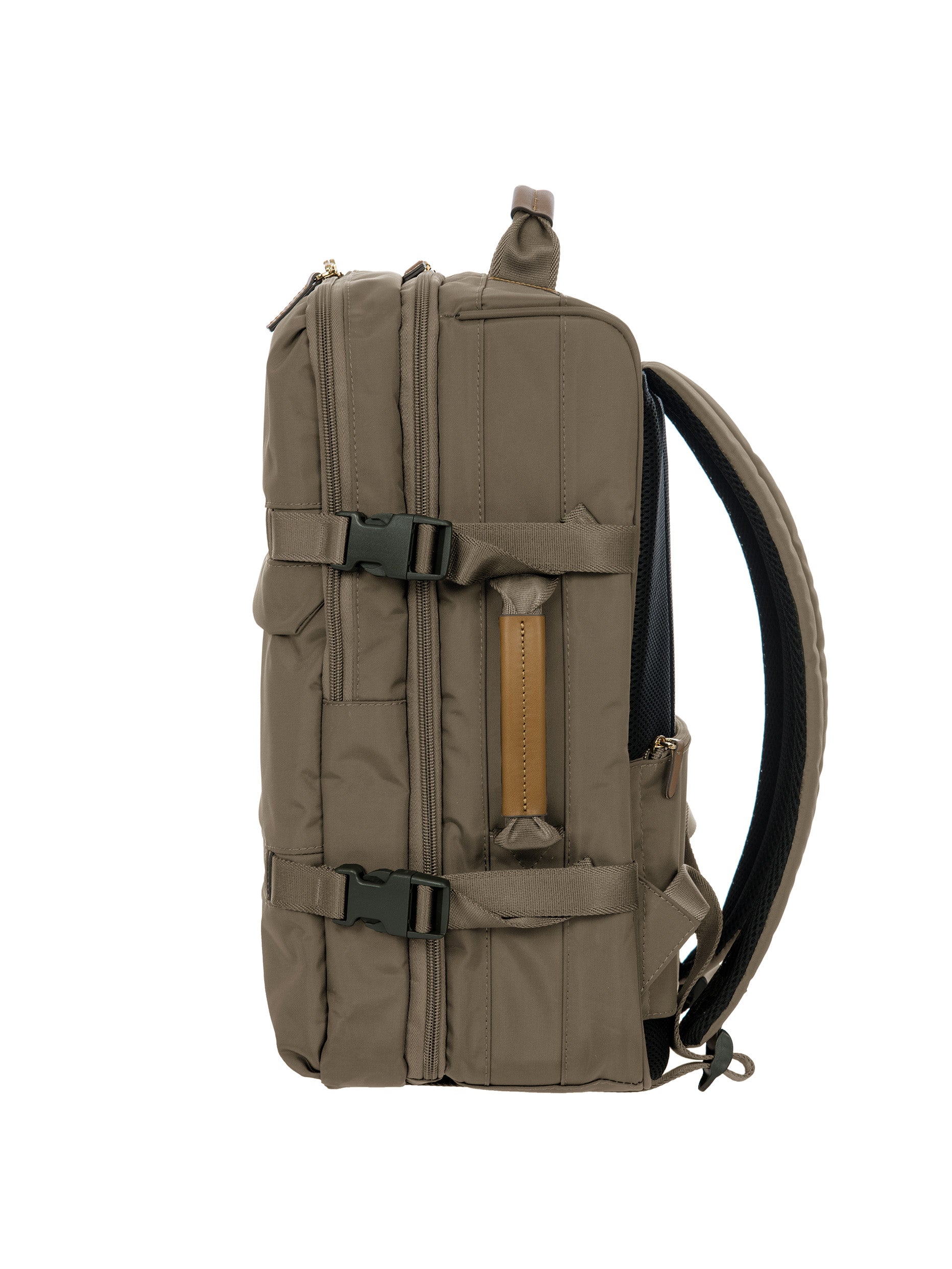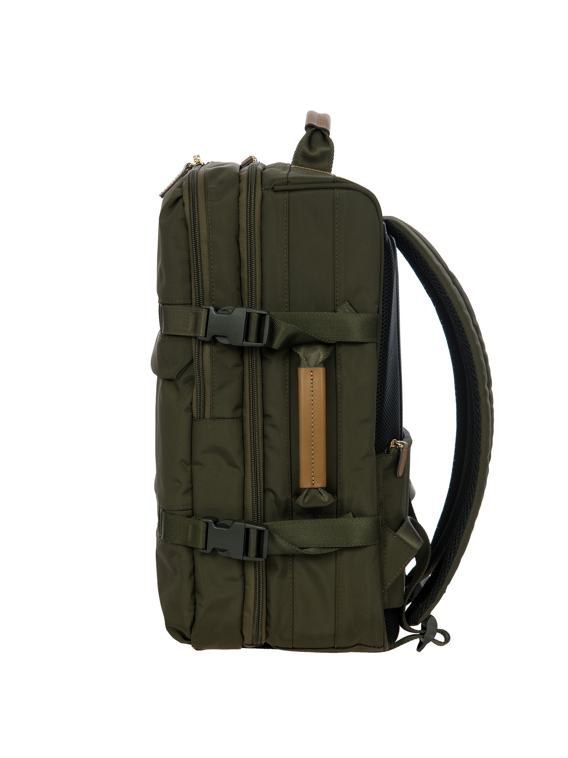 SIDES: four adjustable backpack buckle clips—two on each side—and a pocket for storing bottles or umbrellas.
