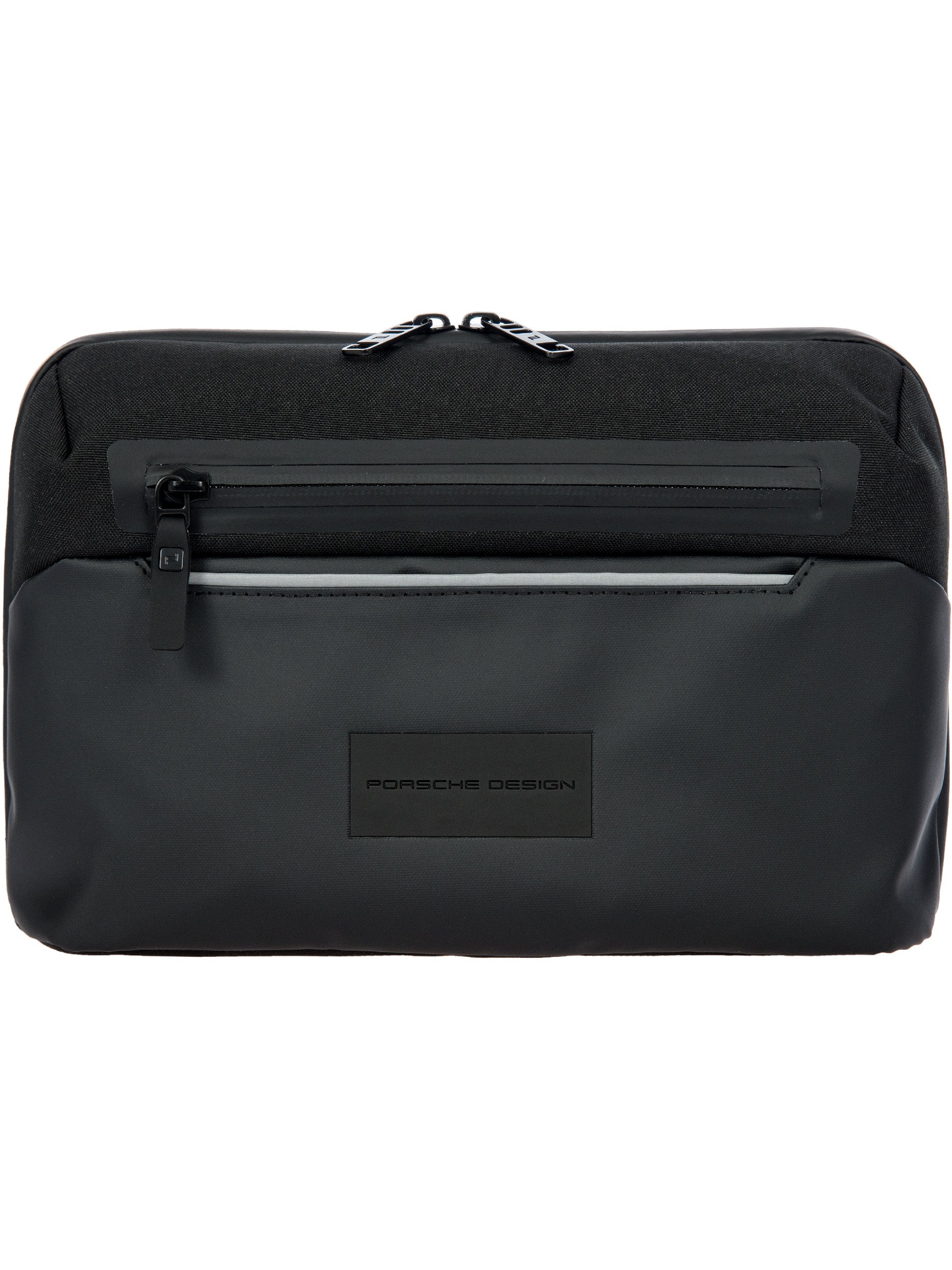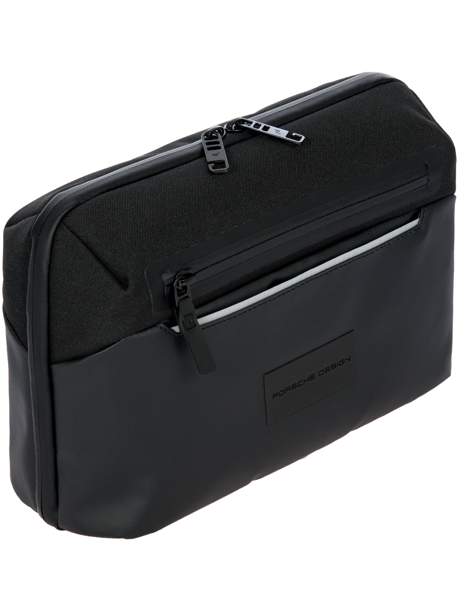 The Porsche Design Urban Eco series doesn't stay in the drawer - it’s perfect for modern everyday life: stylish and sustainable, functional and flexible. Like the Porsche Design Urban Eco Washbag L, the modern wash bag is attractive at first sight with its technical-clean design: The contrast of water-repellent polyester and coated abrasion-resistant fabric looks exciting and sporty, while laminated zippers, a reflective piped welt pocket and black metal hardware maximize the cool look. The equipment also proves style and functionality: Via the 2-way zipper, the bag can be opened completely 180 °, the integrated hook allows a space-saving and hanging in the bathroom. Two main zippered compartments with multiple functional storage options, plus an additional zippered pocket and slip pocket on the front and another slip pocket on the back provide the best way to organize your grooming products. Details like the PD icon lining with hexagon pattern and the Porsche model badge-inspired back print with the Zell am See map coordinates, the home of Studio F.A. Porsche, provide the unmistakably exclusive finish.