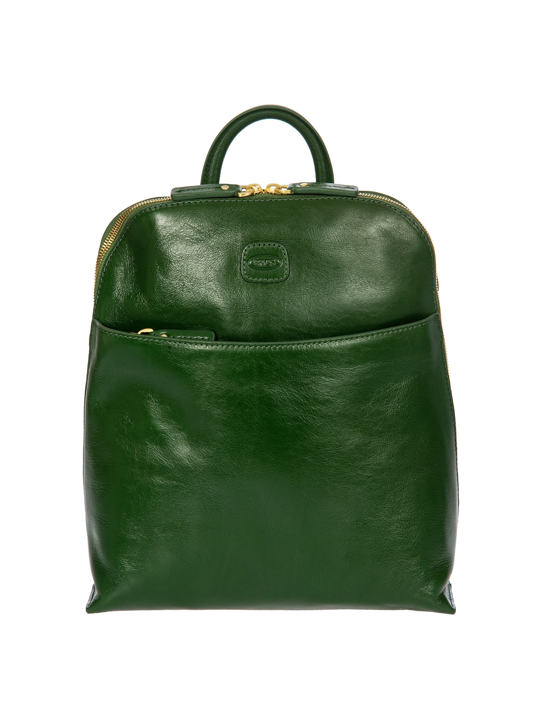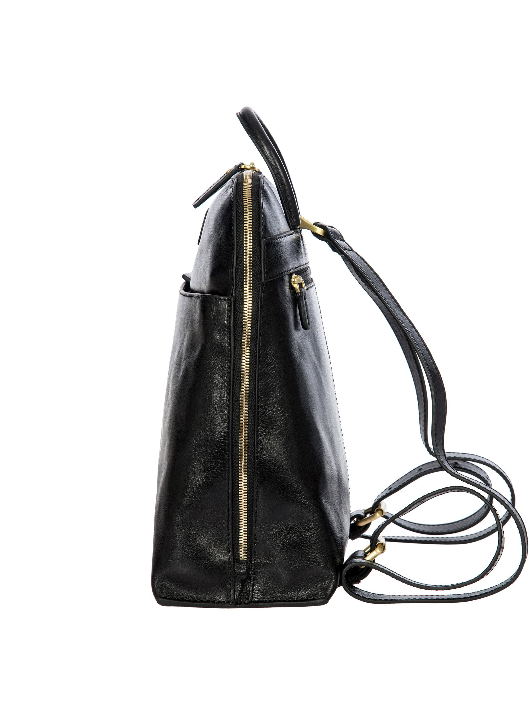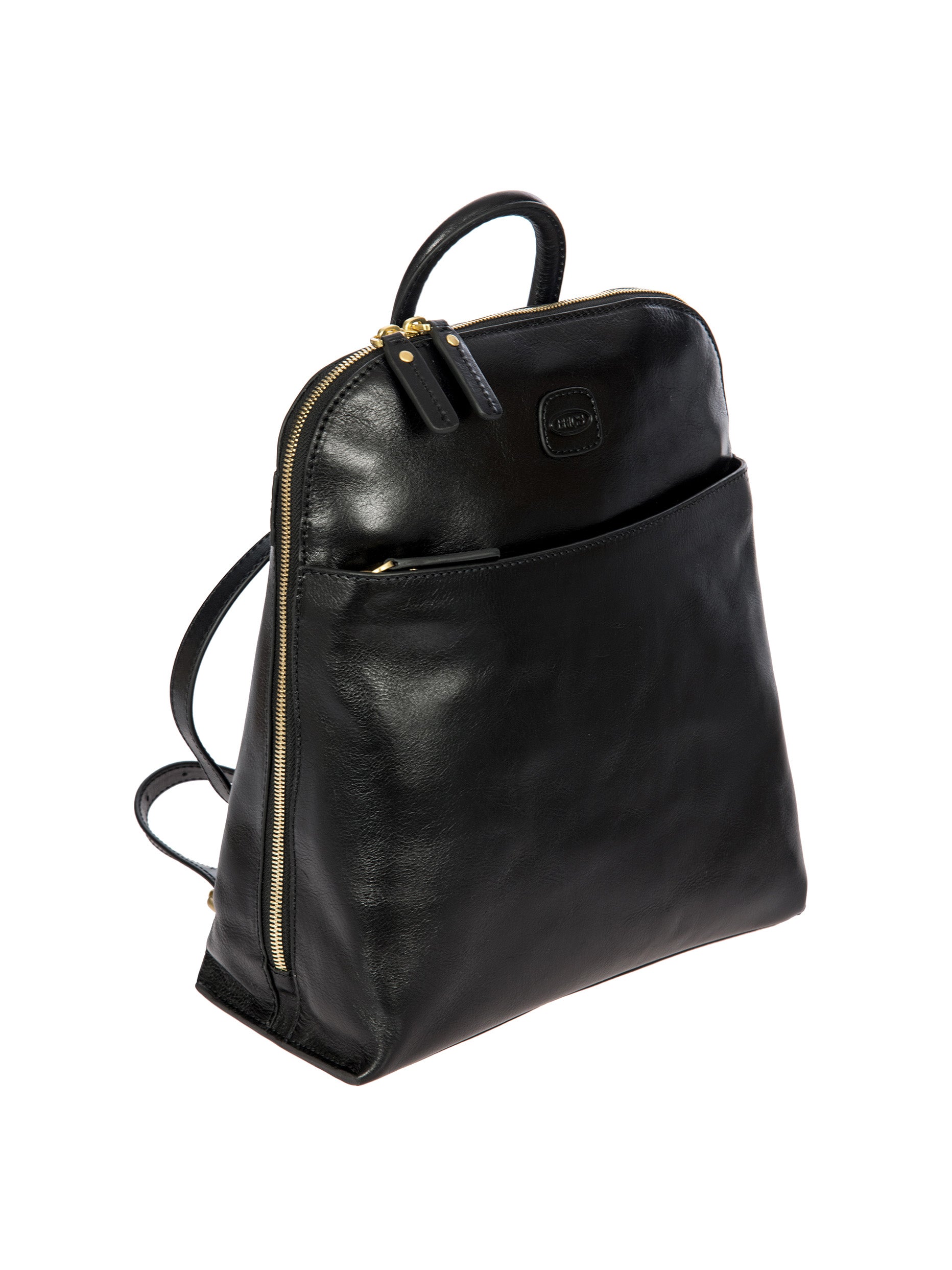 Each piece in Bric's Volterra Collection represents the natural elegance of the softest leather. Every stitching, the rib finish and the detailing of the brushed gold hardware lend an artisanal flavour to it. This backpack is ideal for everyday use, for people always on the move: inside, it is divided into three compartments, one of which is zipped, and its feminine shape is suitable for all occasions -Concealed zipped pocket on the back to hold your valuable belongings closed, additional zipped pocket on the front for items to keep on hand -Equipped with thin, length-adjustable shoulder straps -Top handle to carry it by hand -Double-slider zip, designed to be secure and stylish, which unzips to reveal a comfortably wide opening